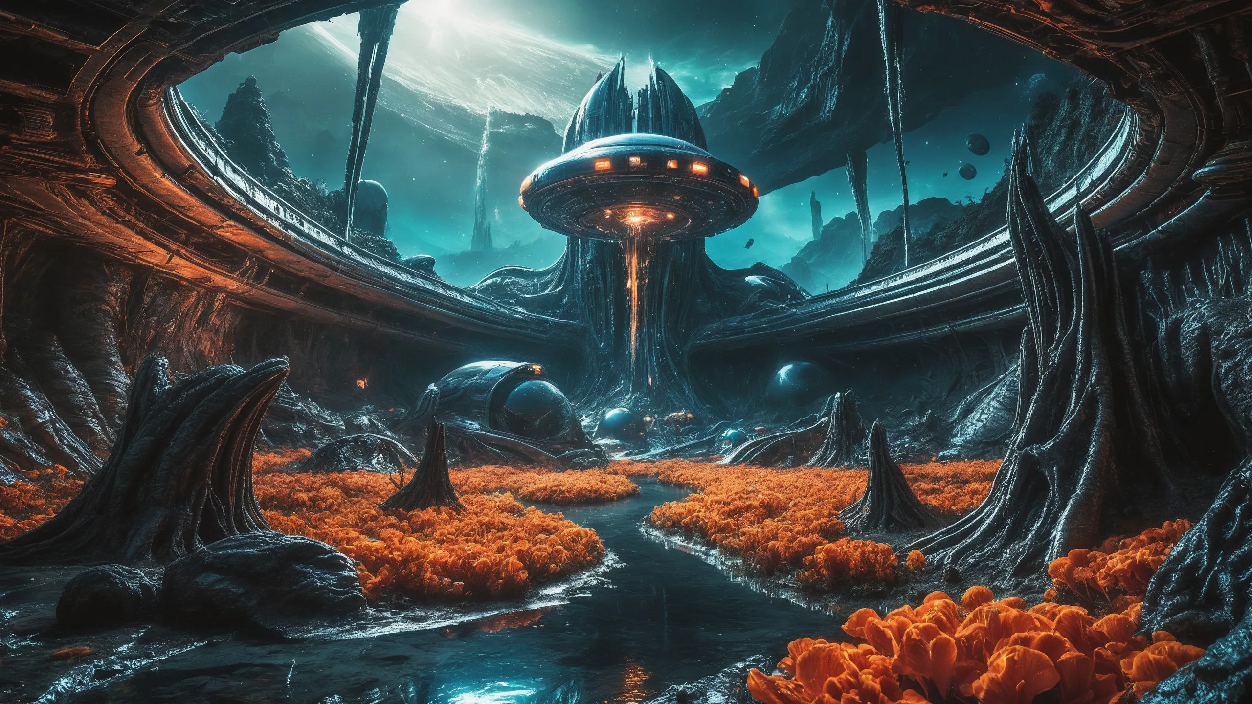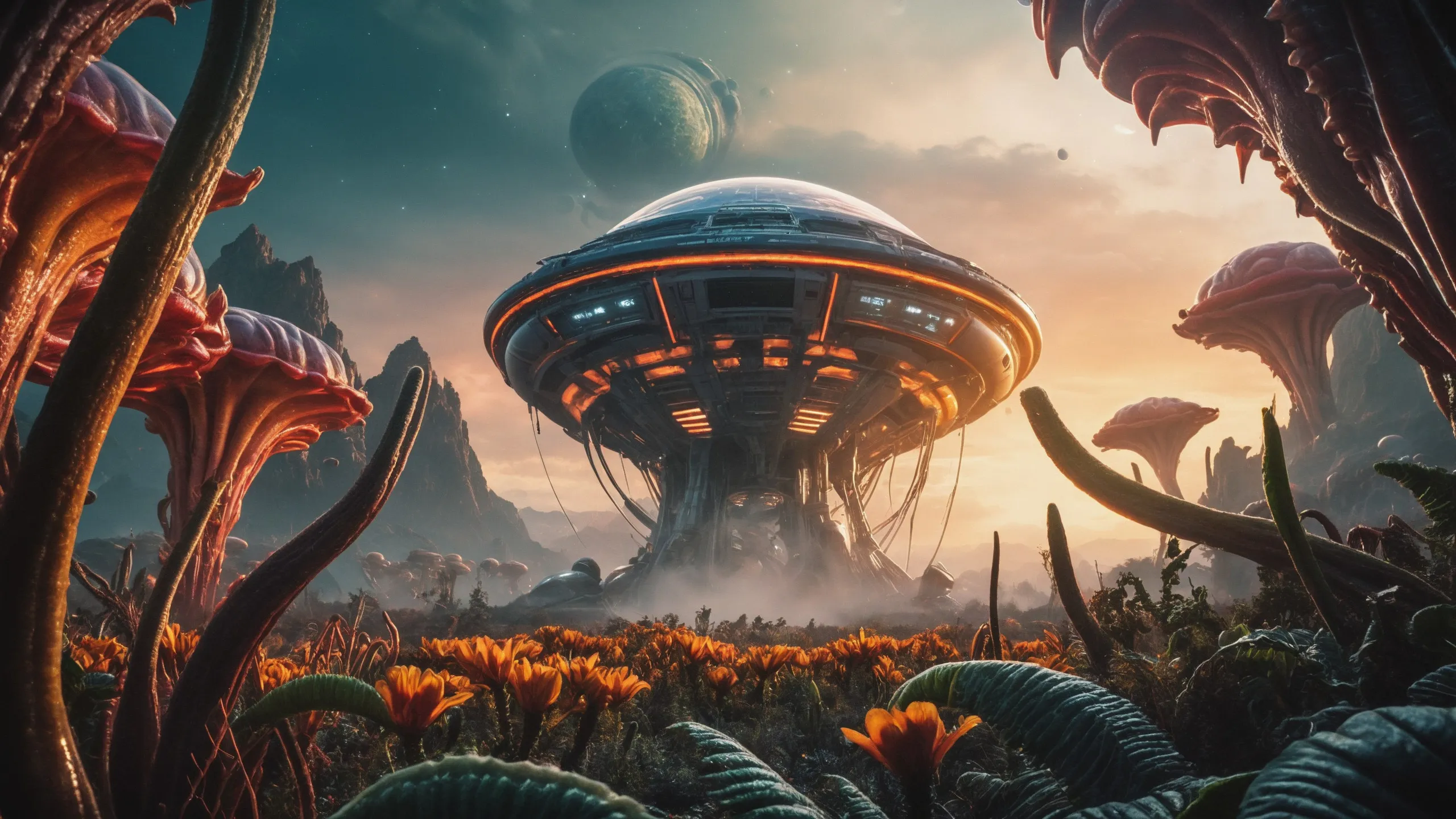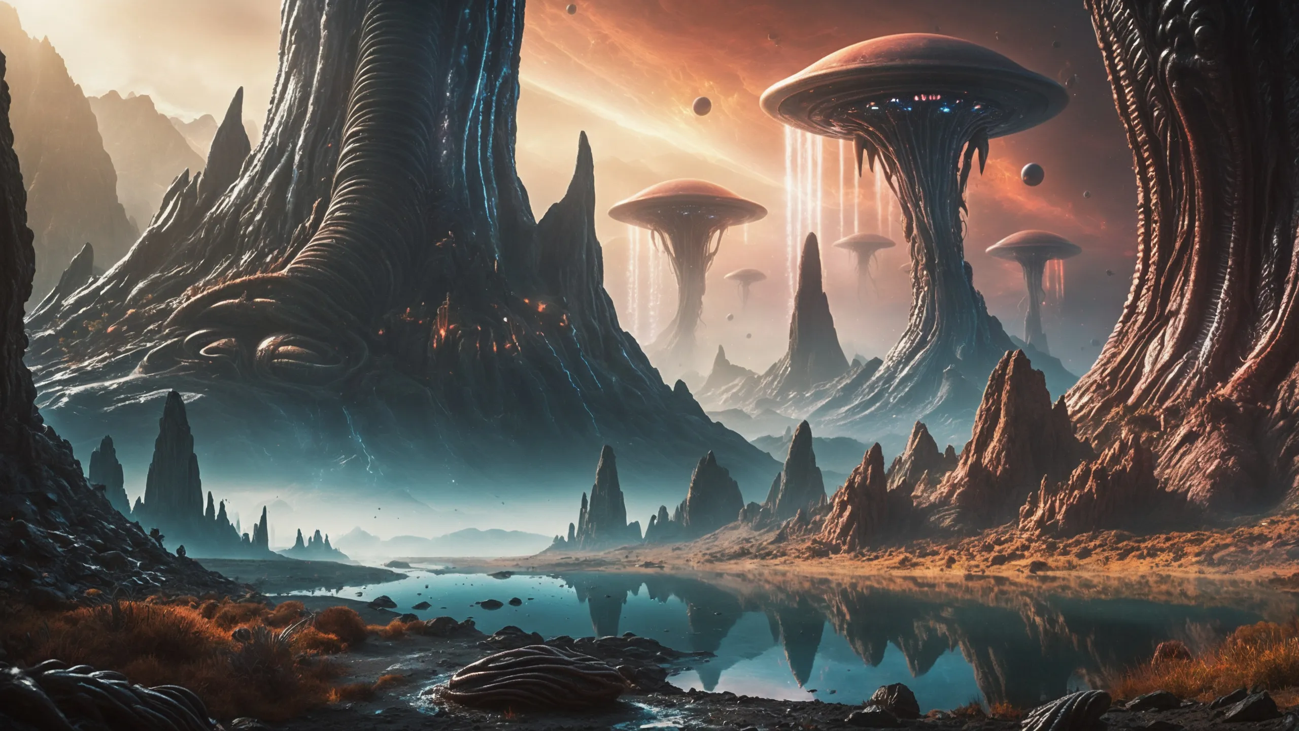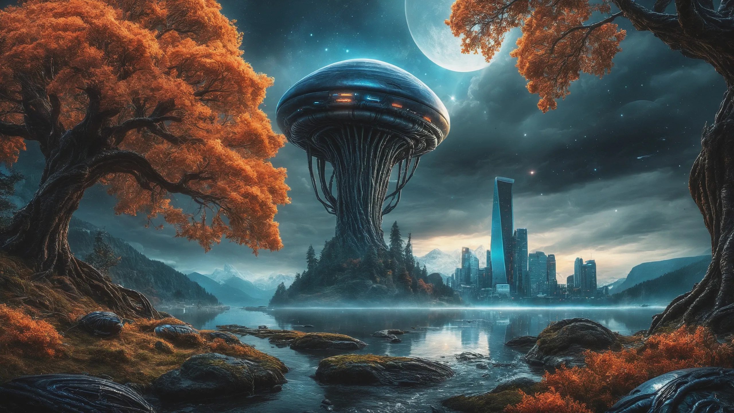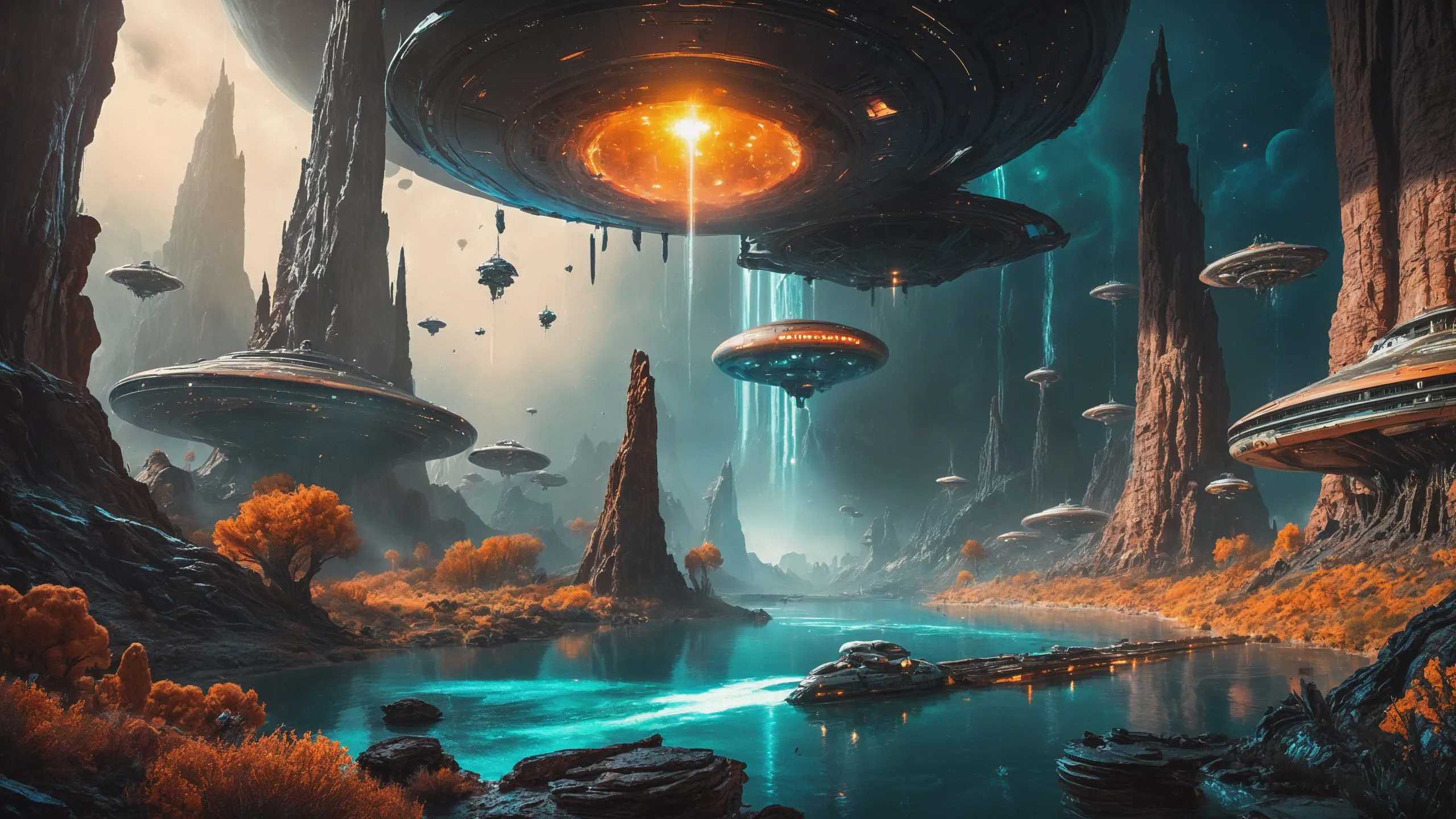 Cinematic epic scene of a (Sience Fiction, alien {mega city|cityscape|landscape|space station|outer space|world}:1.5).