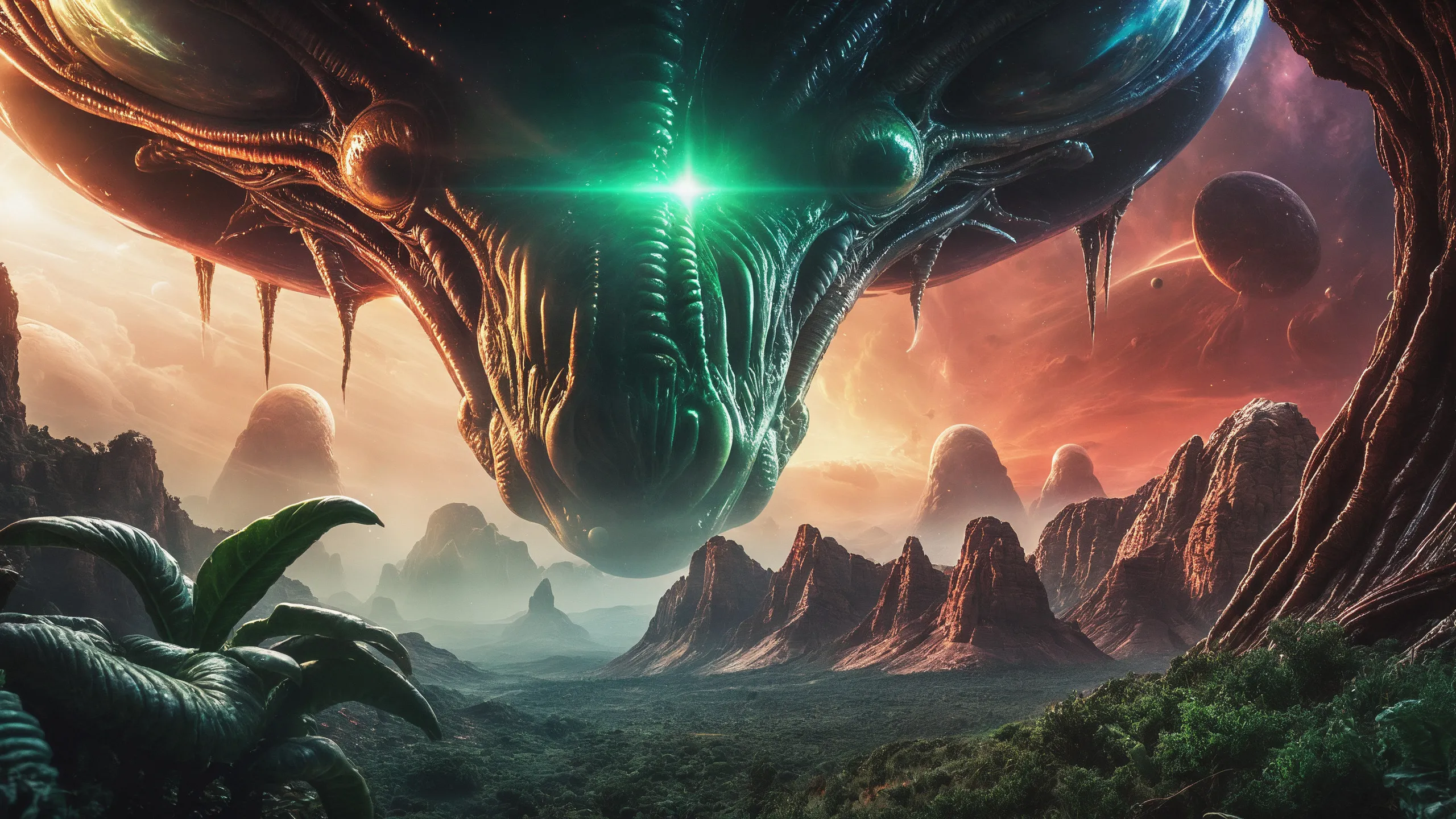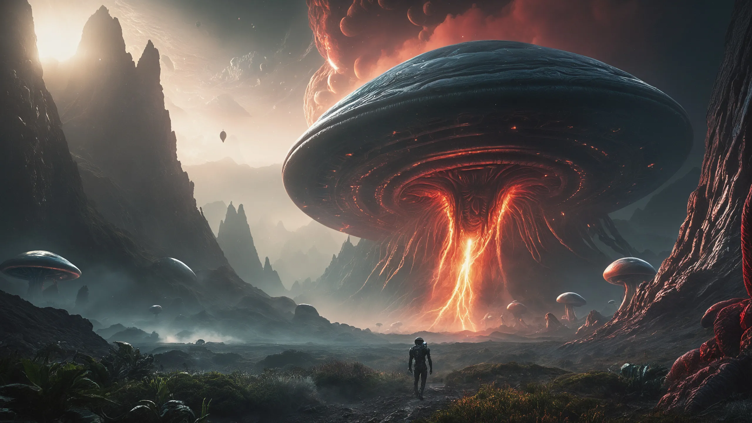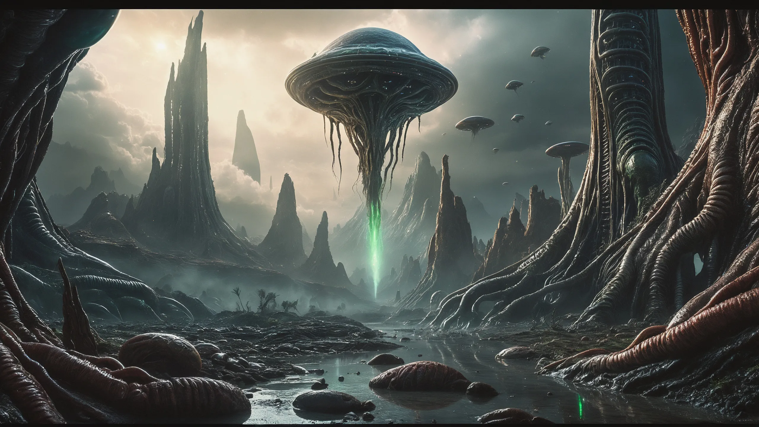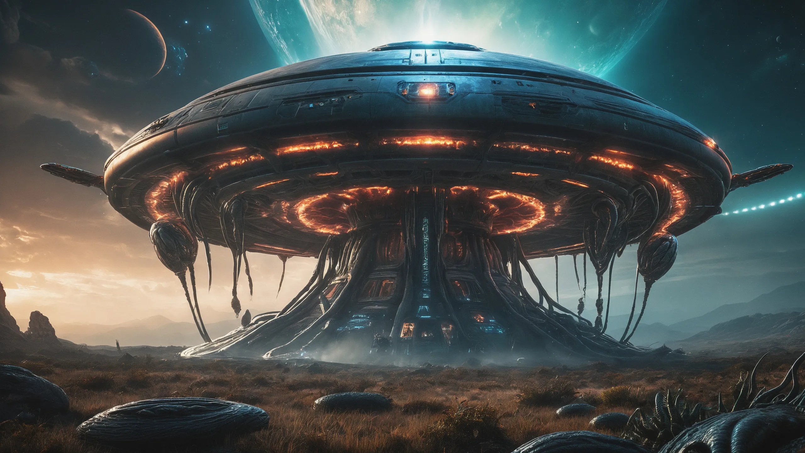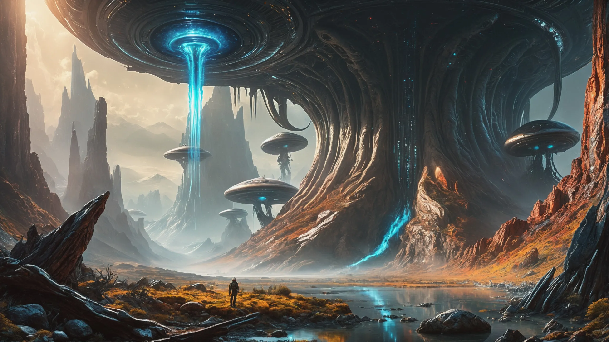 Cinematic epic scene of a (Sience Fiction, alien {mega city|cityscape|landscape|space station|outer space|world}:1.5).