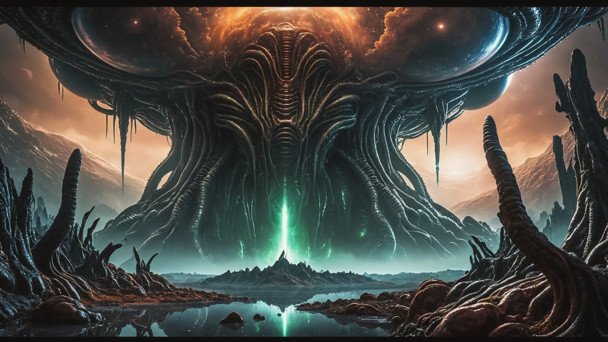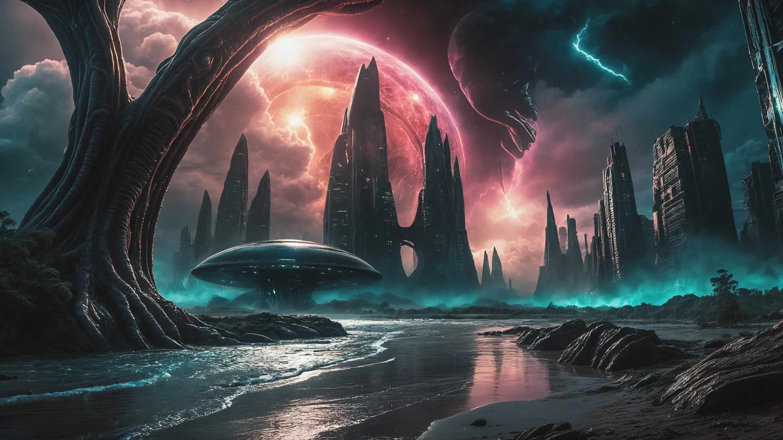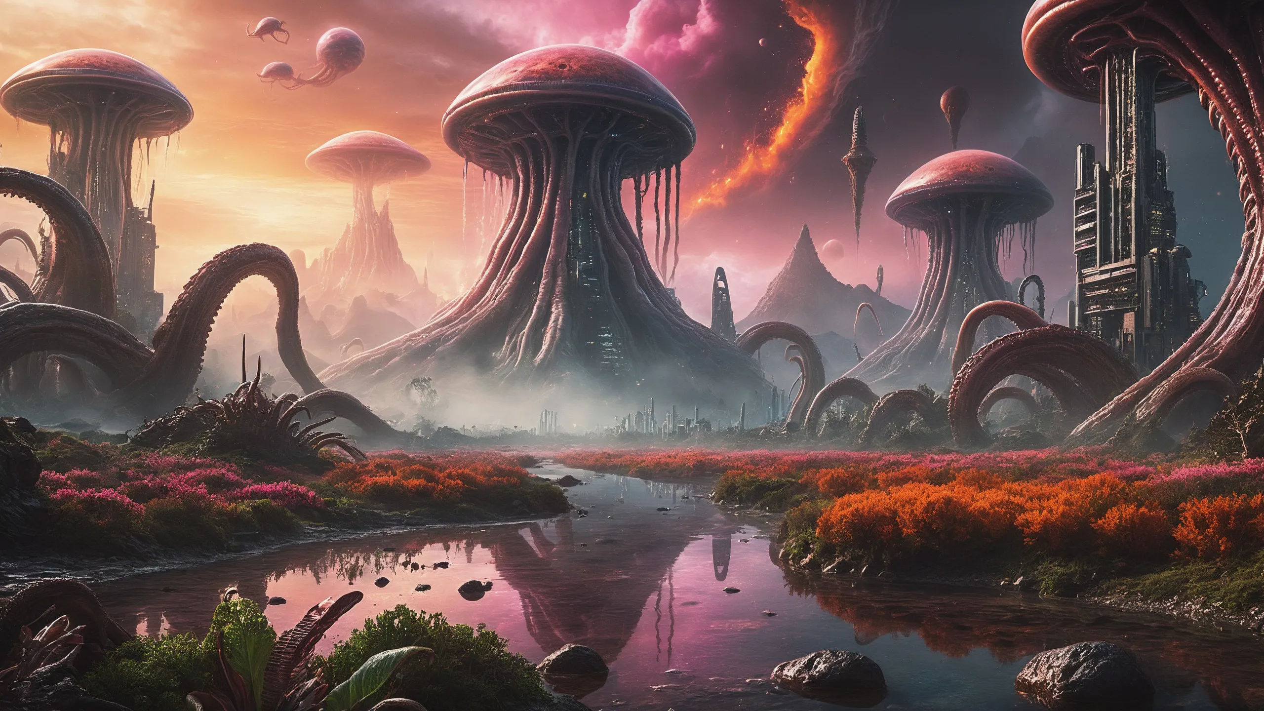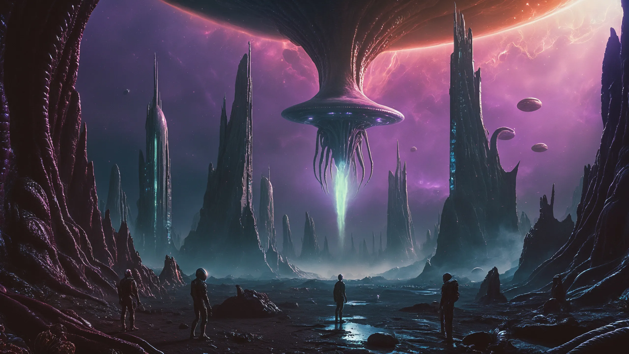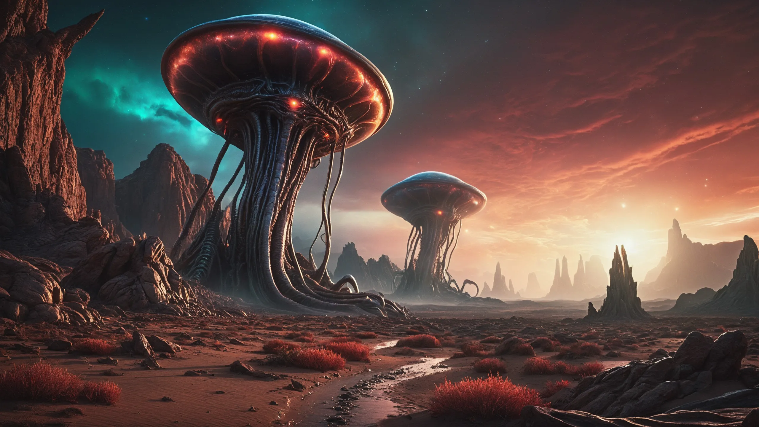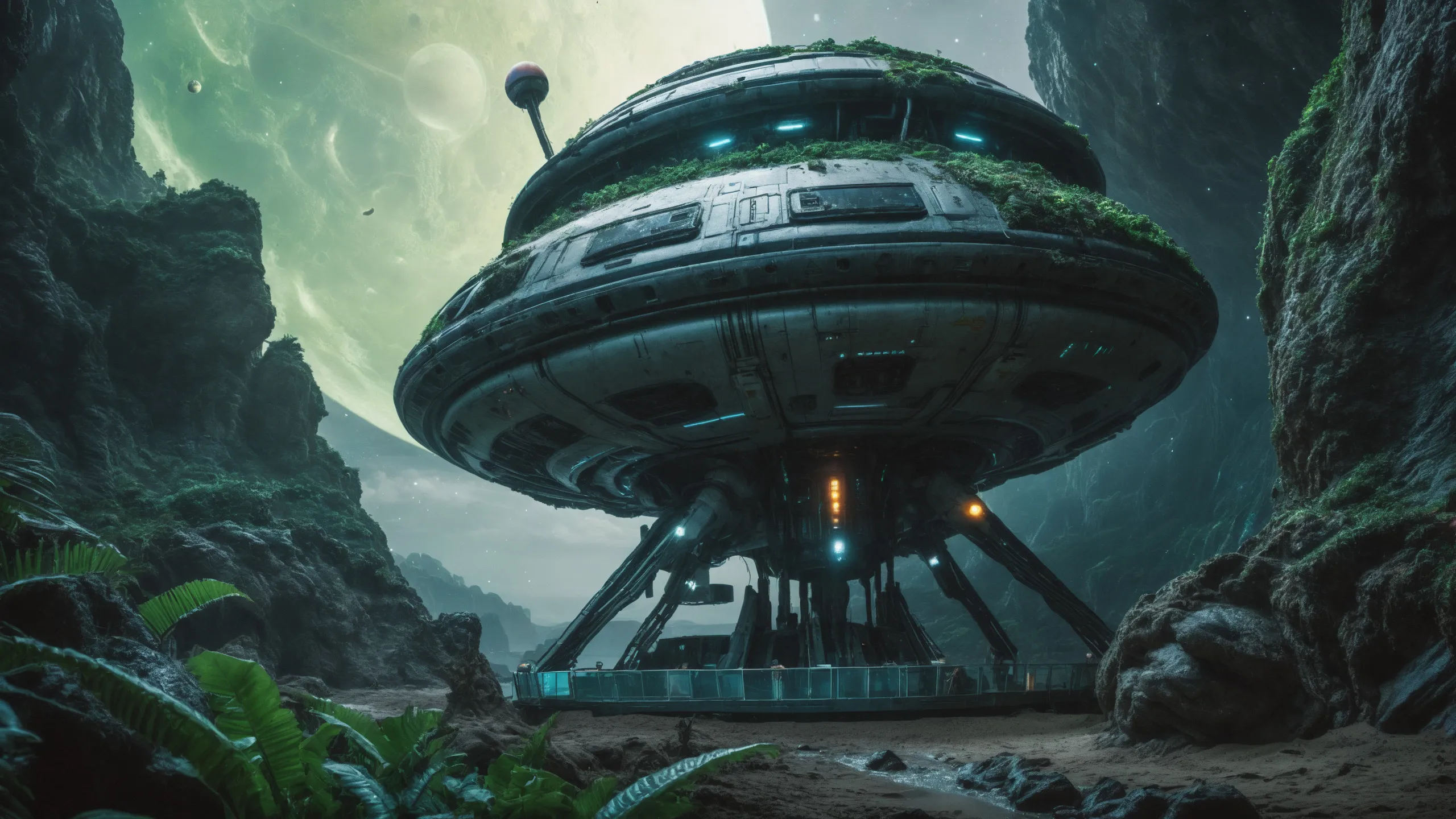 Cinematic epic scene of a (Sience Fiction, alien {mega city|cityscape|landscape|space station|outer space|world}:1.5).