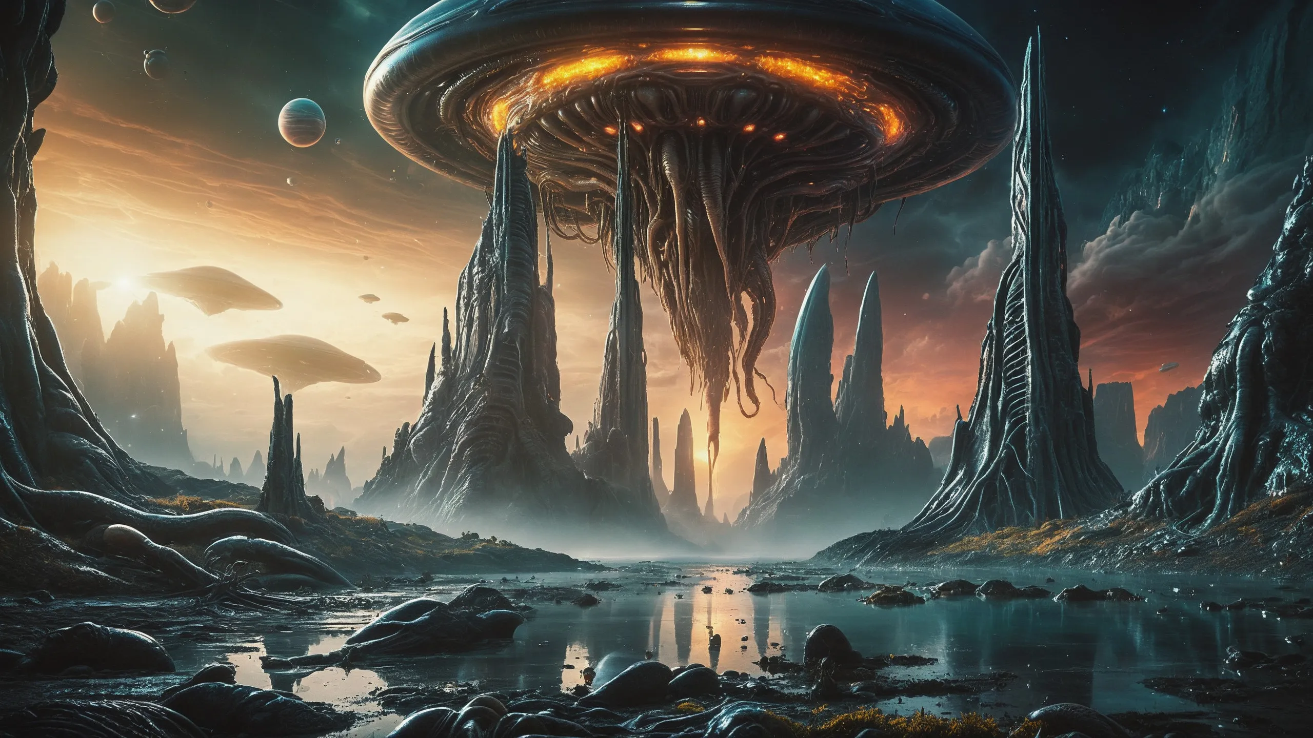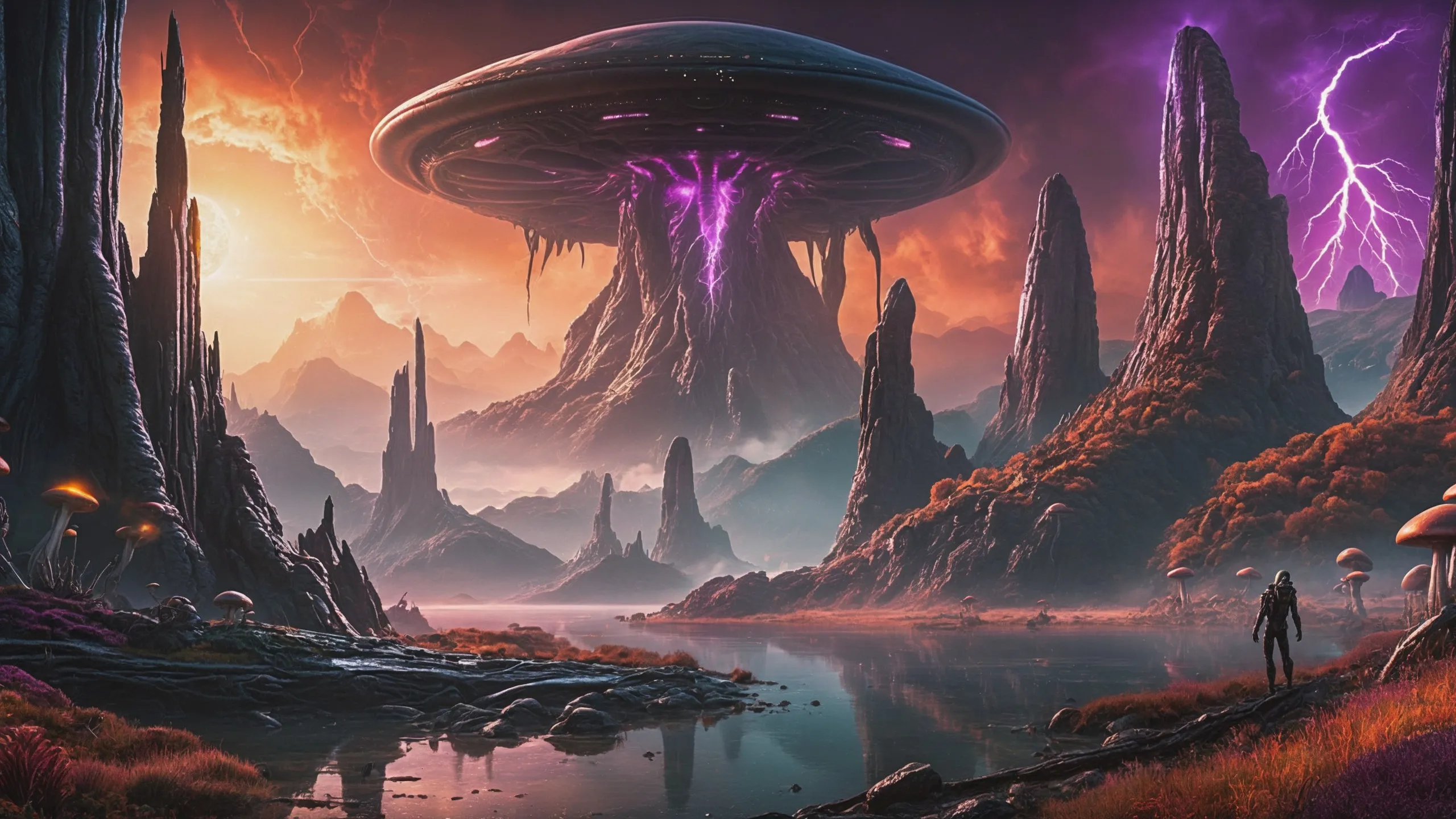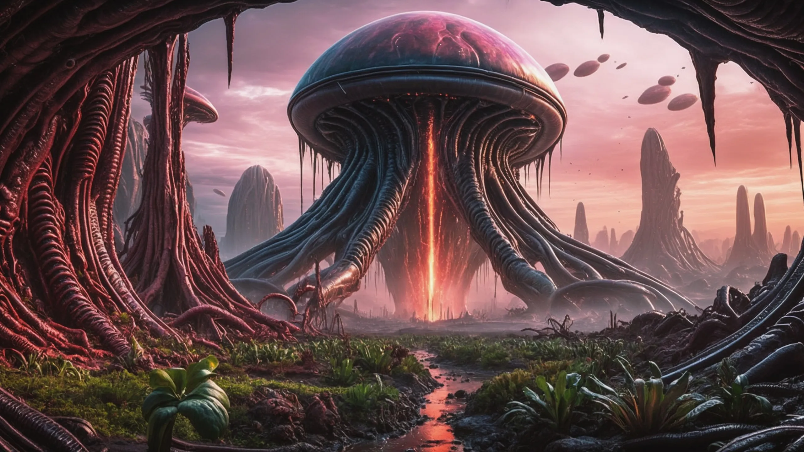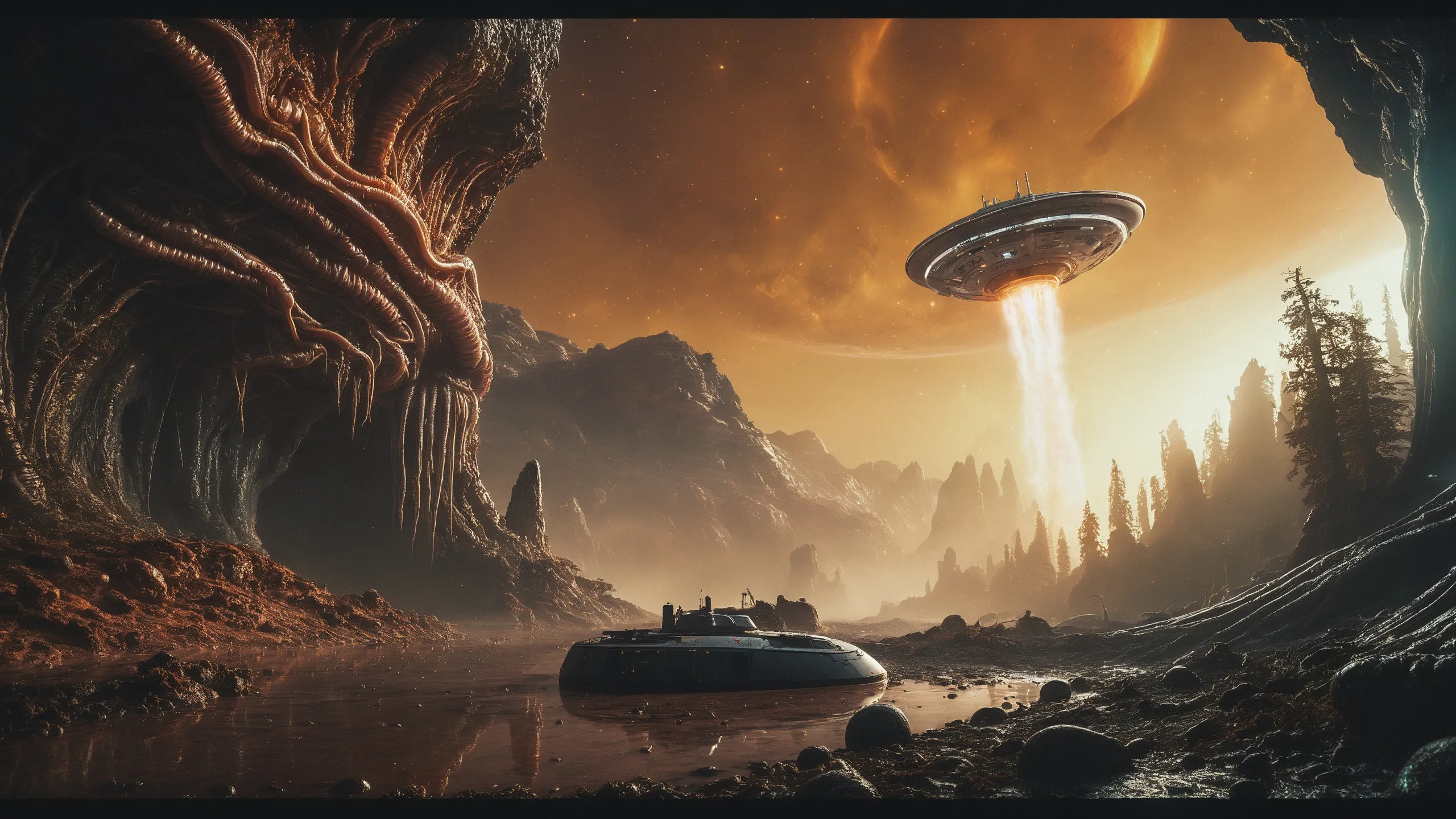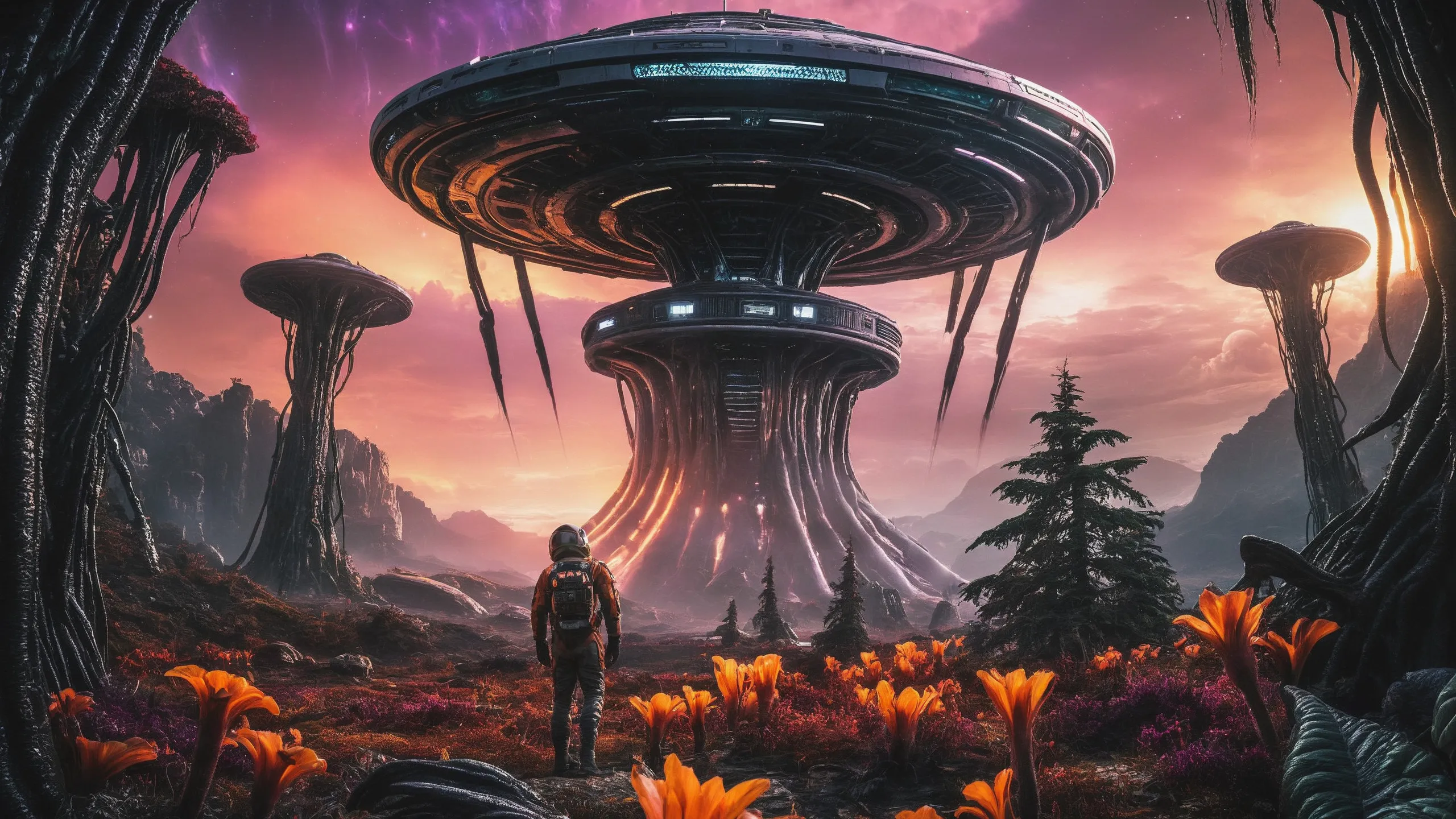 Cinematic epic scene of a (Sience Fiction, alien {mega city|cityscape|landscape|space station|outer space|world}:1.5).
