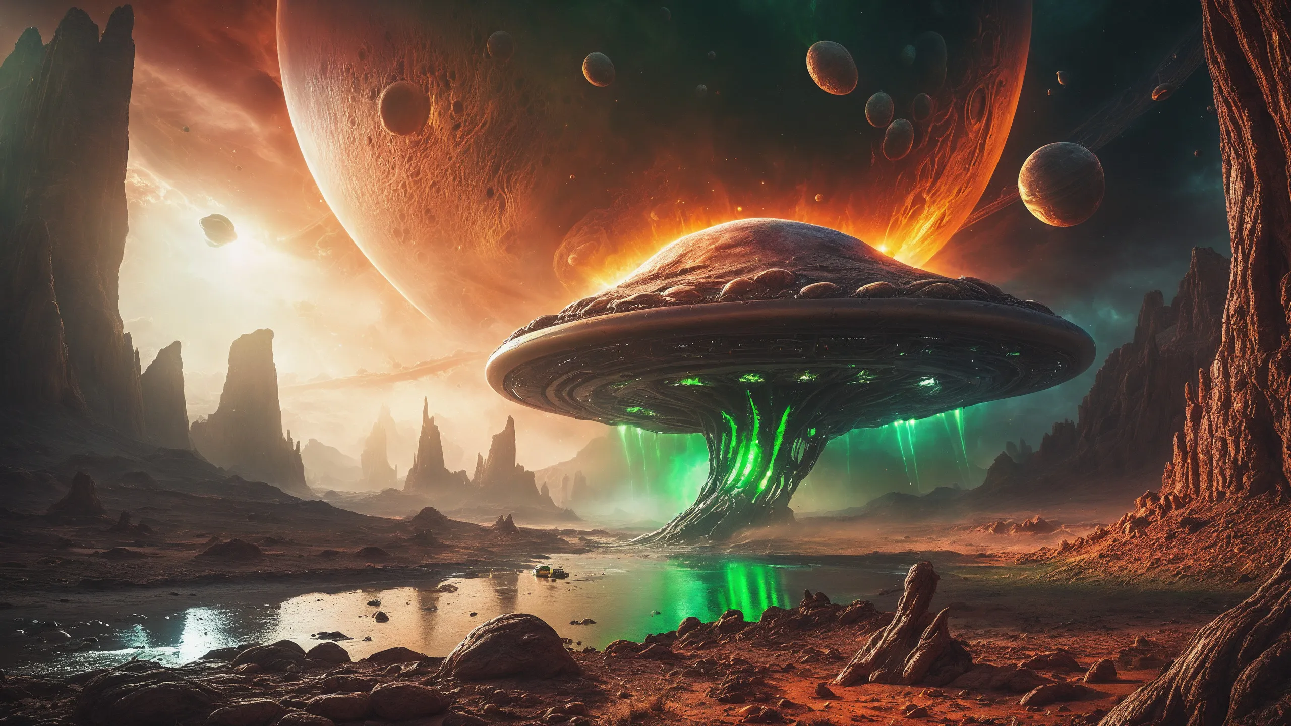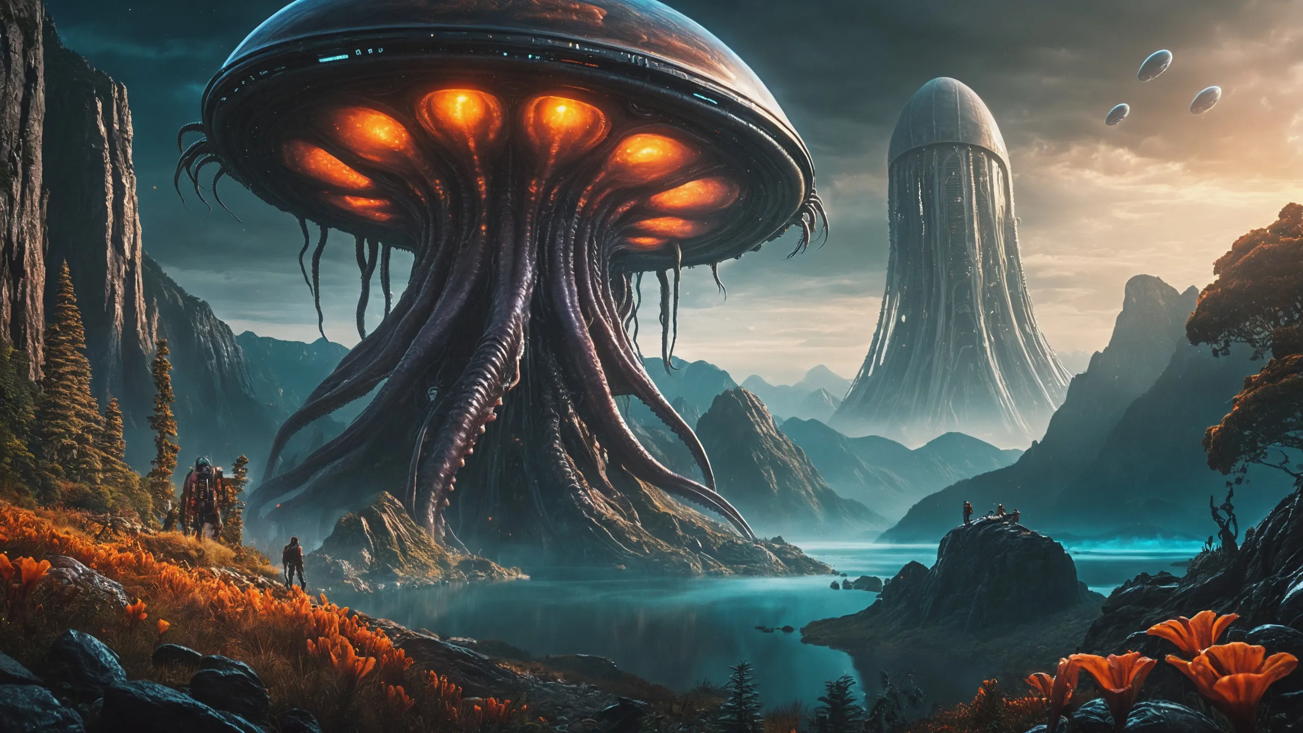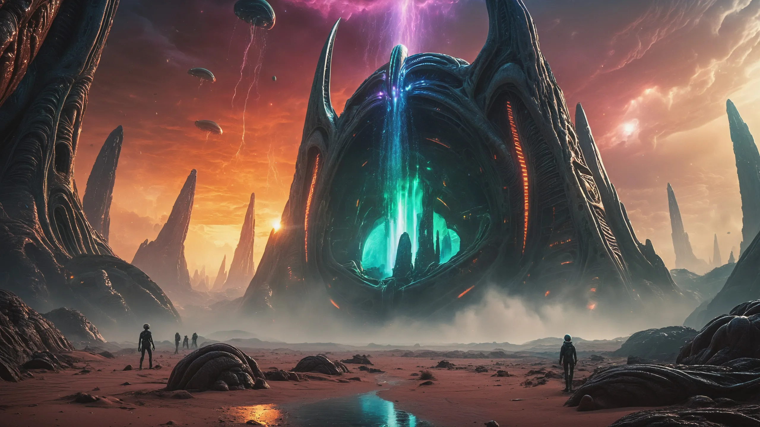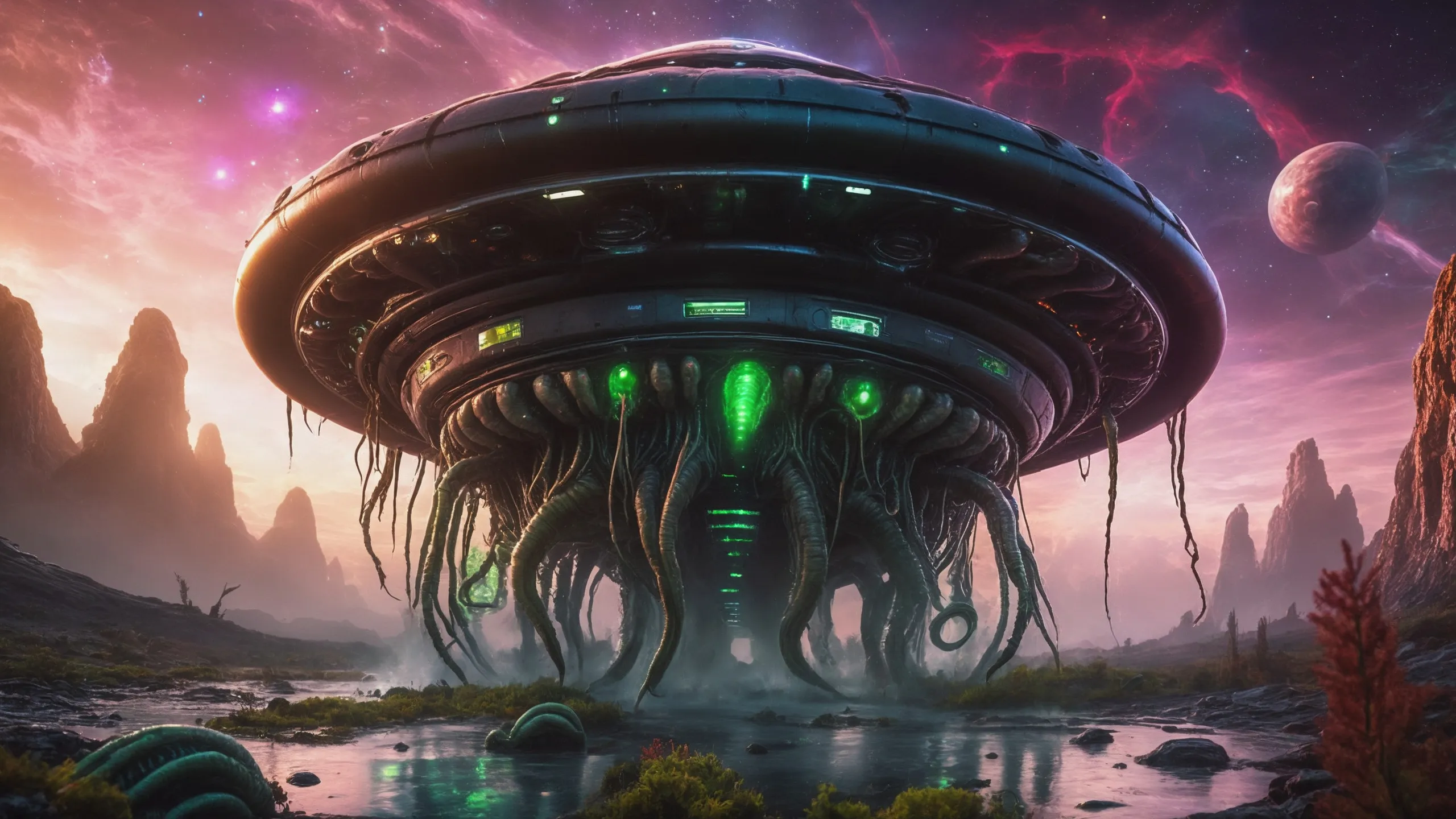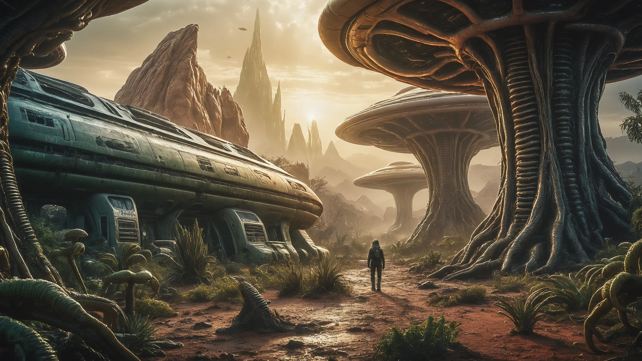 Cinematic epic scene of a (Sience Fiction, alien {mega city|cityscape|landscape|space station|outer space|world}:1.5).