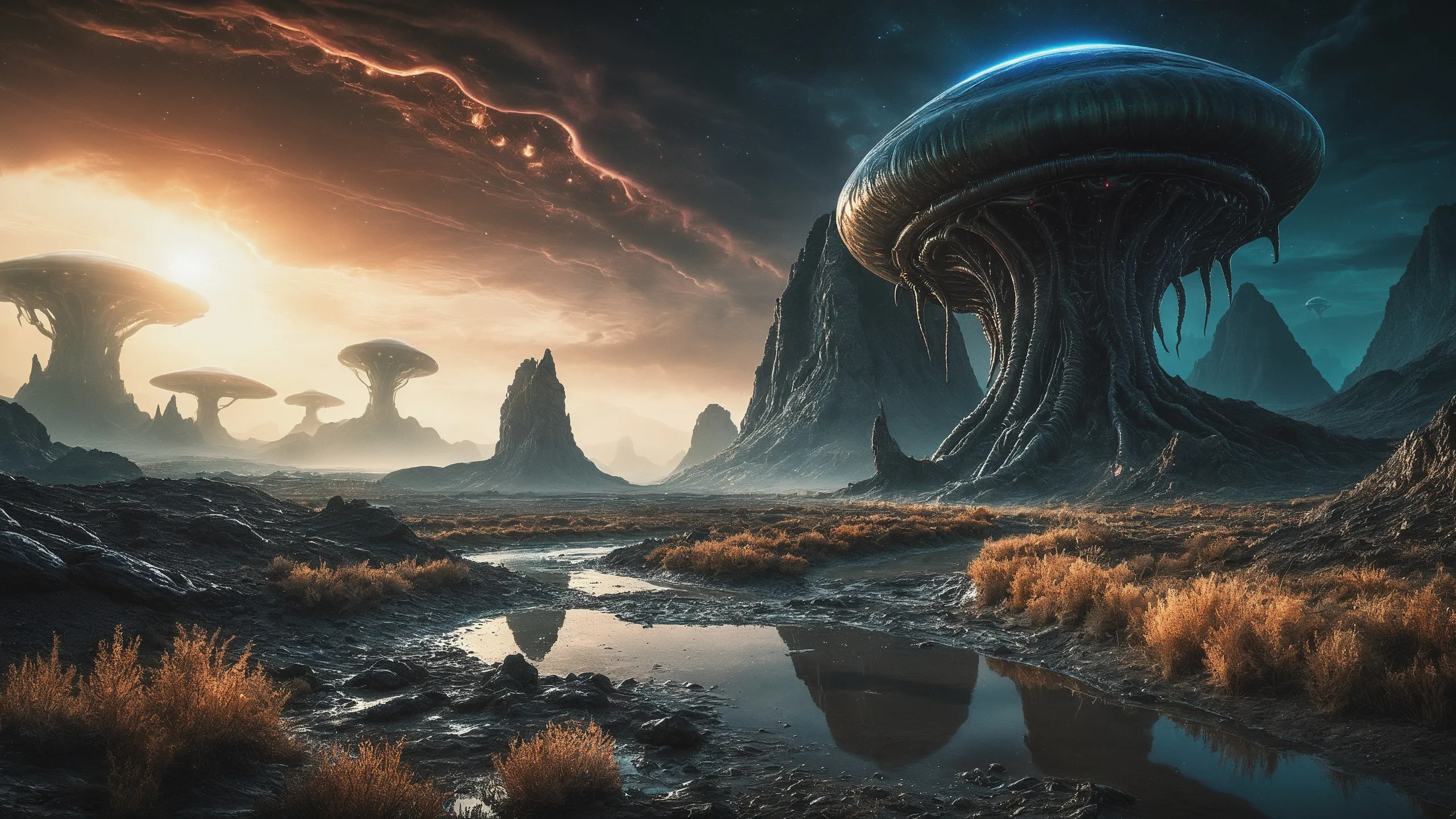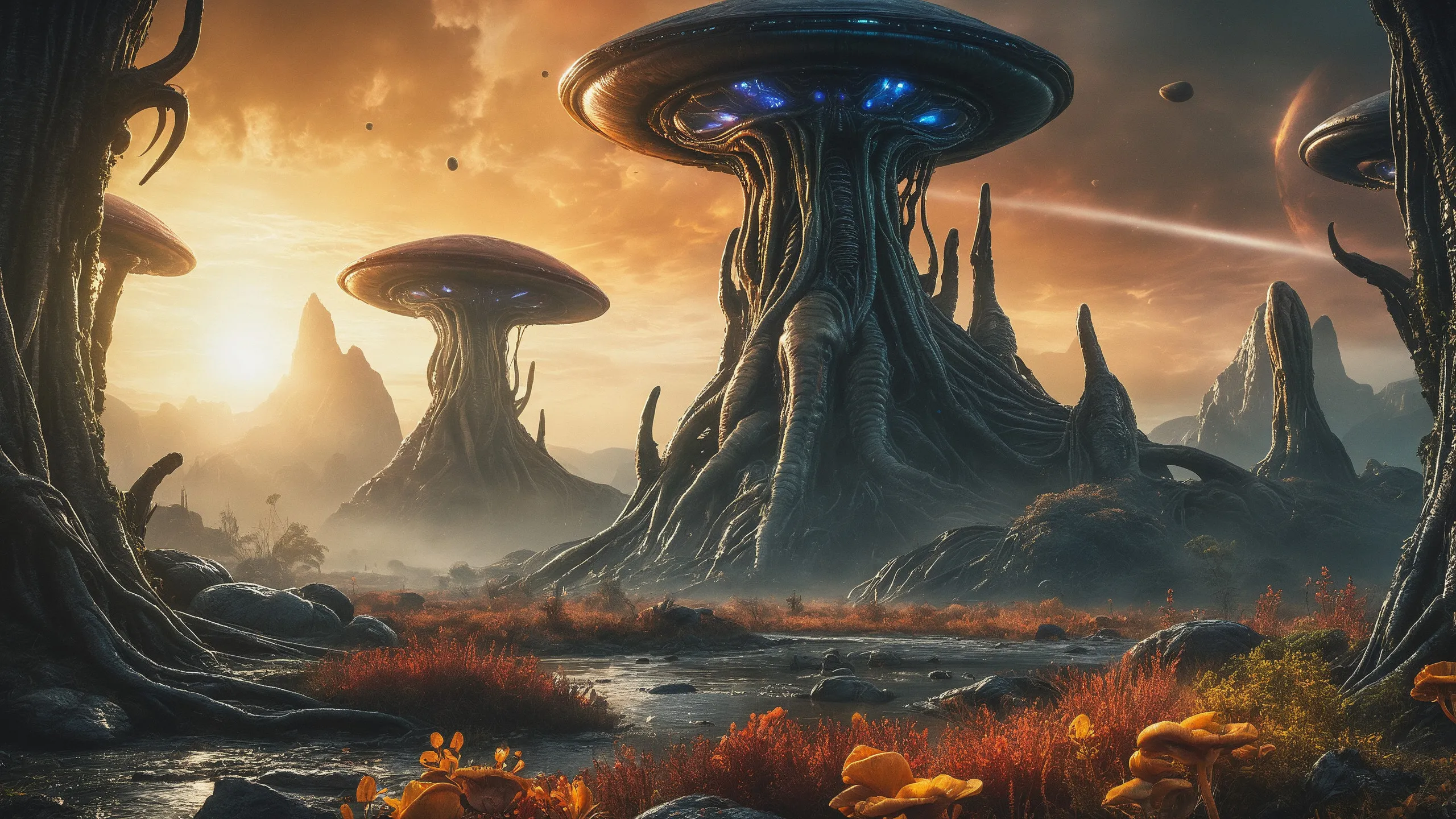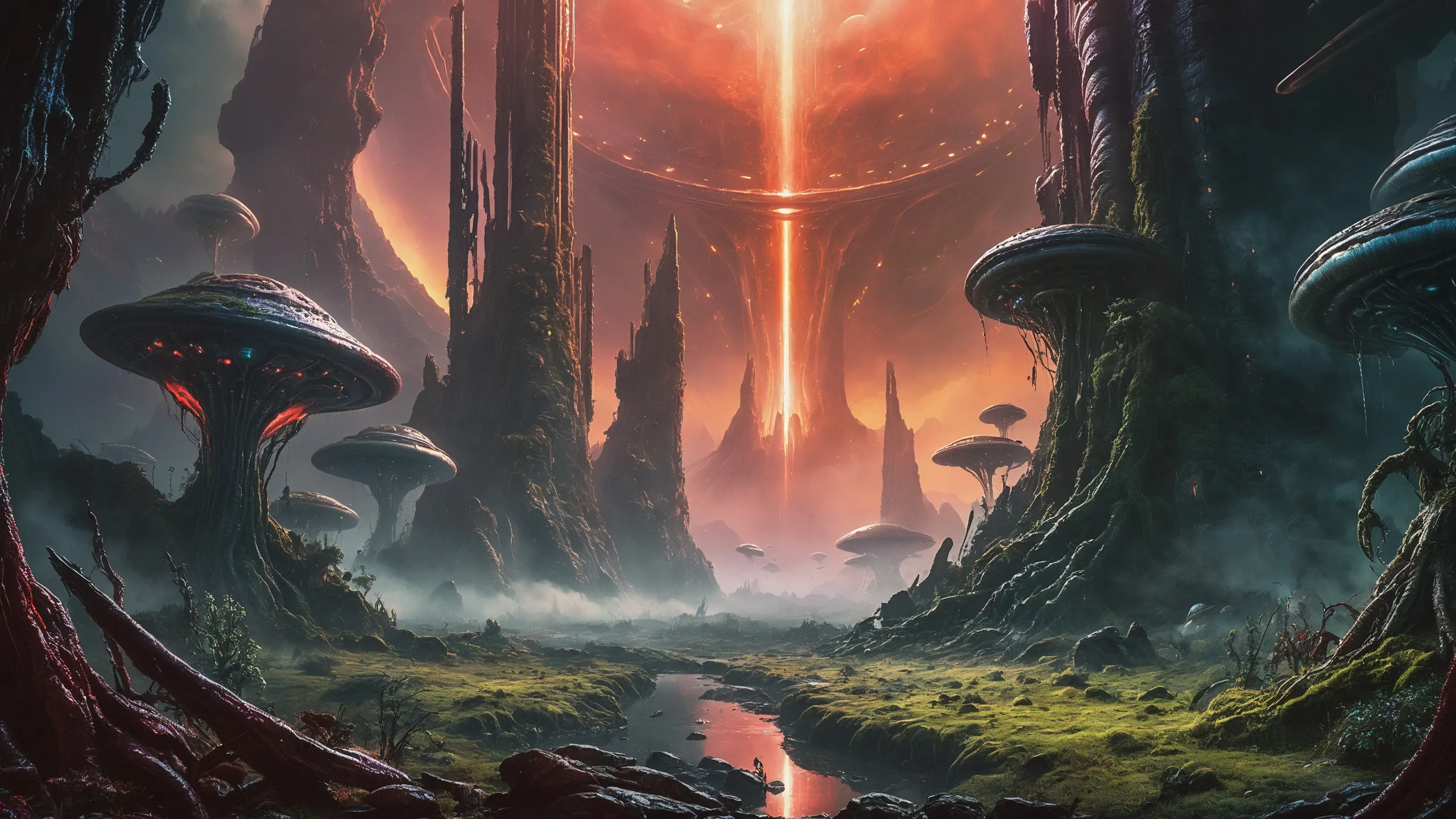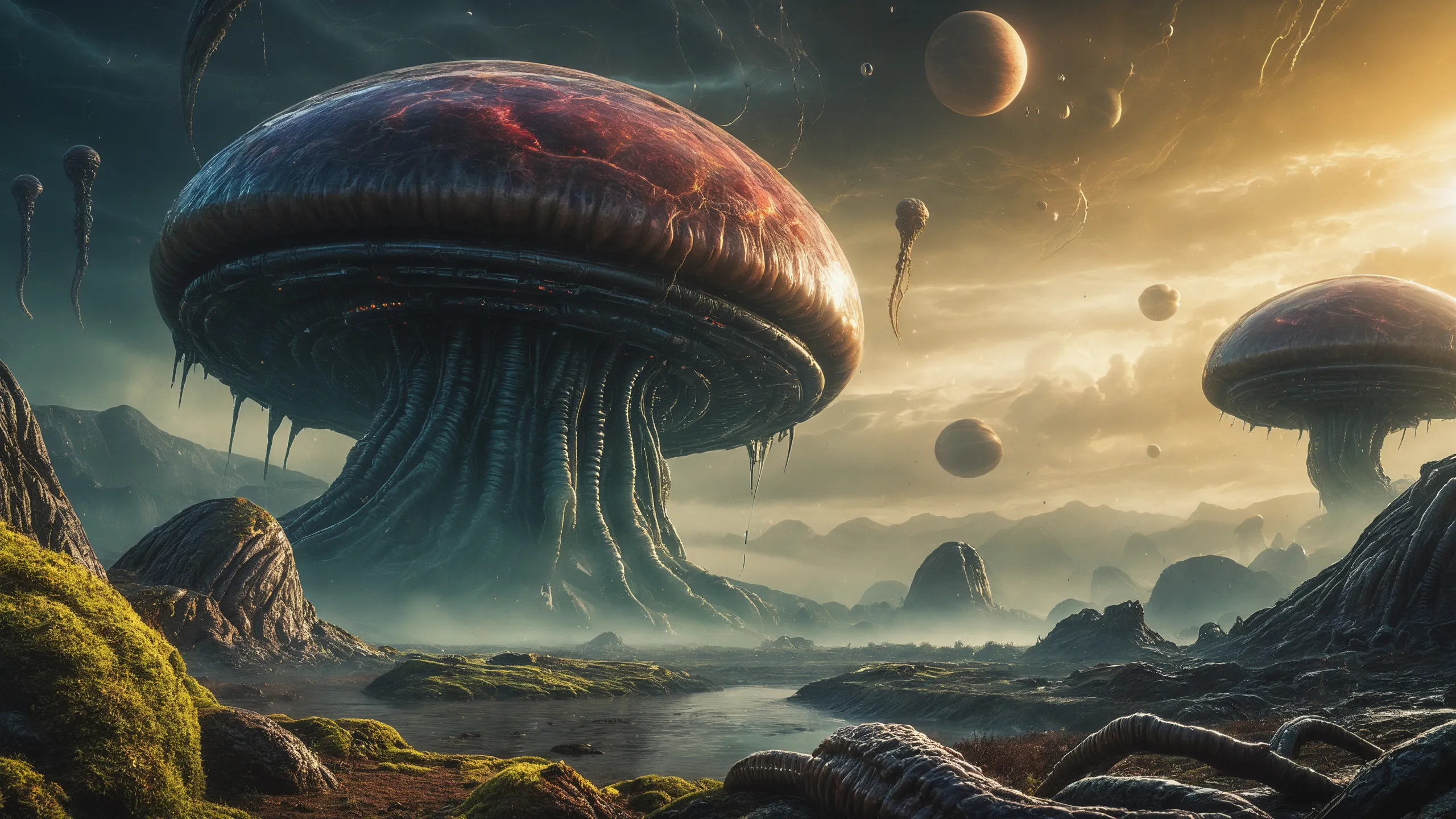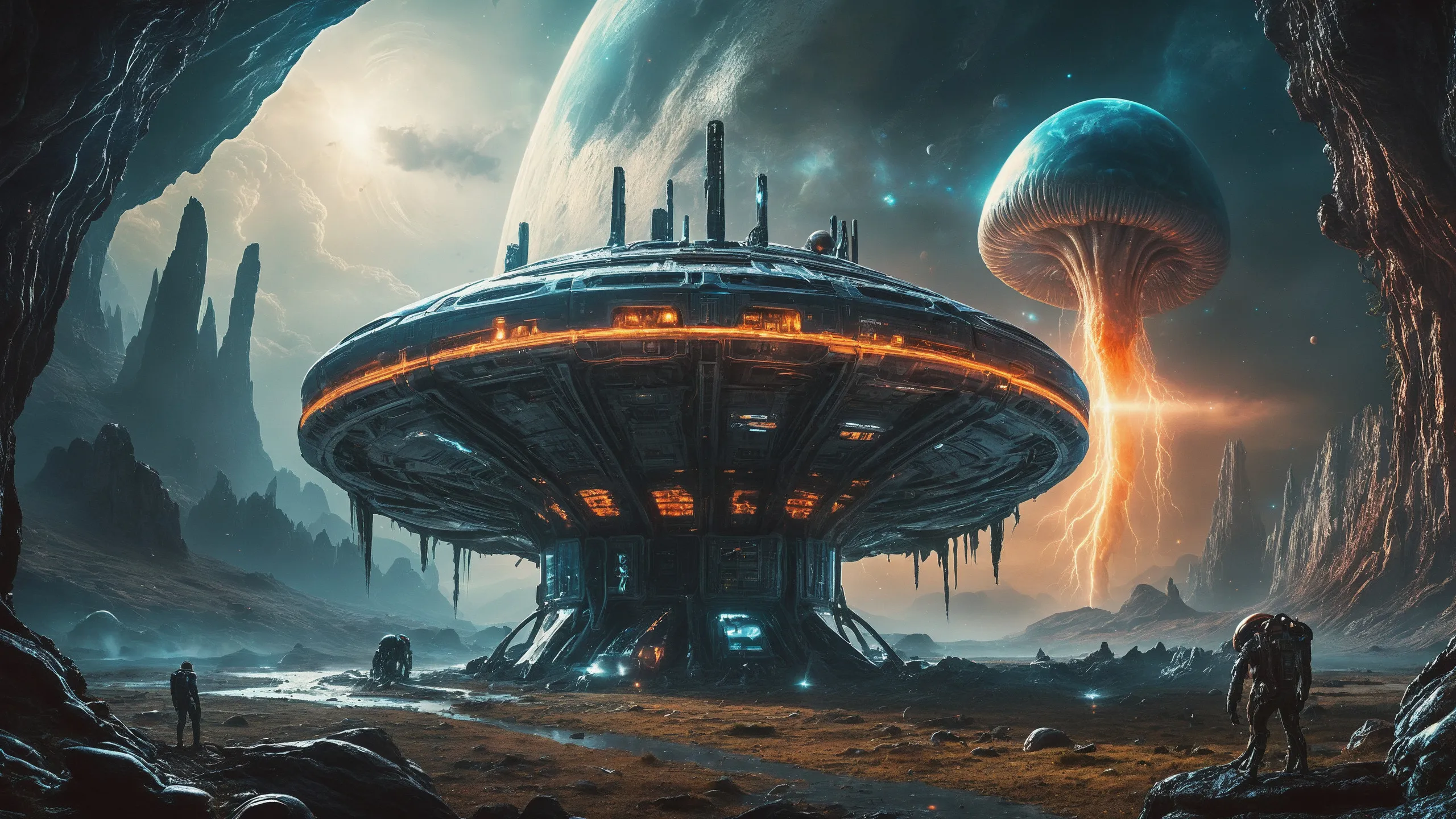 Cinematic epic scene of a (Sience Fiction, alien {mega city|cityscape|landscape|space station|outer space|world}:1.5).