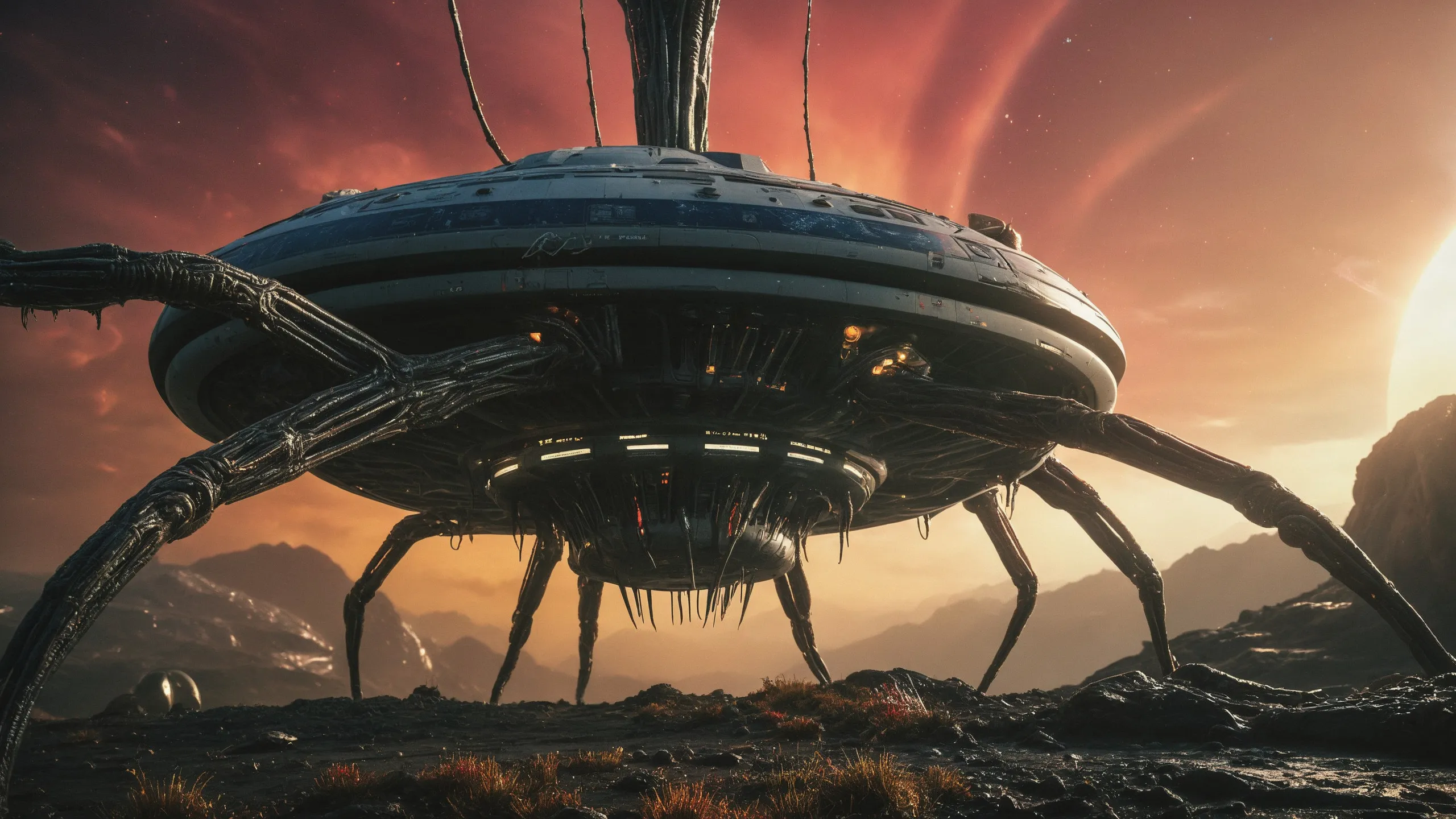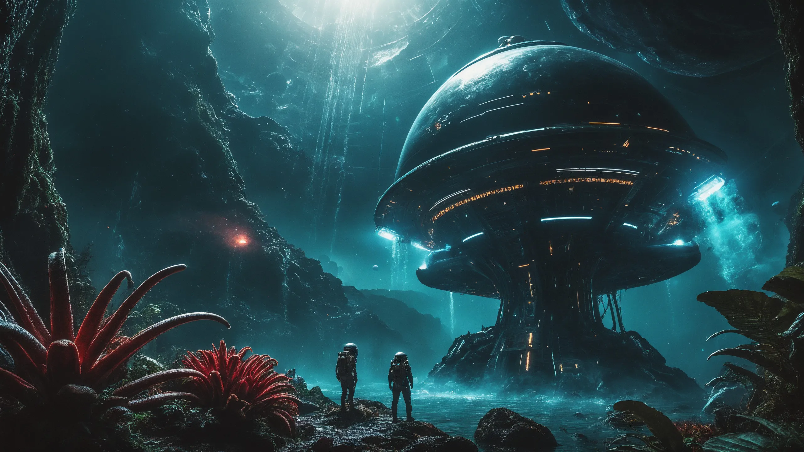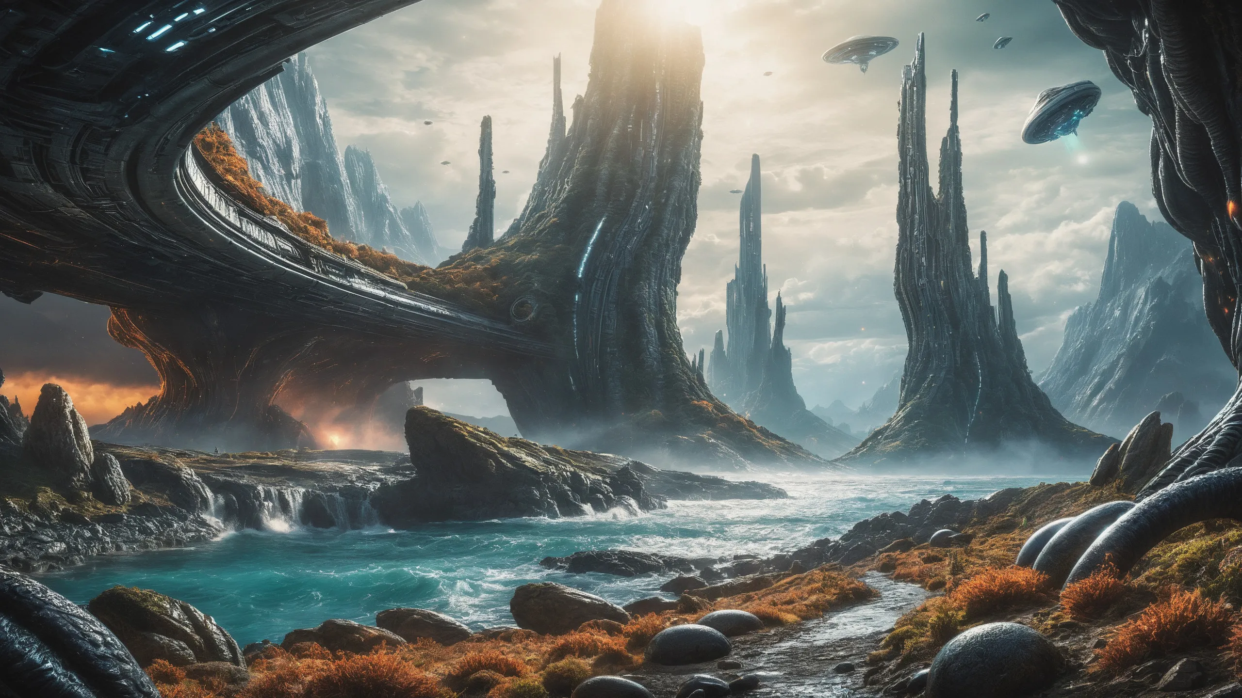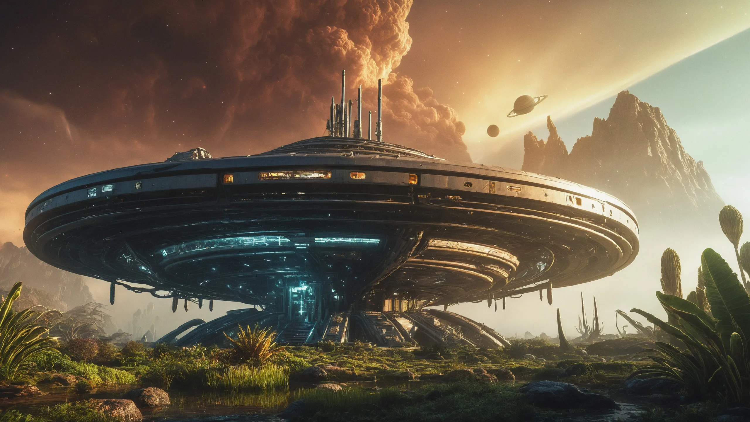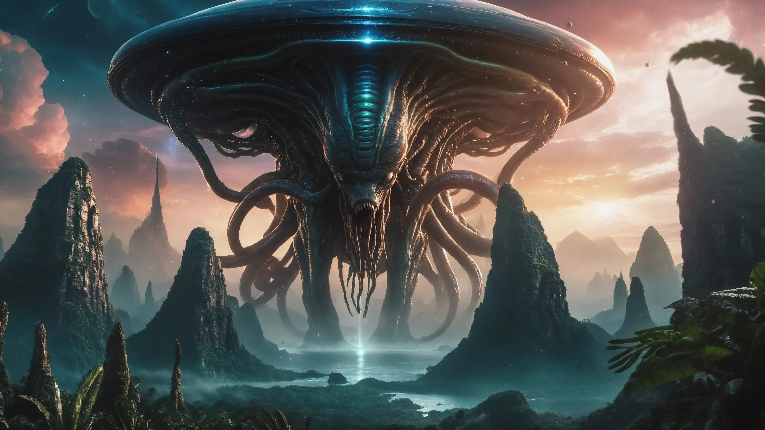 Cinematic epic scene of a (Sience Fiction, alien {mega city|cityscape|landscape|space station|outer space|world}:1.5).
