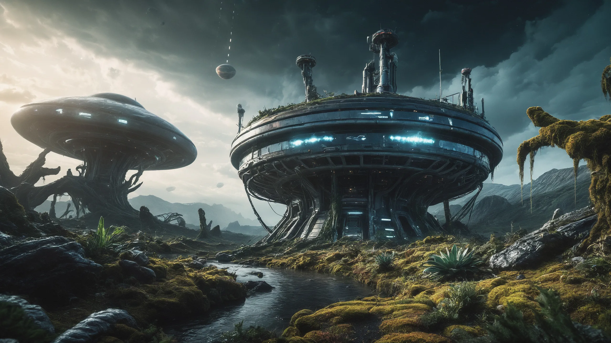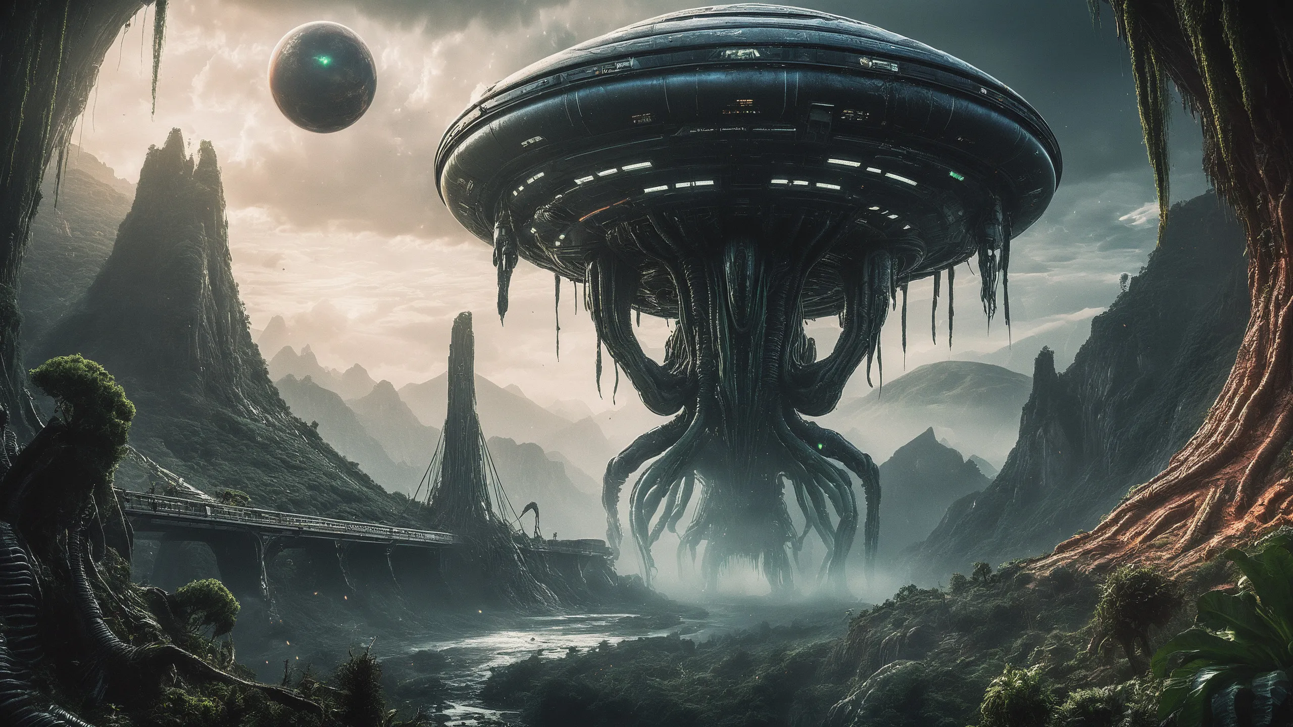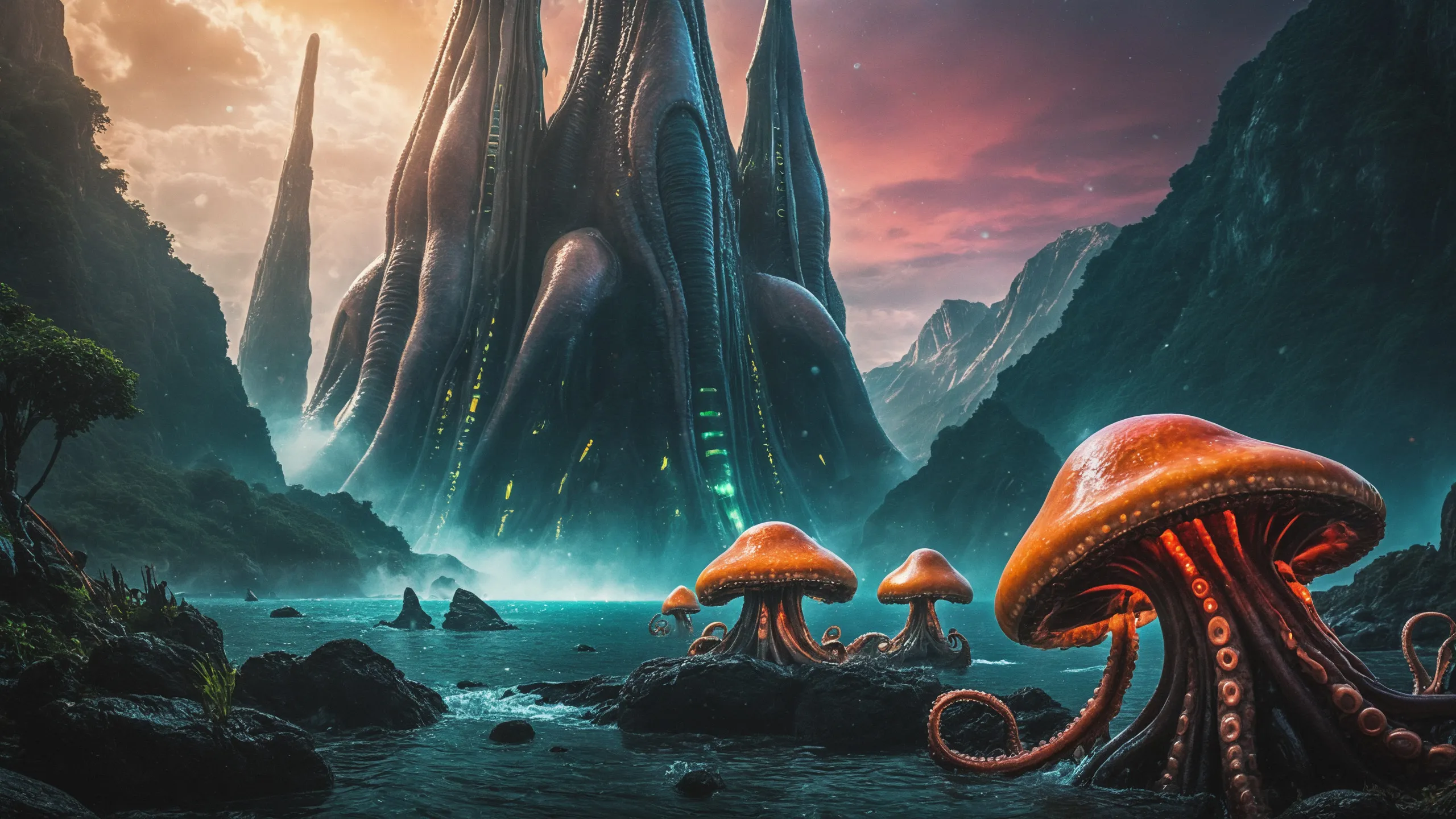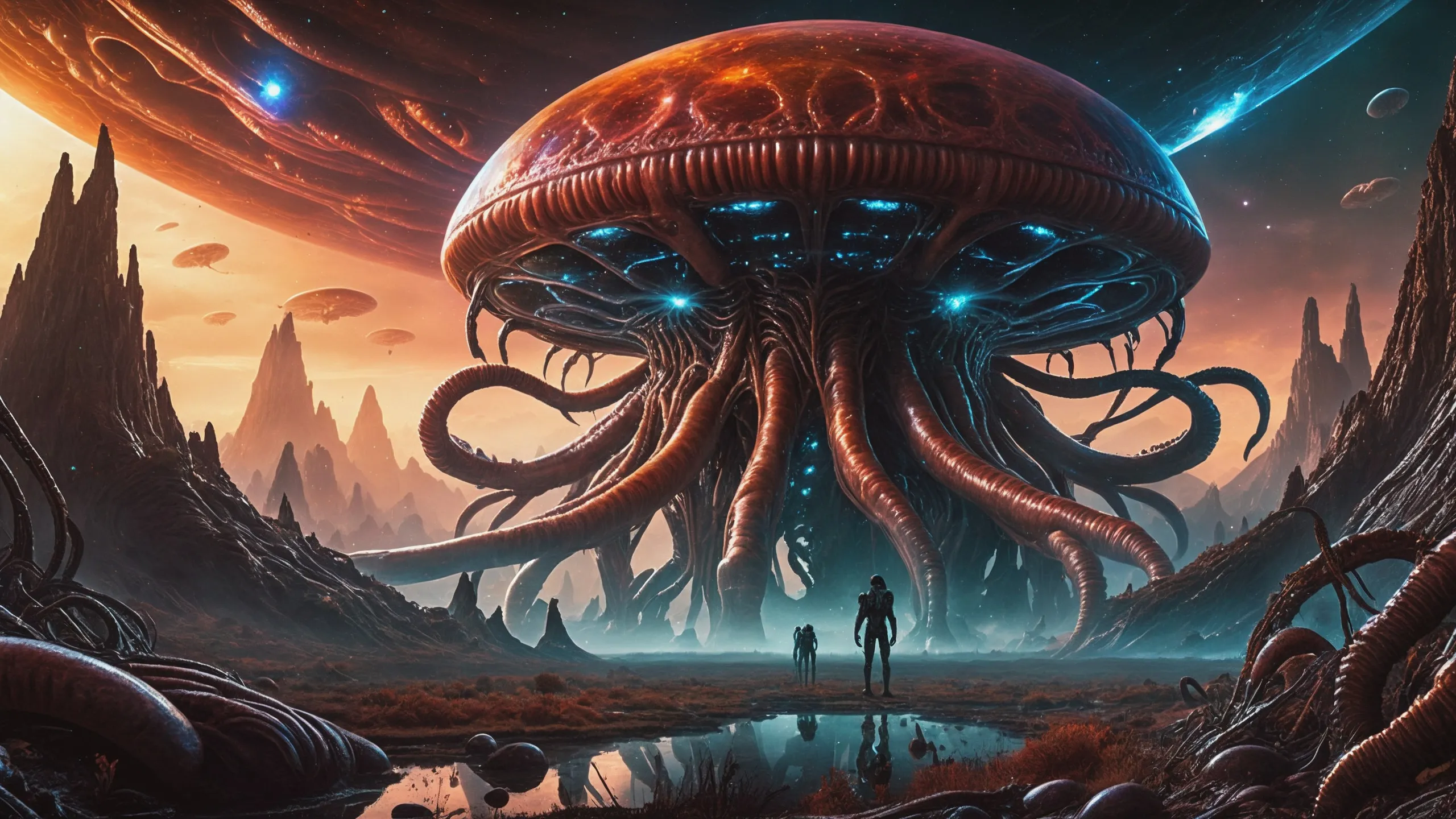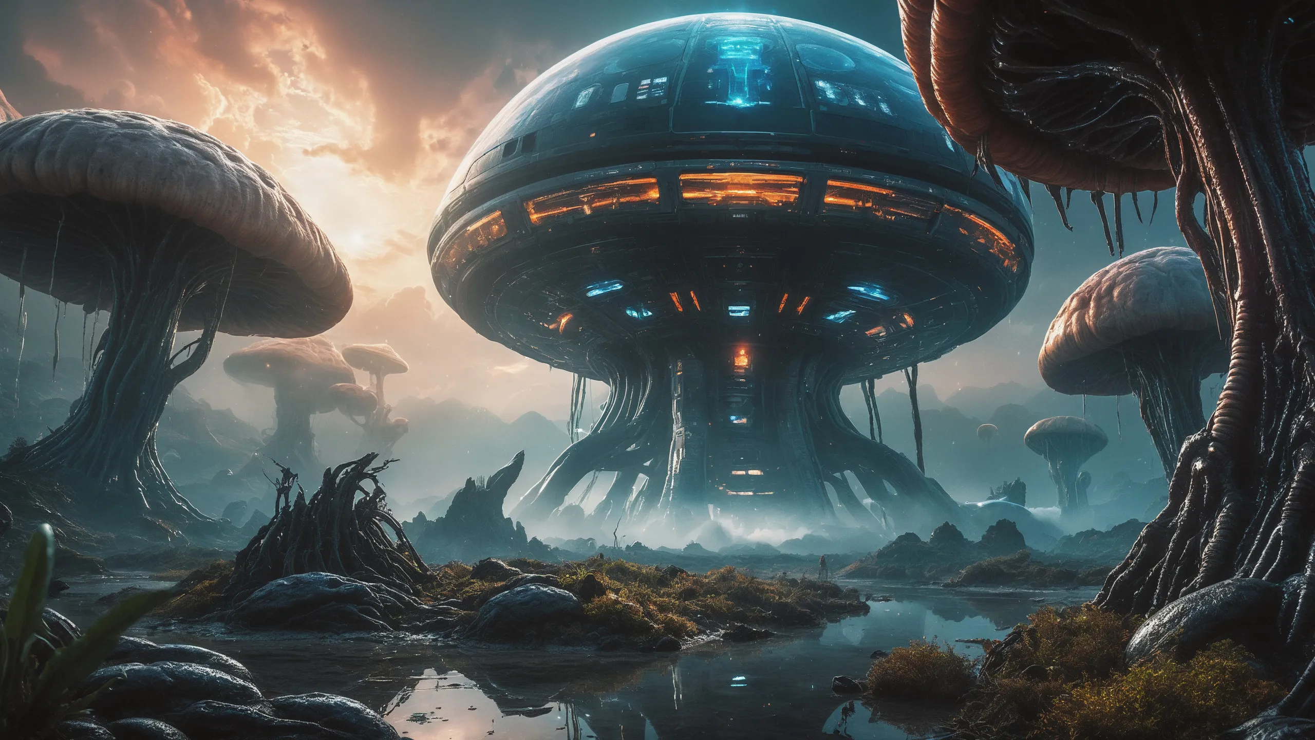 Cinematic epic scene of a (Sience Fiction, alien {mega city|cityscape|landscape|space station|outer space|world}:1.5).