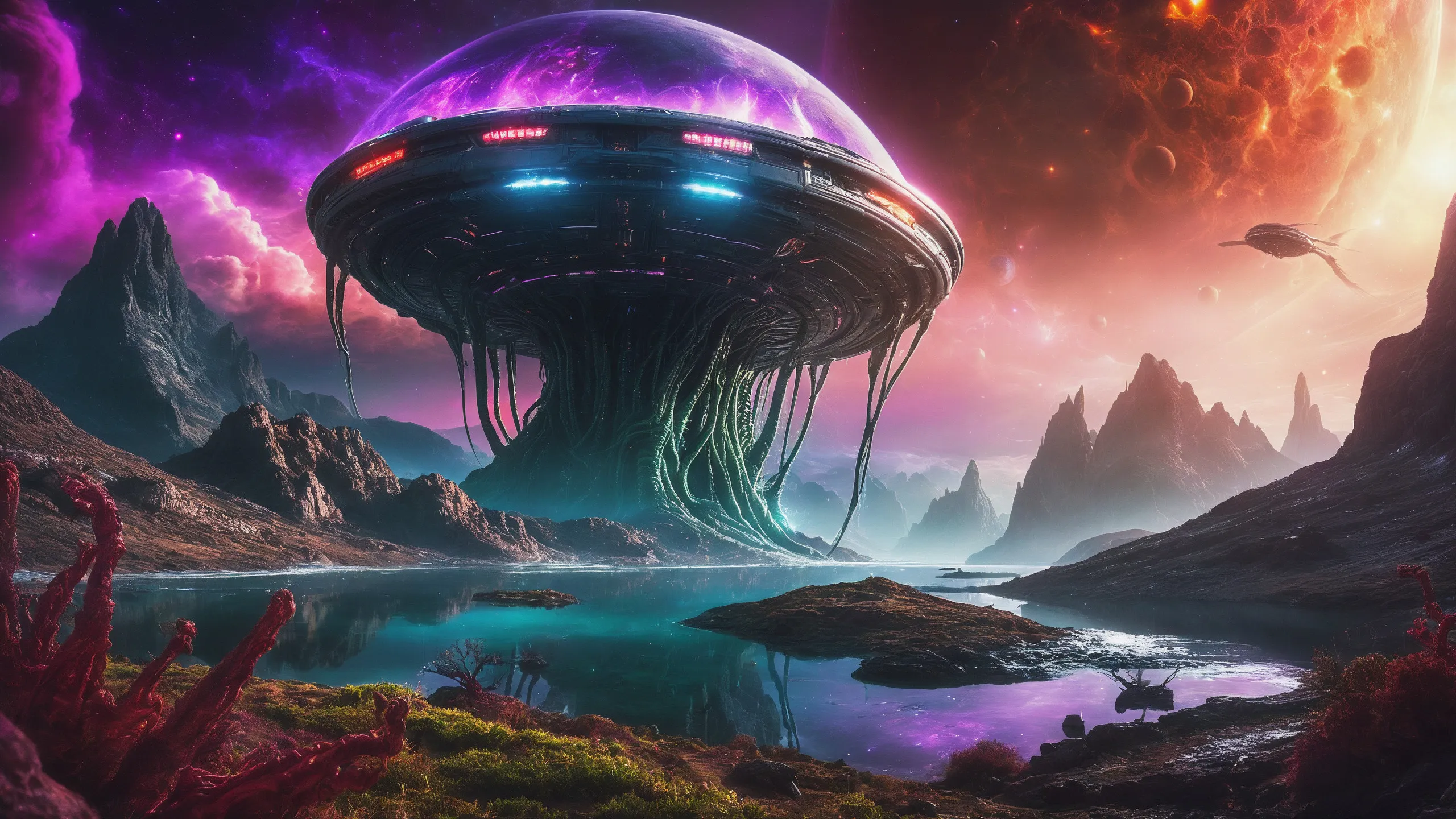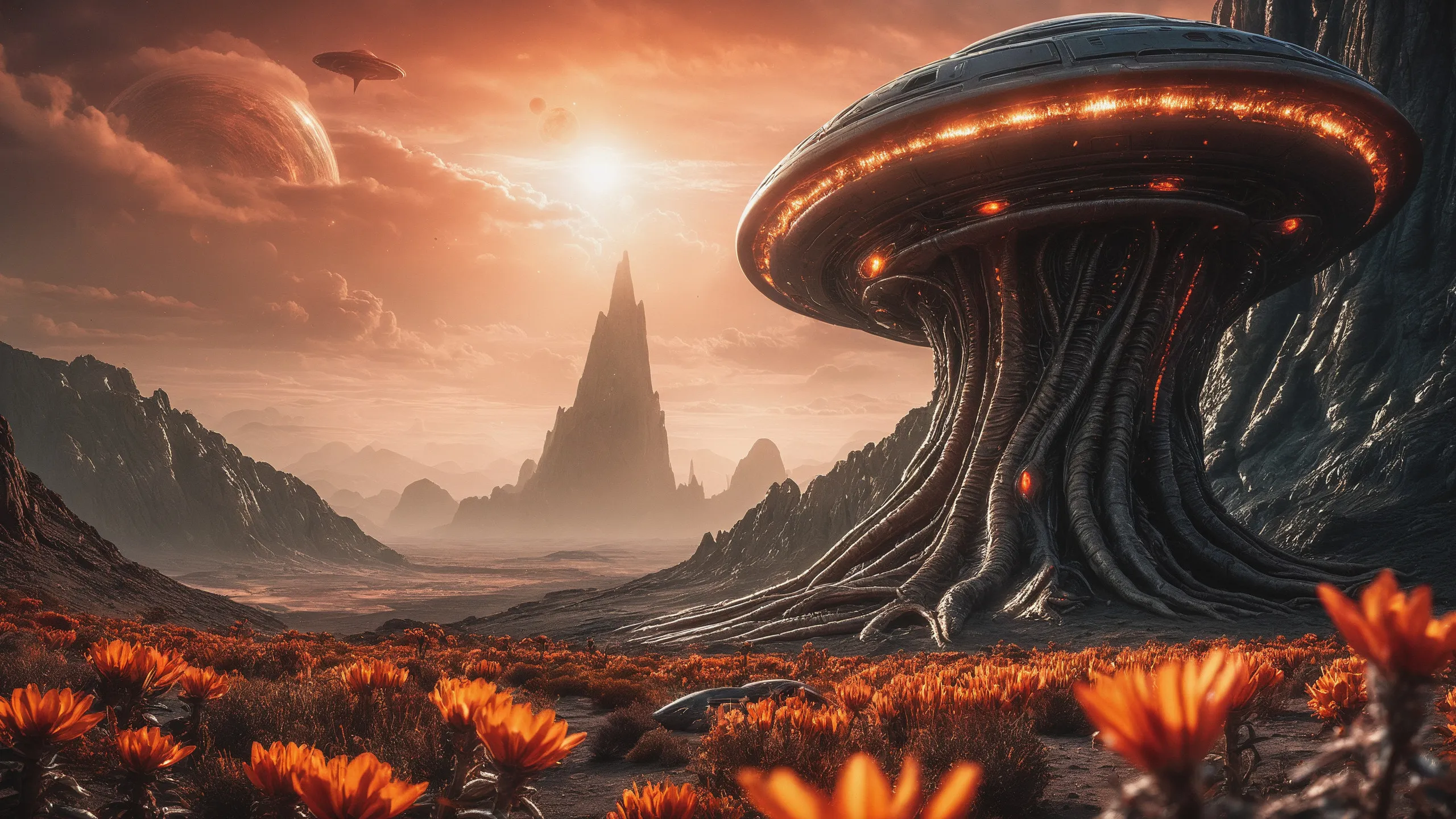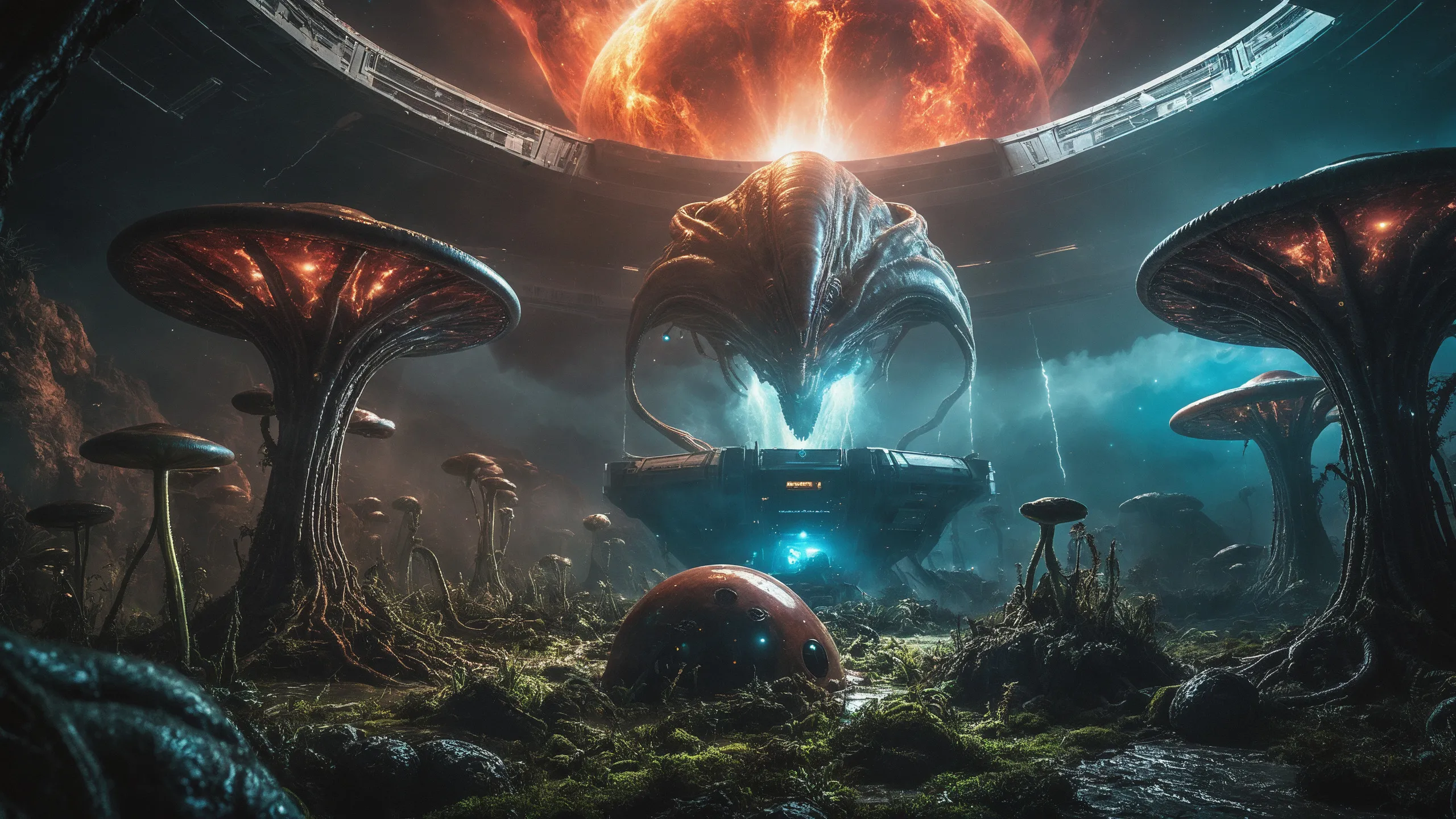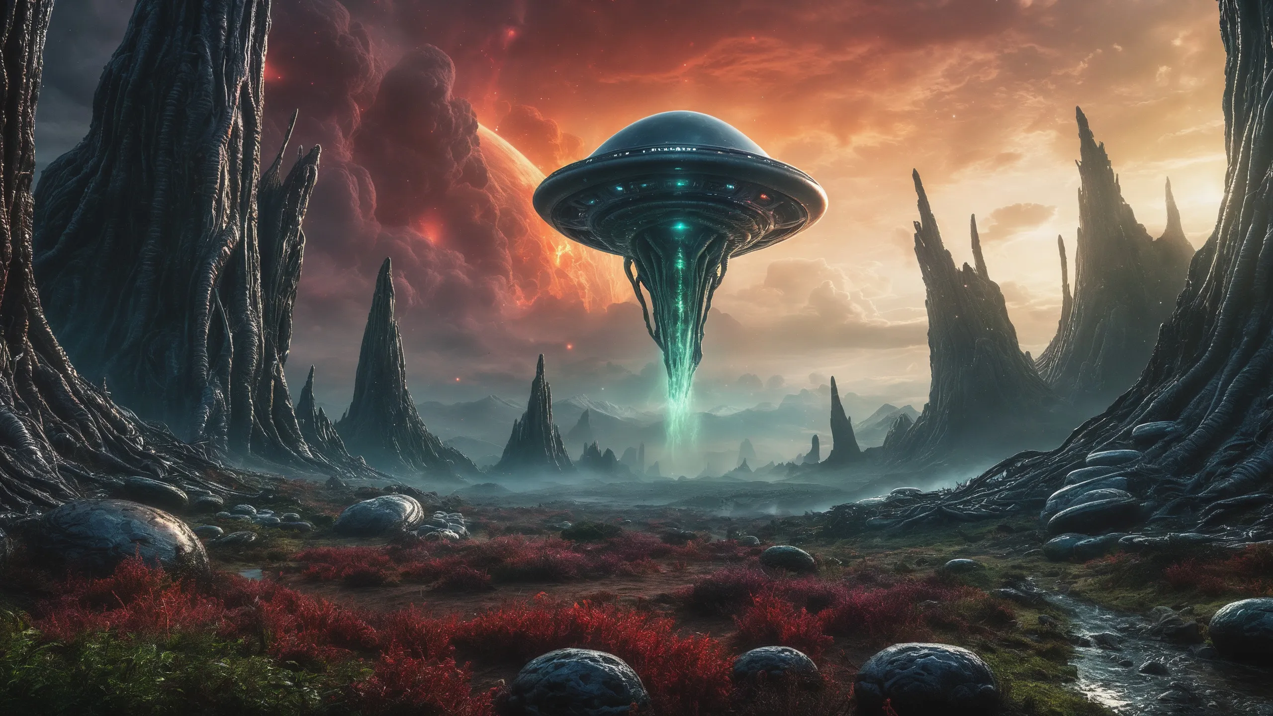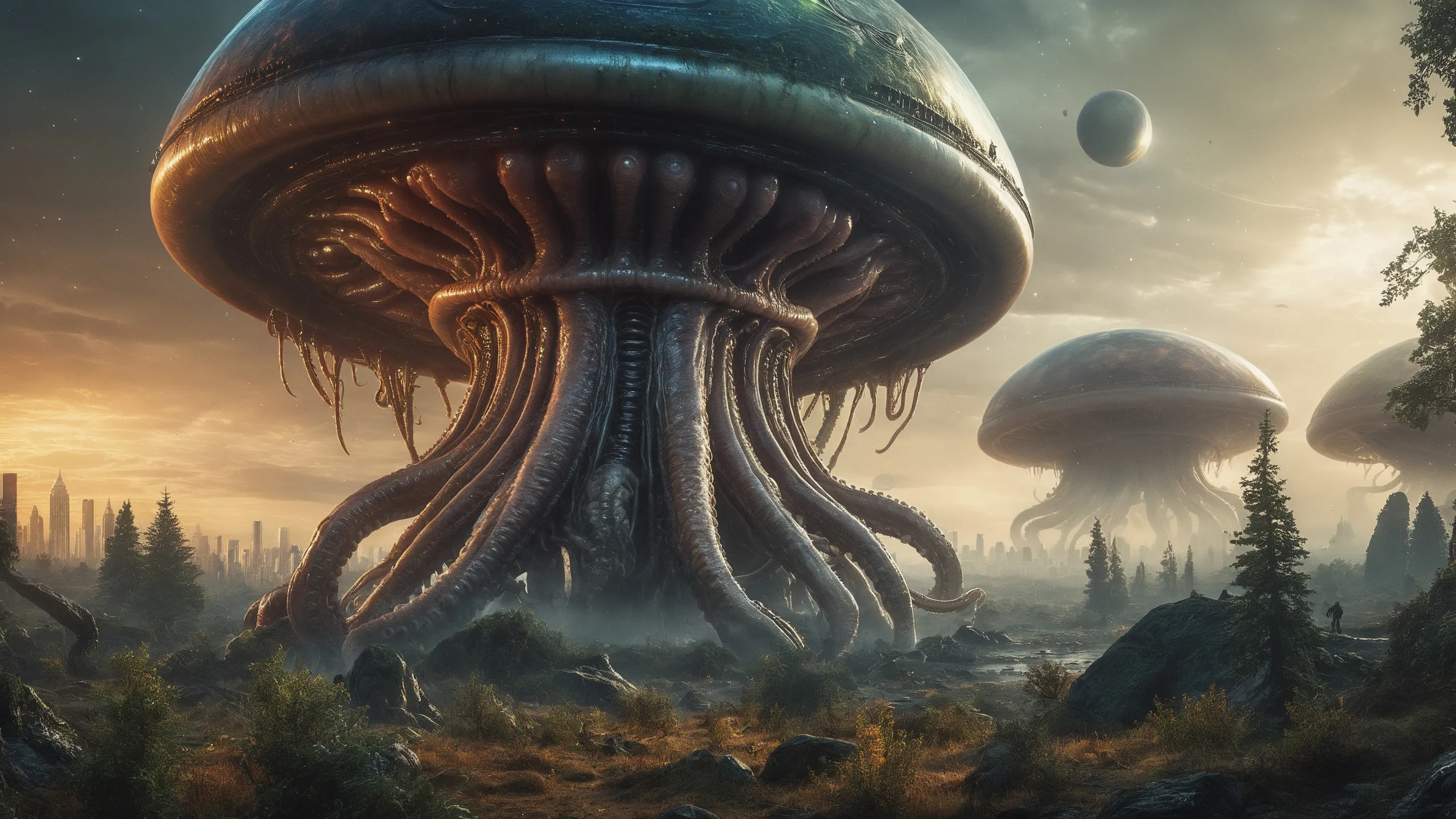 Cinematic epic scene of a (Sience Fiction, alien {mega city|cityscape|landscape|space station|outer space|world}:1.5).