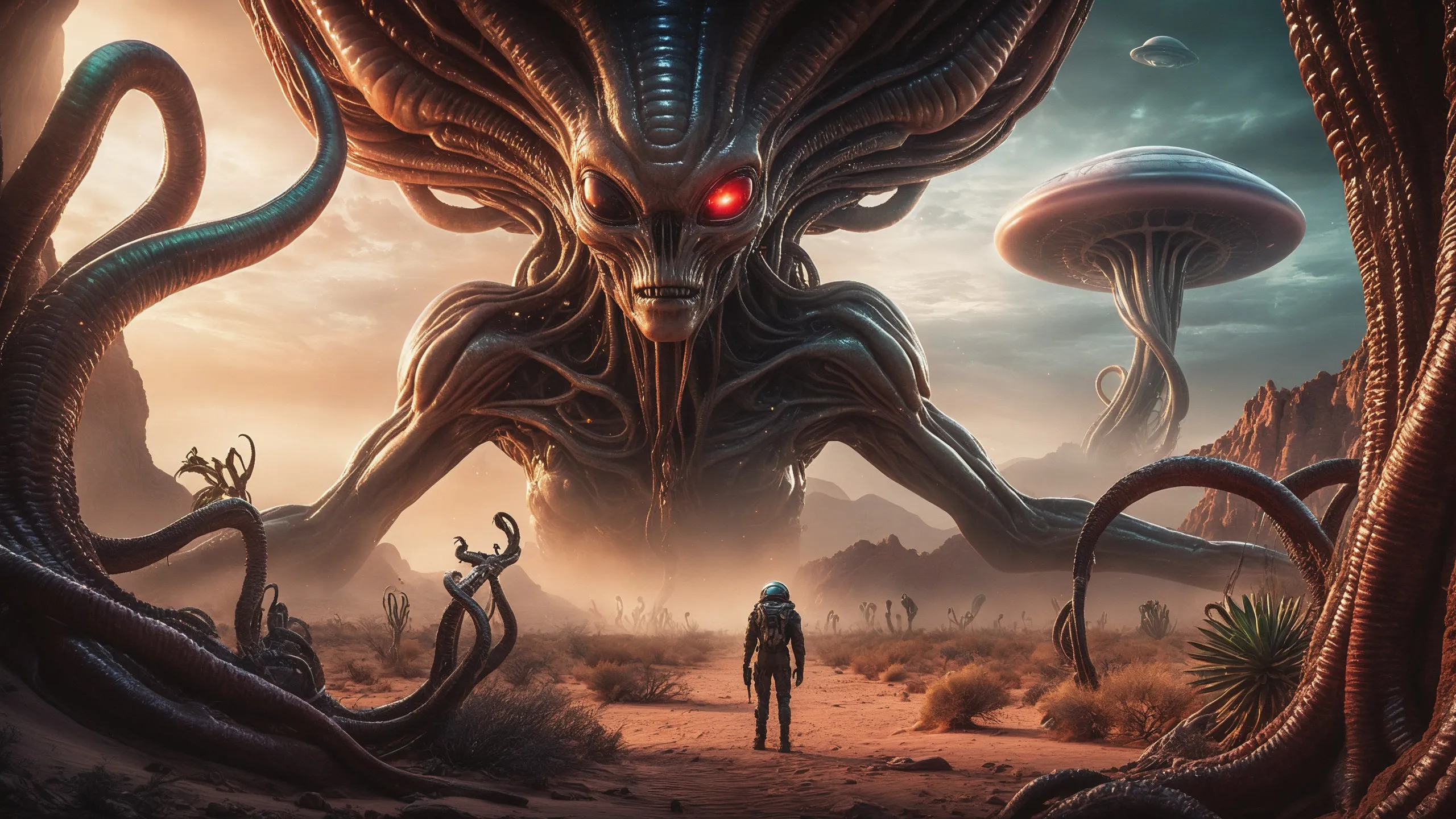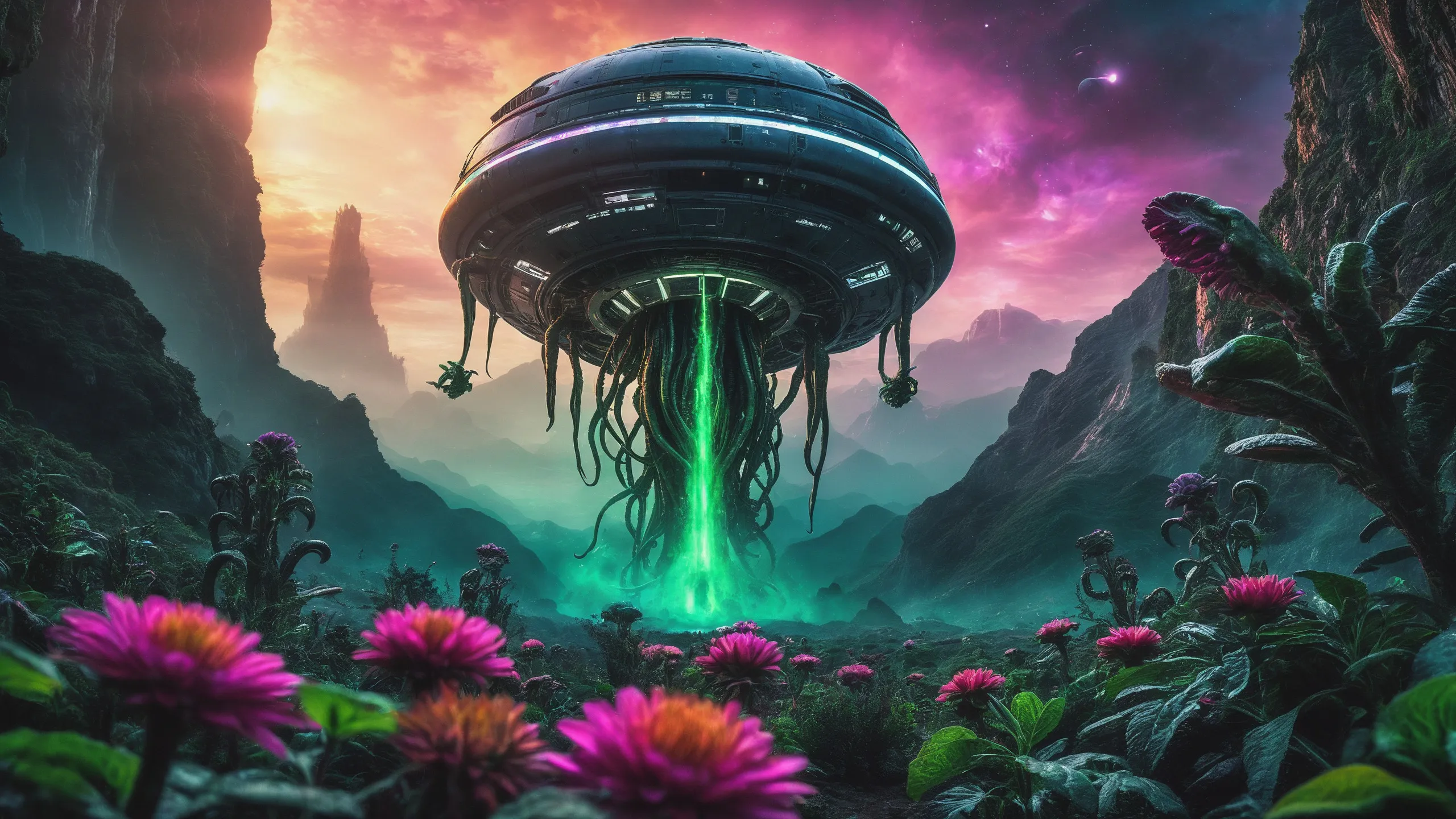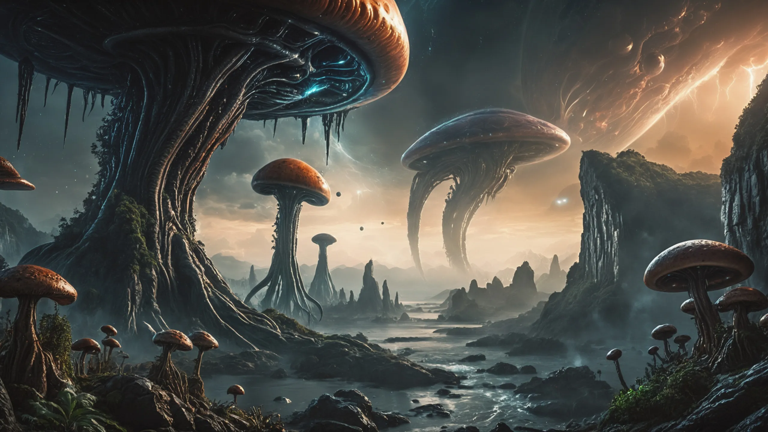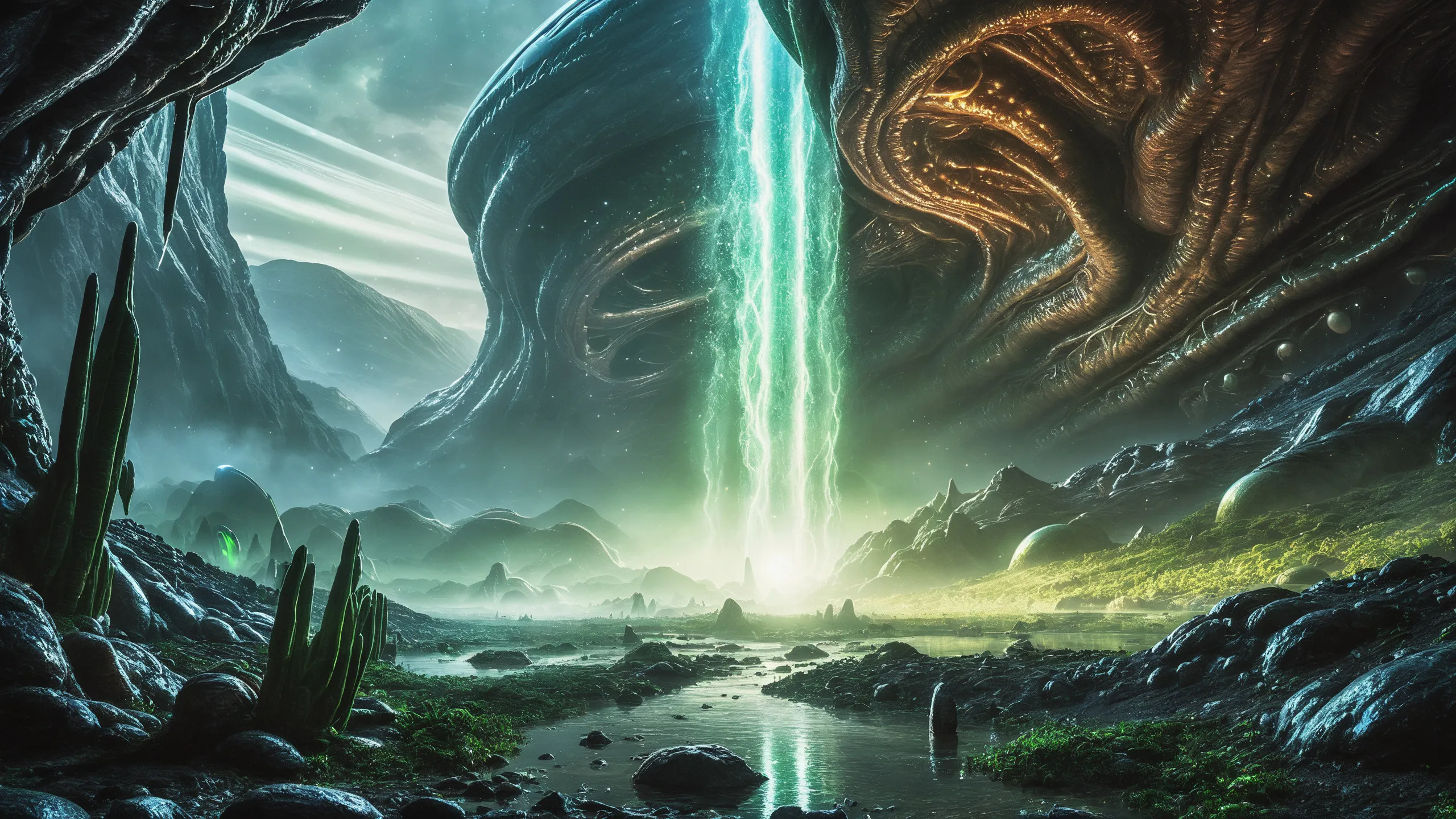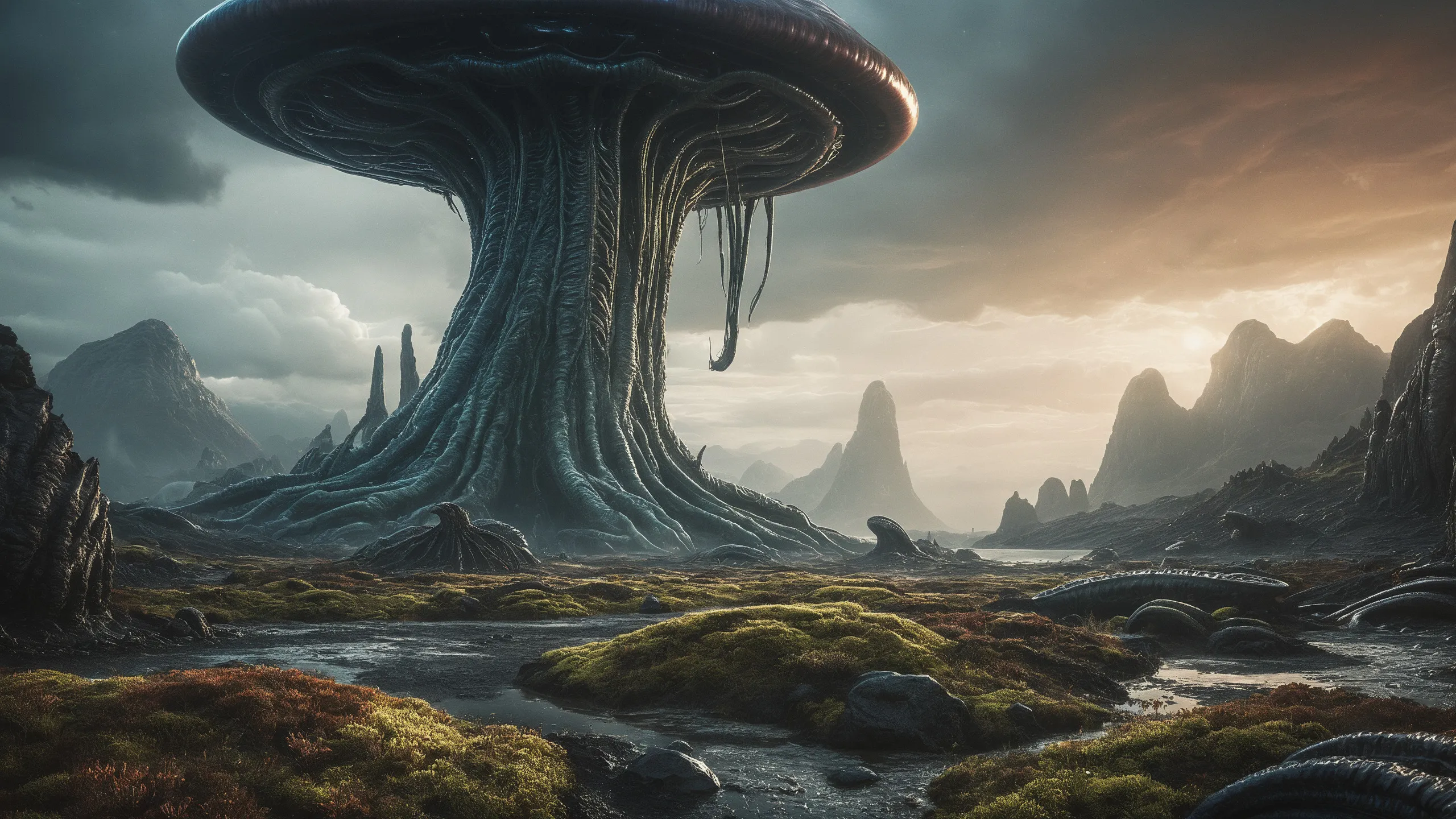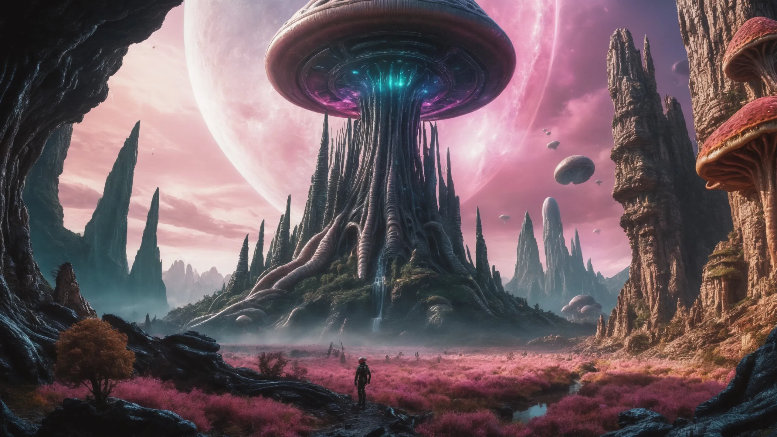 Cinematic epic scene of a (Sience Fiction, alien {mega city|cityscape|landscape|space station|outer space|world}:1.5).