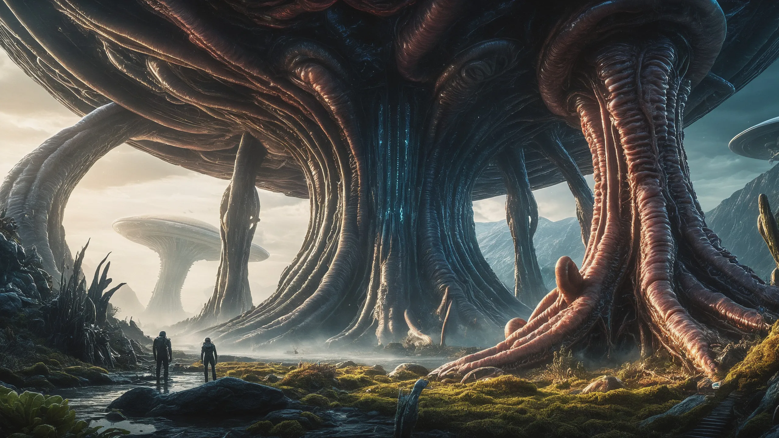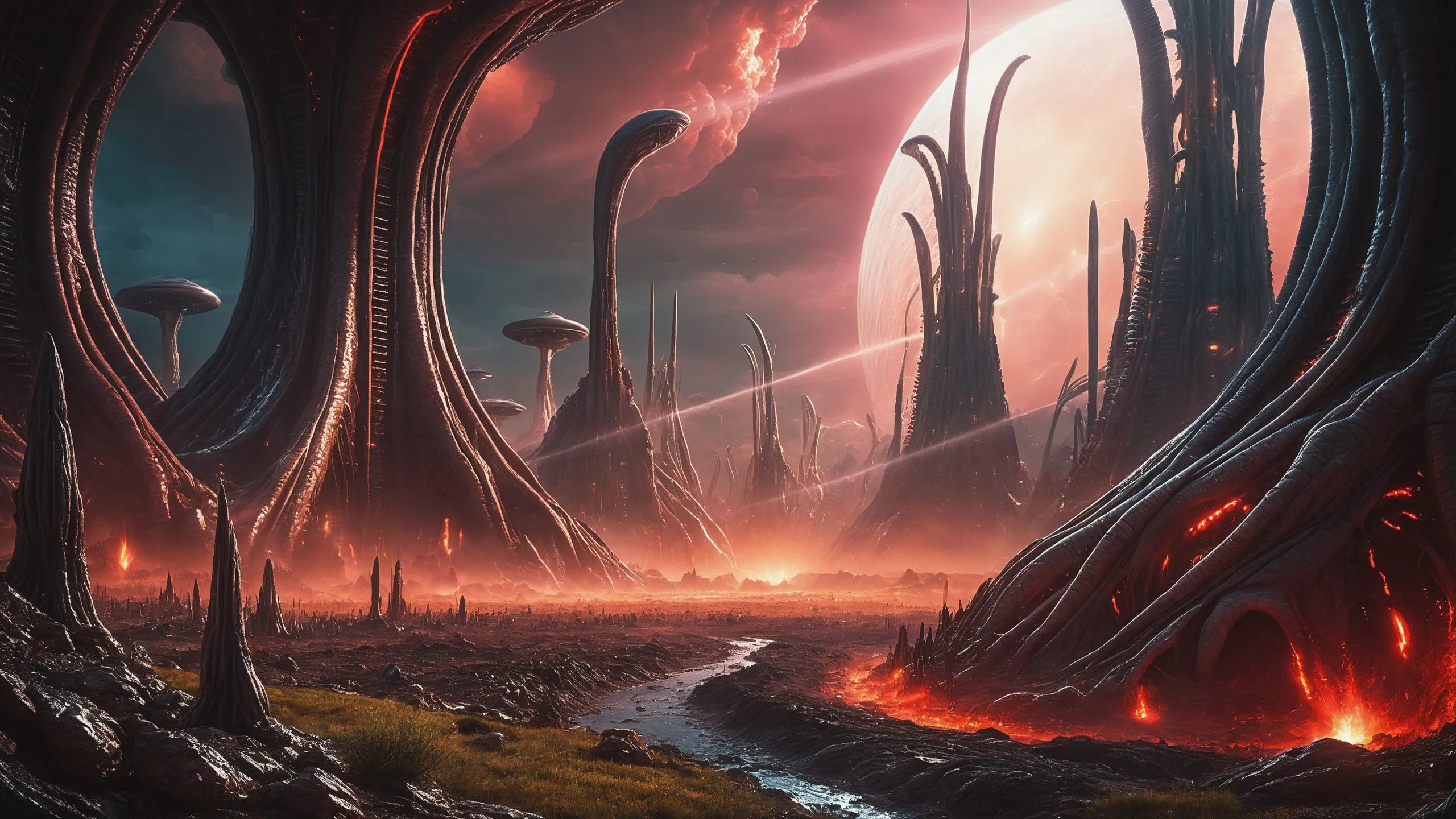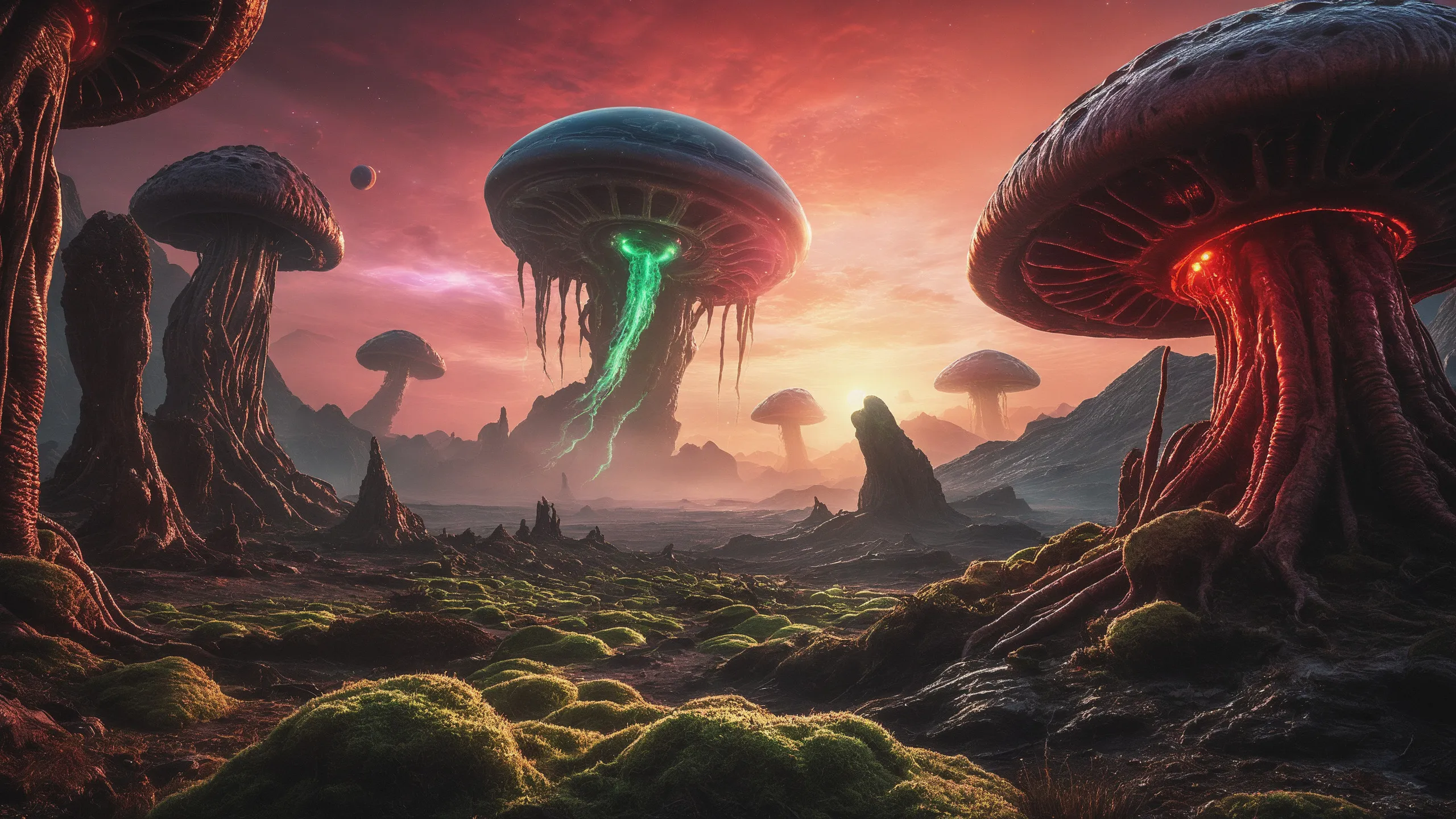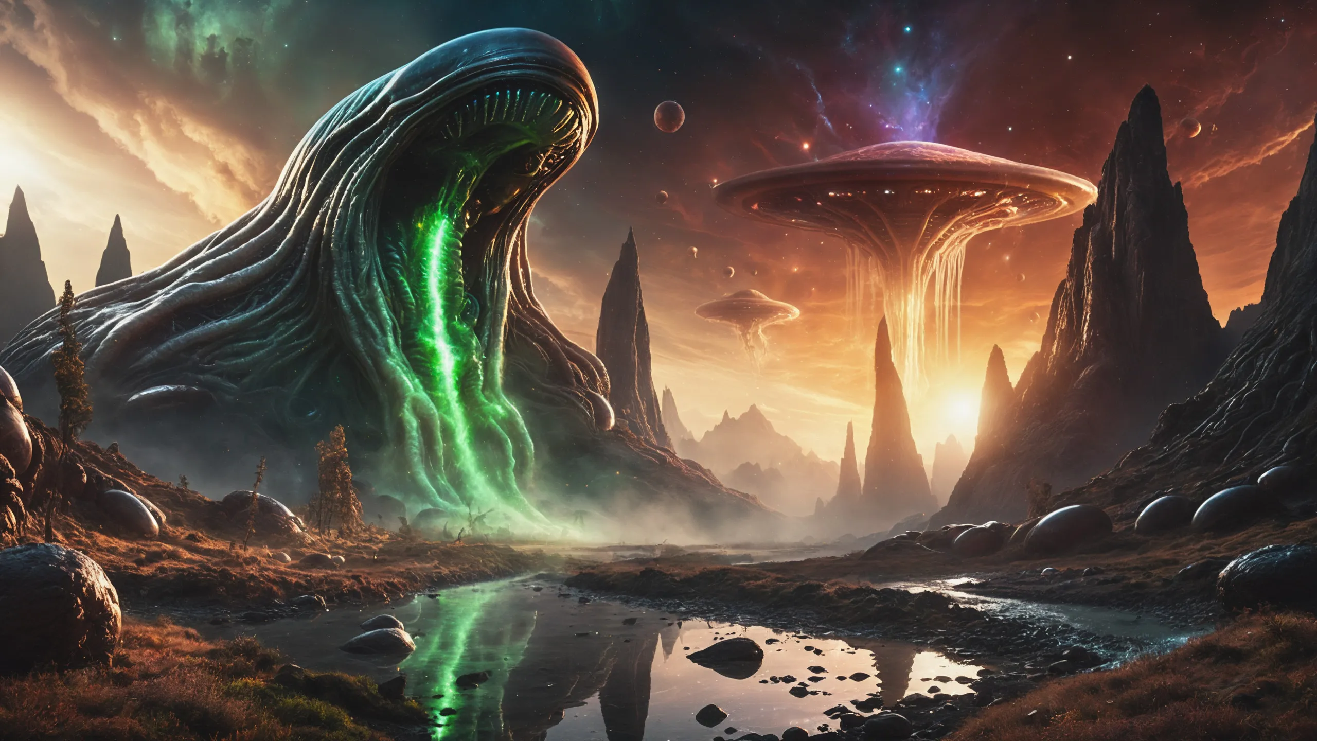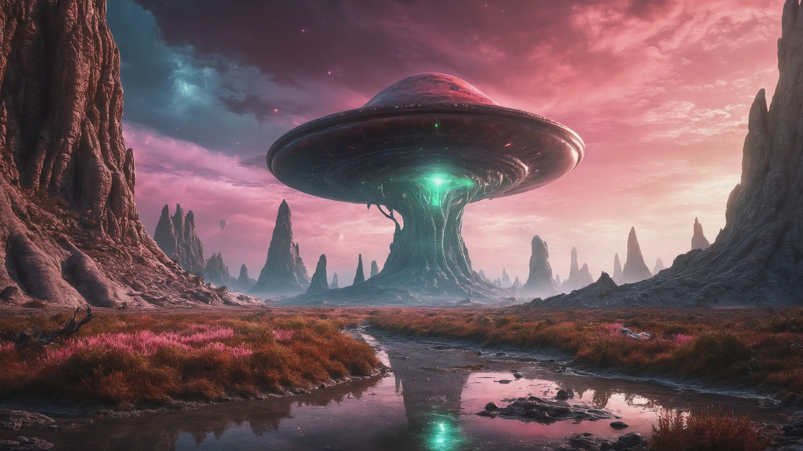 Cinematic epic scene of a (Sience Fiction, alien {mega city|cityscape|landscape|space station|outer space|world}:1.5).
