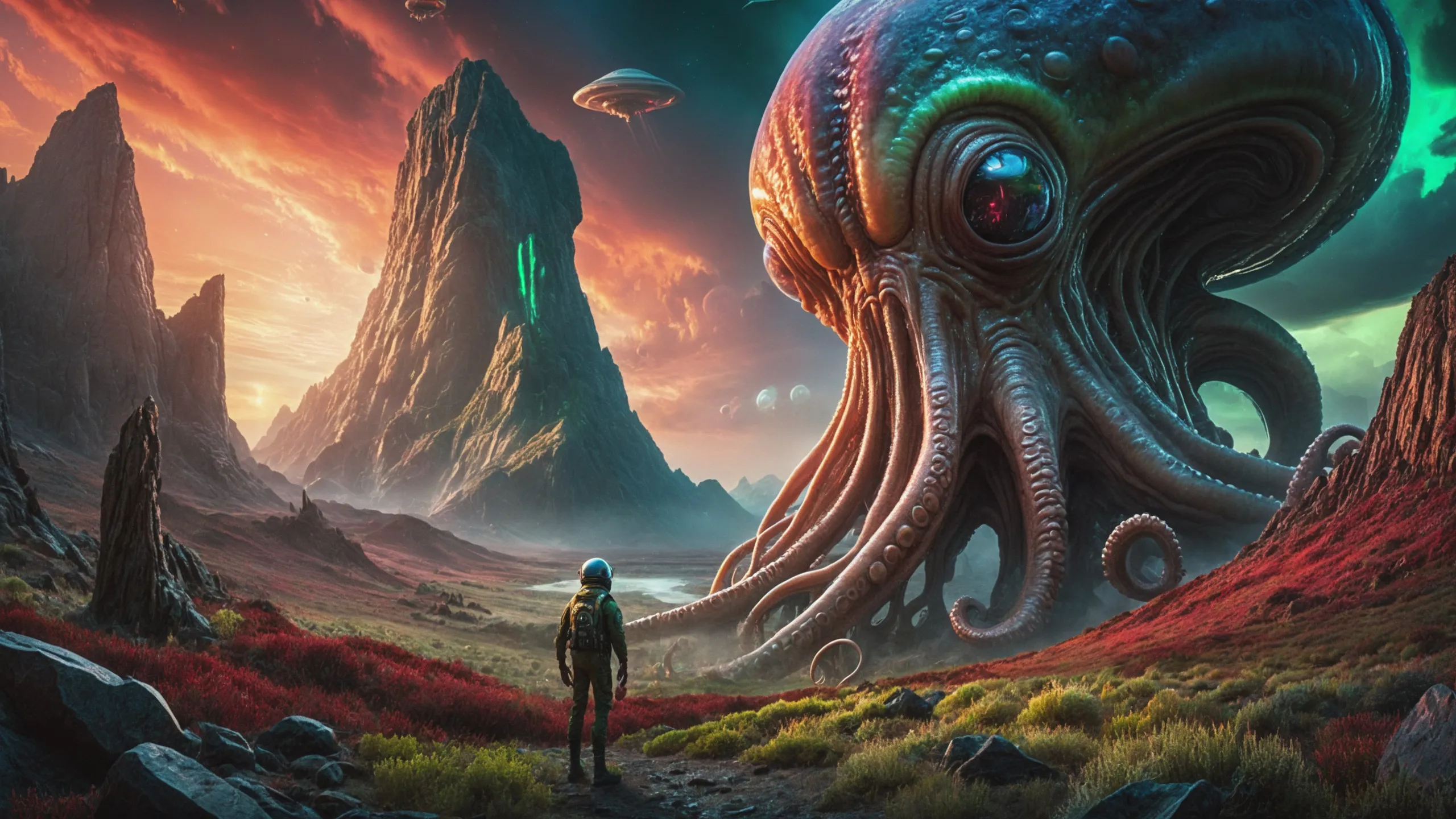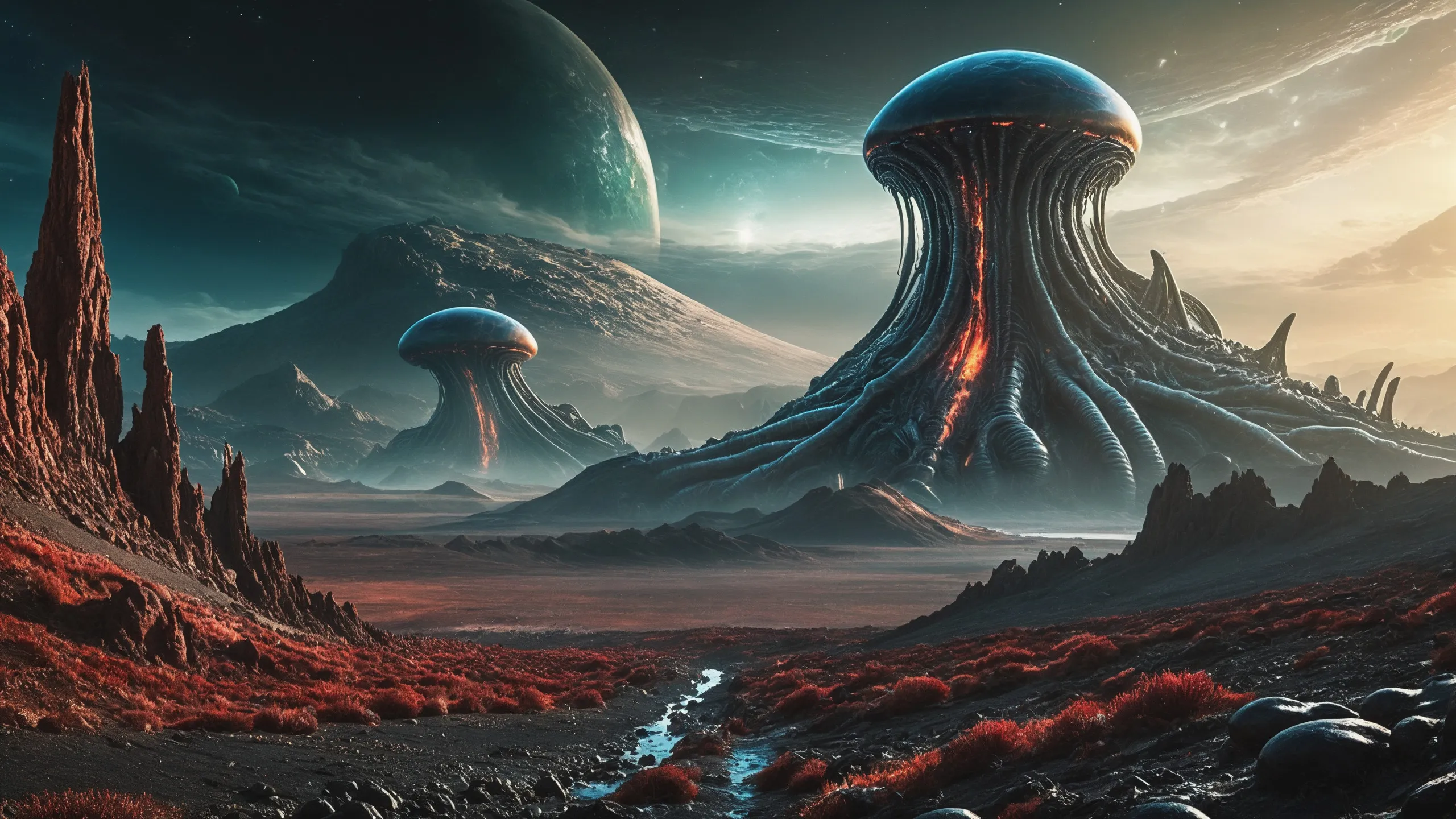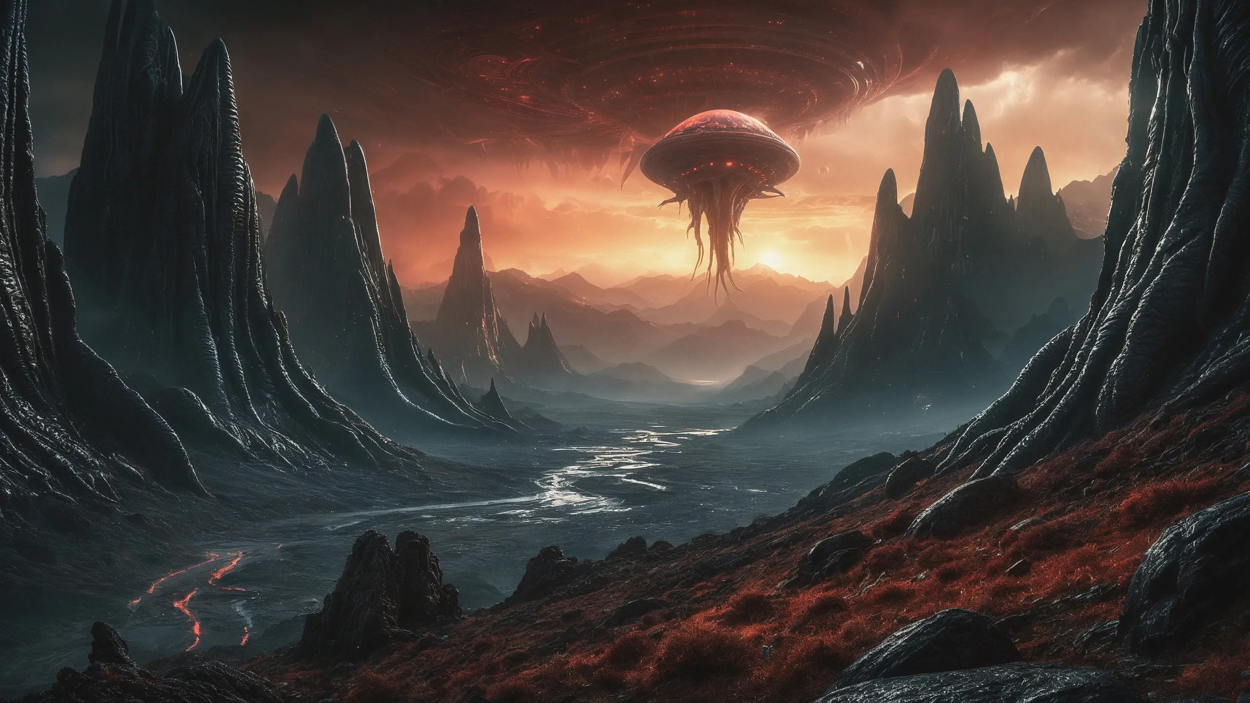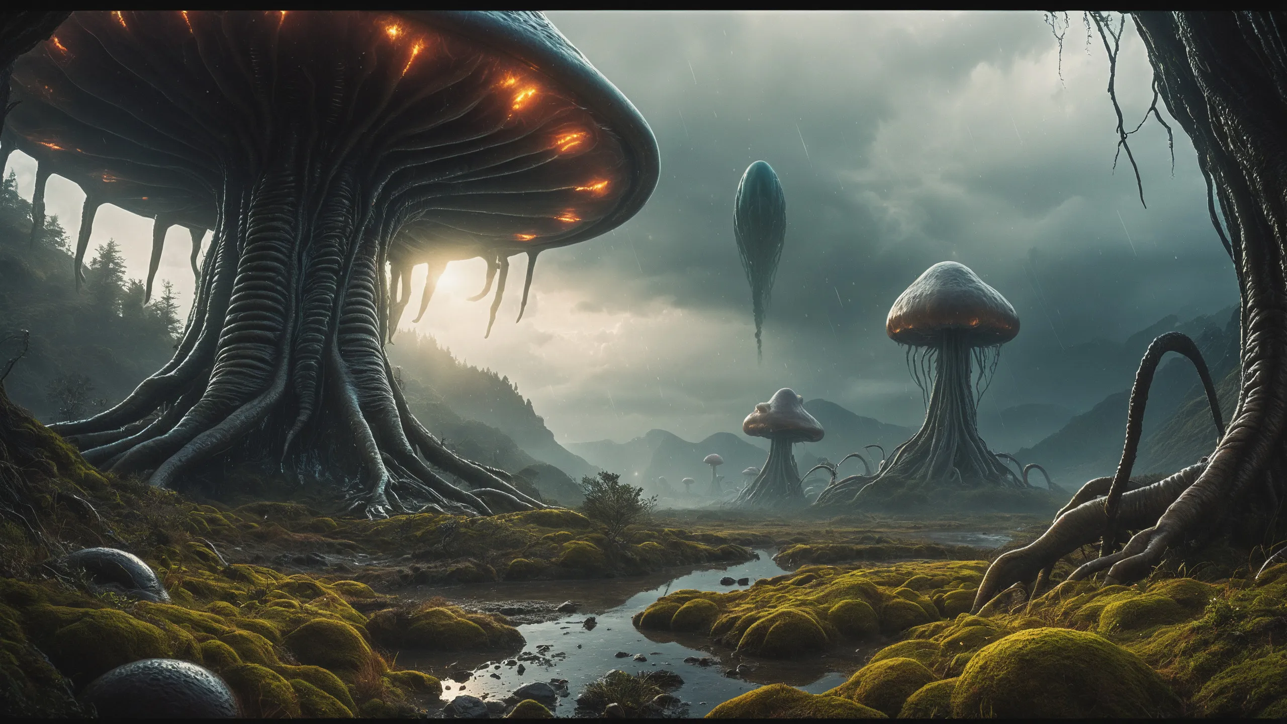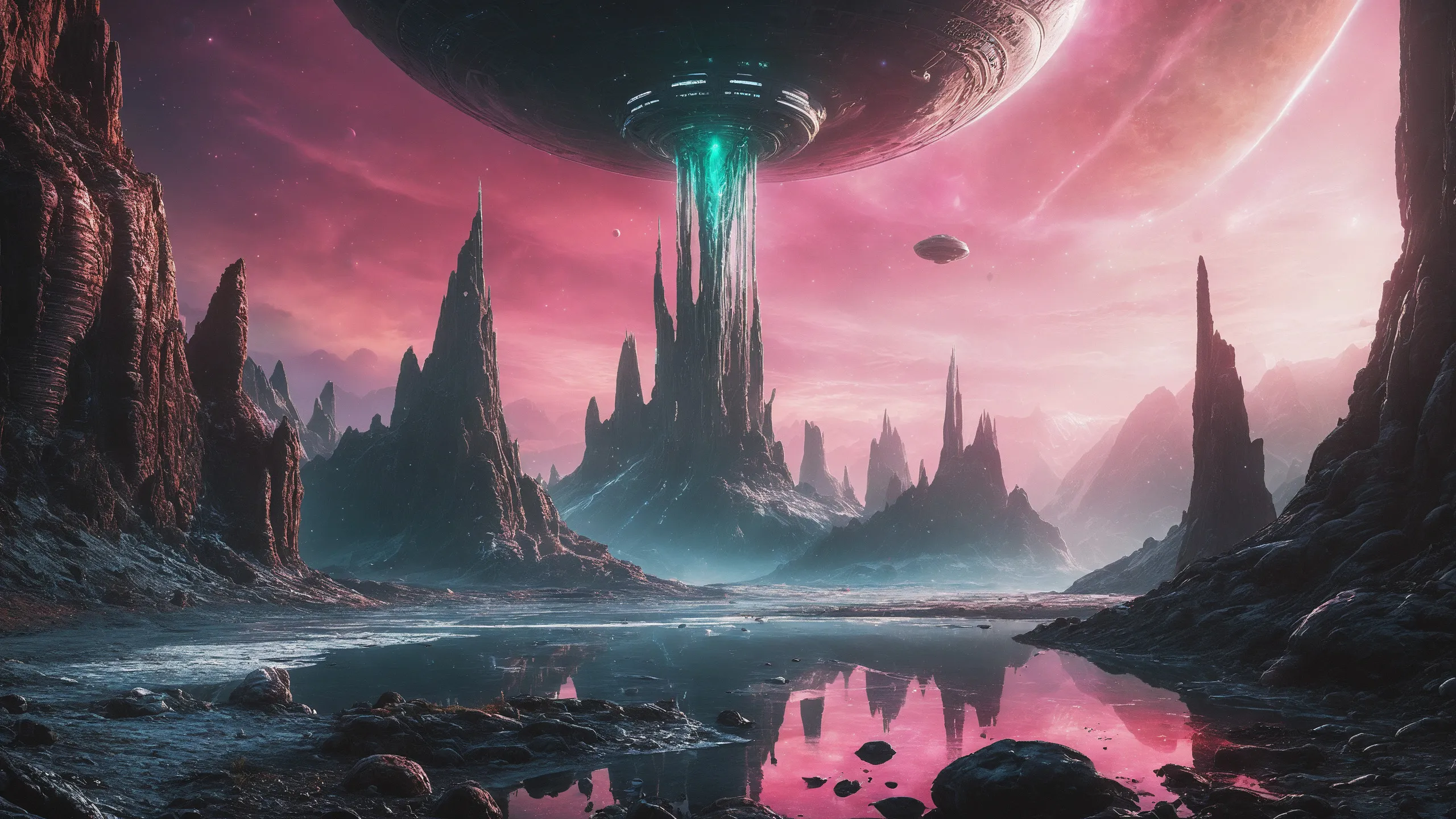 Cinematic epic scene of a (Sience Fiction, alien {mega city|cityscape|landscape|space station|outer space|world}:1.5).