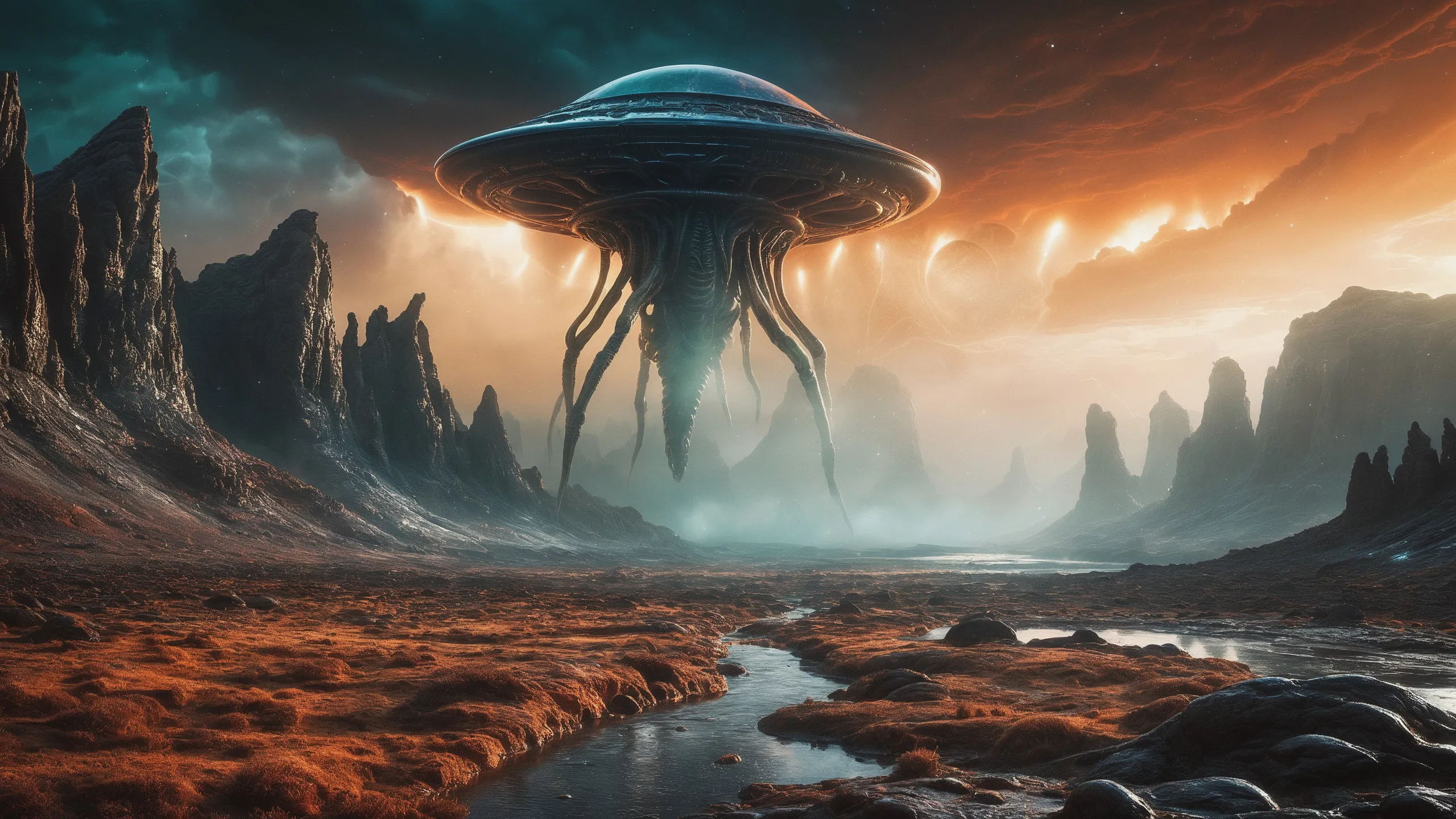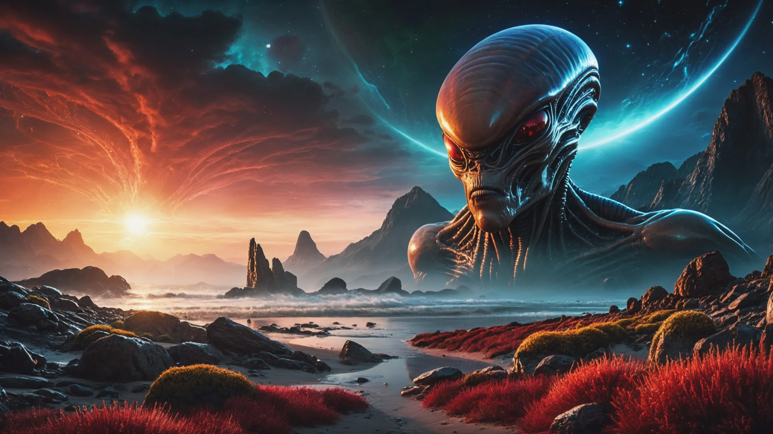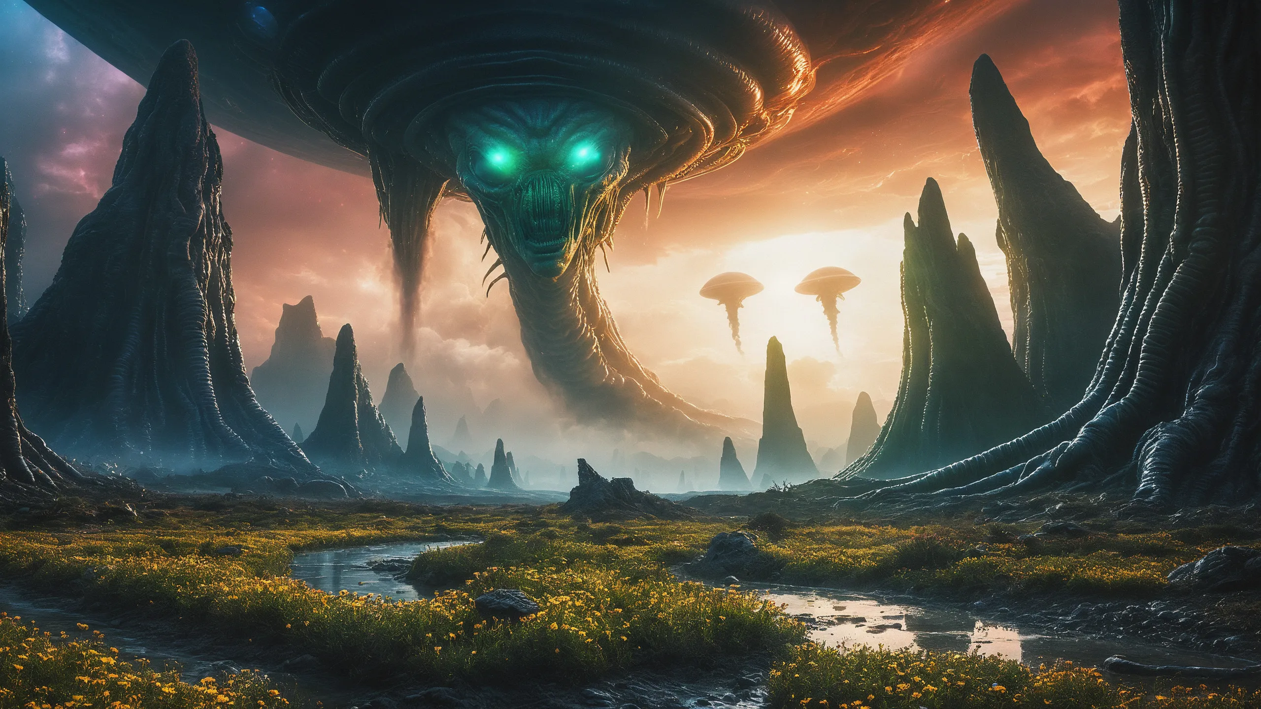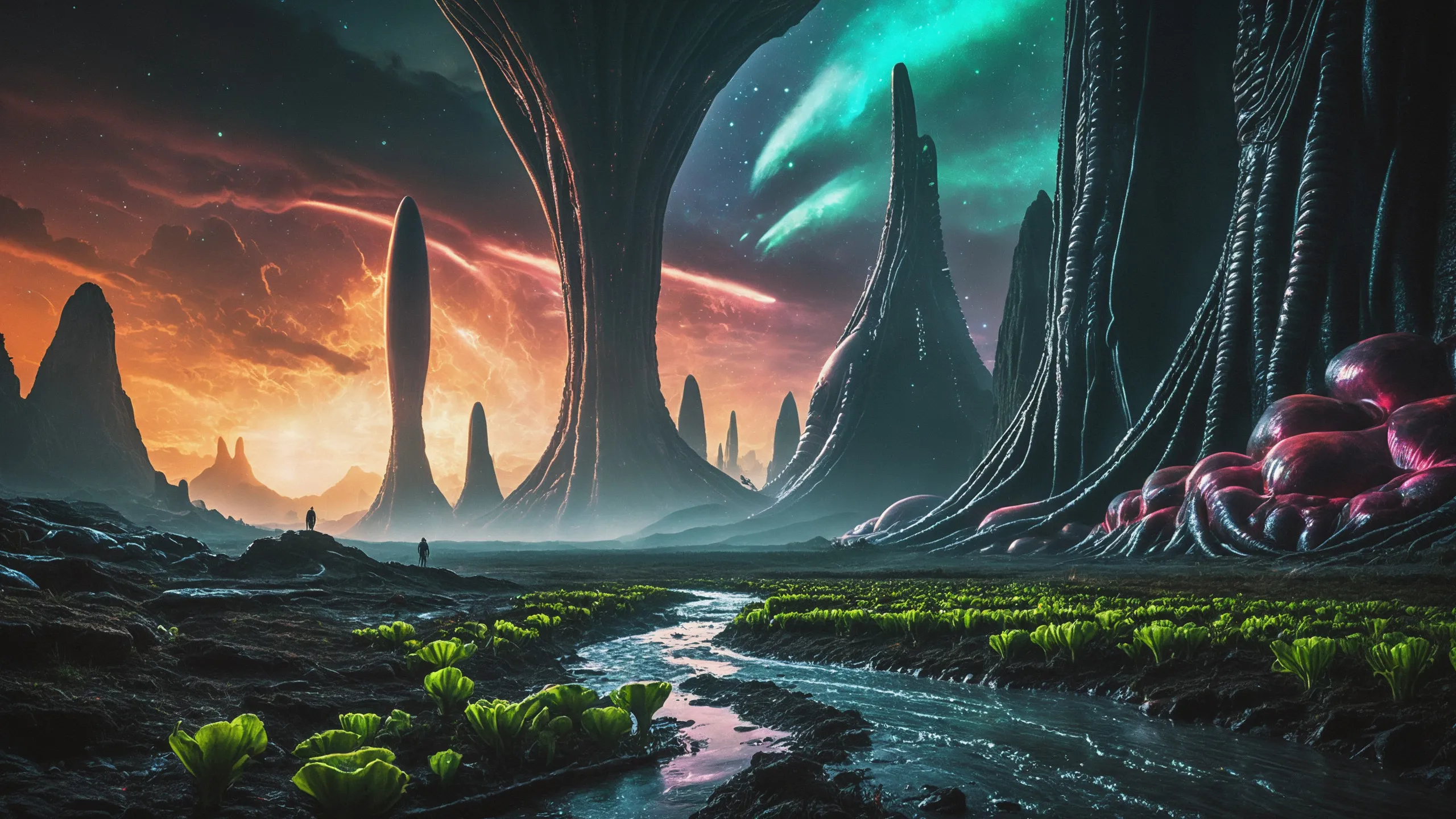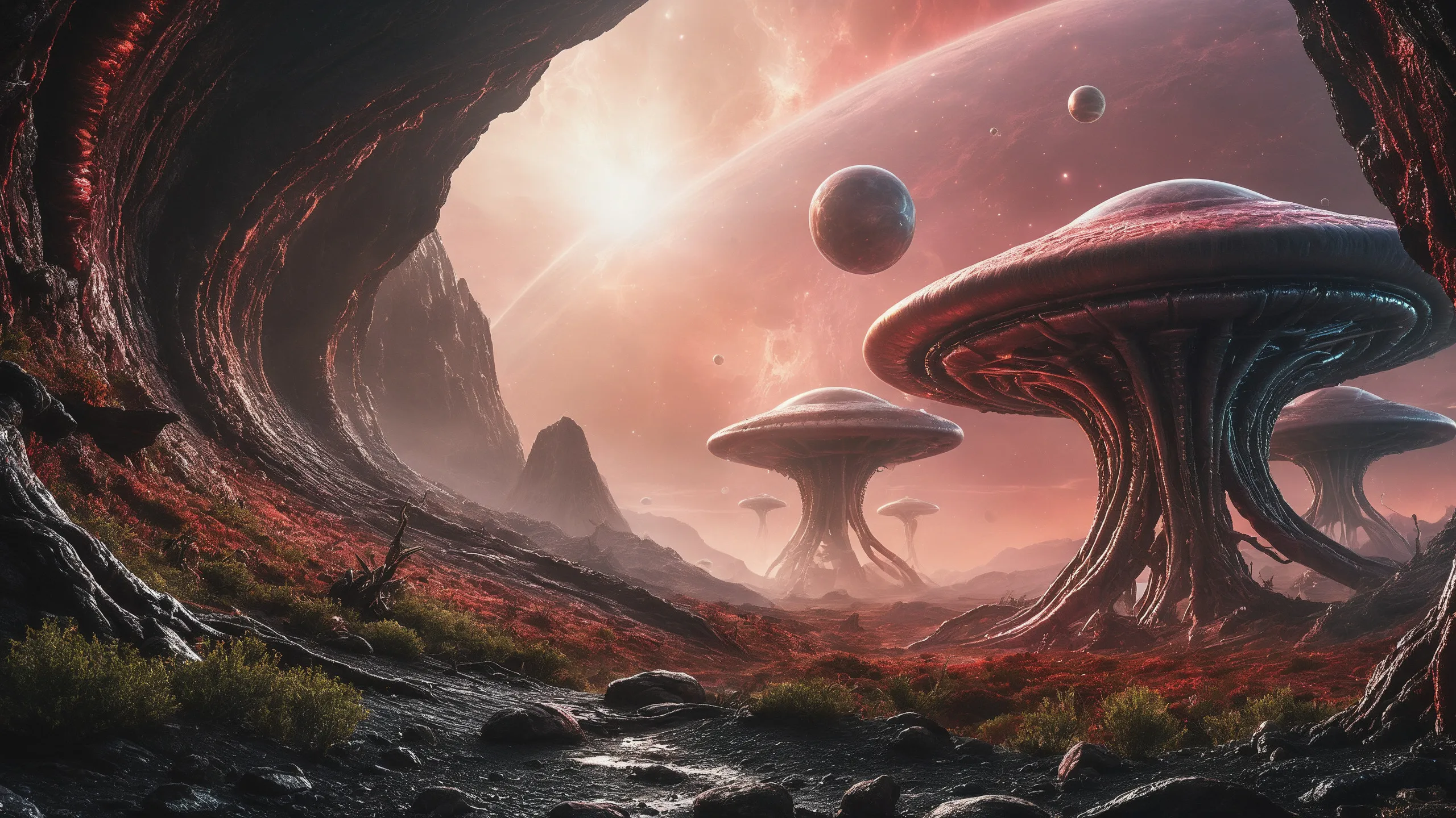 Cinematic epic scene of a (Sience Fiction, alien {mega city|cityscape|landscape|space station|outer space|world}:1.5).