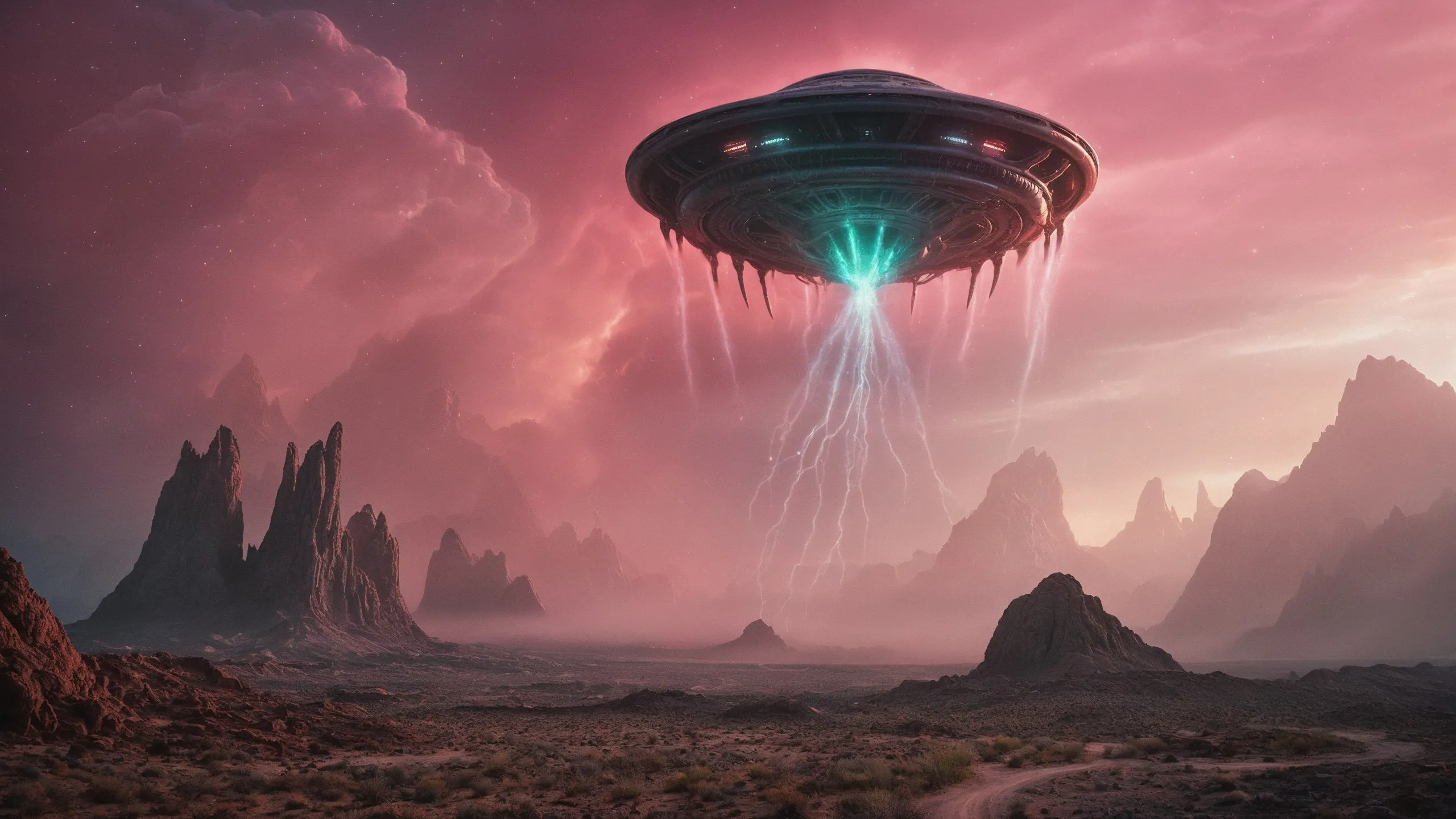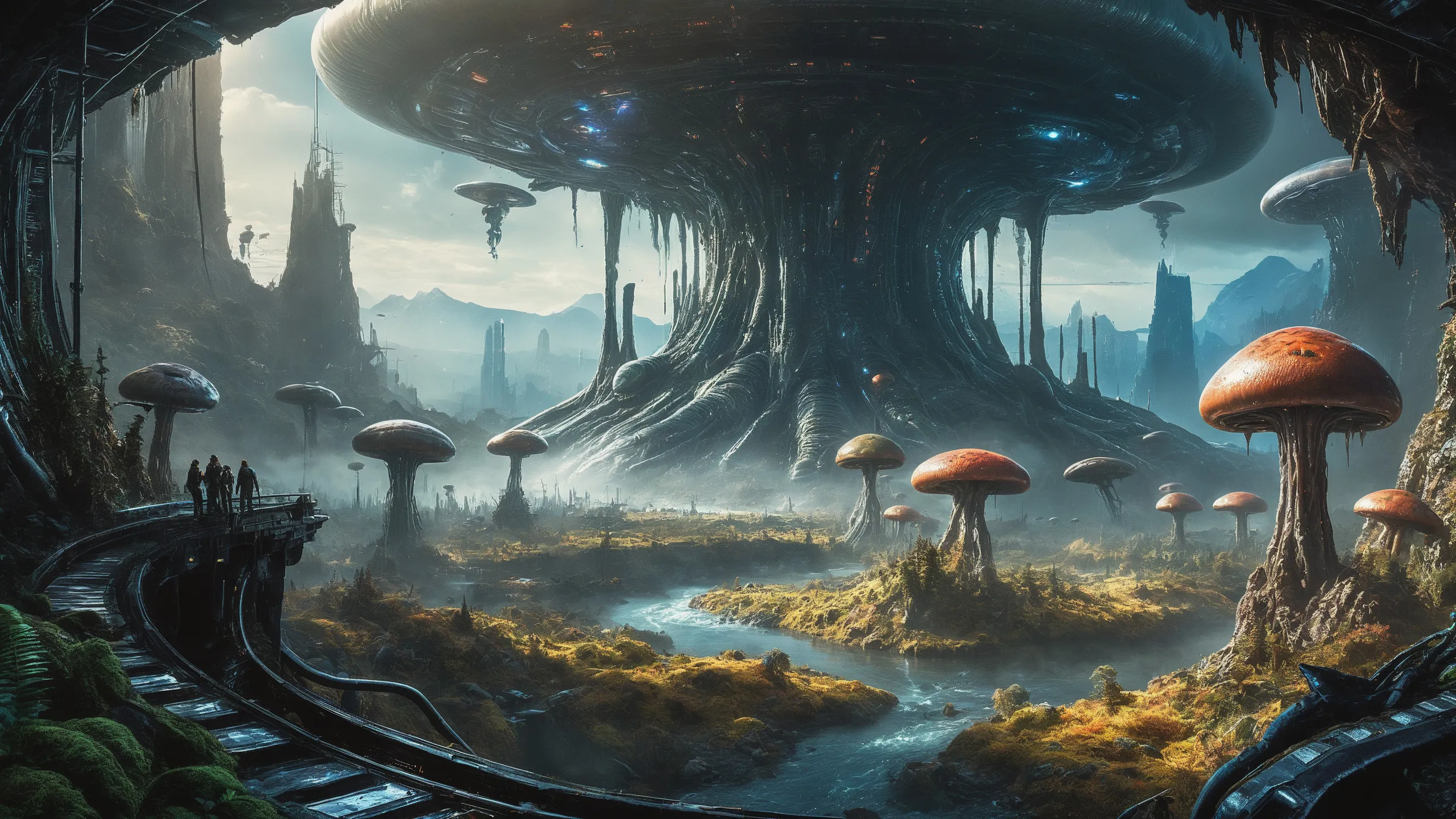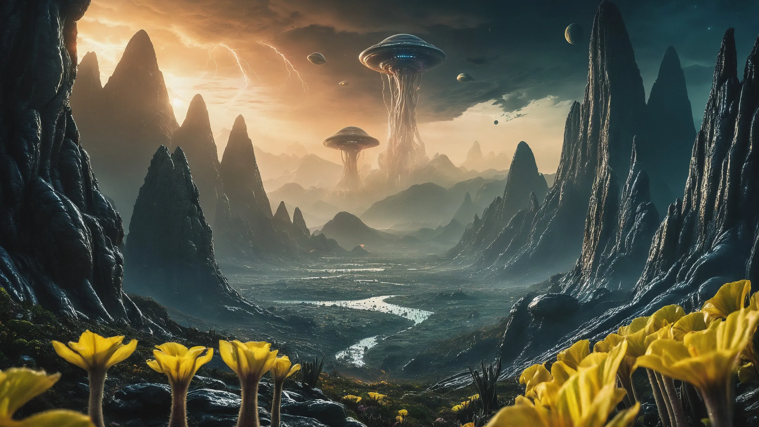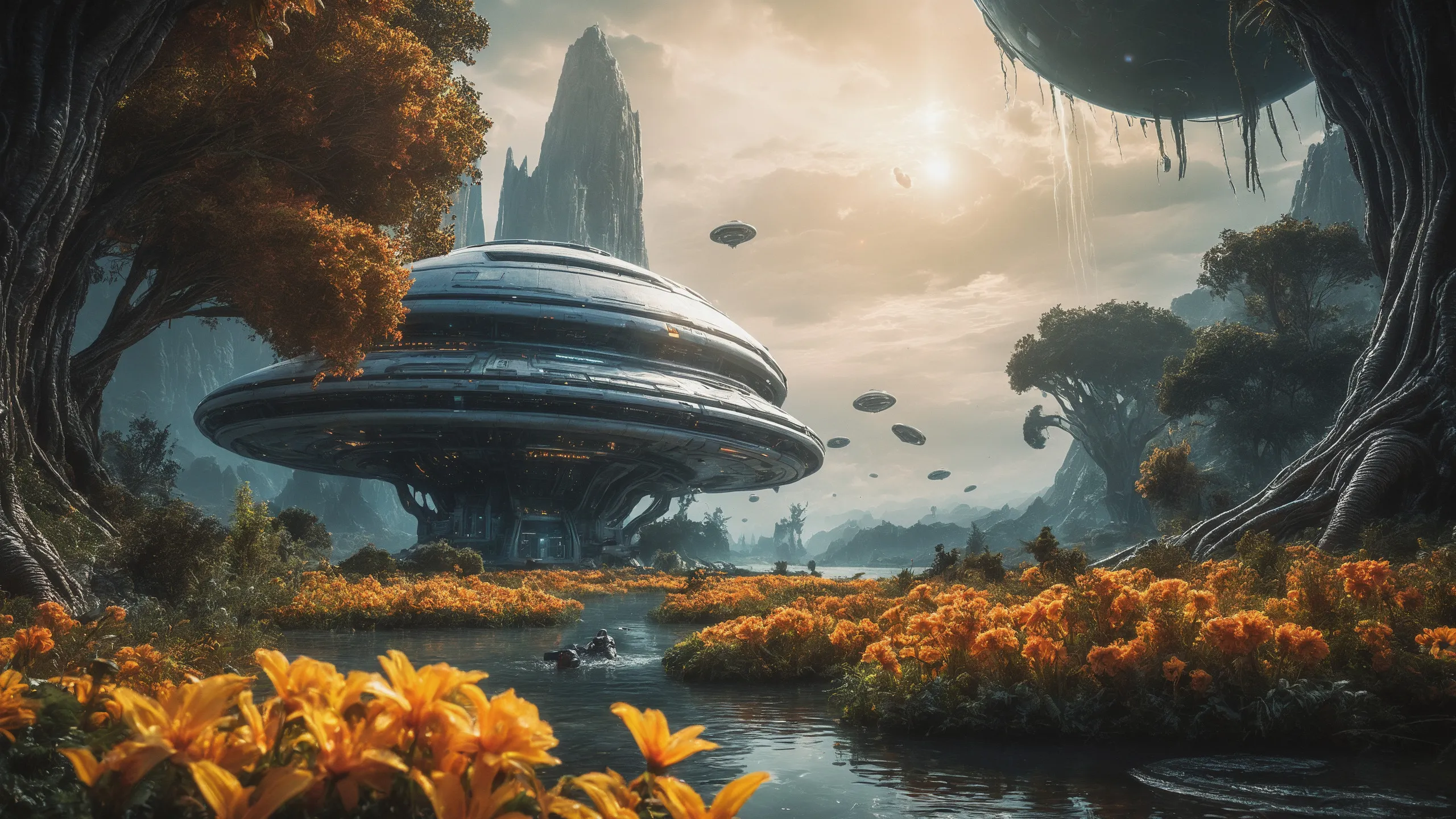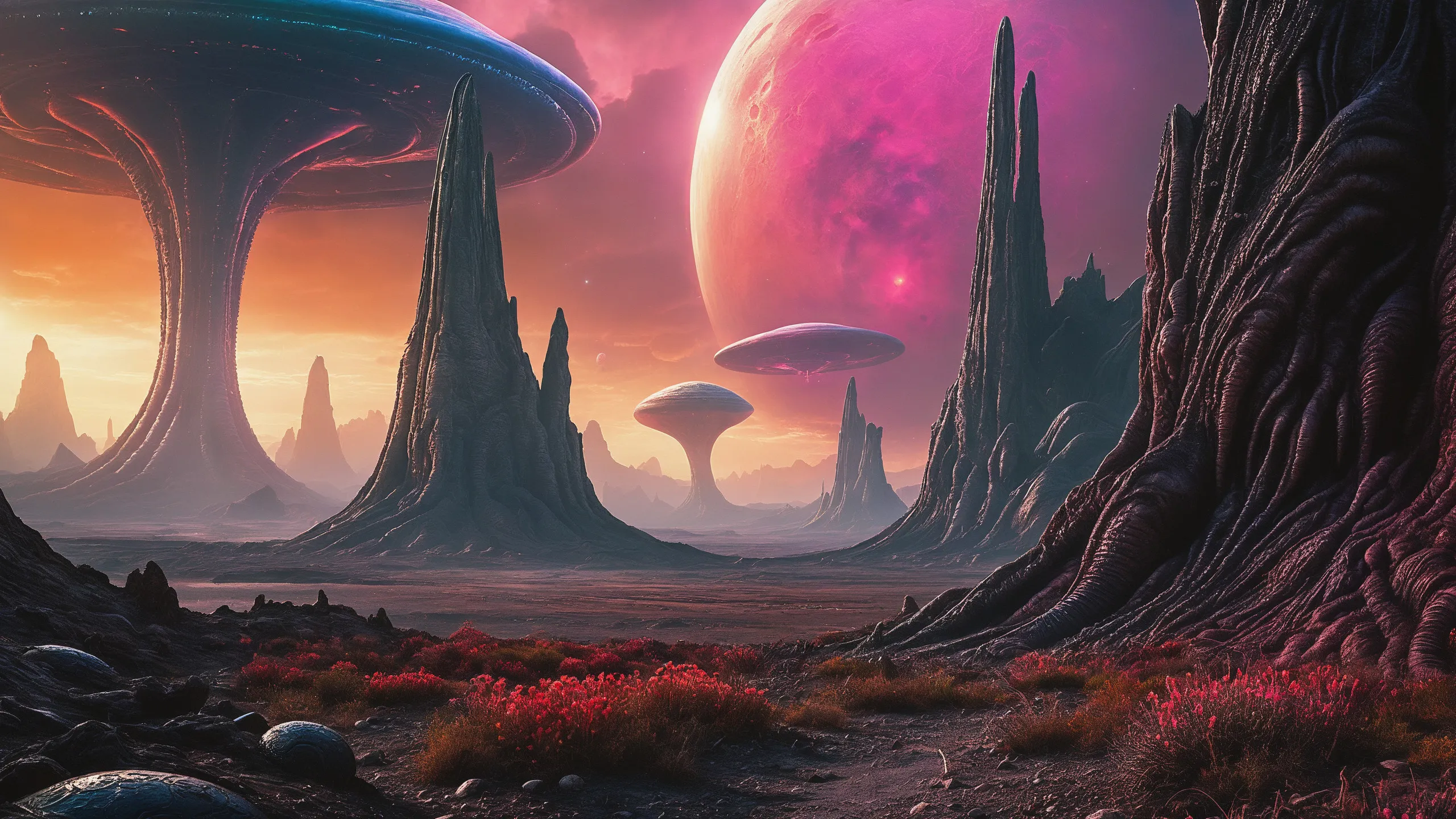 Cinematic epic scene of a (Sience Fiction, alien {mega city|cityscape|landscape|space station|outer space|world}:1.5).