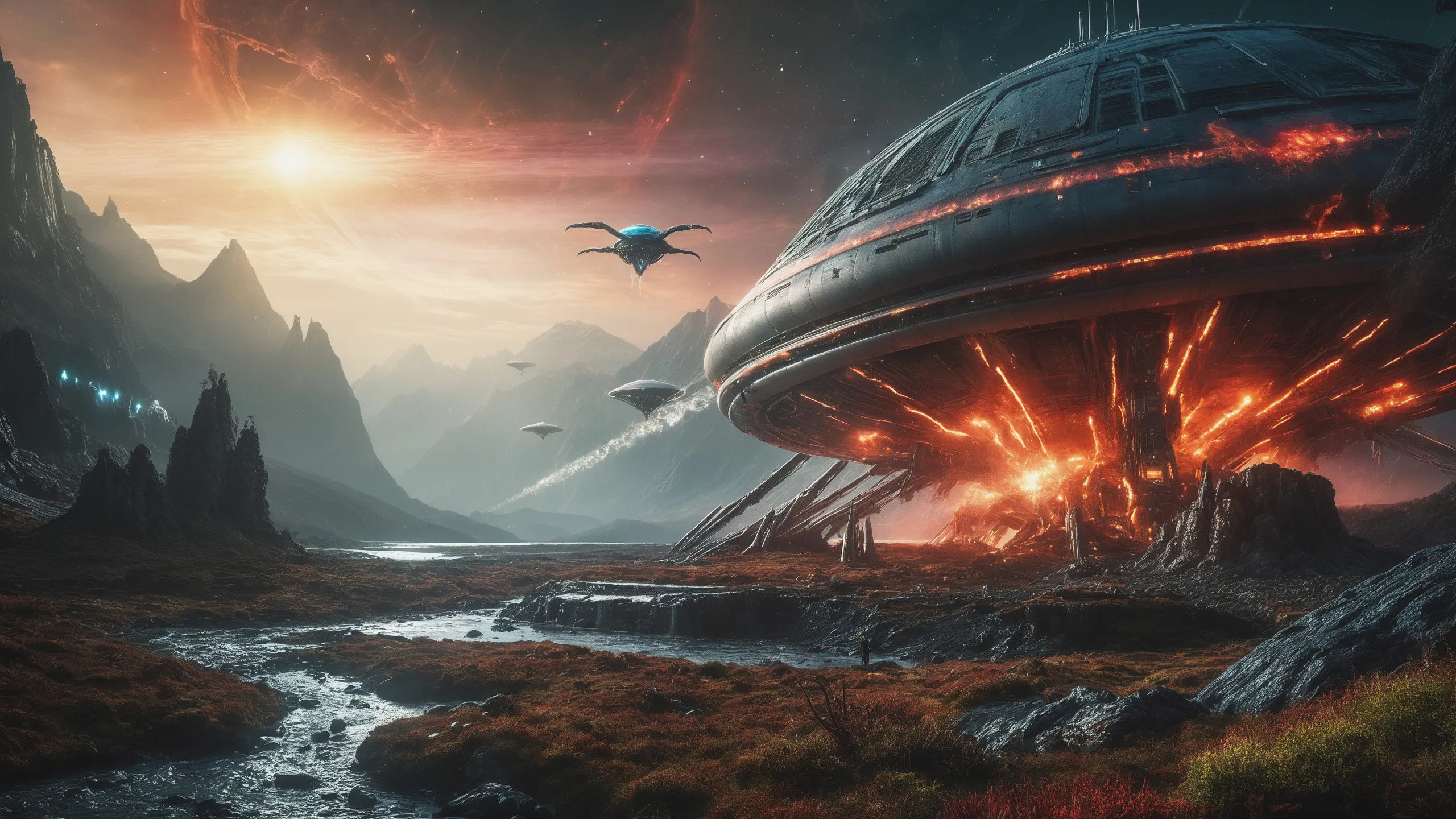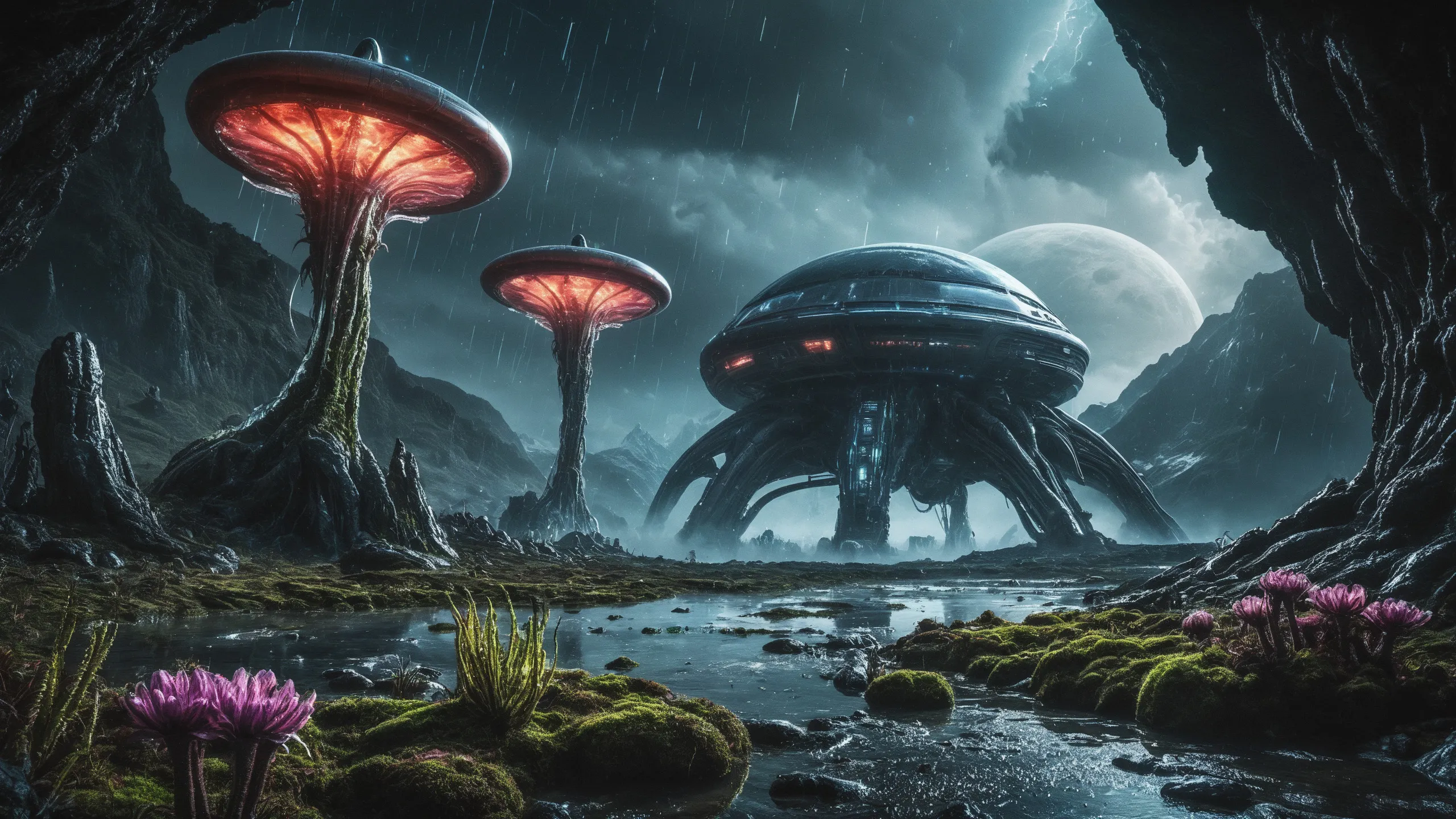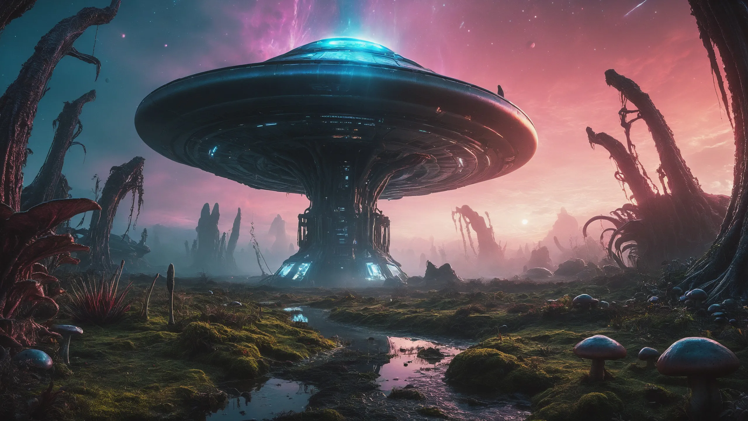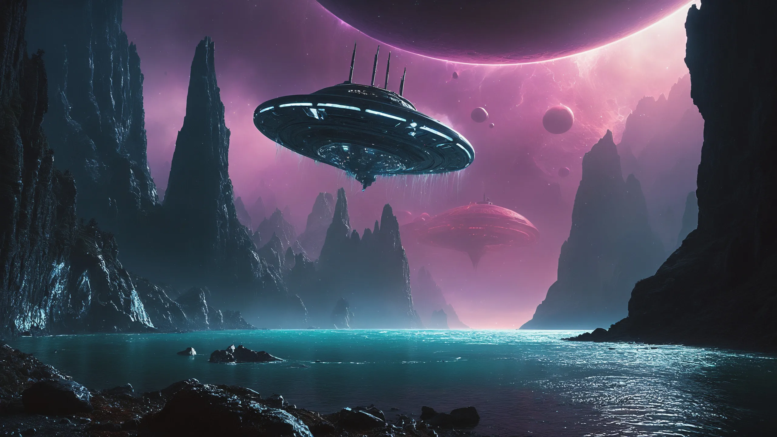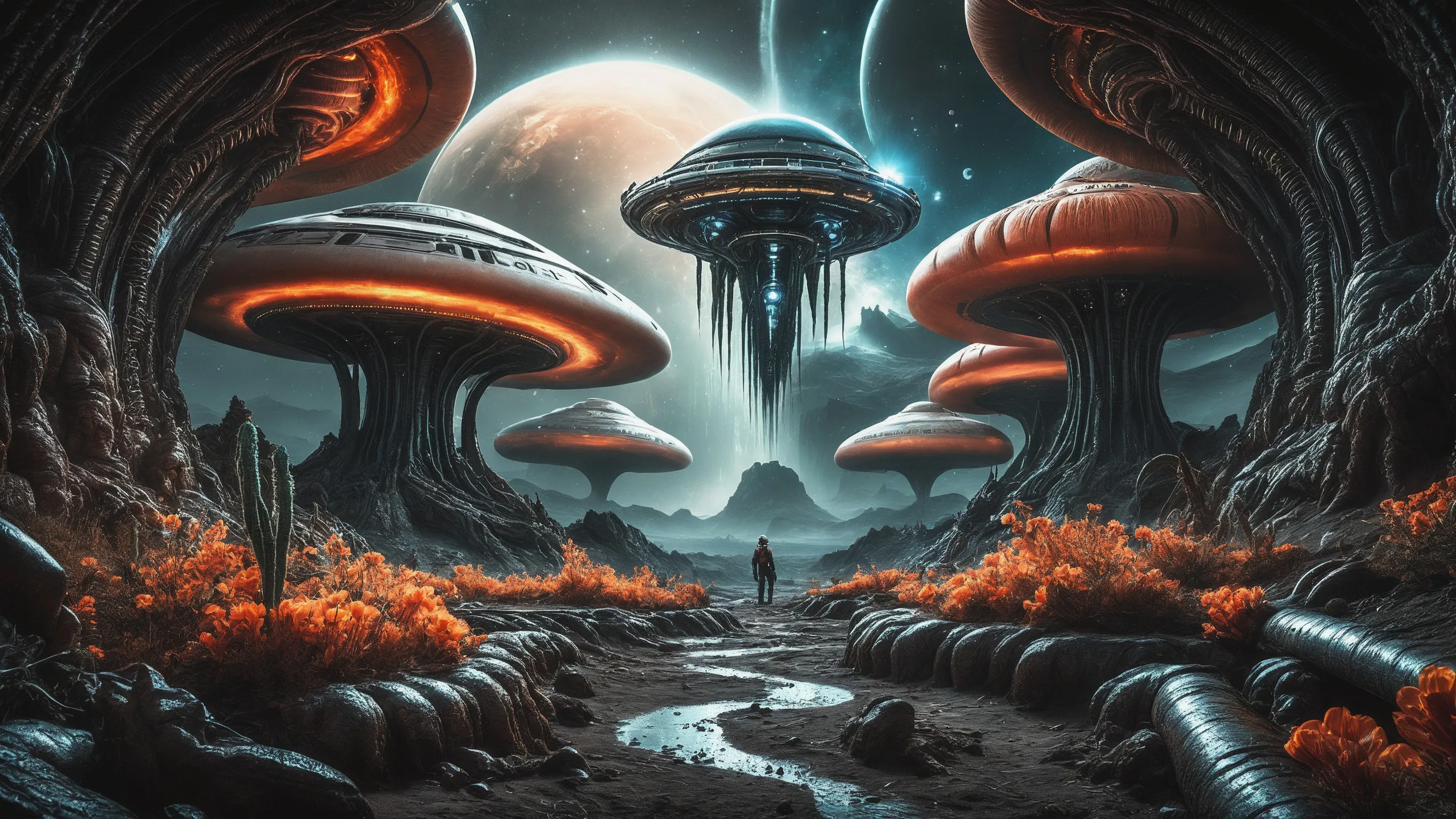 Cinematic epic scene of a (Sience Fiction, alien {mega city|cityscape|landscape|space station|outer space|world}:1.5).