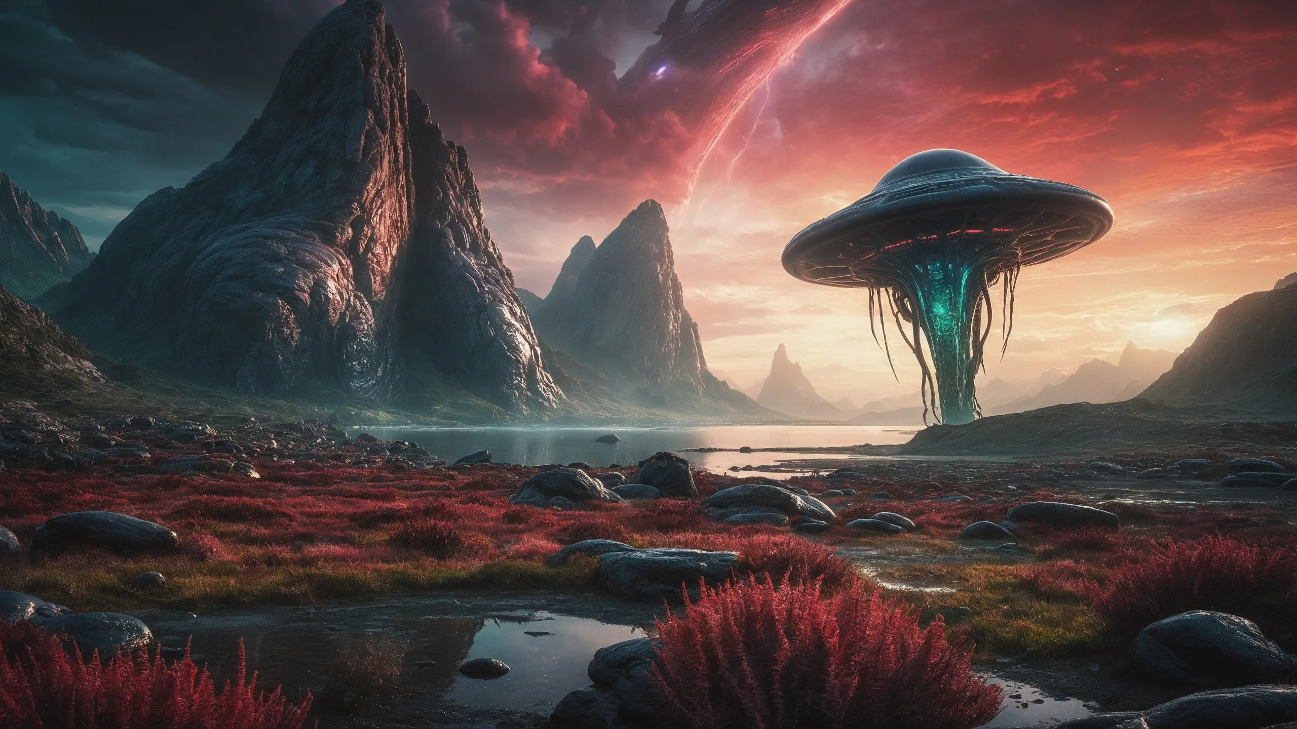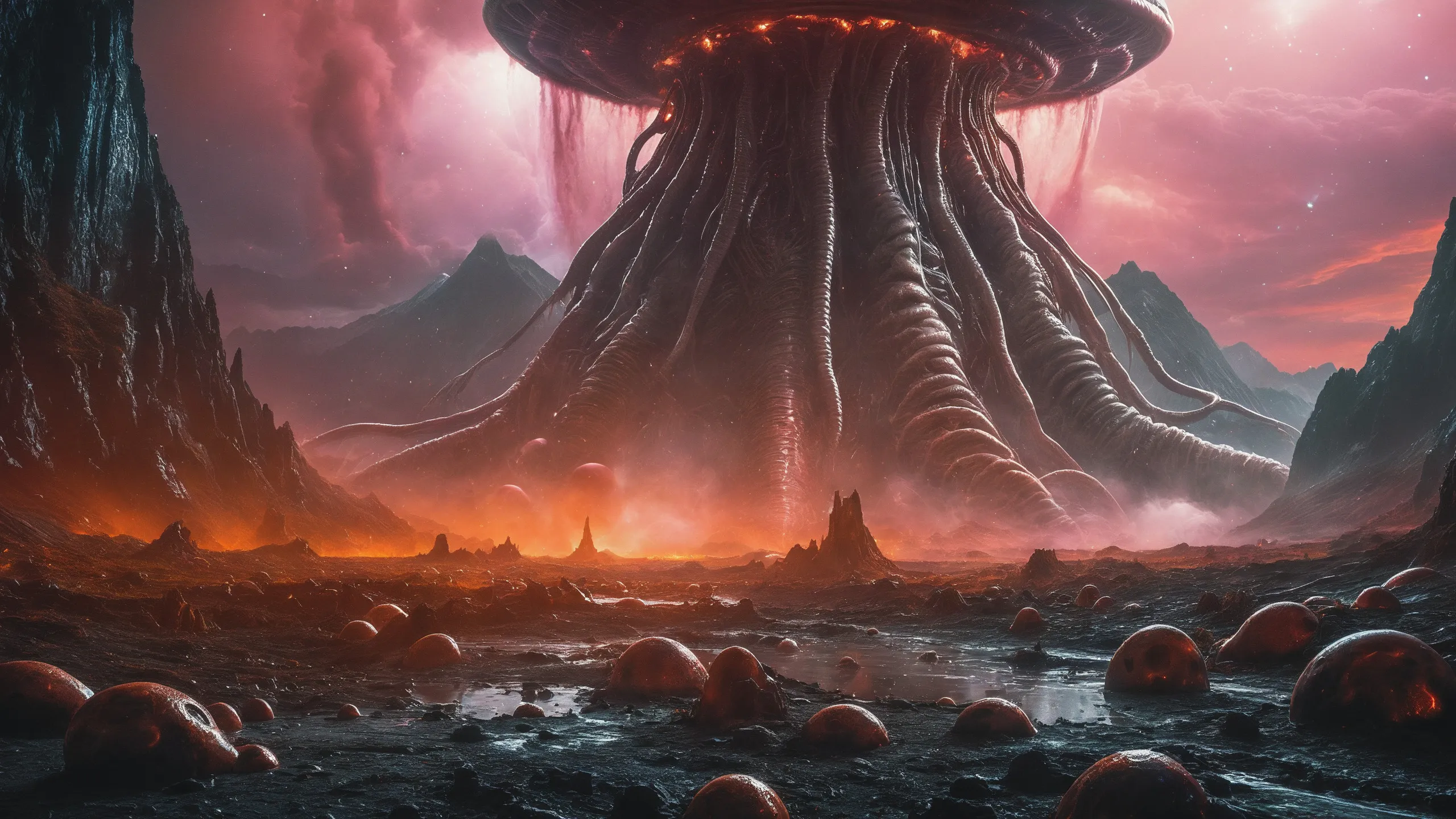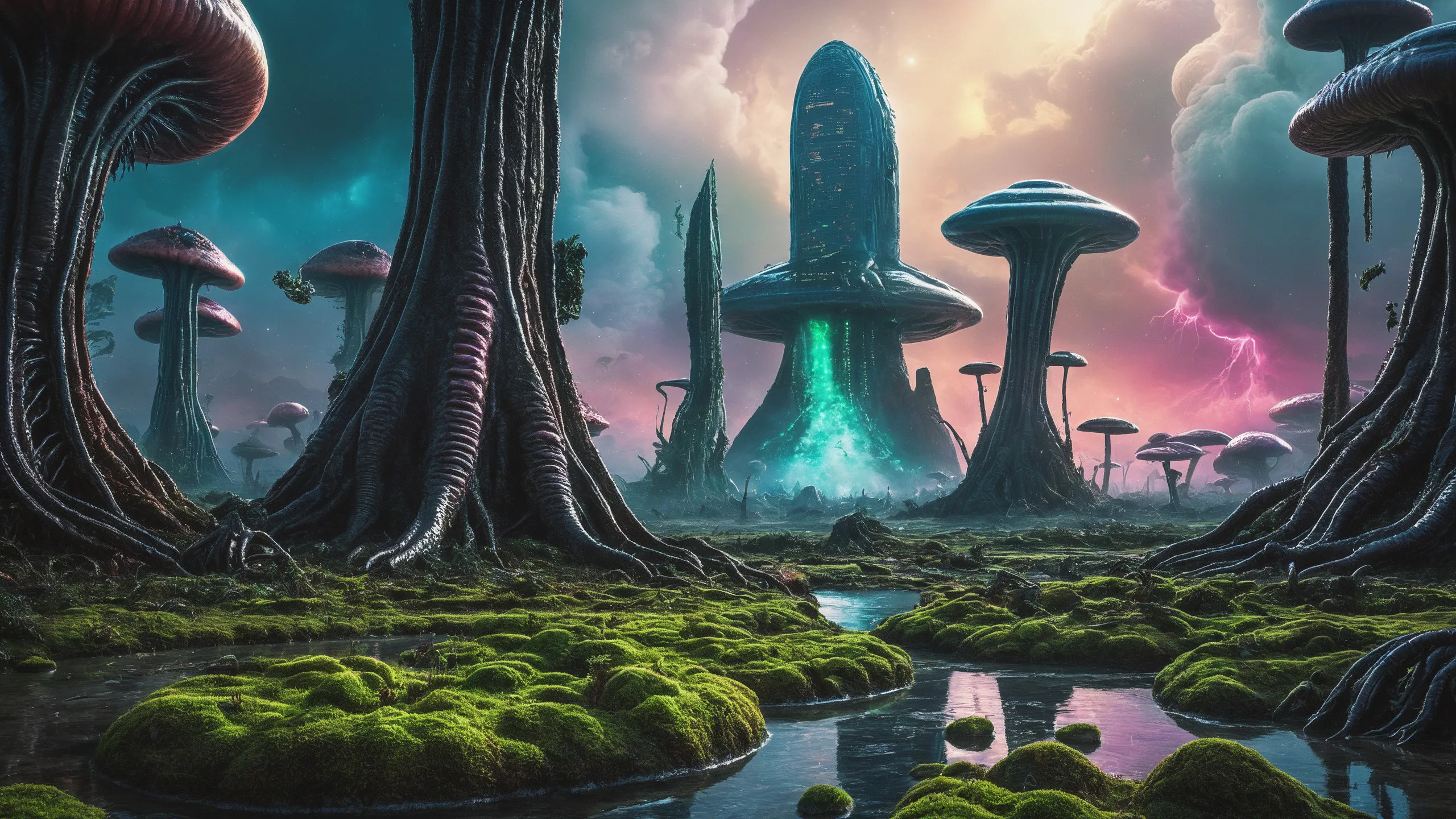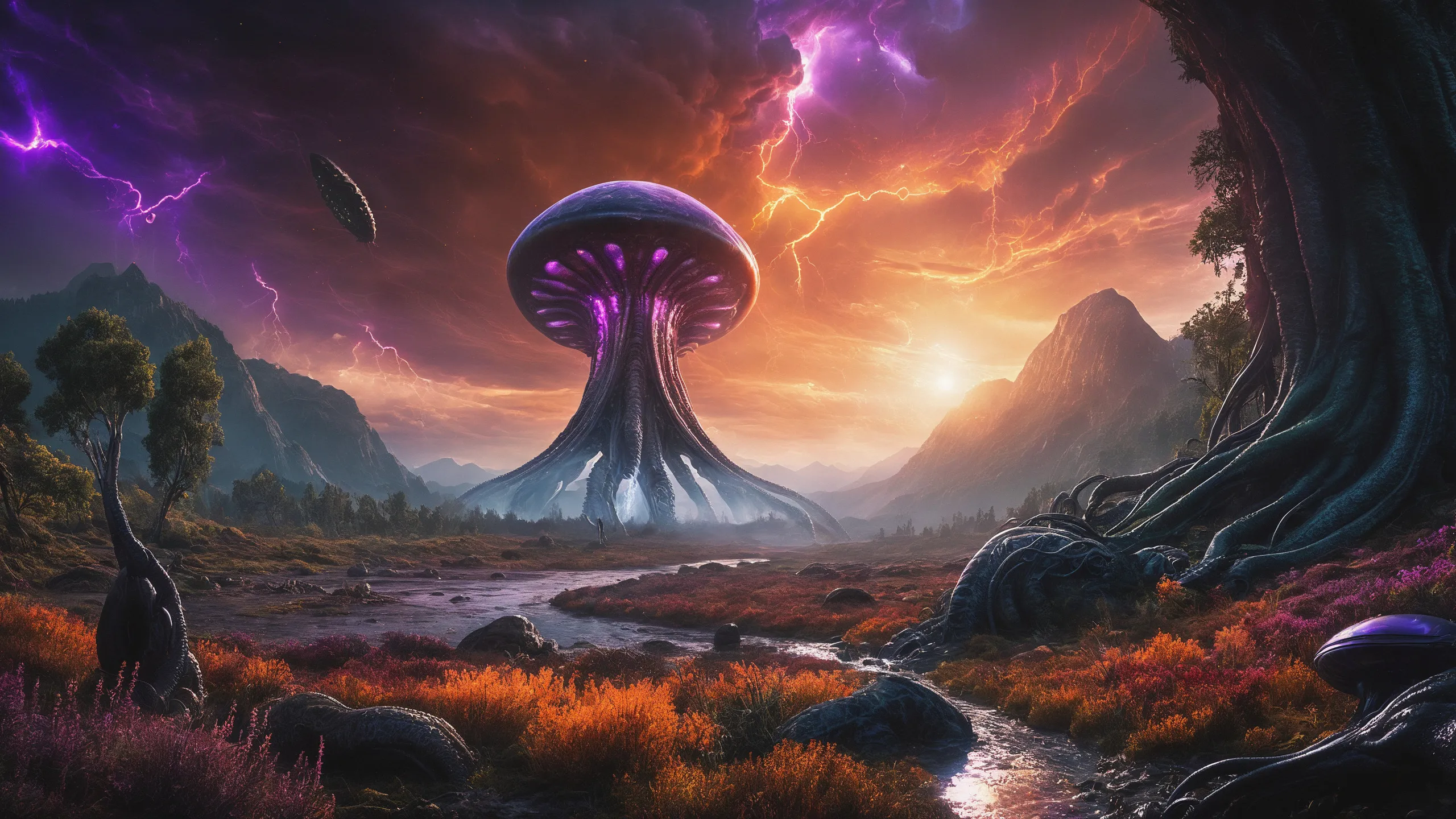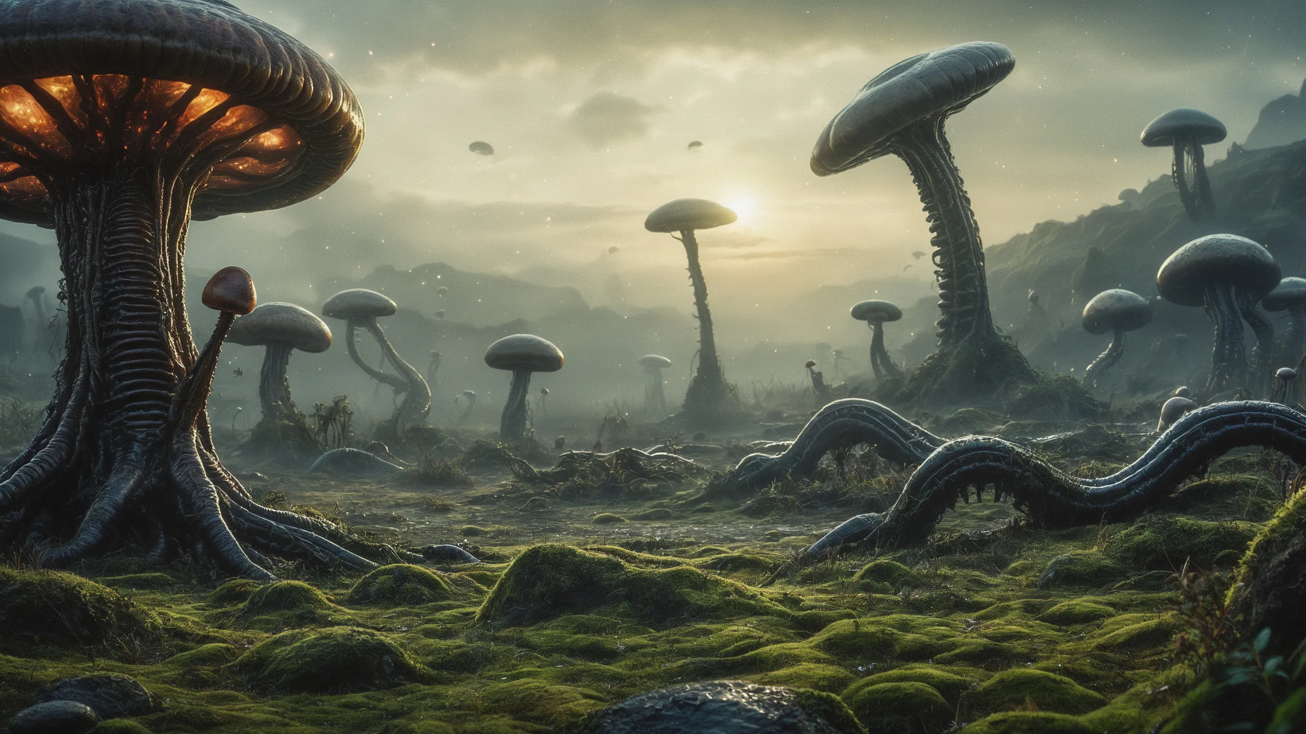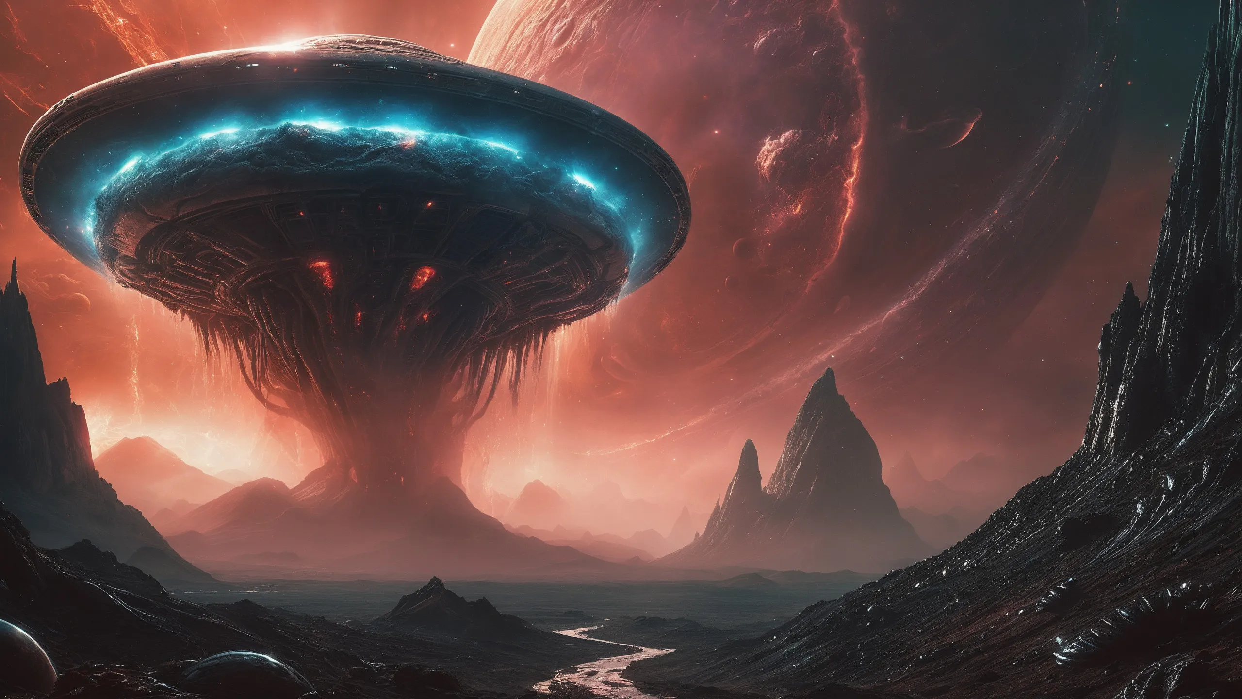 Cinematic epic scene of a (Sience Fiction, alien {mega city|cityscape|landscape|space station|outer space|world}:1.5).