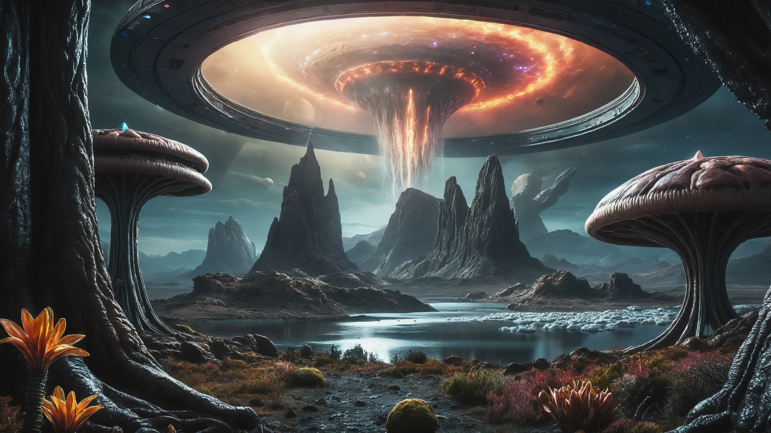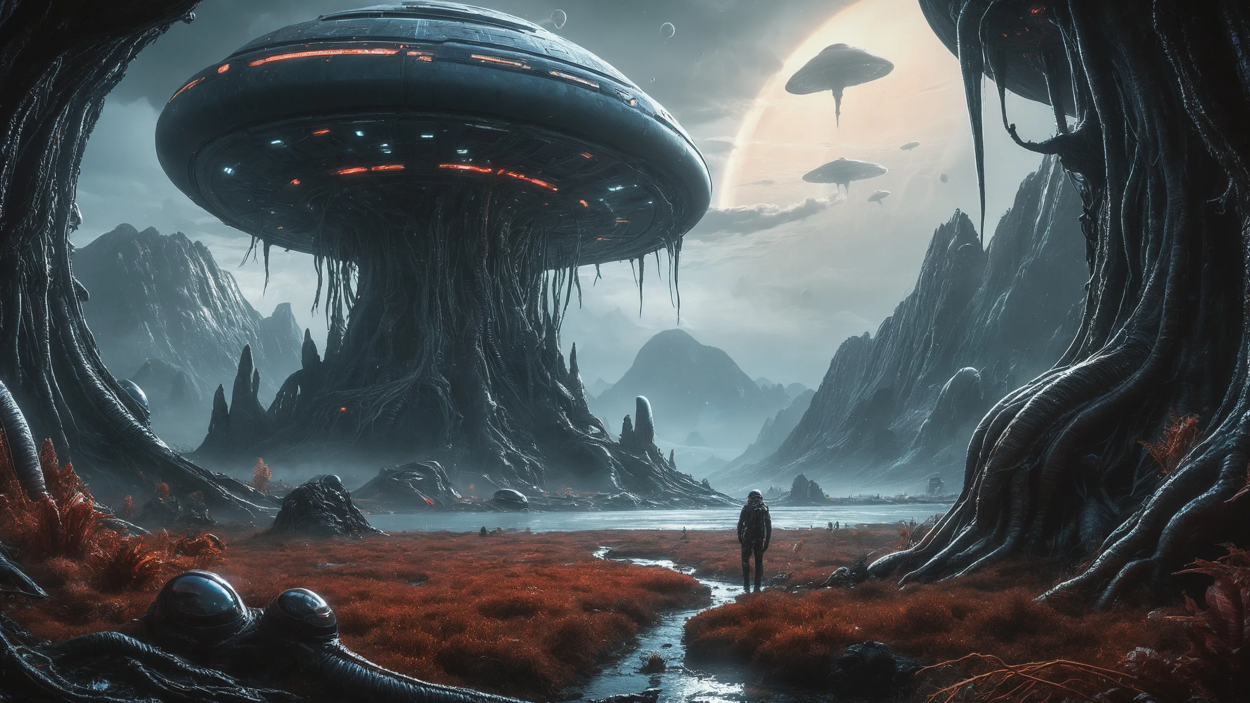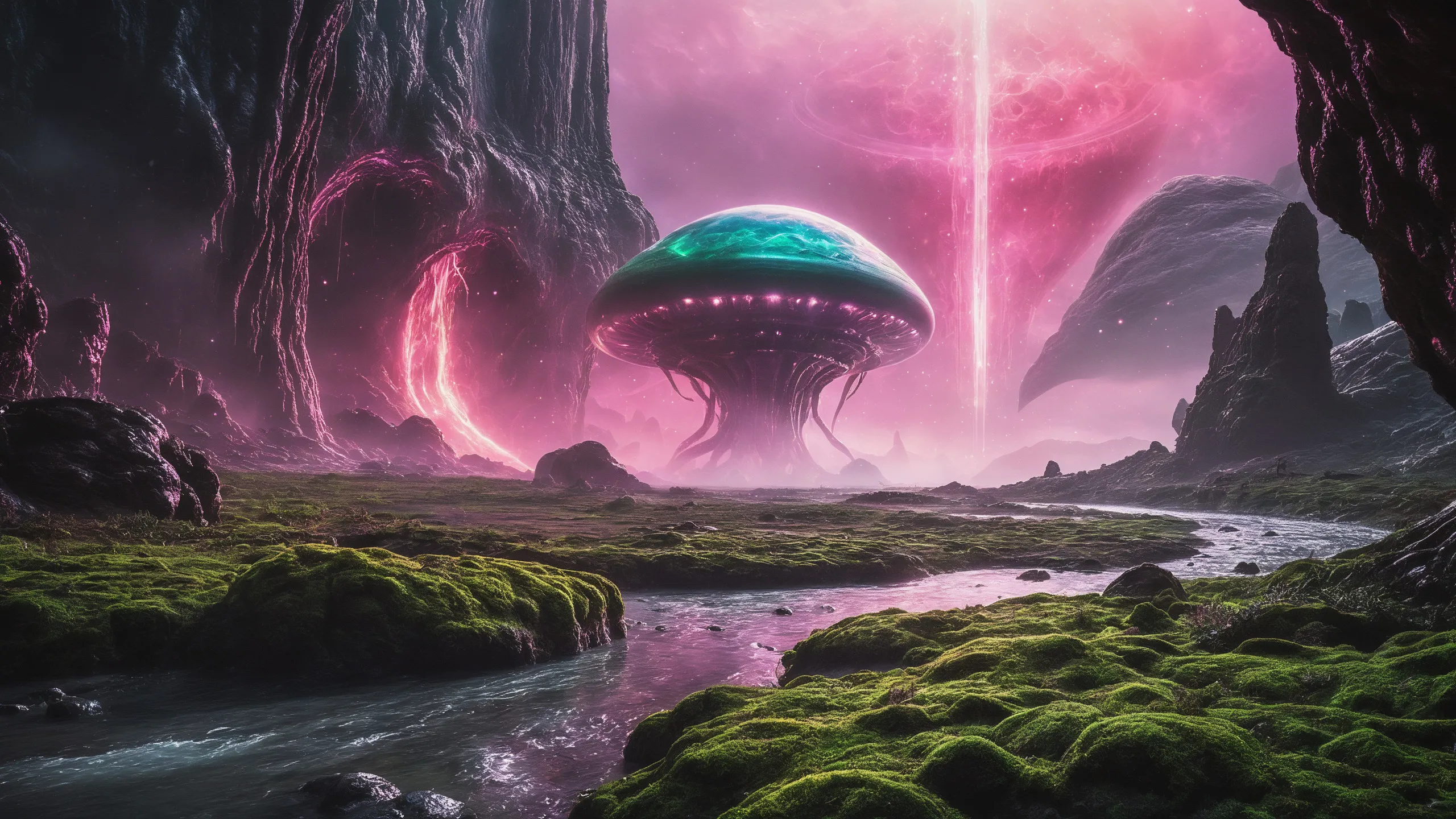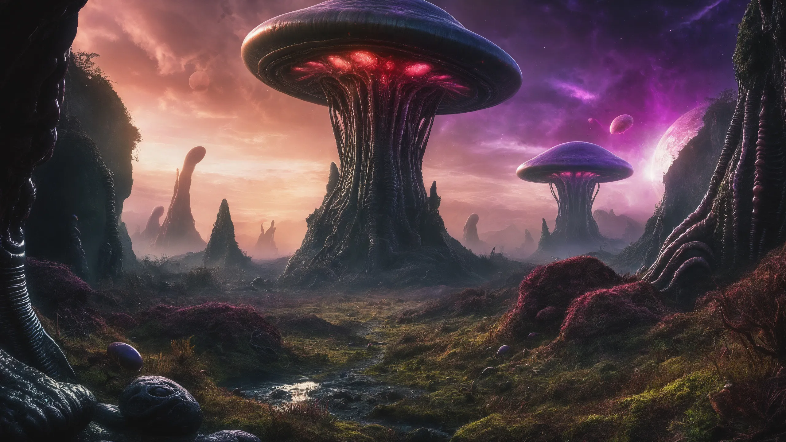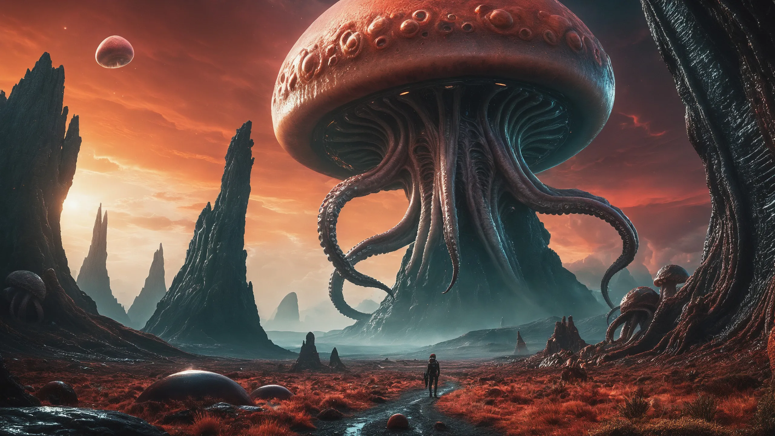 Cinematic epic scene of a (Sience Fiction, alien {mega city|cityscape|landscape|space station|outer space|world}:1.5).