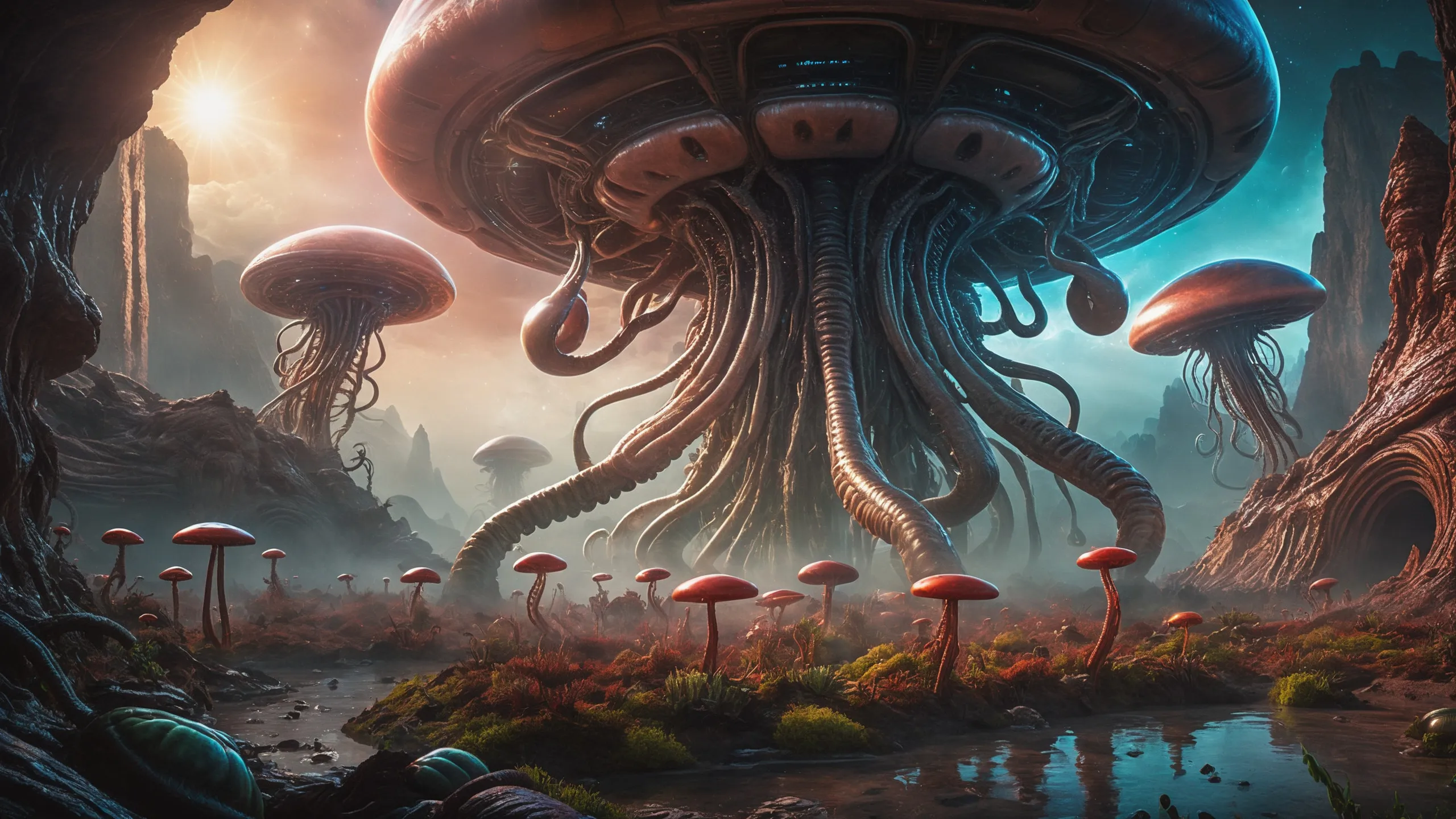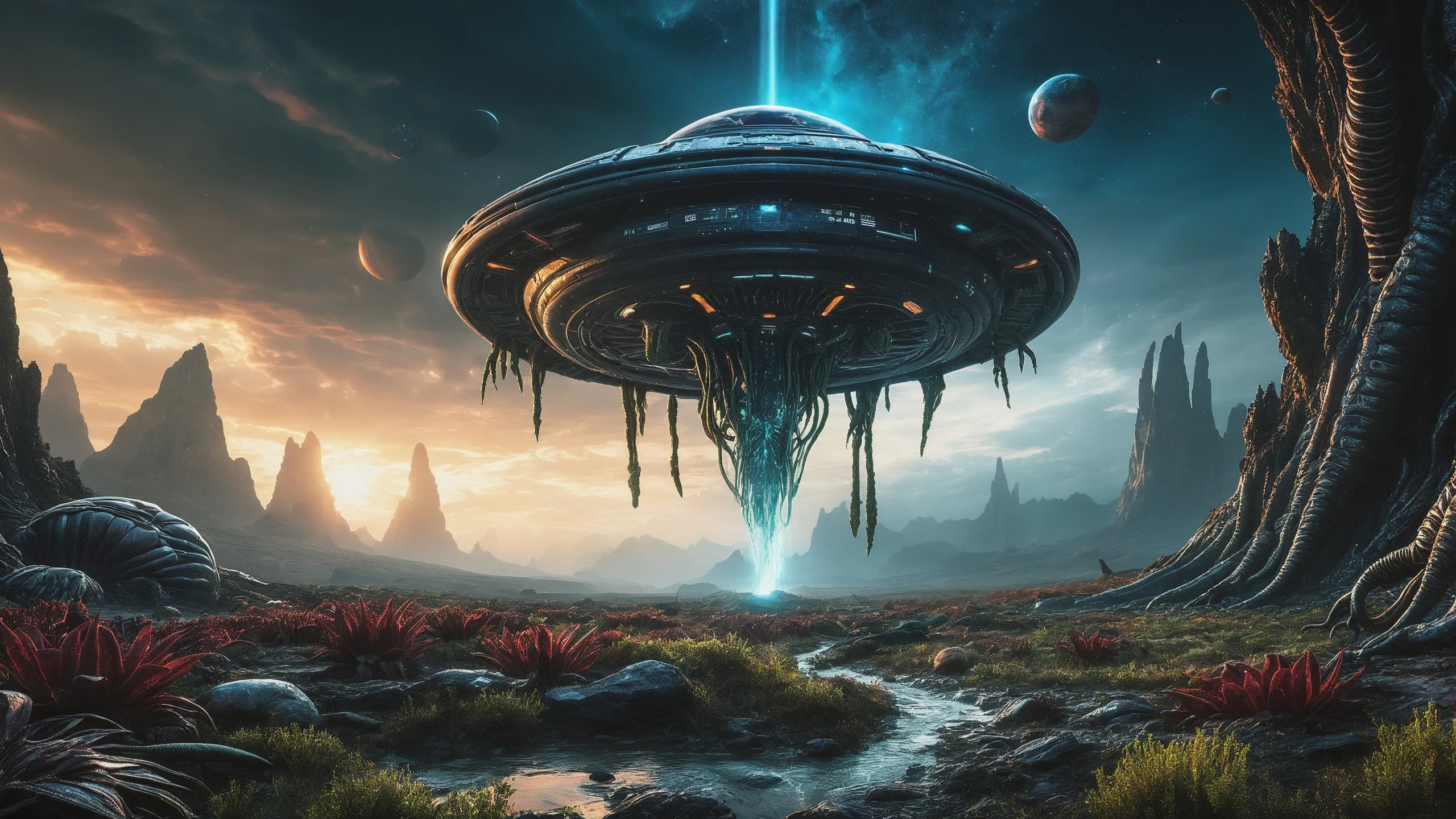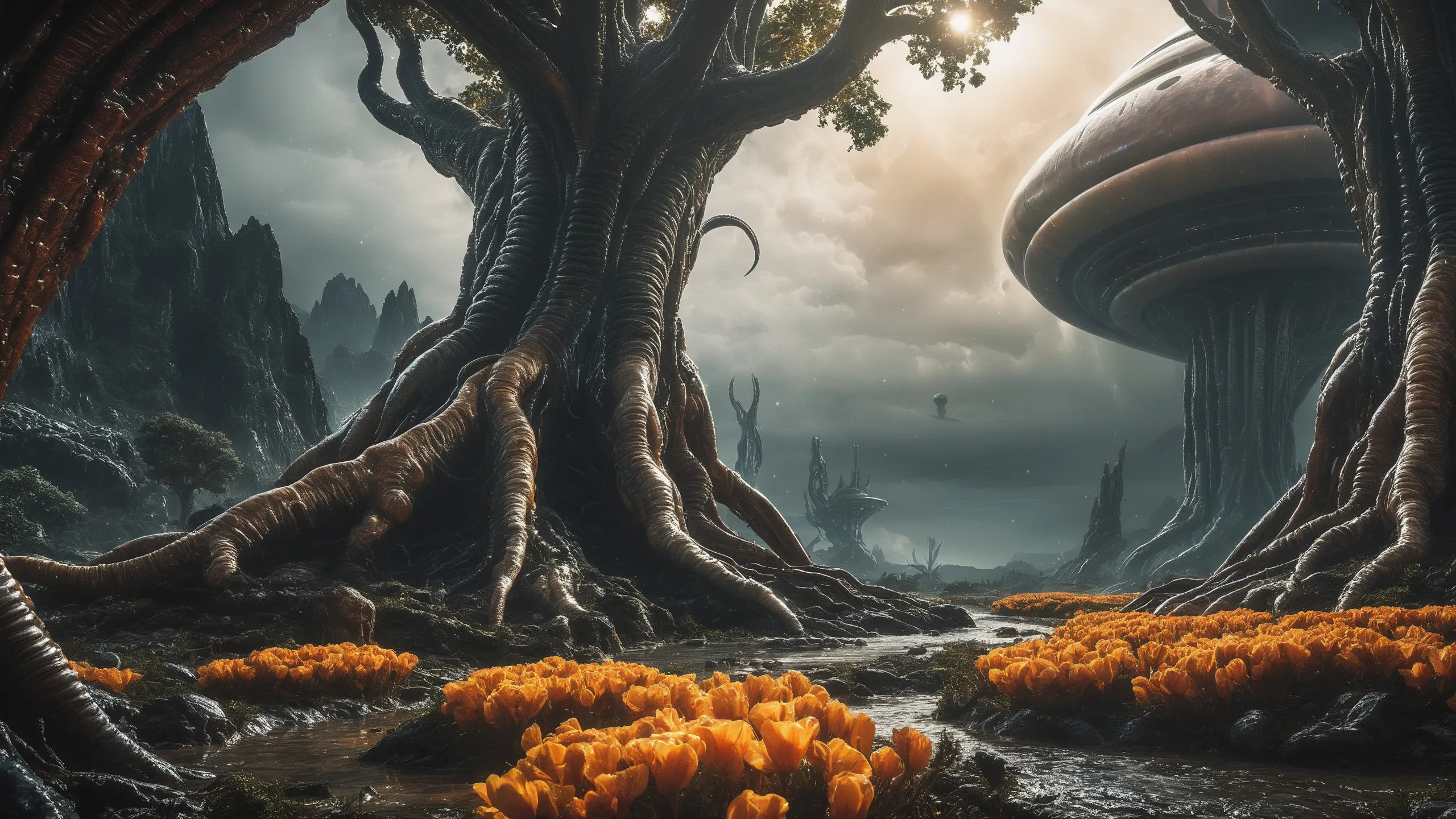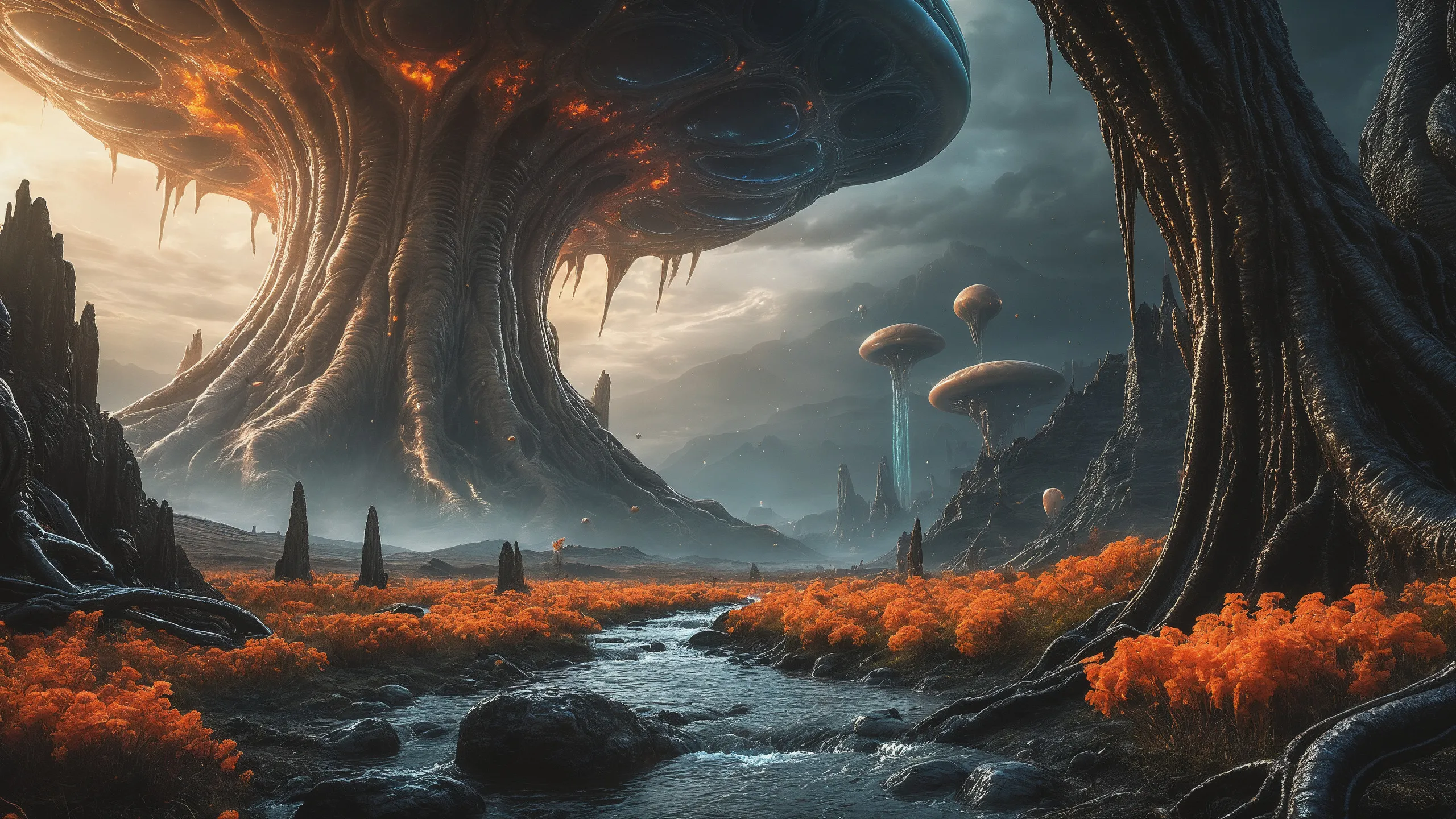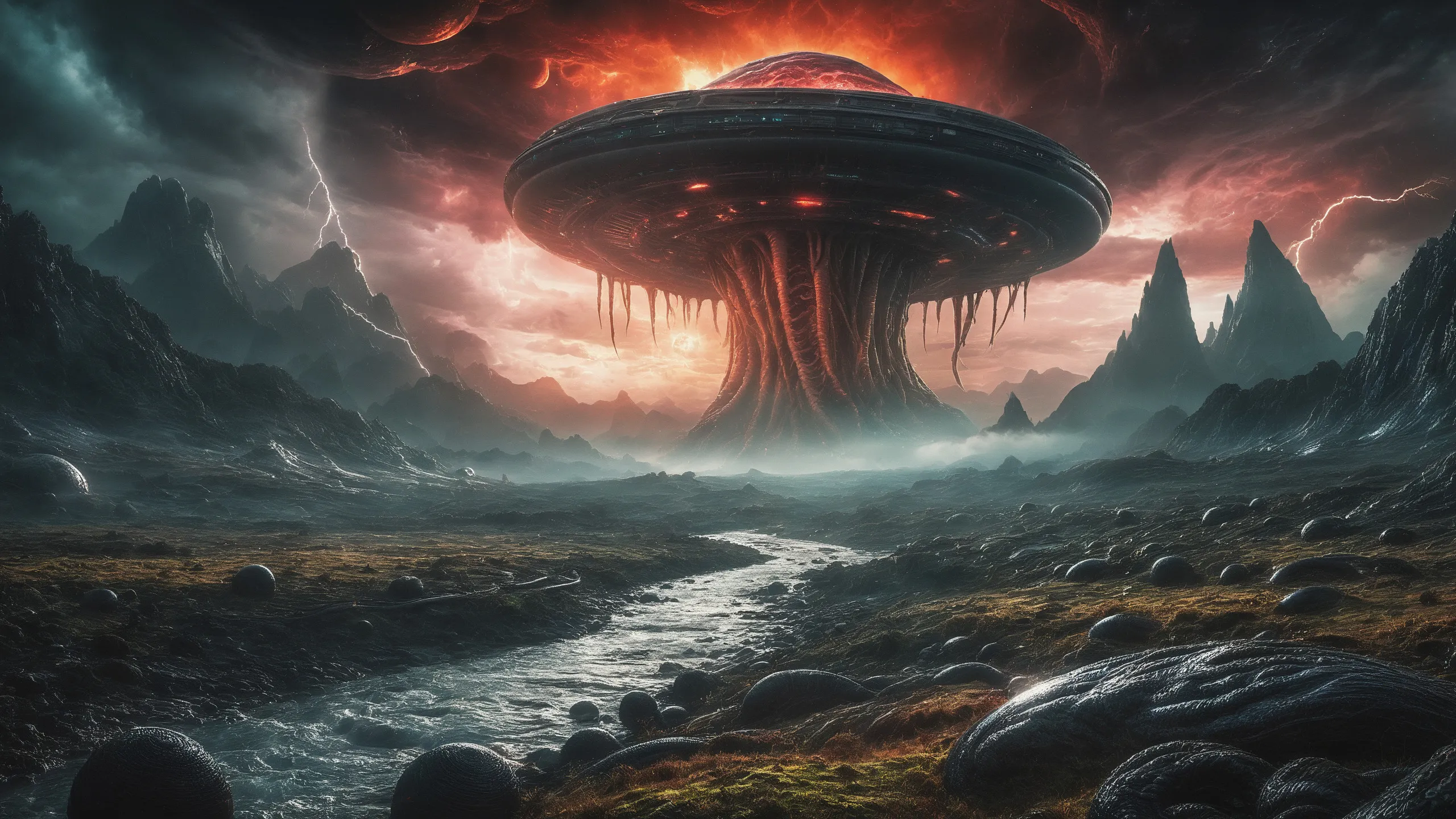 Cinematic epic scene of a (Sience Fiction, alien {mega city|cityscape|landscape|space station|outer space|world}:1.5).