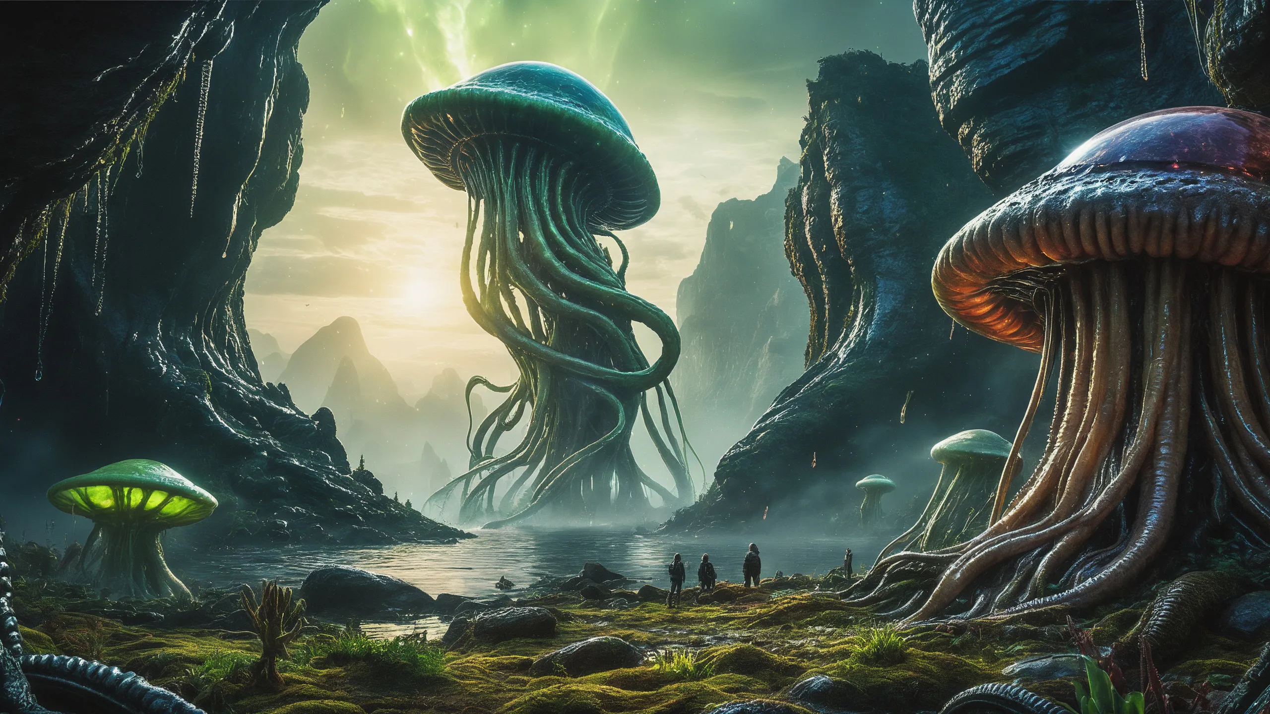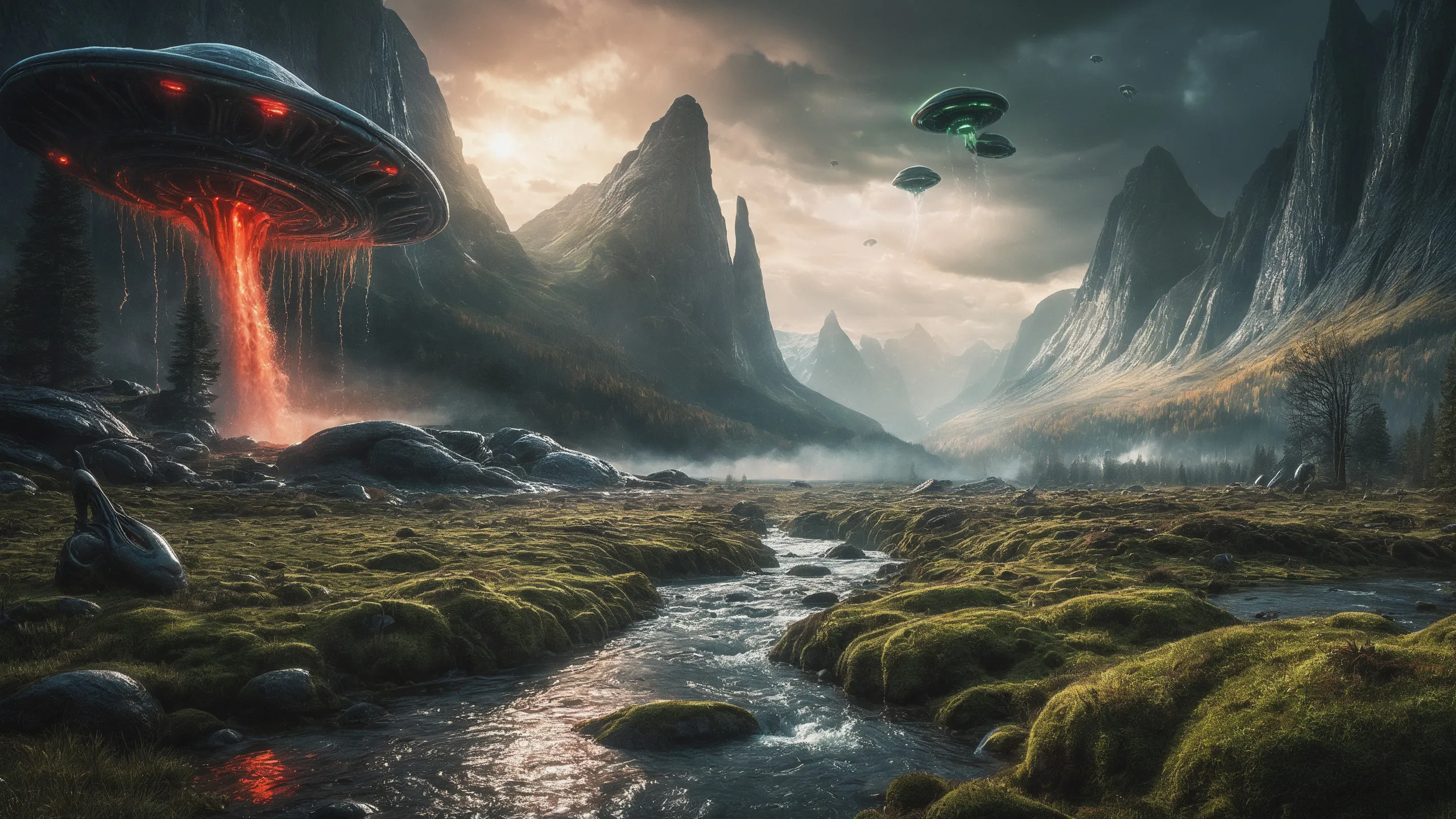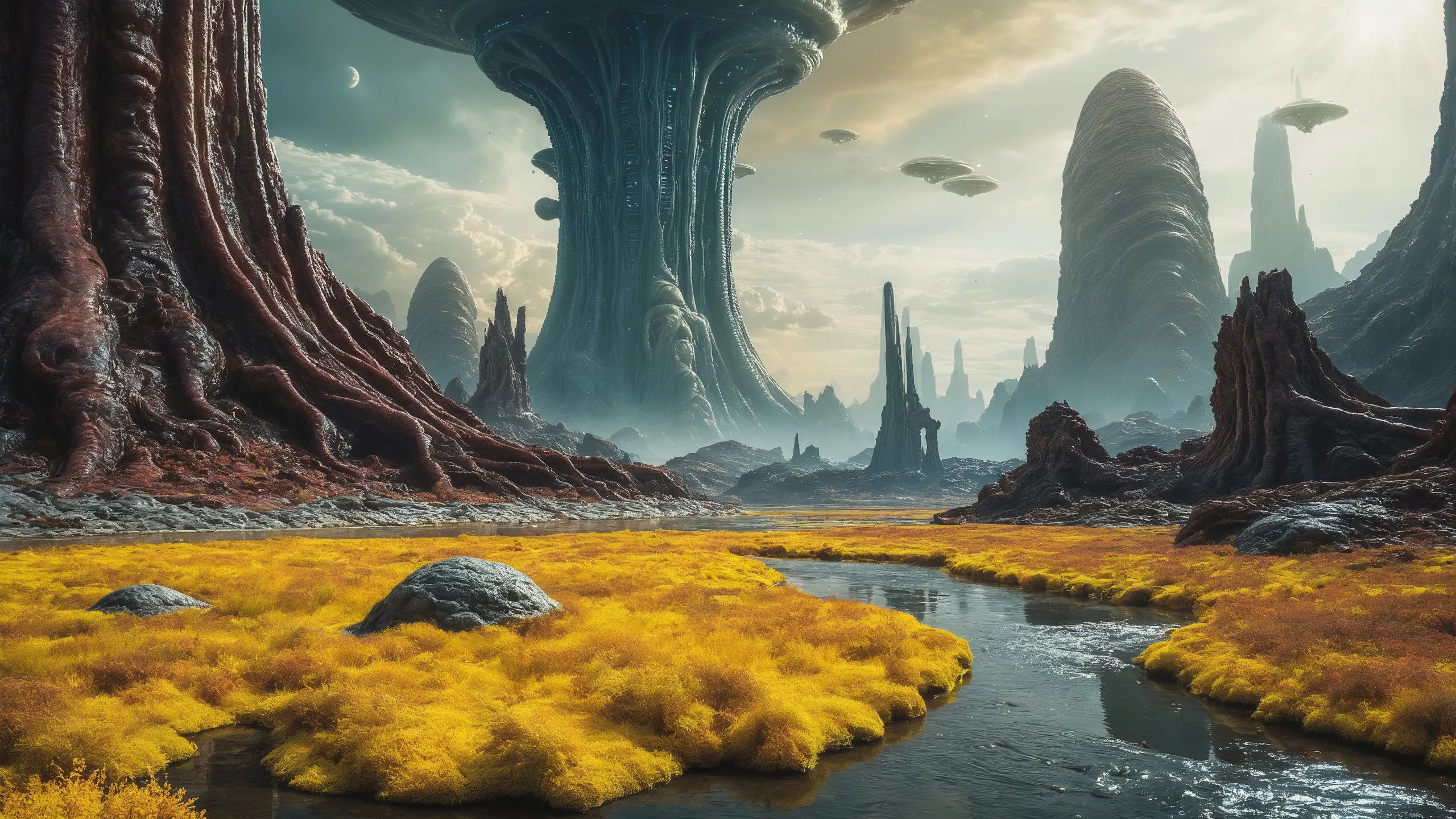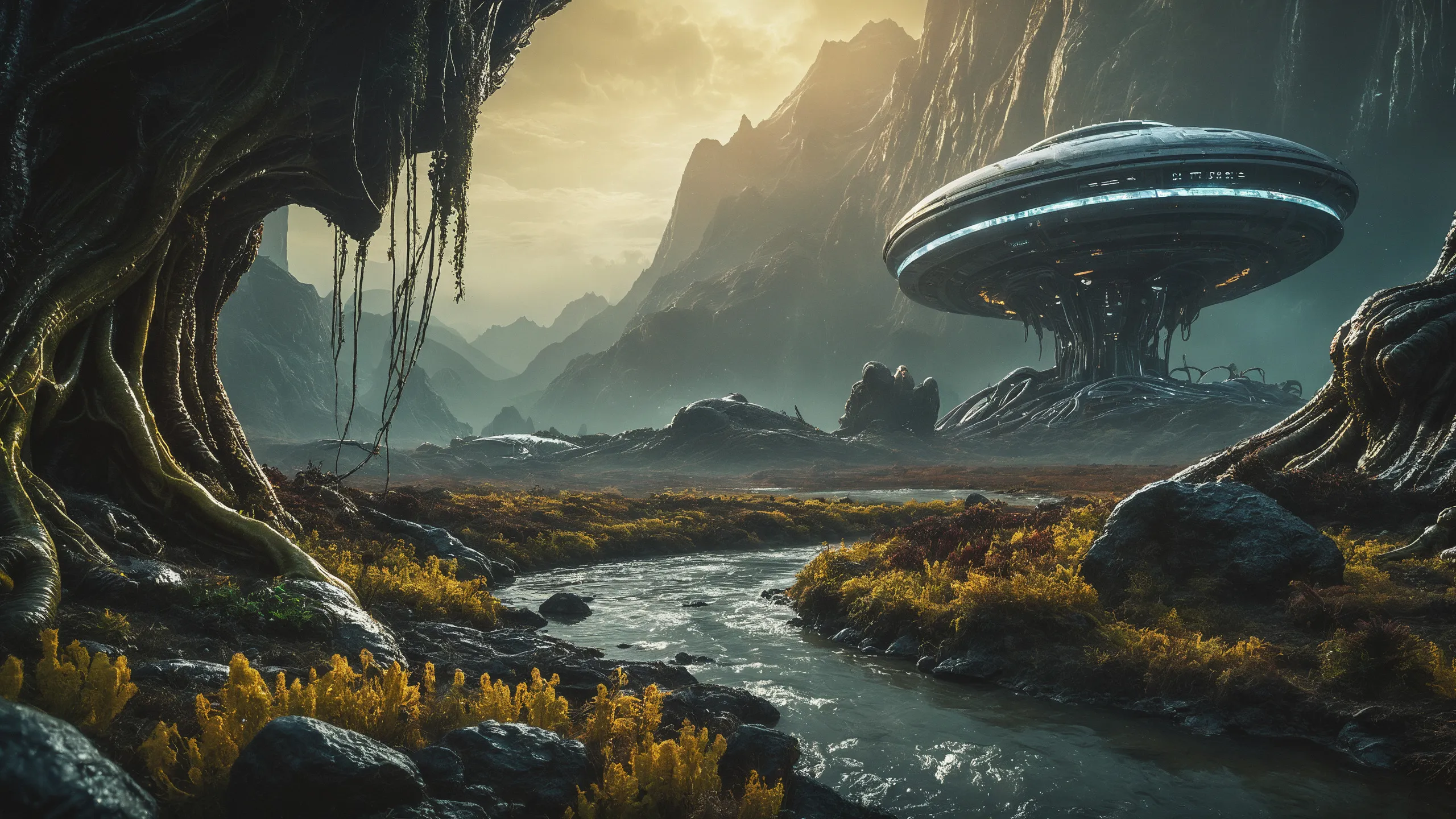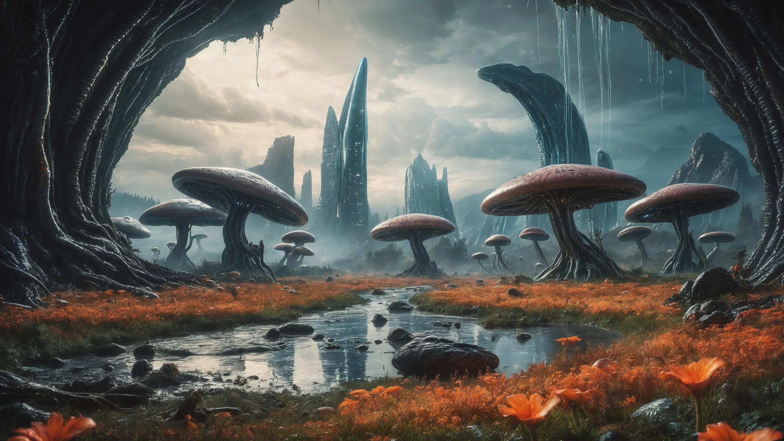 Cinematic epic scene of a (Sience Fiction, alien {mega city|cityscape|landscape|space station|outer space|world}:1.5).