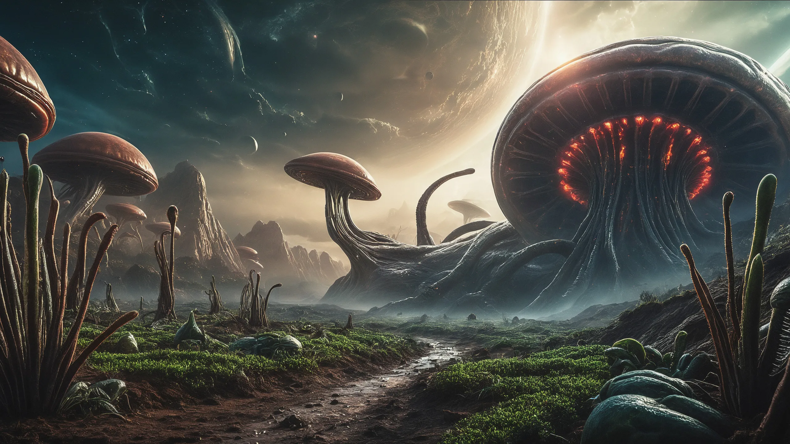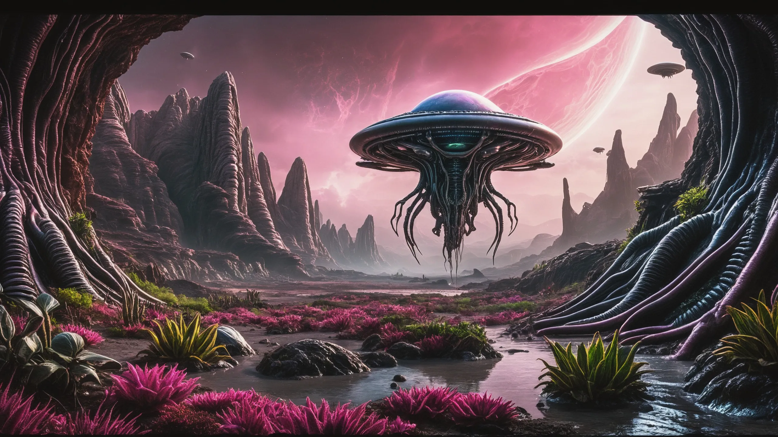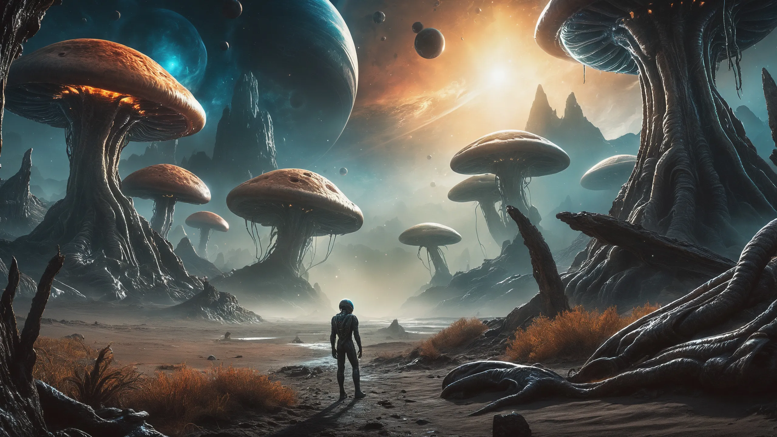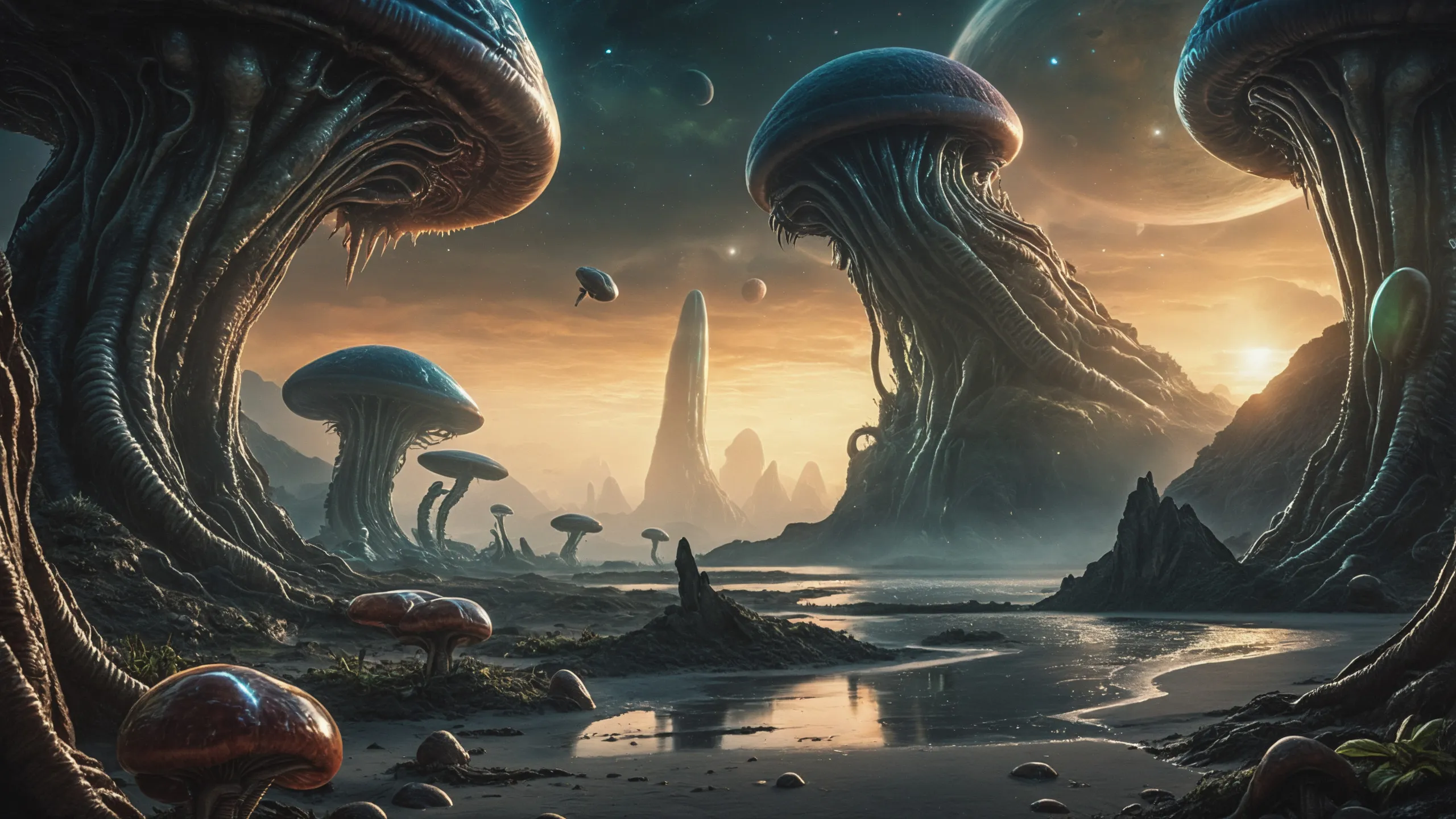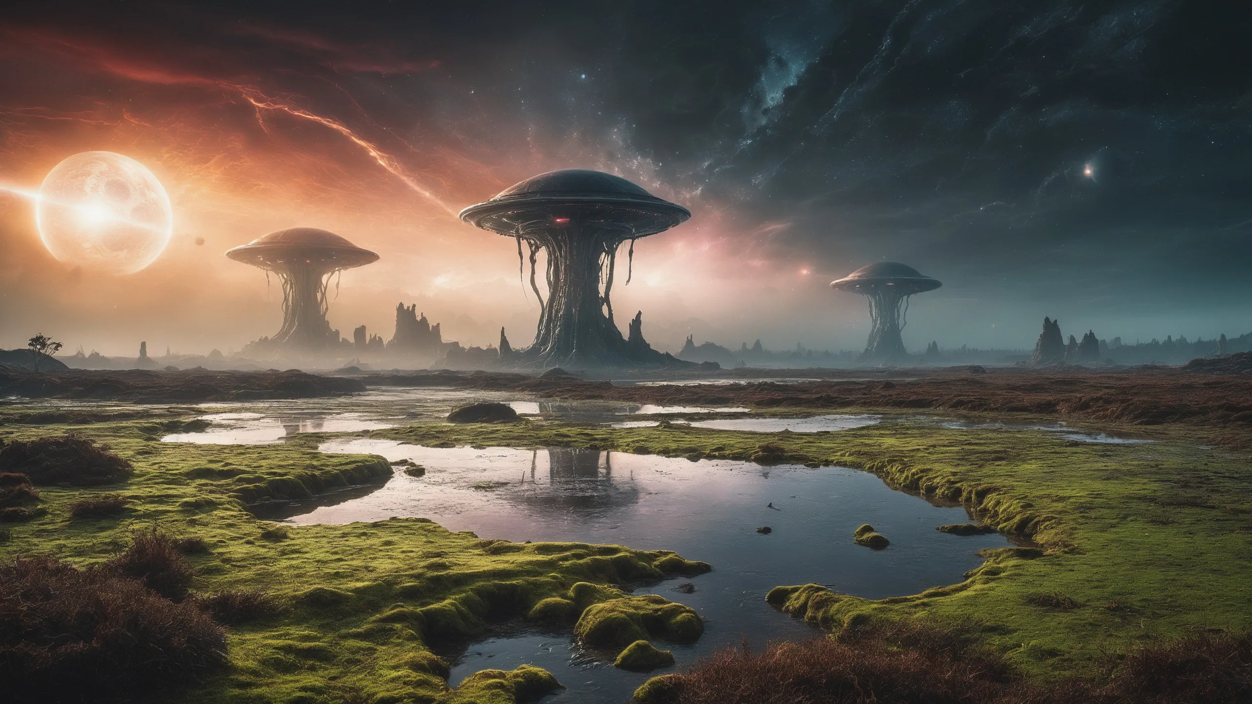 {Ice World|Diamond Plains|Bio-Luminescent Landscape|Mossy Meadows|Shifting Sands|Crystal Forests|Floating Islands|Acid Pools|Volcanic Plains|Perpetual Storms|Megastructures|Terraforming Projects|Methane Sea|Metallic Plains|tidelands|Seashore|beach|coast|cliff|lake|river|creek|djungle|grassland|flower|taiga|tundra|savannah|wetlands|desert|dunes|mangroves|salt flats|salt marshes|ice|majestic mountain|mountain|Swamp|marsh area|rain forests|badlands|wastelands} landsscape.