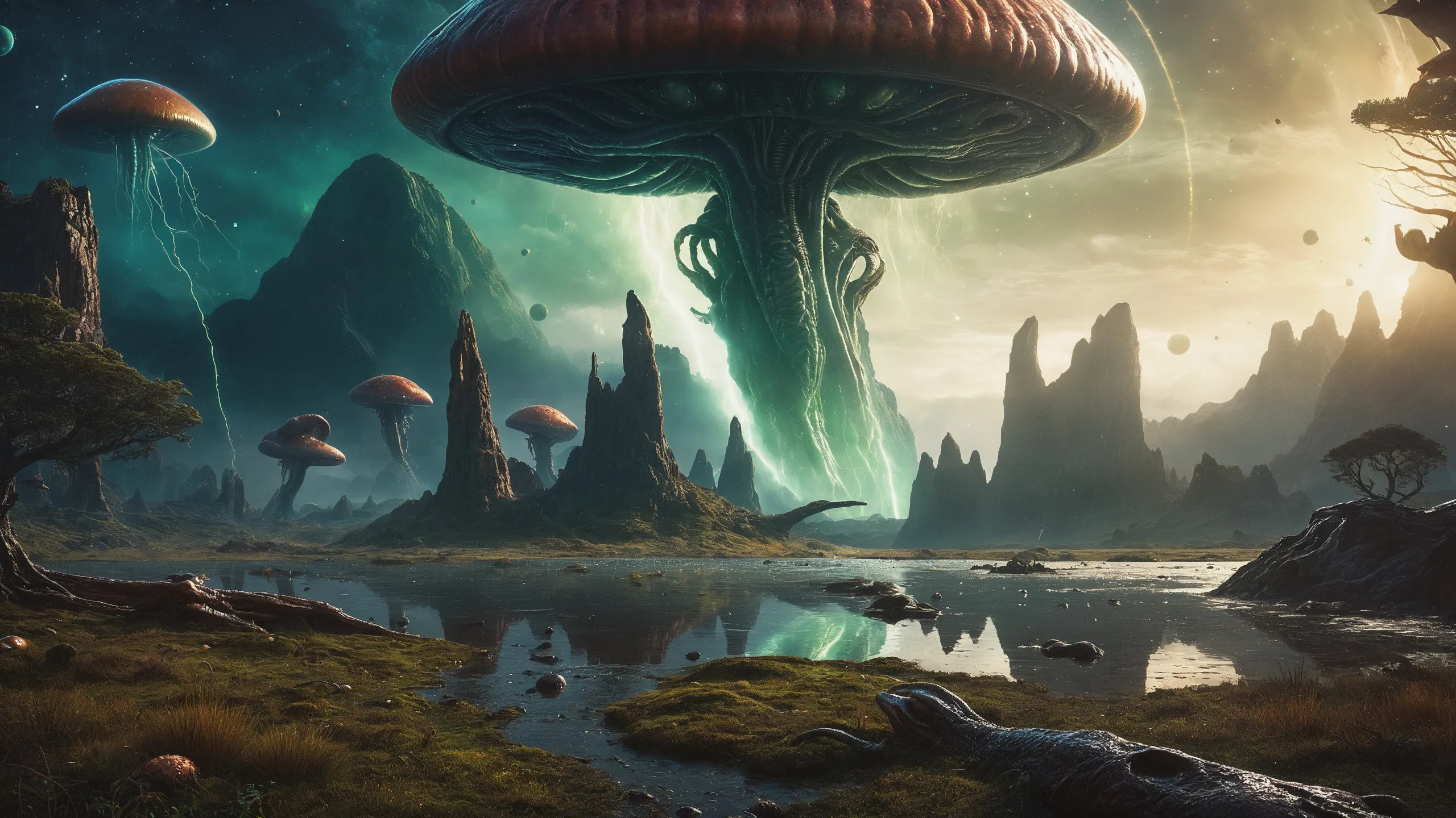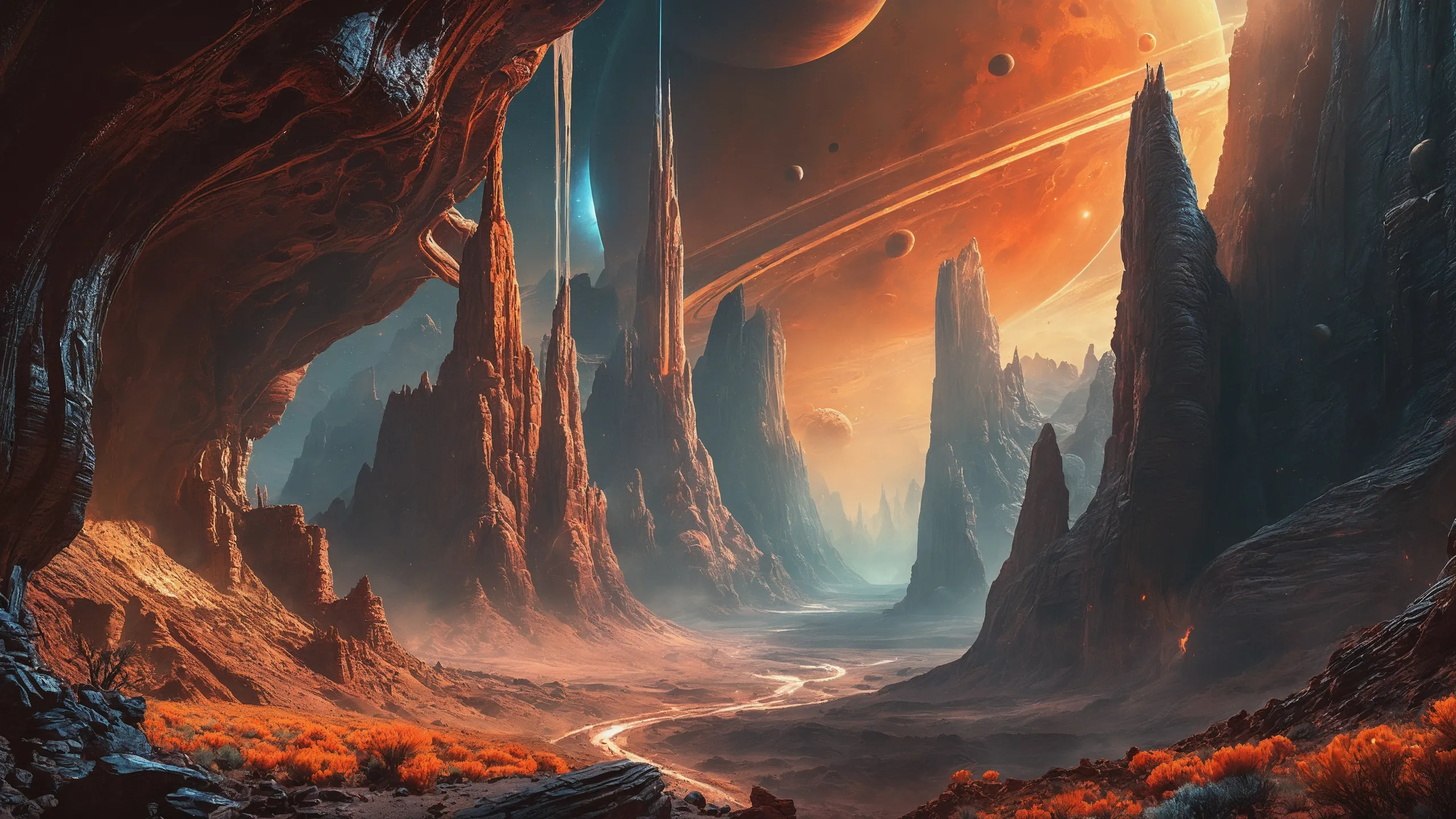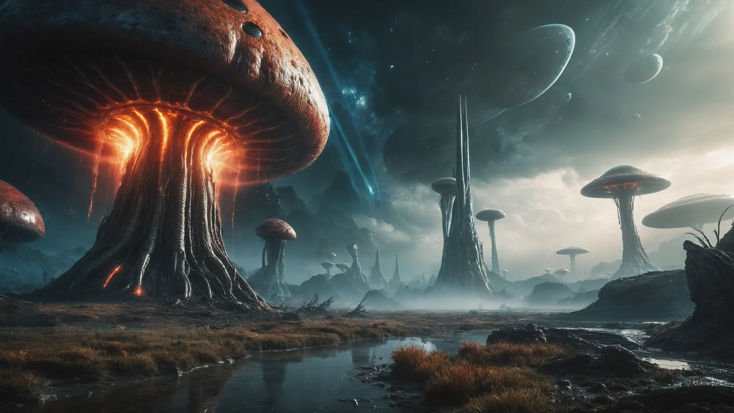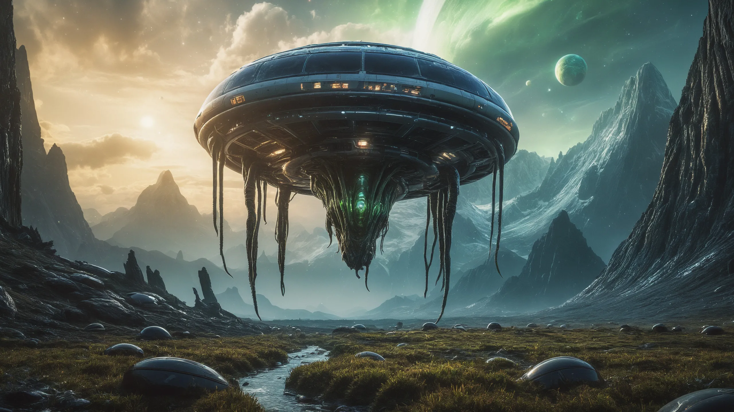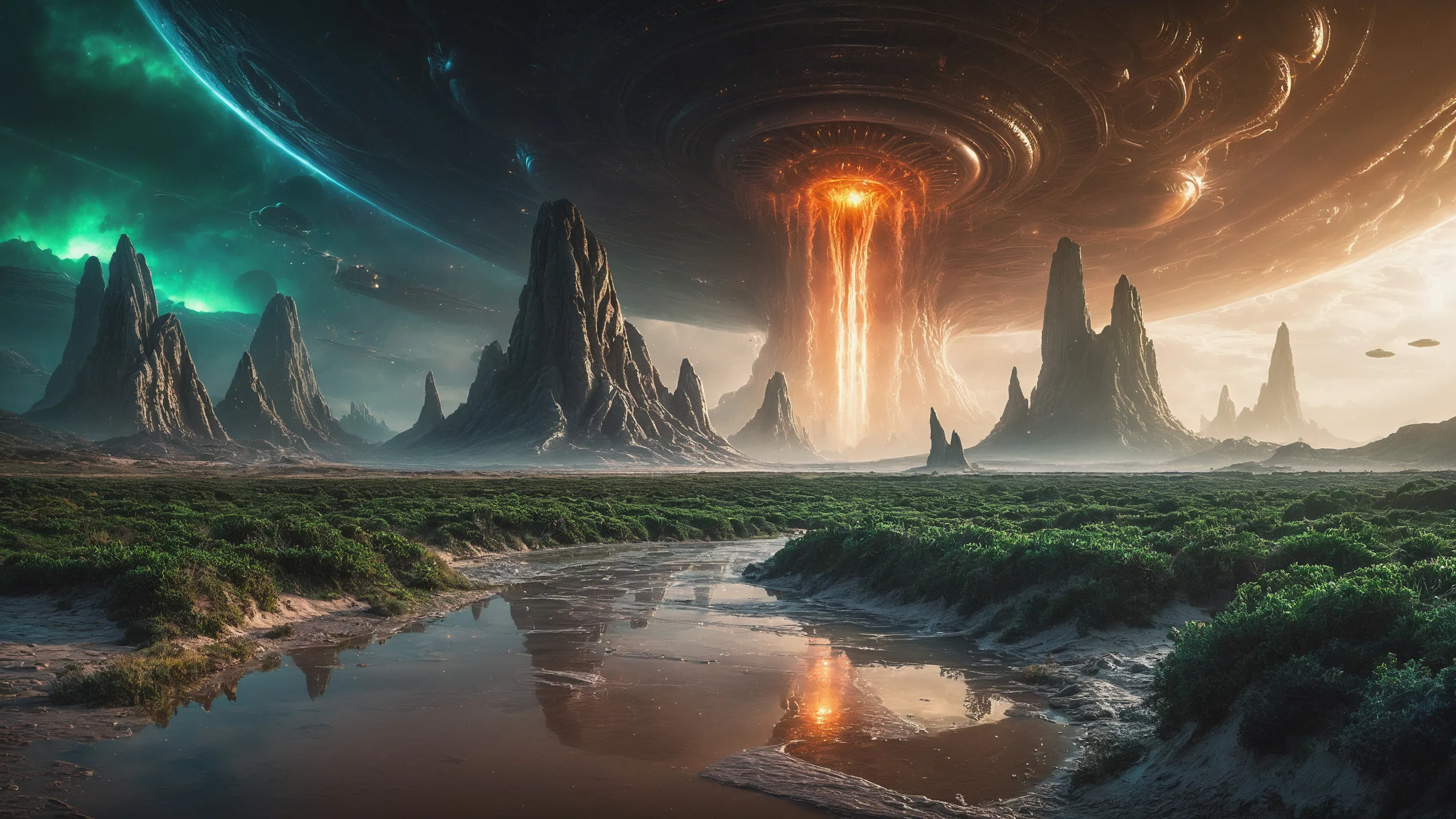 {Ice World|Diamond Plains|Bio-Luminescent Landscape|Mossy Meadows|Shifting Sands|Crystal Forests|Floating Islands|Acid Pools|Volcanic Plains|Perpetual Storms|Megastructures|Terraforming Projects|Methane Sea|Metallic Plains|tidelands|Seashore|beach|coast|cliff|lake|river|creek|djungle|grassland|flower|taiga|tundra|savannah|wetlands|desert|dunes|mangroves|salt flats|salt marshes|ice|majestic mountain|mountain|Swamp|marsh area|rain forests|badlands|wastelands} landsscape.
