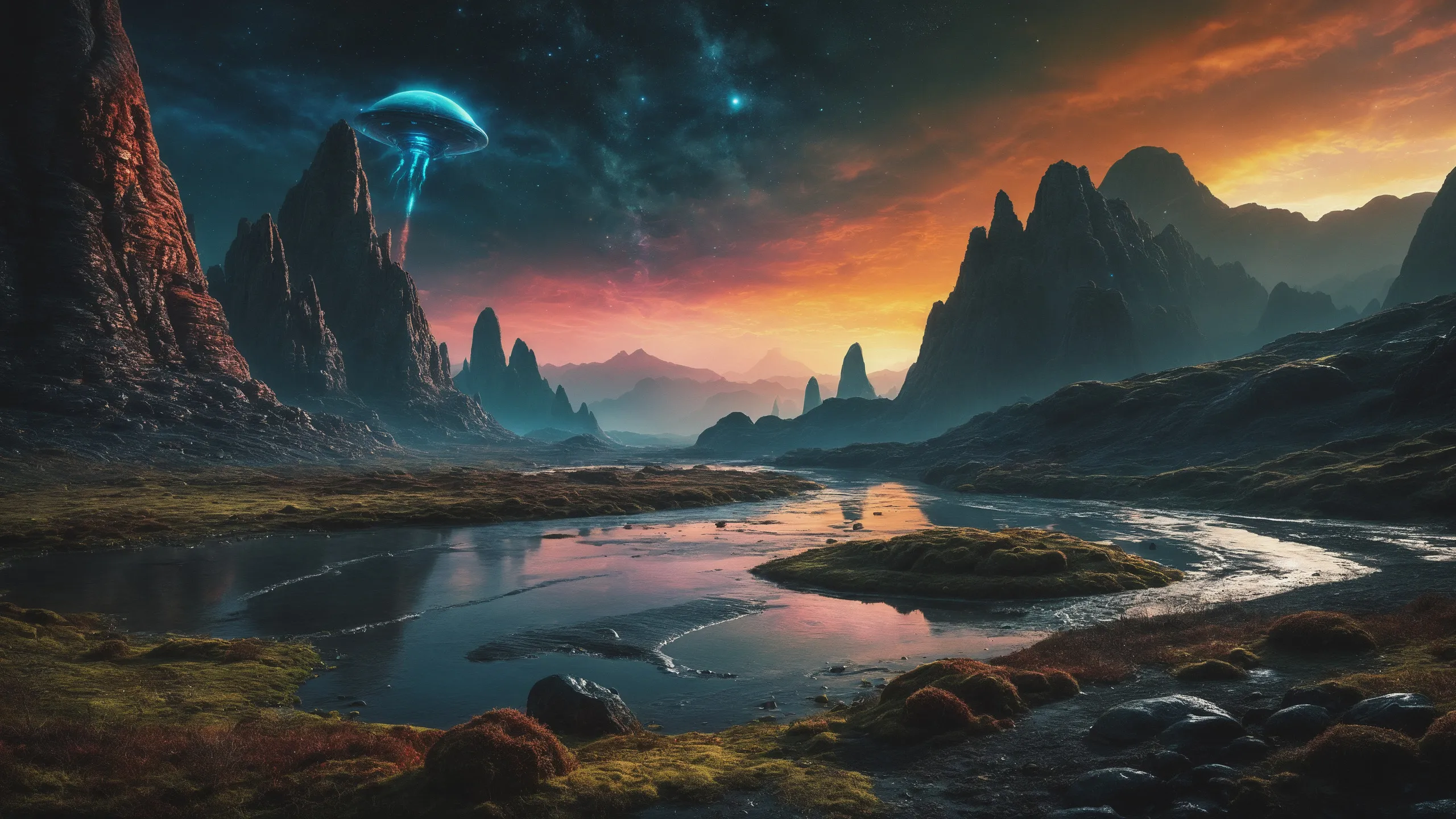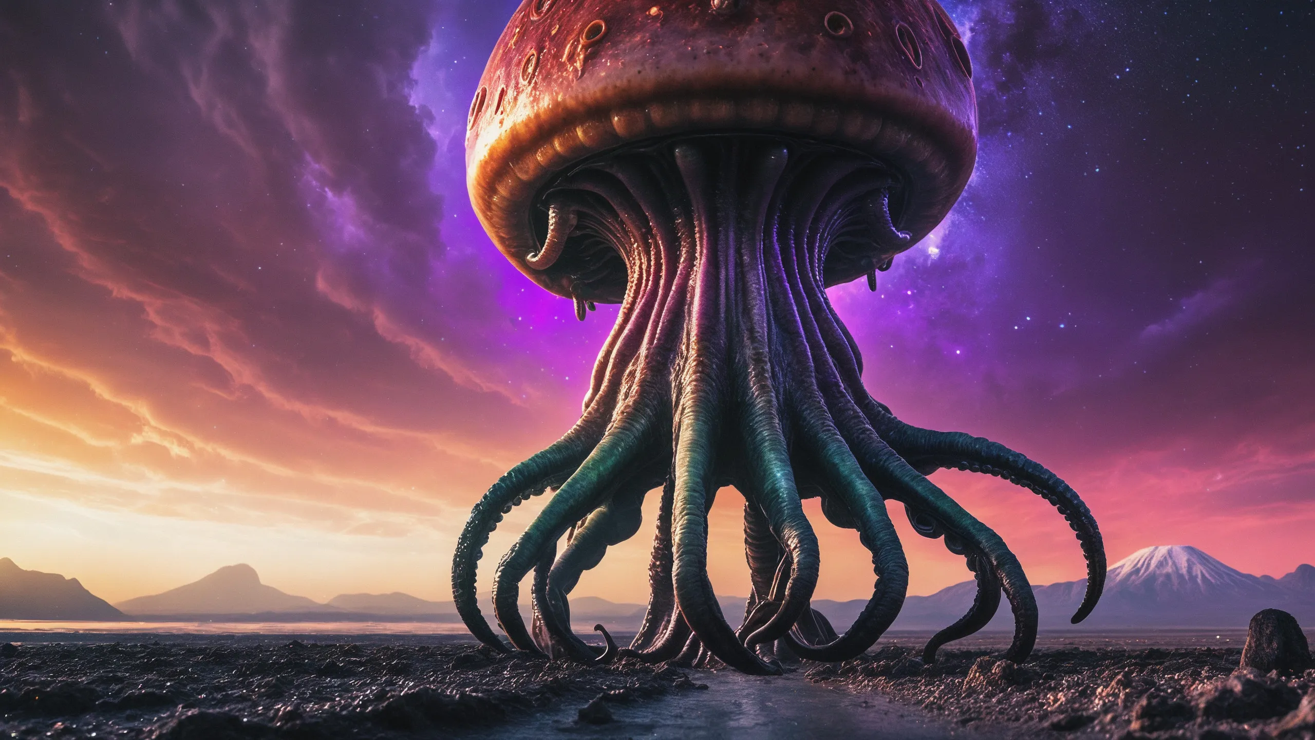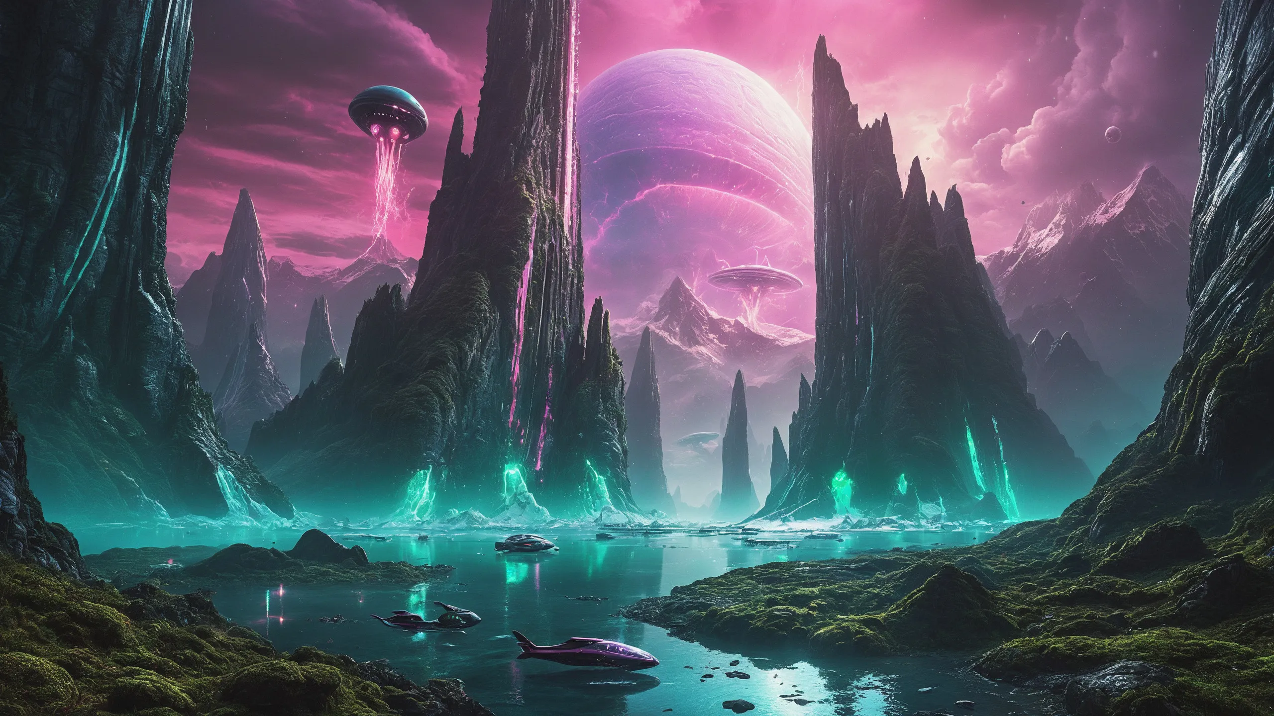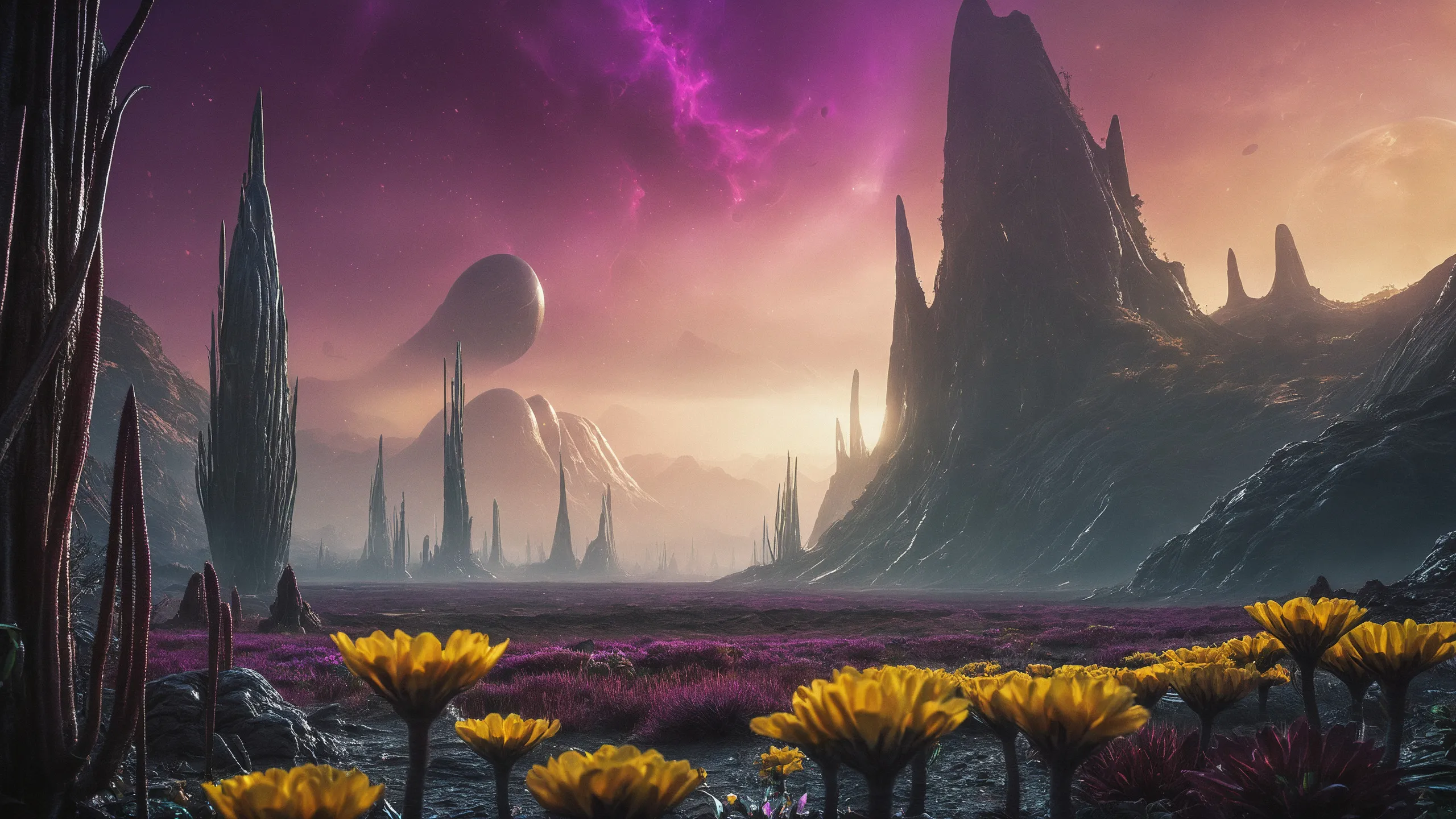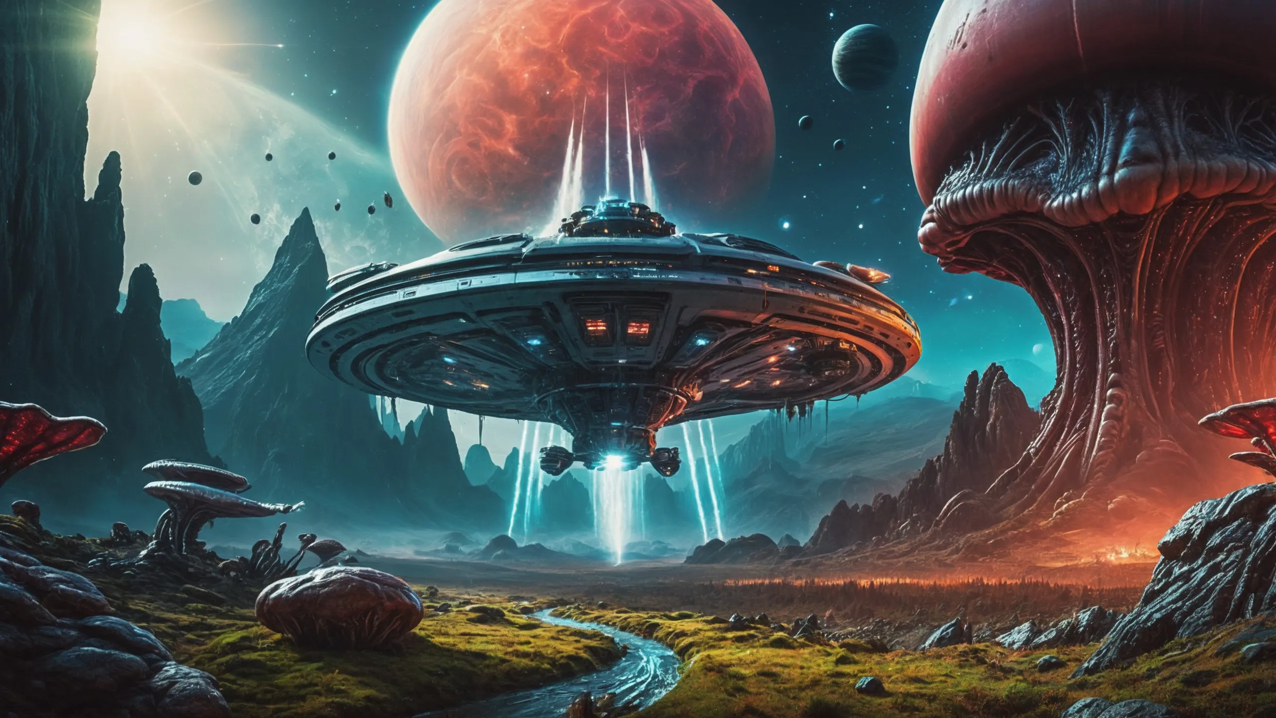 {Ice World|Diamond Plains|Bio-Luminescent Landscape|Mossy Meadows|Shifting Sands|Crystal Forests|Floating Islands|Acid Pools|Volcanic Plains|Perpetual Storms|Megastructures|Terraforming Projects|Methane Sea|Metallic Plains|tidelands|Seashore|beach|coast|cliff|lake|river|creek|djungle|grassland|flower|taiga|tundra|savannah|wetlands|desert|dunes|mangroves|salt flats|salt marshes|ice|majestic mountain|mountain|Swamp|marsh area|rain forests|badlands|wastelands} landsscape.