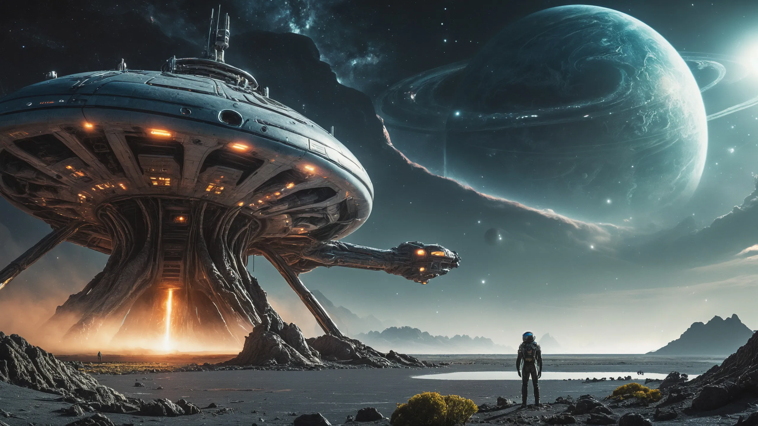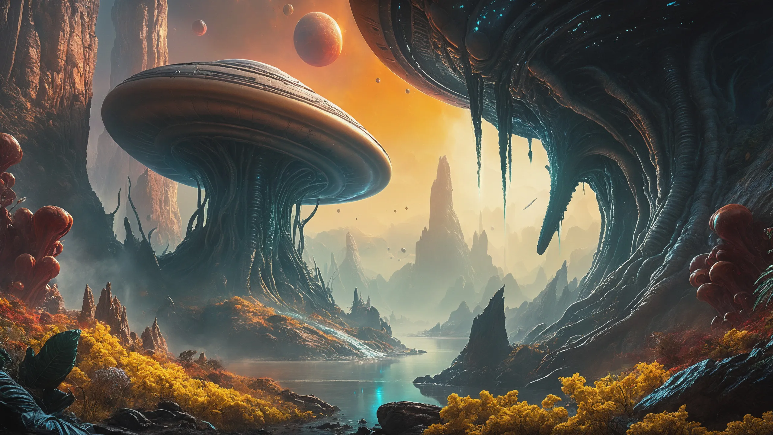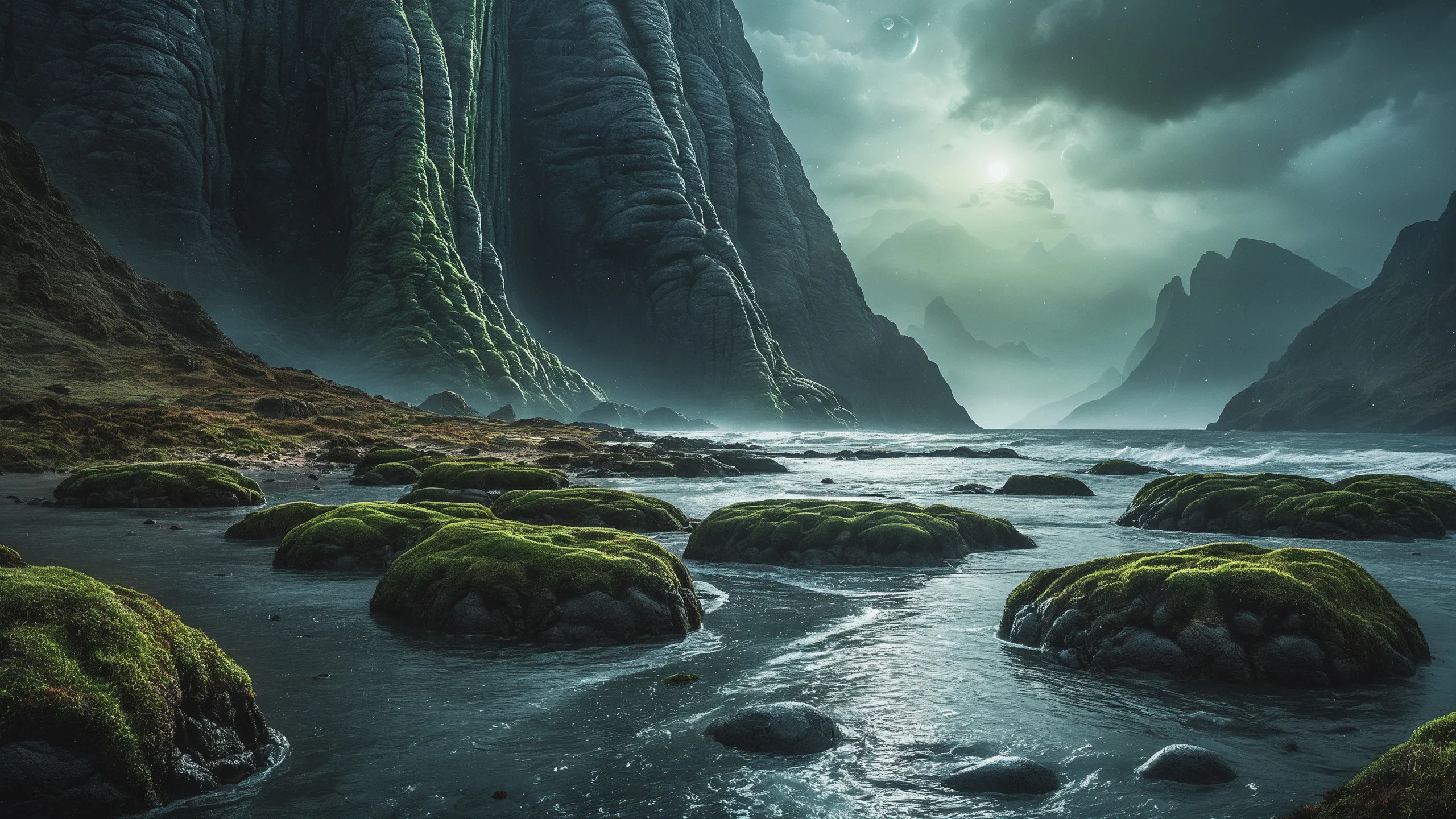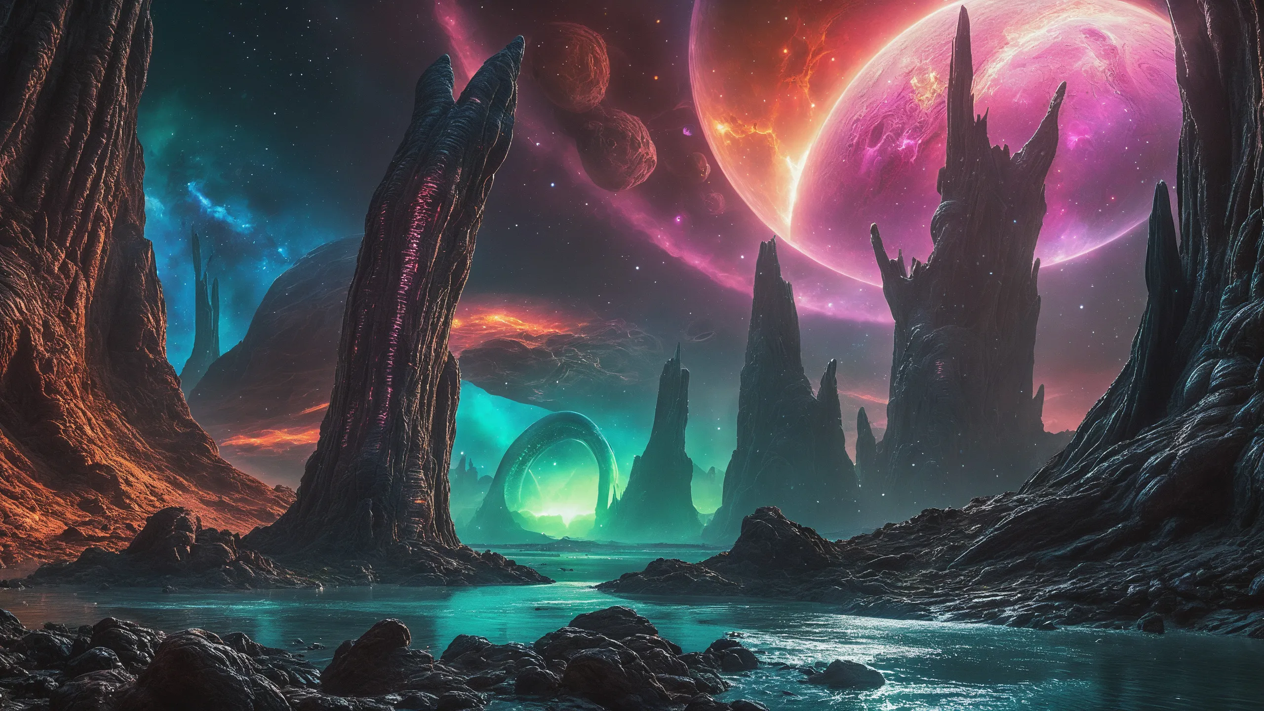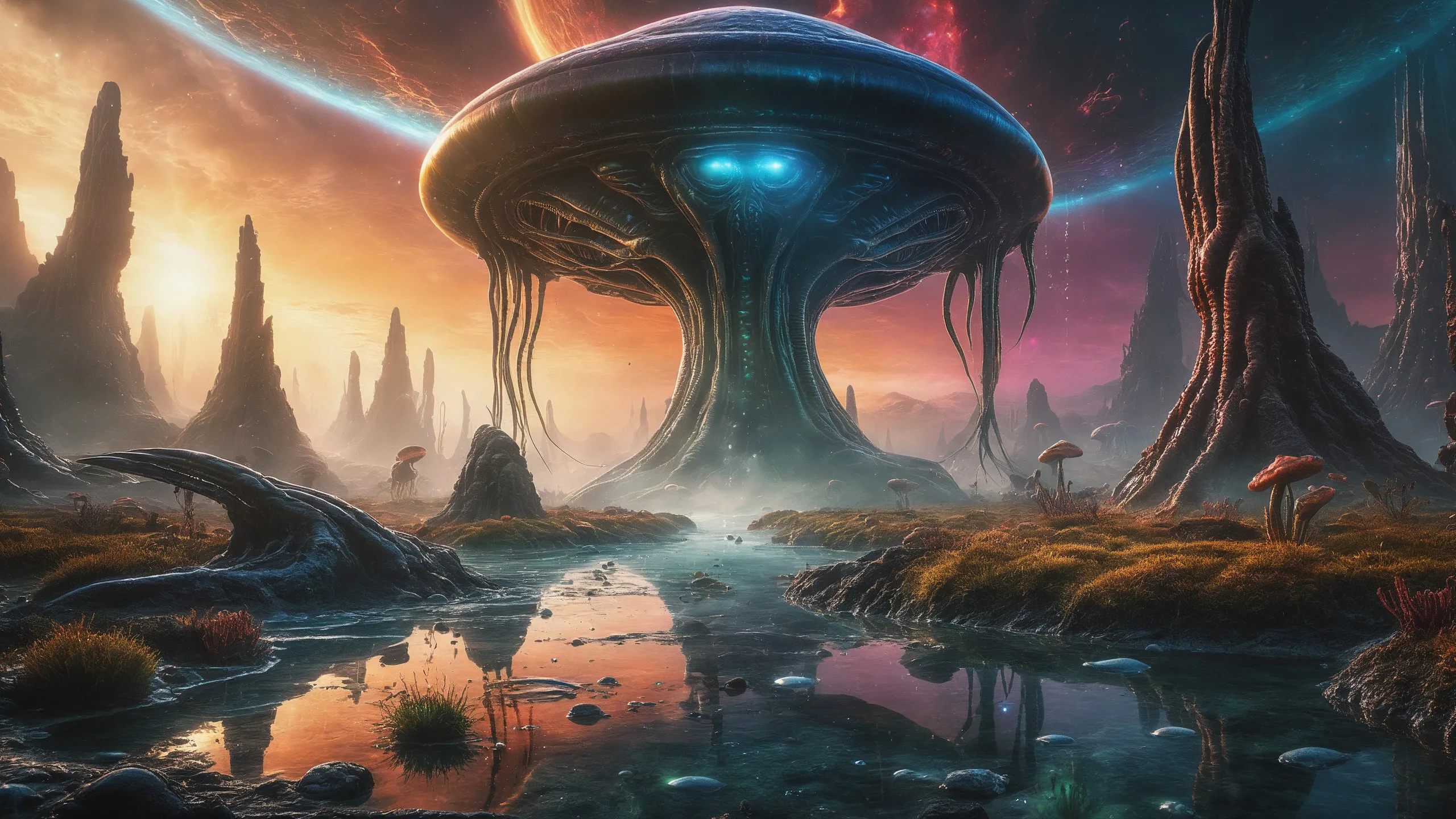 {Ice World|Diamond Plains|Bio-Luminescent Landscape|Mossy Meadows|Shifting Sands|Crystal Forests|Floating Islands|Acid Pools|Volcanic Plains|Perpetual Storms|Megastructures|Terraforming Projects|Methane Sea|Metallic Plains|tidelands|Seashore|beach|coast|cliff|lake|river|creek|djungle|grassland|flower|taiga|tundra|savannah|wetlands|desert|dunes|mangroves|salt flats|salt marshes|ice|majestic mountain|mountain|Swamp|marsh area|rain forests|badlands|wastelands} landsscape.