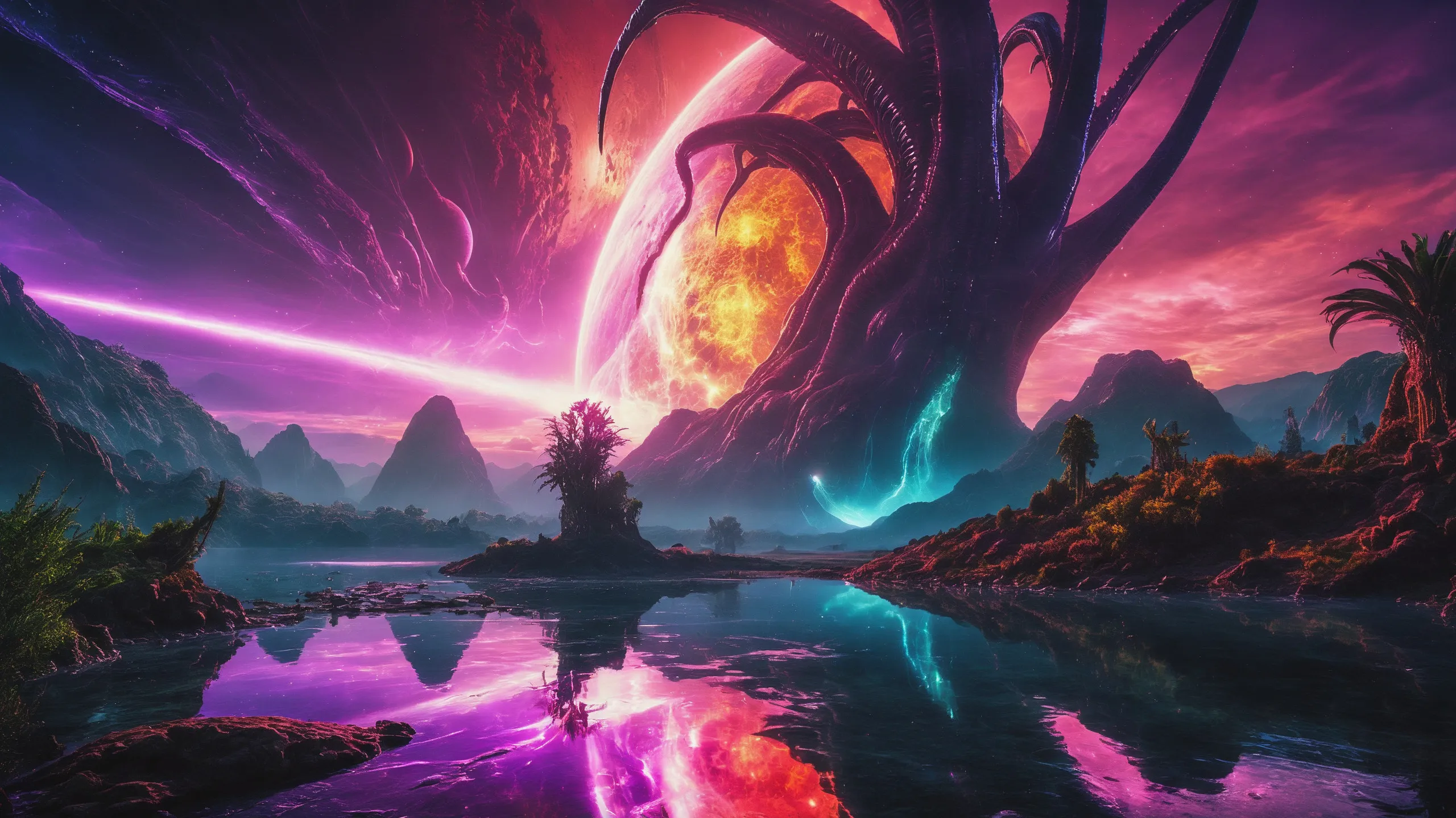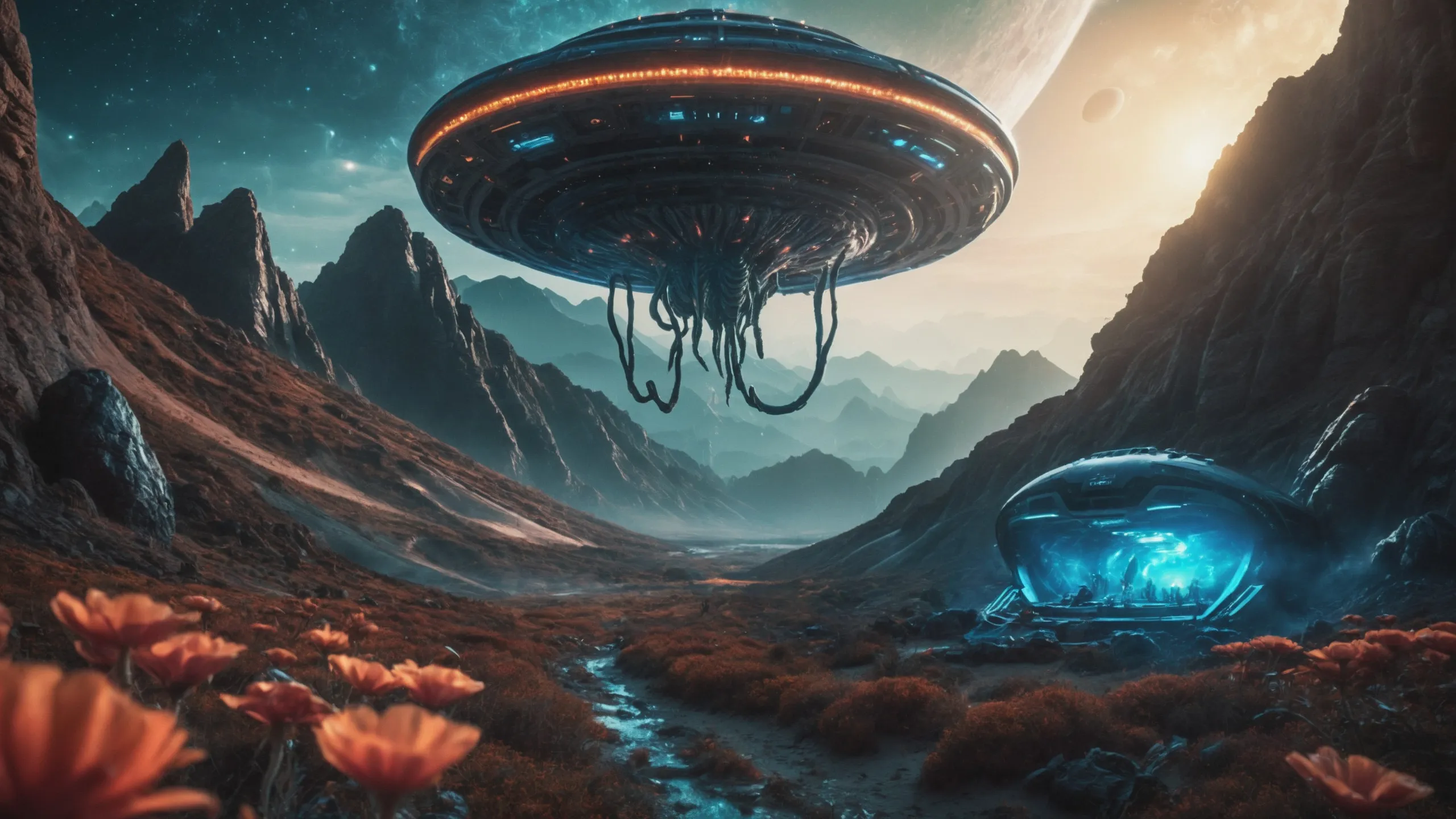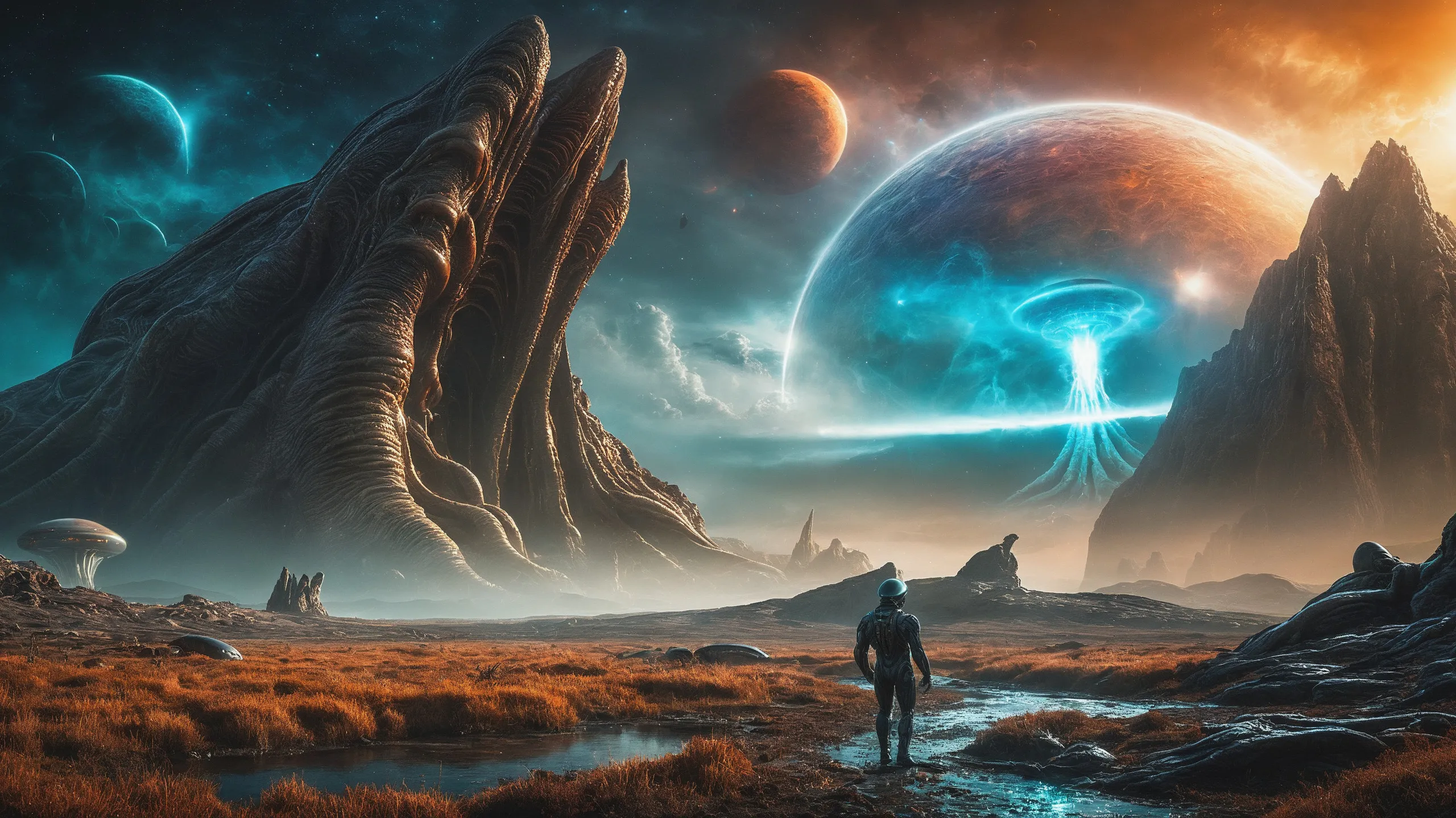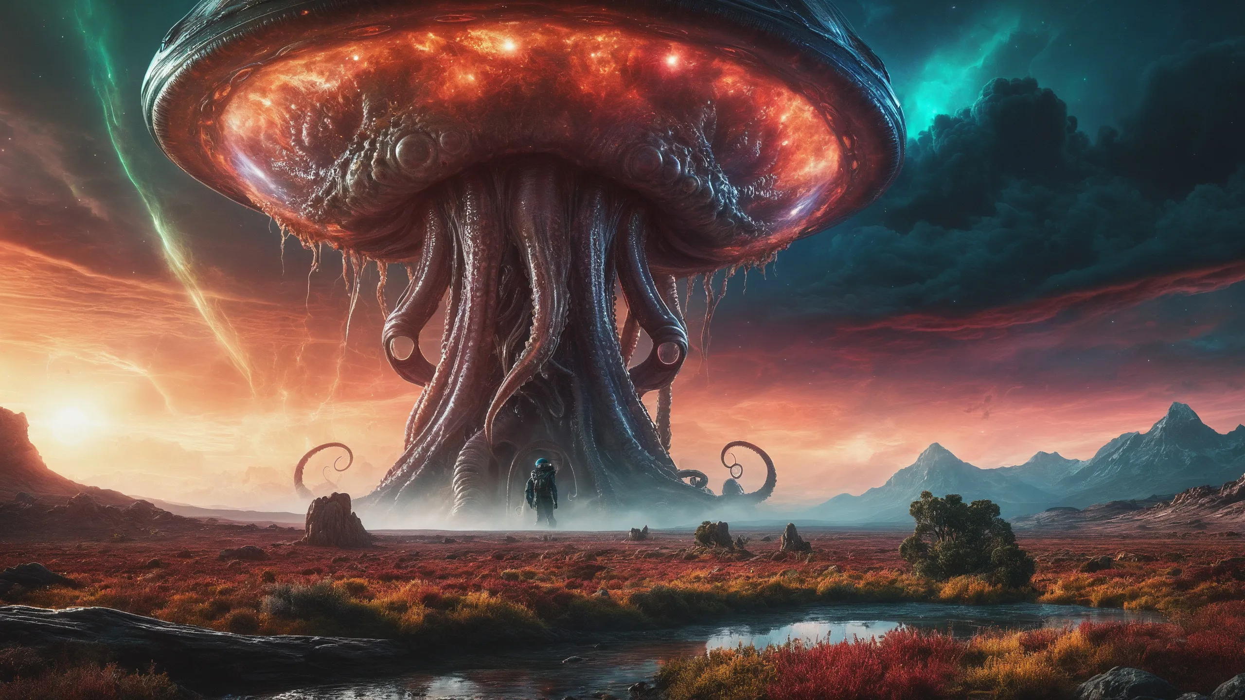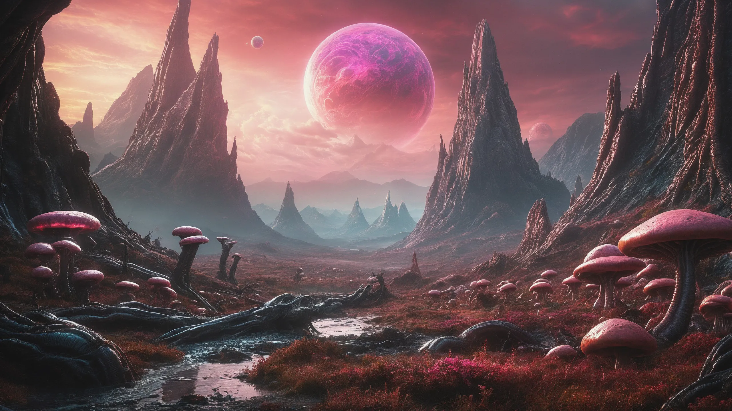 {Ice World|Diamond Plains|Bio-Luminescent Landscape|Mossy Meadows|Shifting Sands|Crystal Forests|Floating Islands|Acid Pools|Volcanic Plains|Perpetual Storms|Megastructures|Terraforming Projects|Methane Sea|Metallic Plains|tidelands|Seashore|beach|coast|cliff|lake|river|creek|djungle|grassland|flower|taiga|tundra|savannah|wetlands|desert|dunes|mangroves|salt flats|salt marshes|ice|majestic mountain|mountain|Swamp|marsh area|rain forests|badlands|wastelands} landsscape.