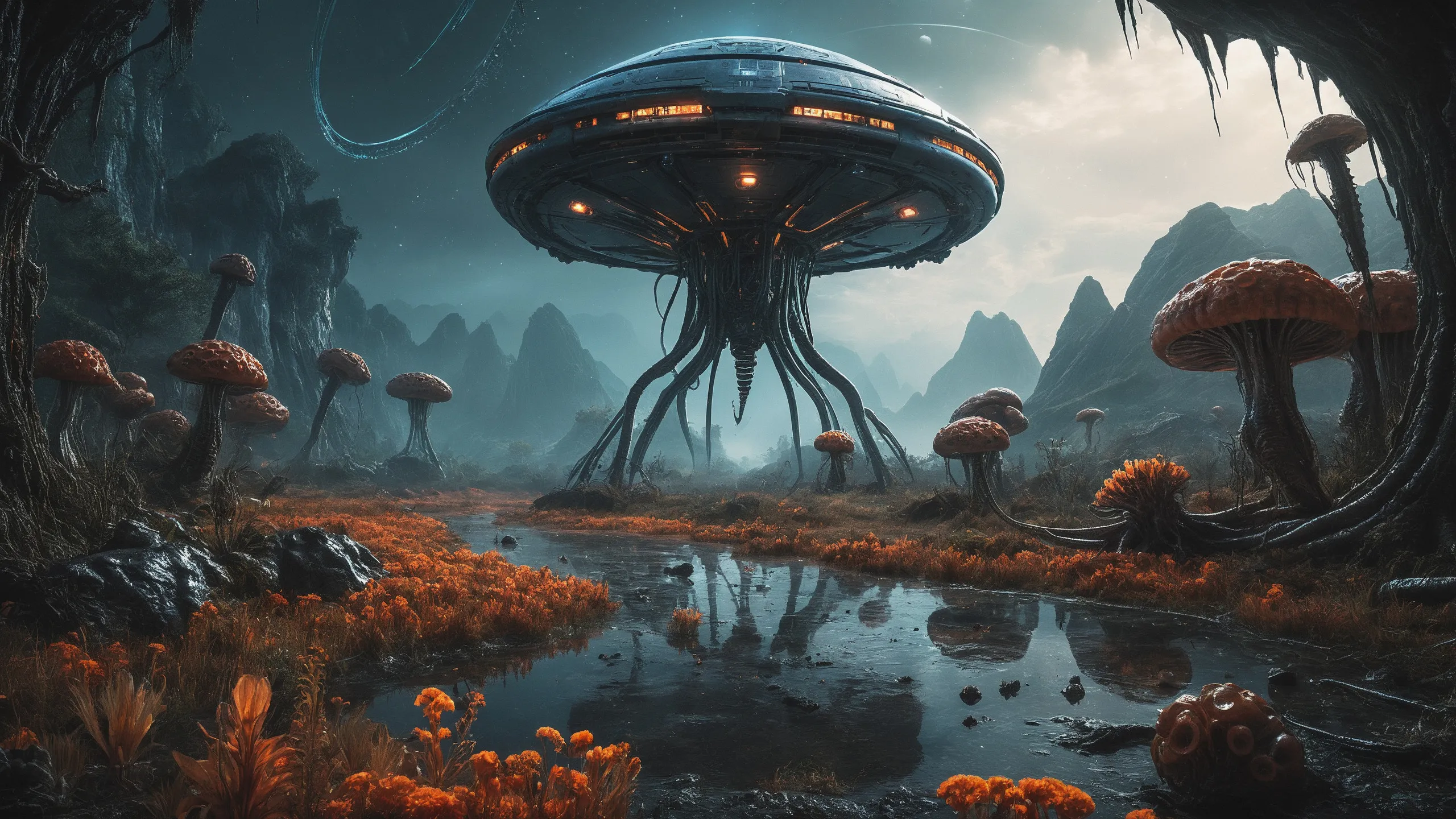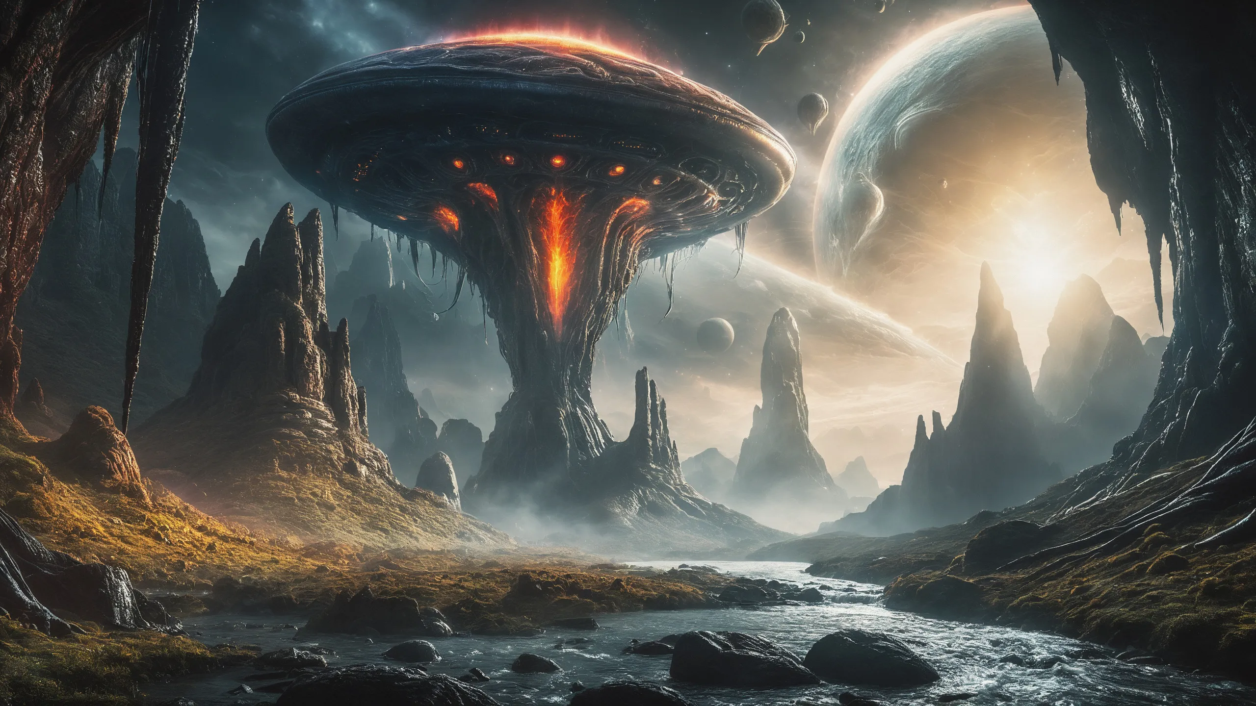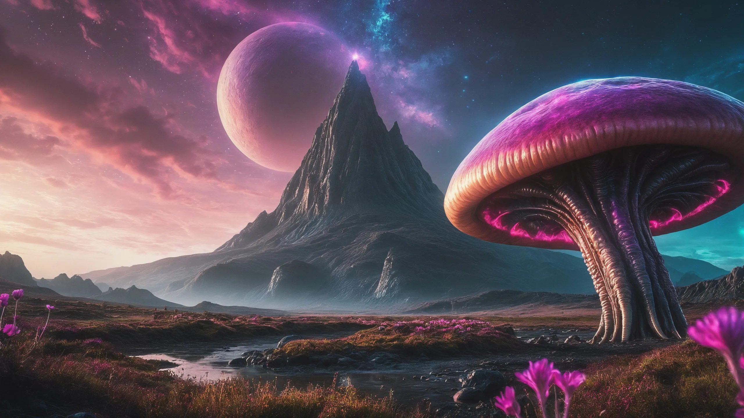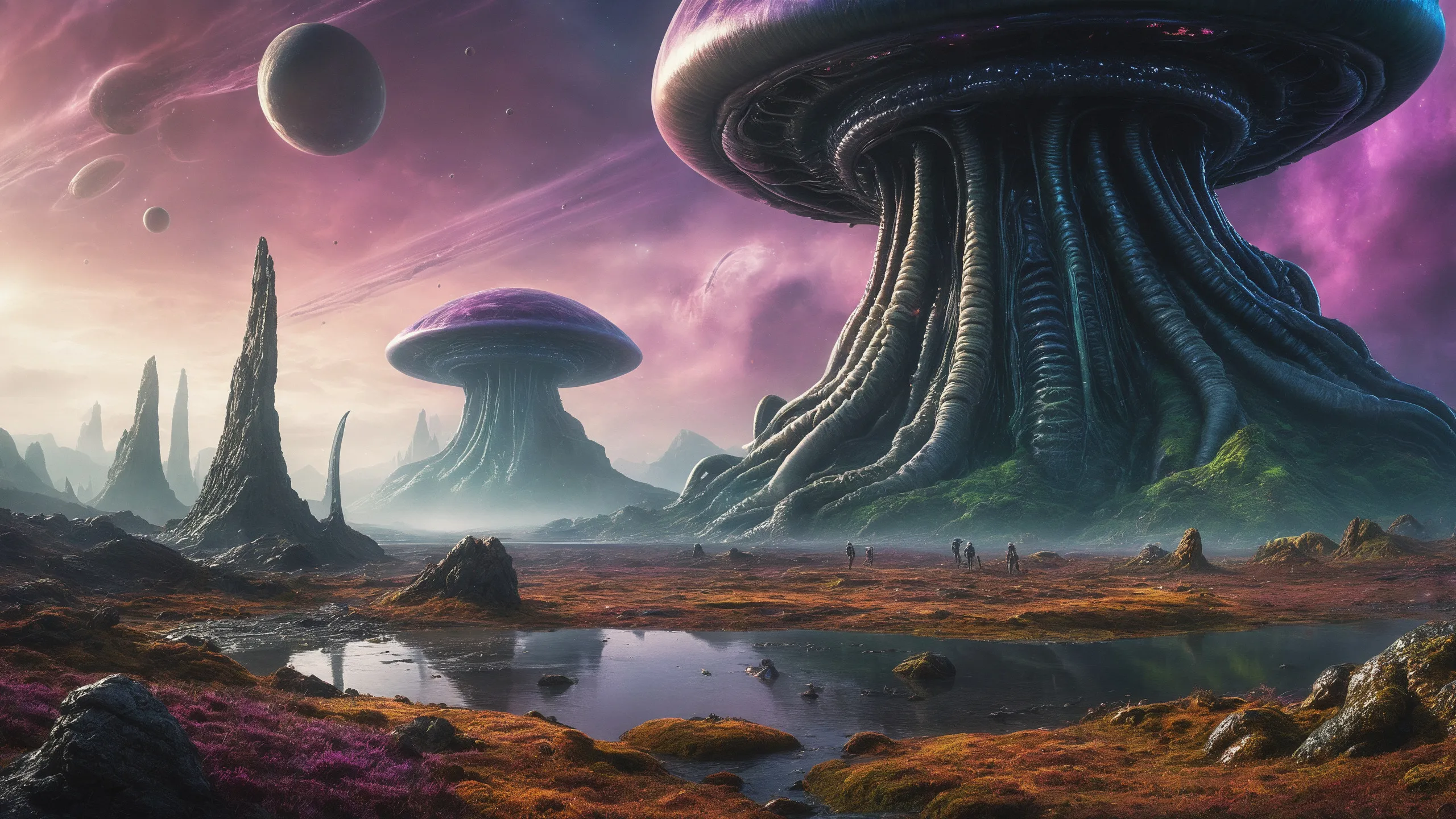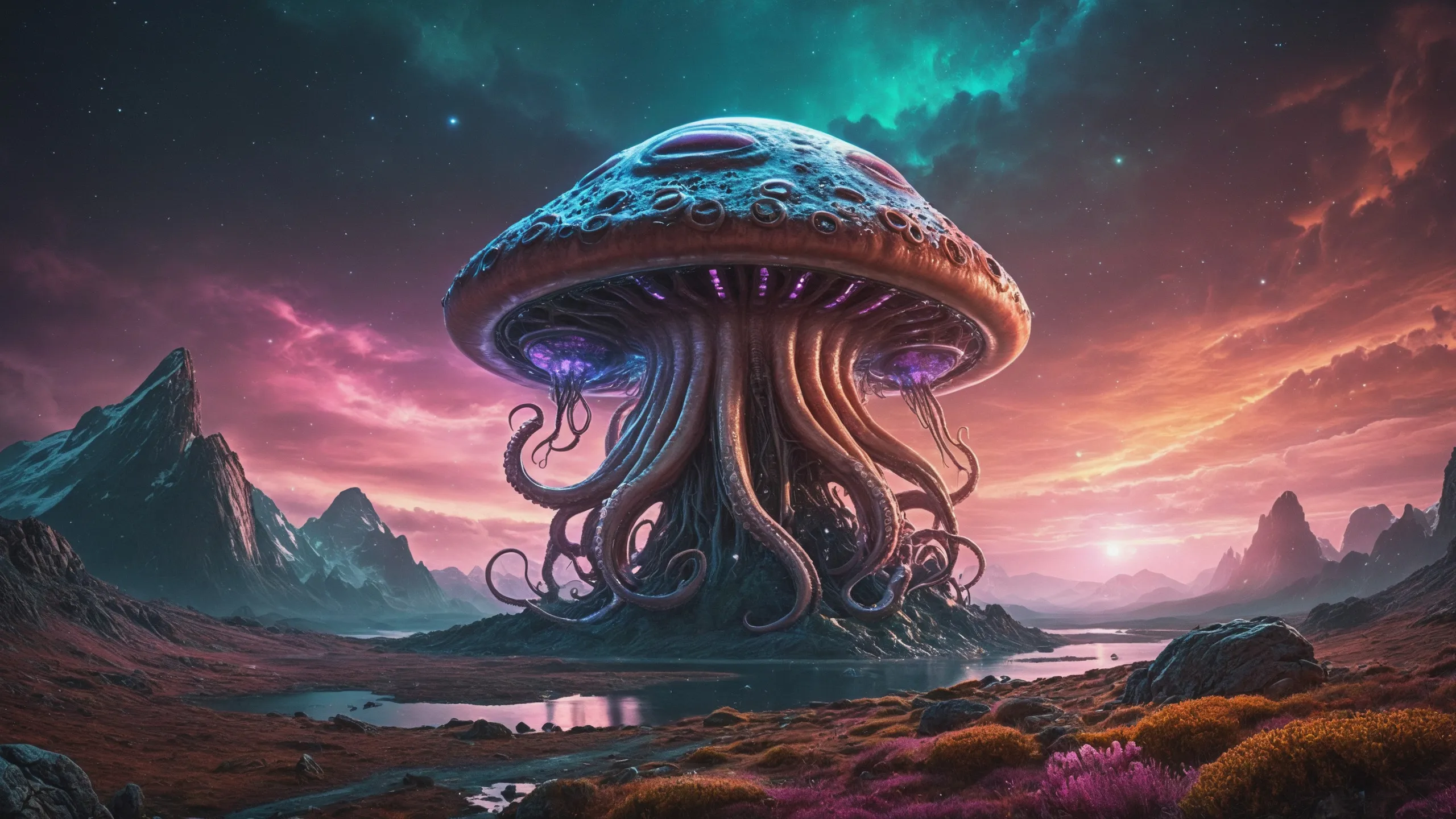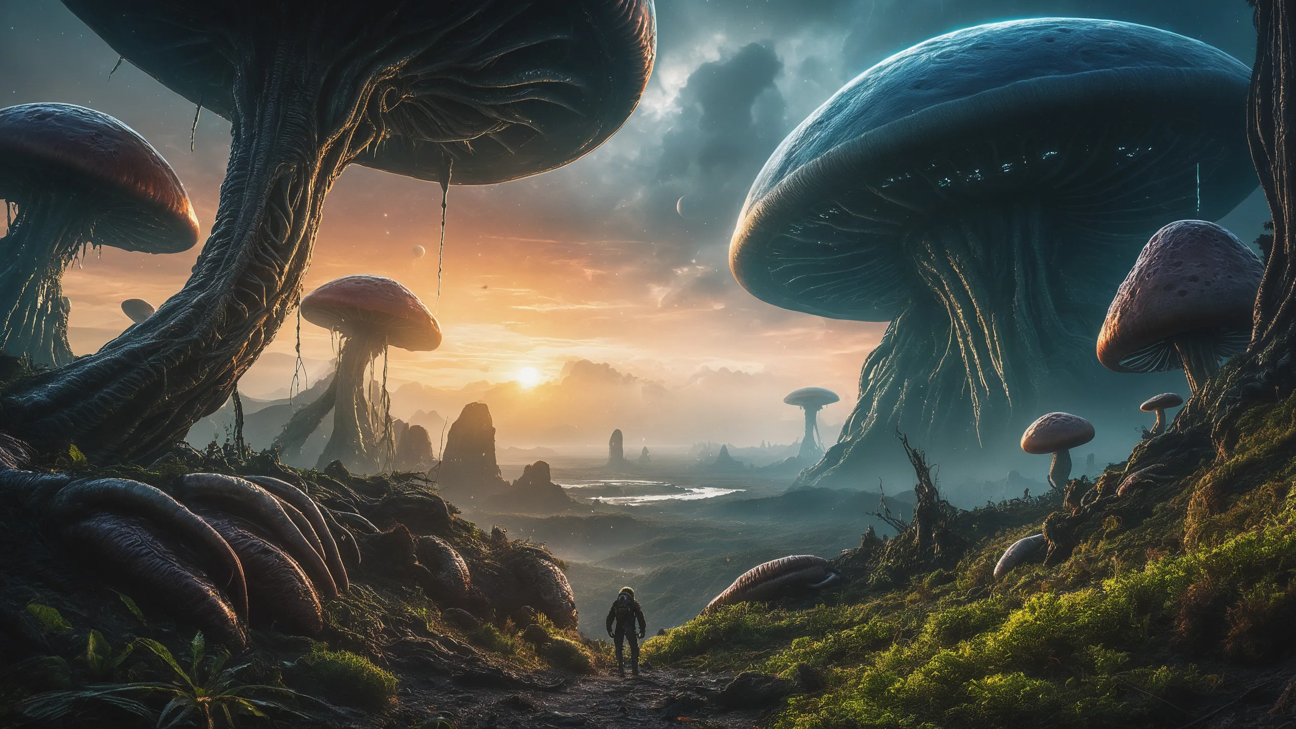 {Ice World|Diamond Plains|Bio-Luminescent Landscape|Mossy Meadows|Shifting Sands|Crystal Forests|Floating Islands|Acid Pools|Volcanic Plains|Perpetual Storms|Megastructures|Terraforming Projects|Methane Sea|Metallic Plains|tidelands|Seashore|beach|coast|cliff|lake|river|creek|djungle|grassland|flower|taiga|tundra|savannah|wetlands|desert|dunes|mangroves|salt flats|salt marshes|ice|majestic mountain|mountain|Swamp|marsh area|rain forests|badlands|wastelands} landsscape.