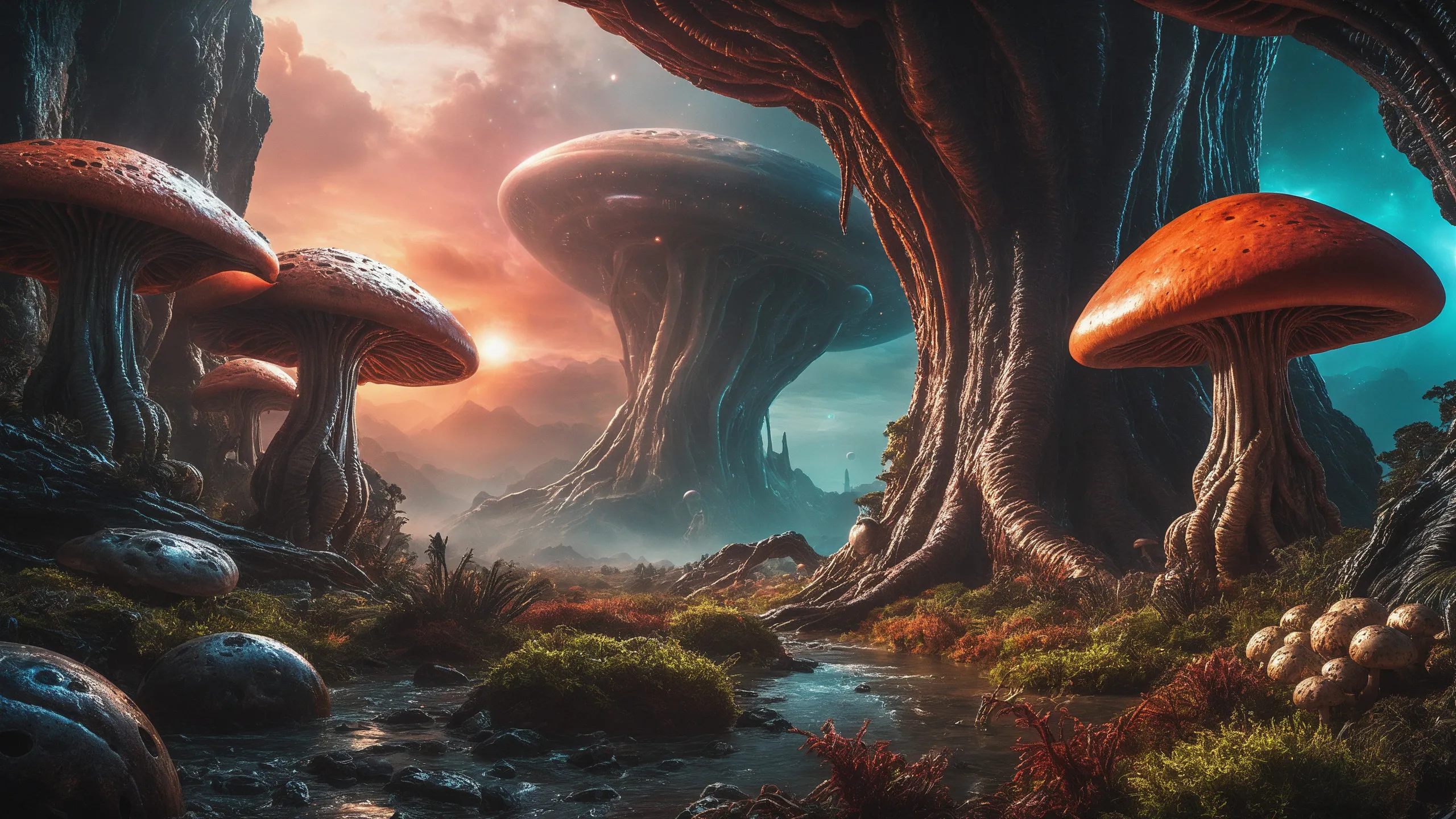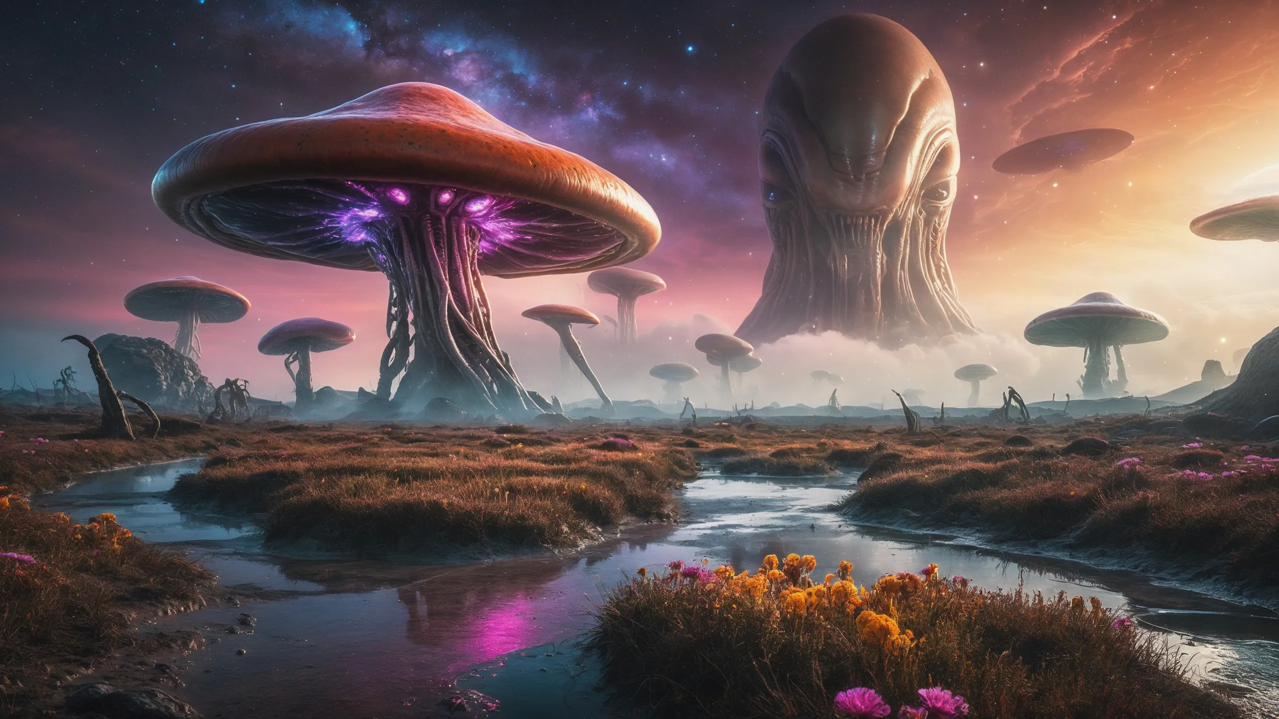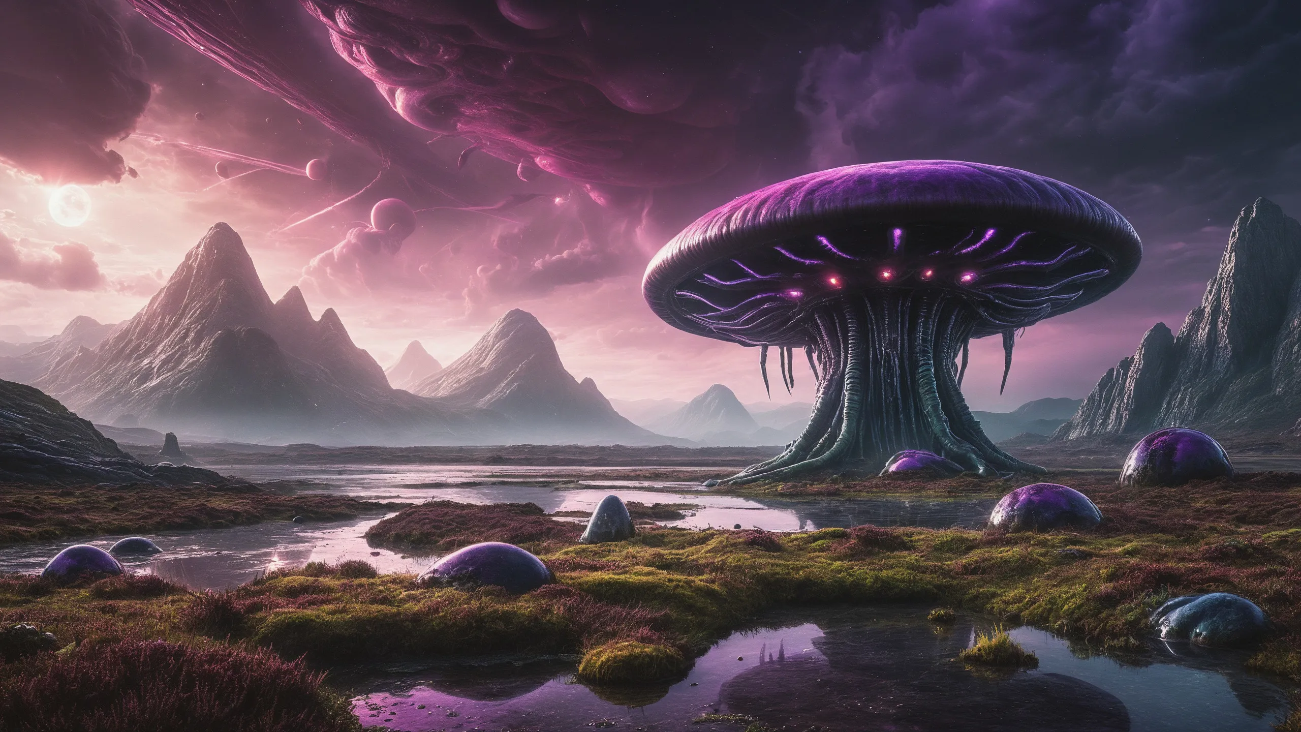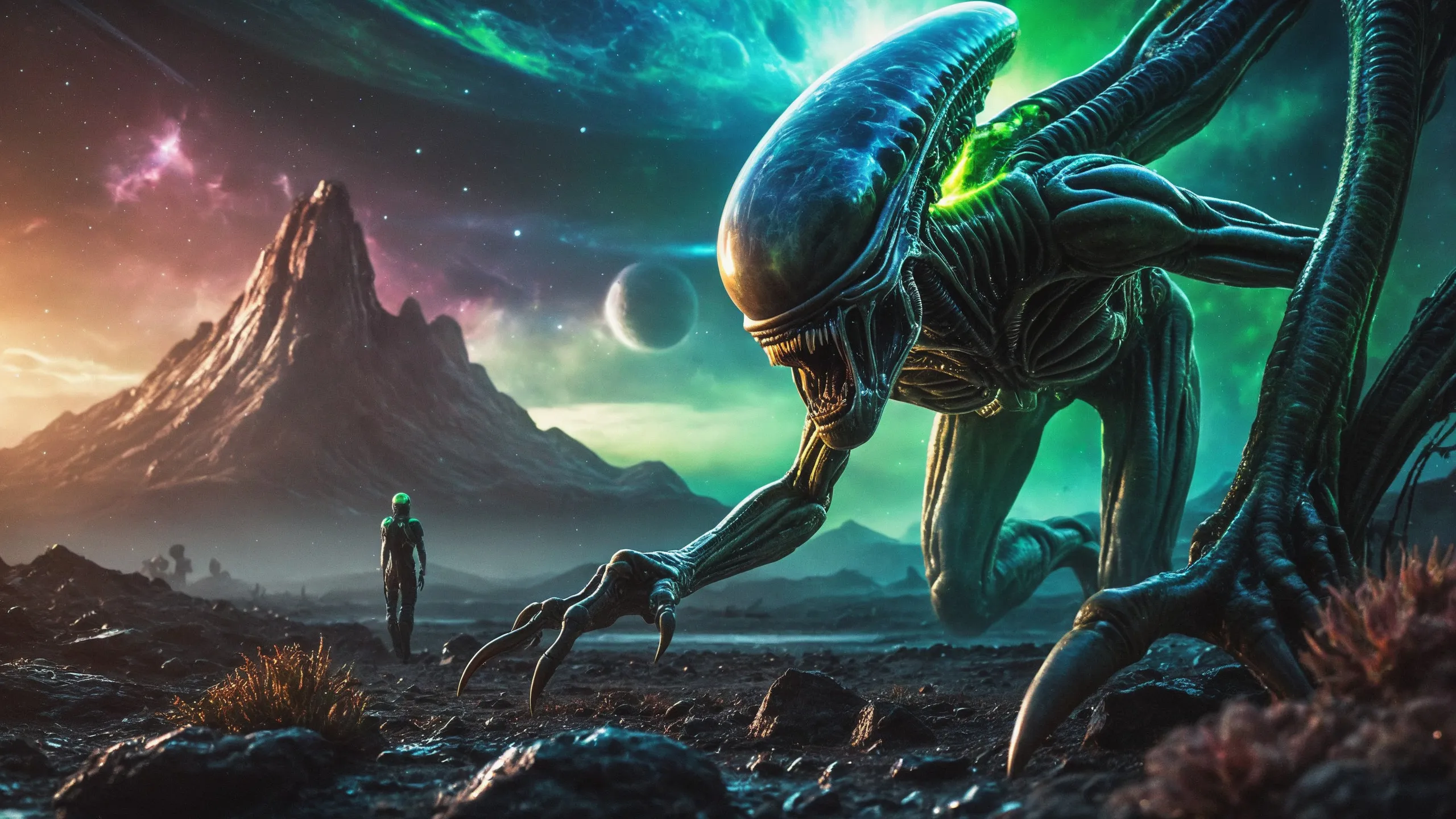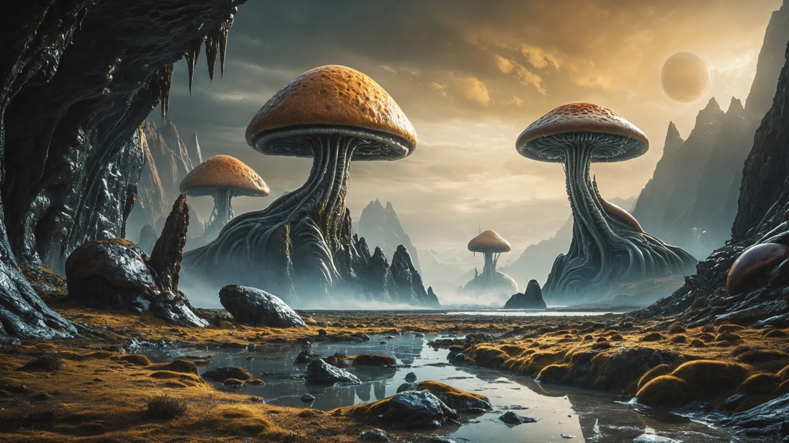 {Ice World|Diamond Plains|Bio-Luminescent Landscape|Mossy Meadows|Shifting Sands|Crystal Forests|Floating Islands|Acid Pools|Volcanic Plains|Perpetual Storms|Megastructures|Terraforming Projects|Methane Sea|Metallic Plains|tidelands|Seashore|beach|coast|cliff|lake|river|creek|djungle|grassland|flower|taiga|tundra|savannah|wetlands|desert|dunes|mangroves|salt flats|salt marshes|ice|majestic mountain|mountain|Swamp|marsh area|rain forests|badlands|wastelands} landsscape.