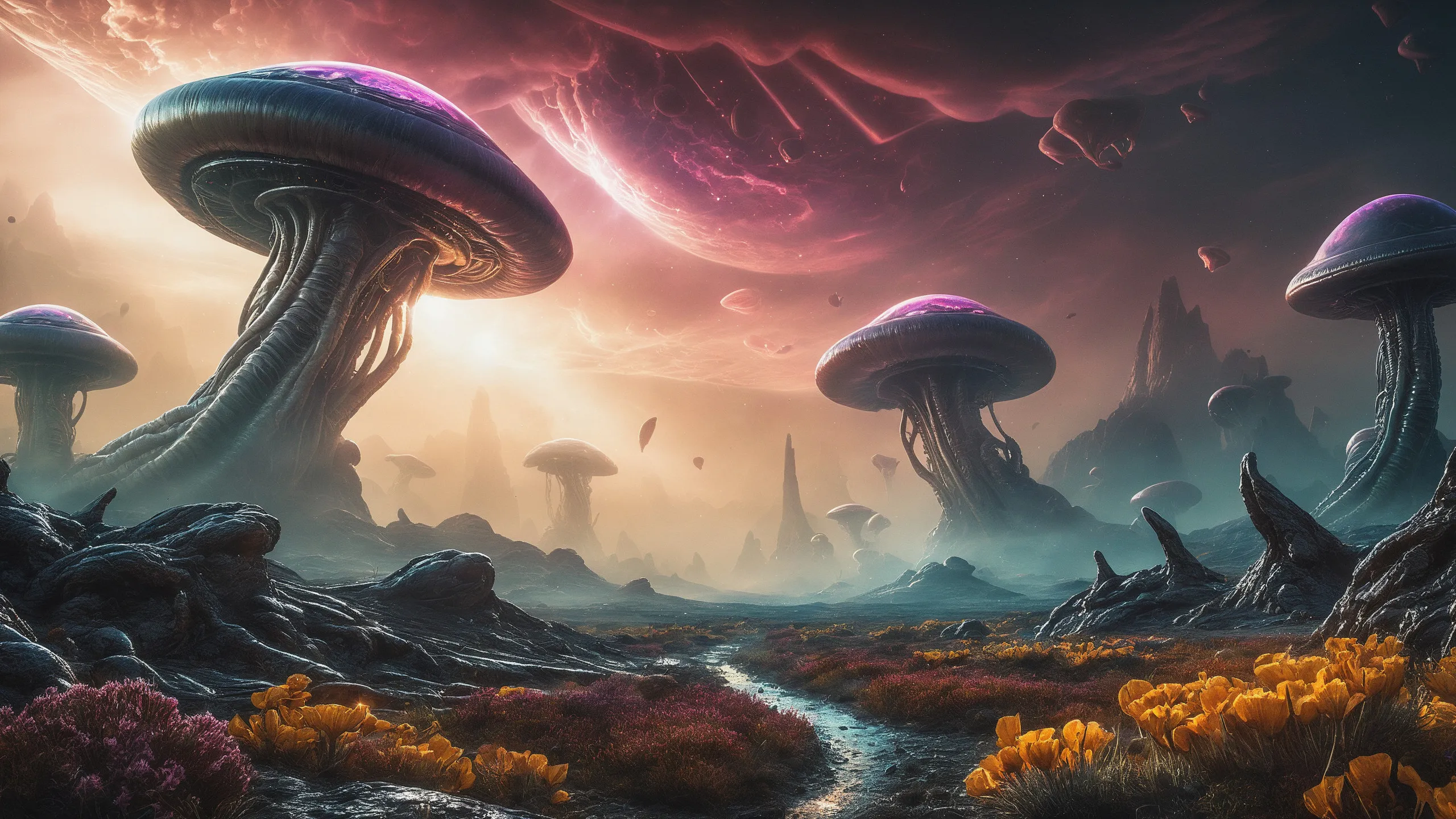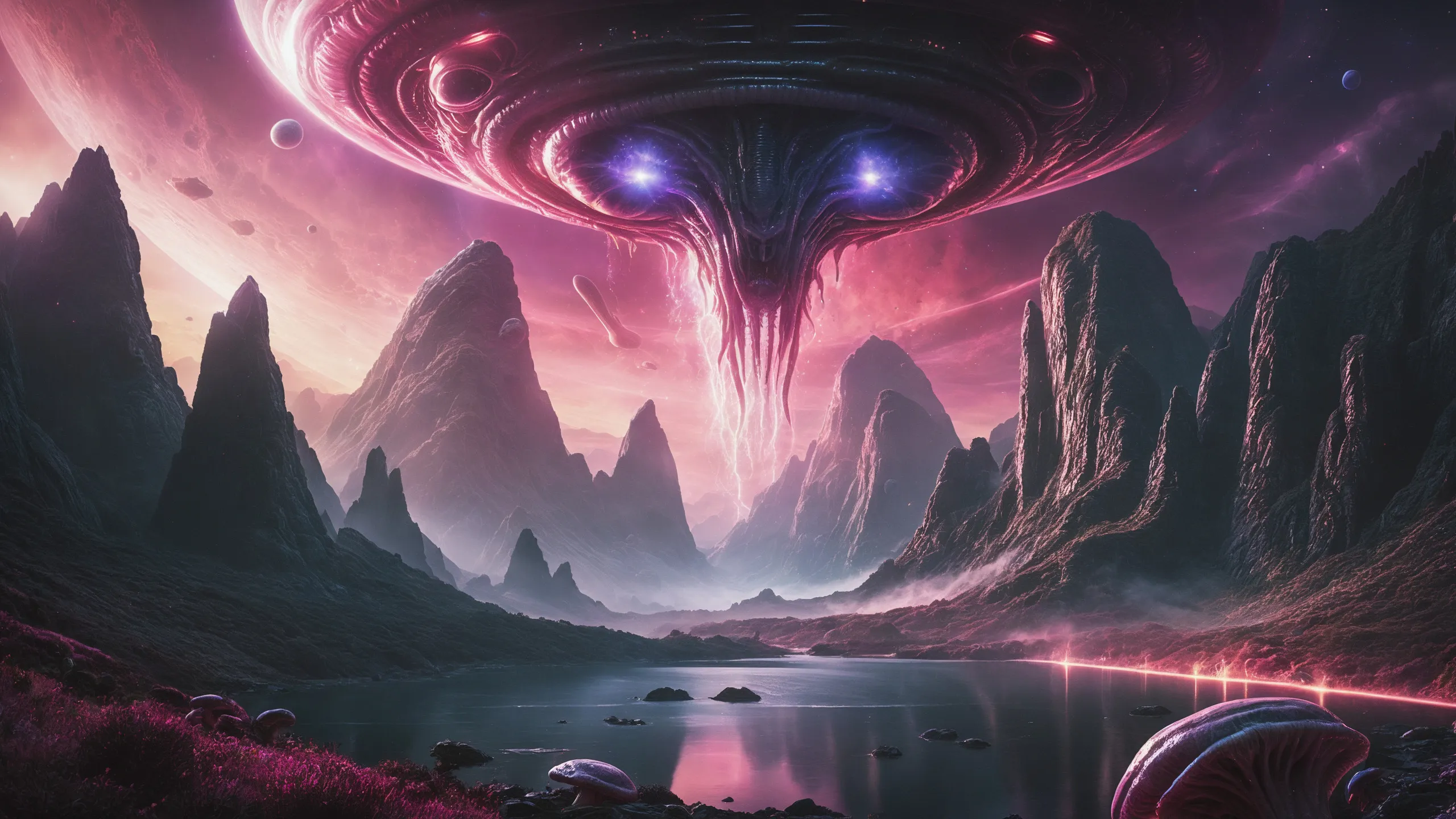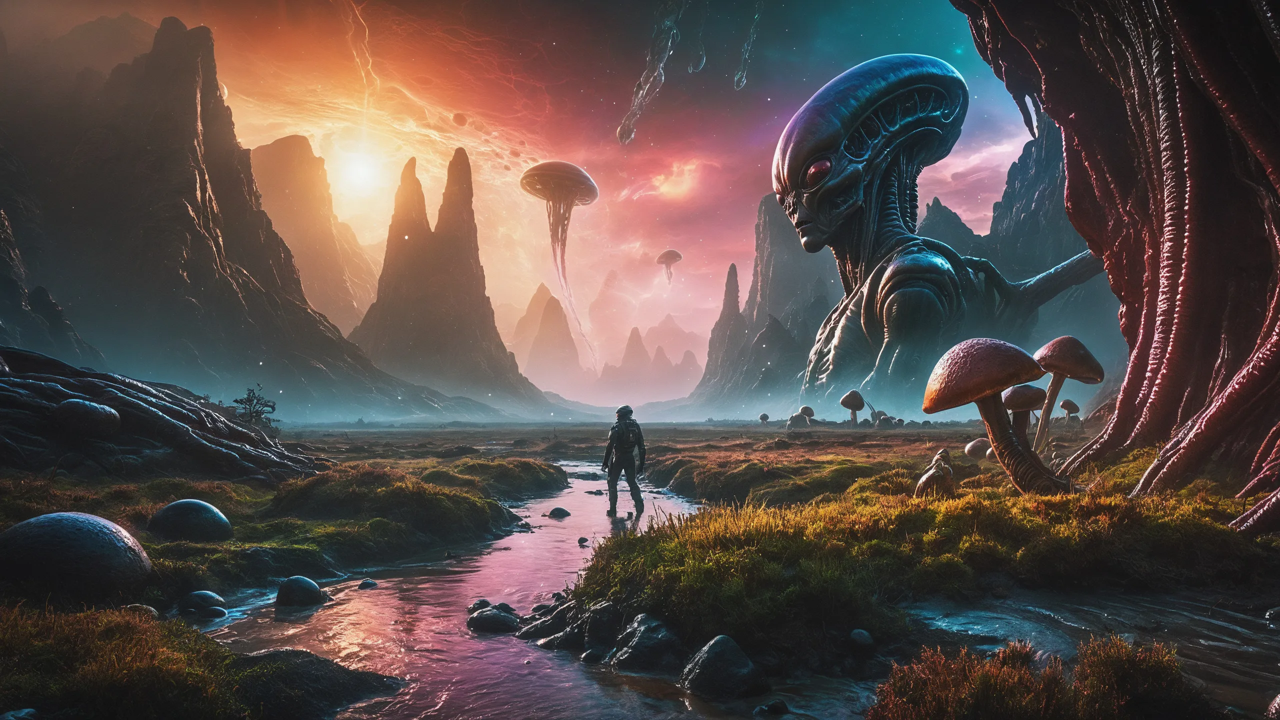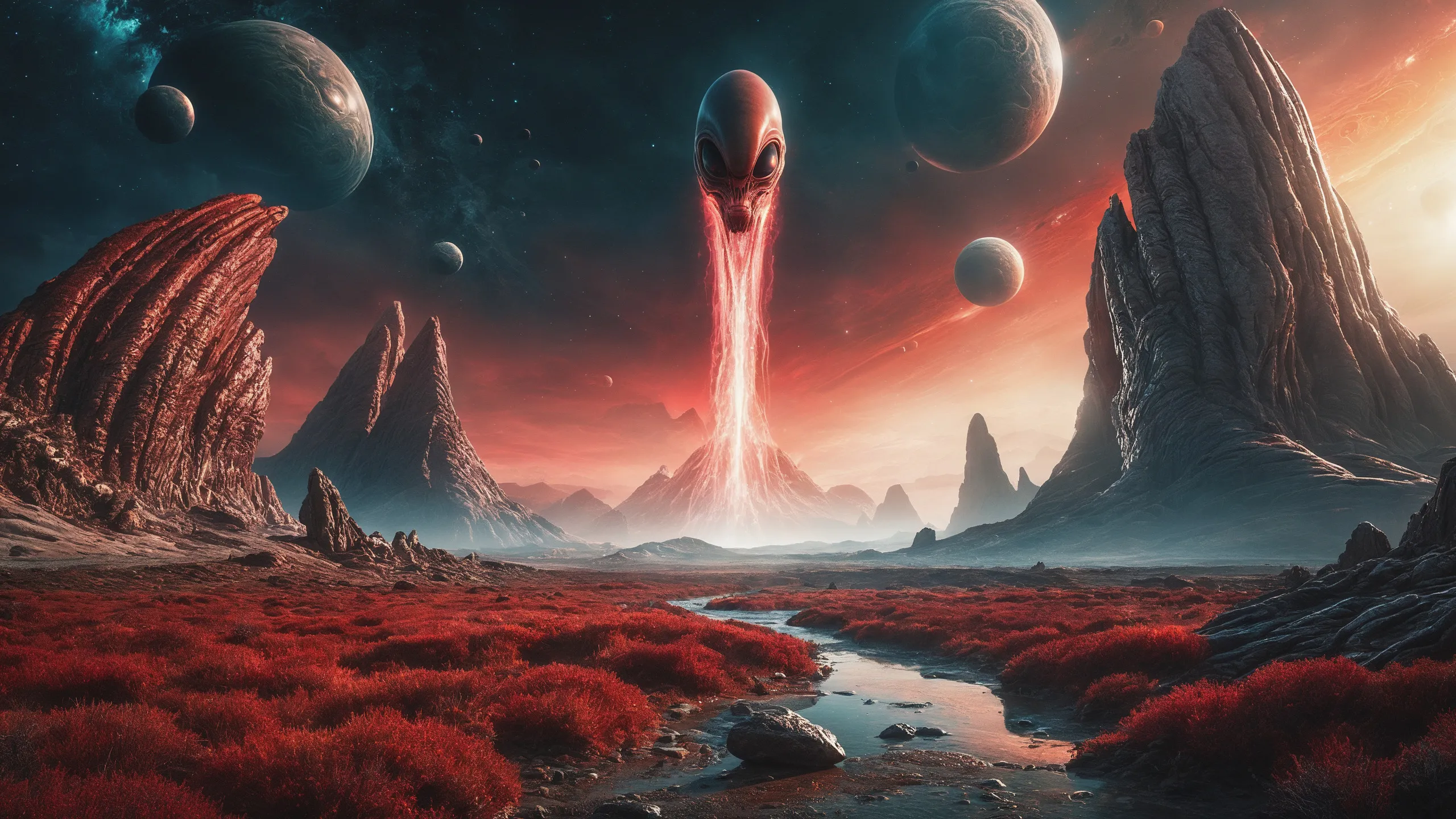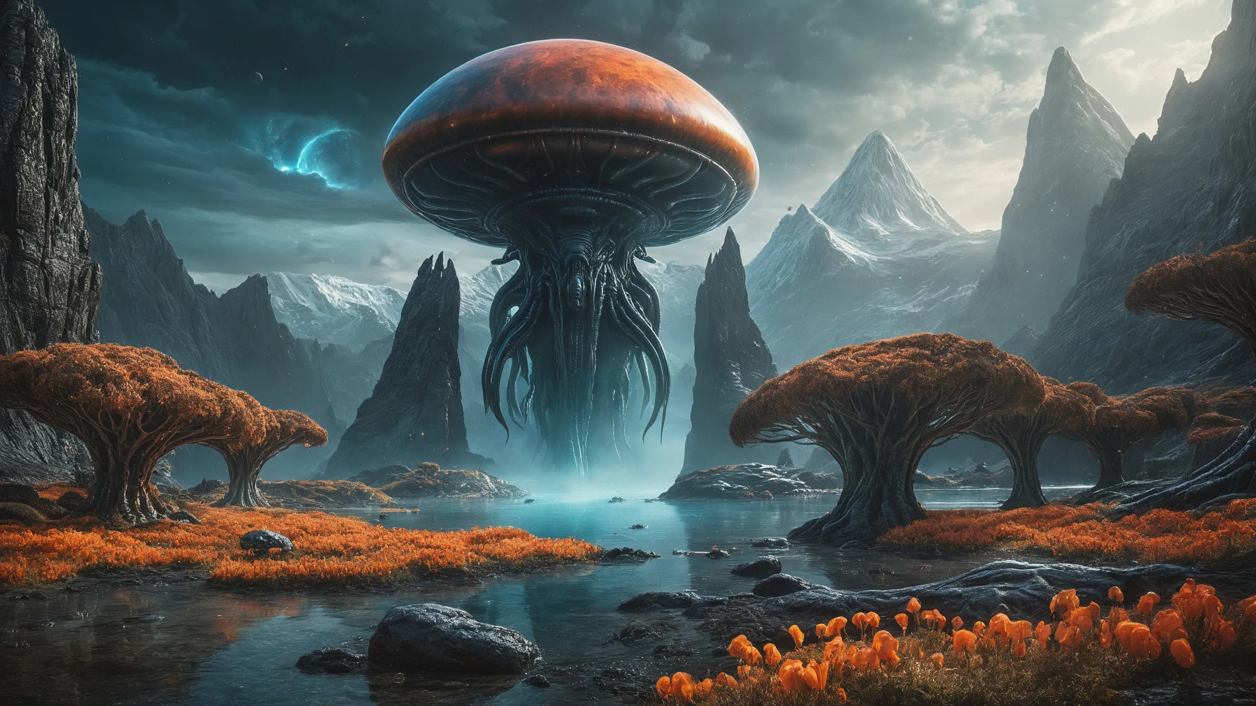 {Ice World|Diamond Plains|Bio-Luminescent Landscape|Mossy Meadows|Shifting Sands|Crystal Forests|Floating Islands|Acid Pools|Volcanic Plains|Perpetual Storms|Megastructures|Terraforming Projects|Methane Sea|Metallic Plains|tidelands|Seashore|beach|coast|cliff|lake|river|creek|djungle|grassland|flower|taiga|tundra|savannah|wetlands|desert|dunes|mangroves|salt flats|salt marshes|ice|majestic mountain|mountain|Swamp|marsh area|rain forests|badlands|wastelands} landsscape.