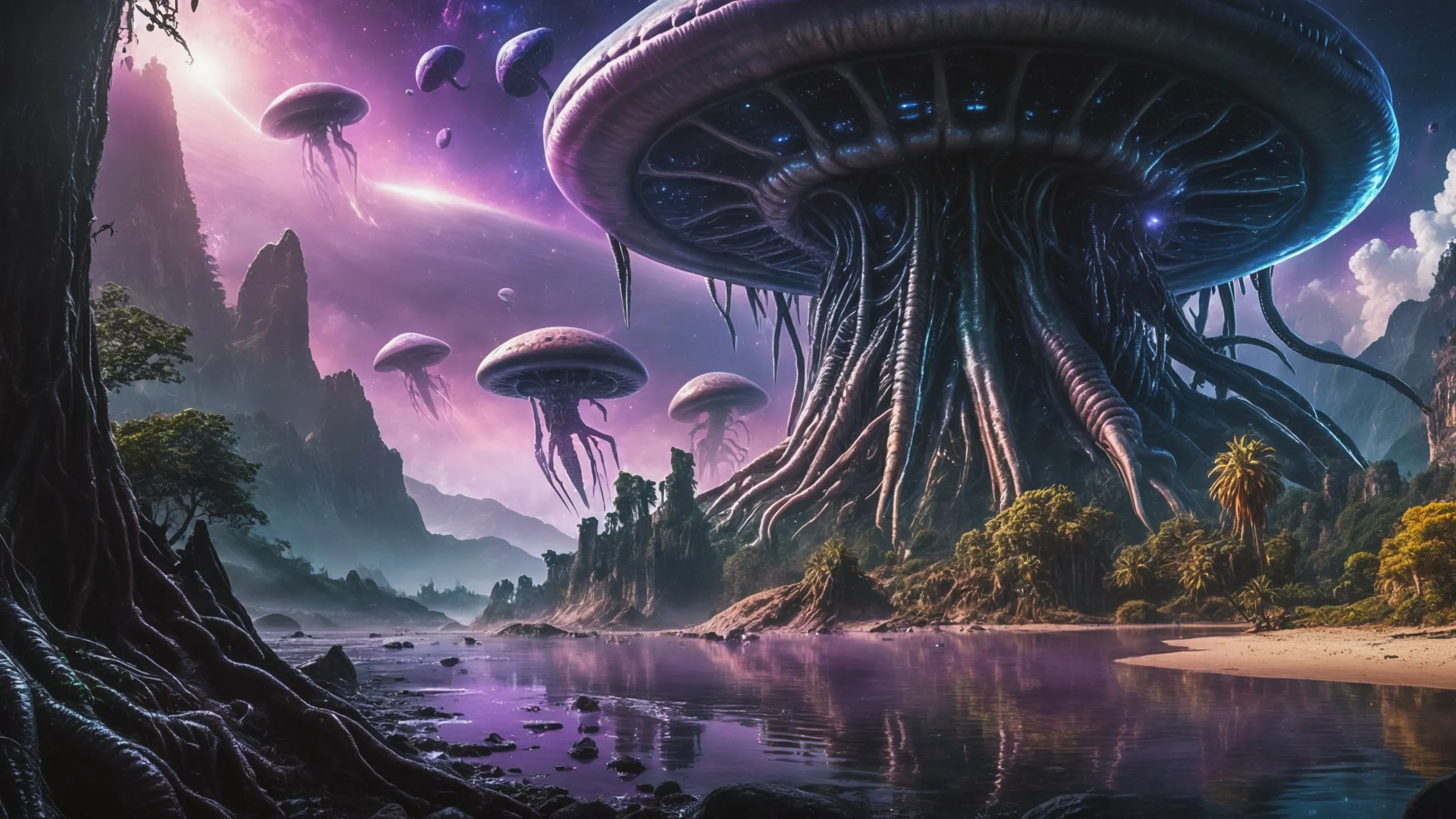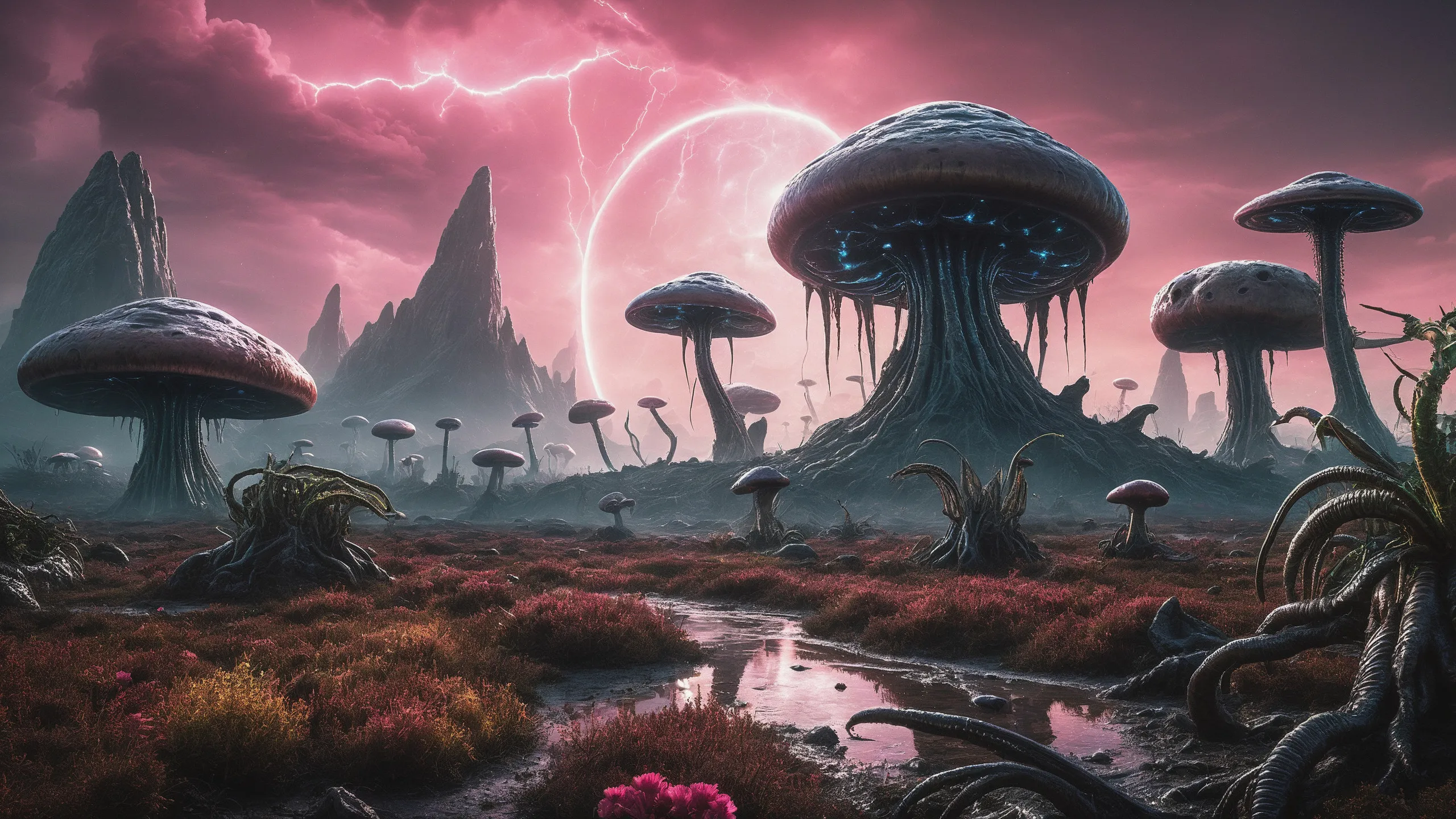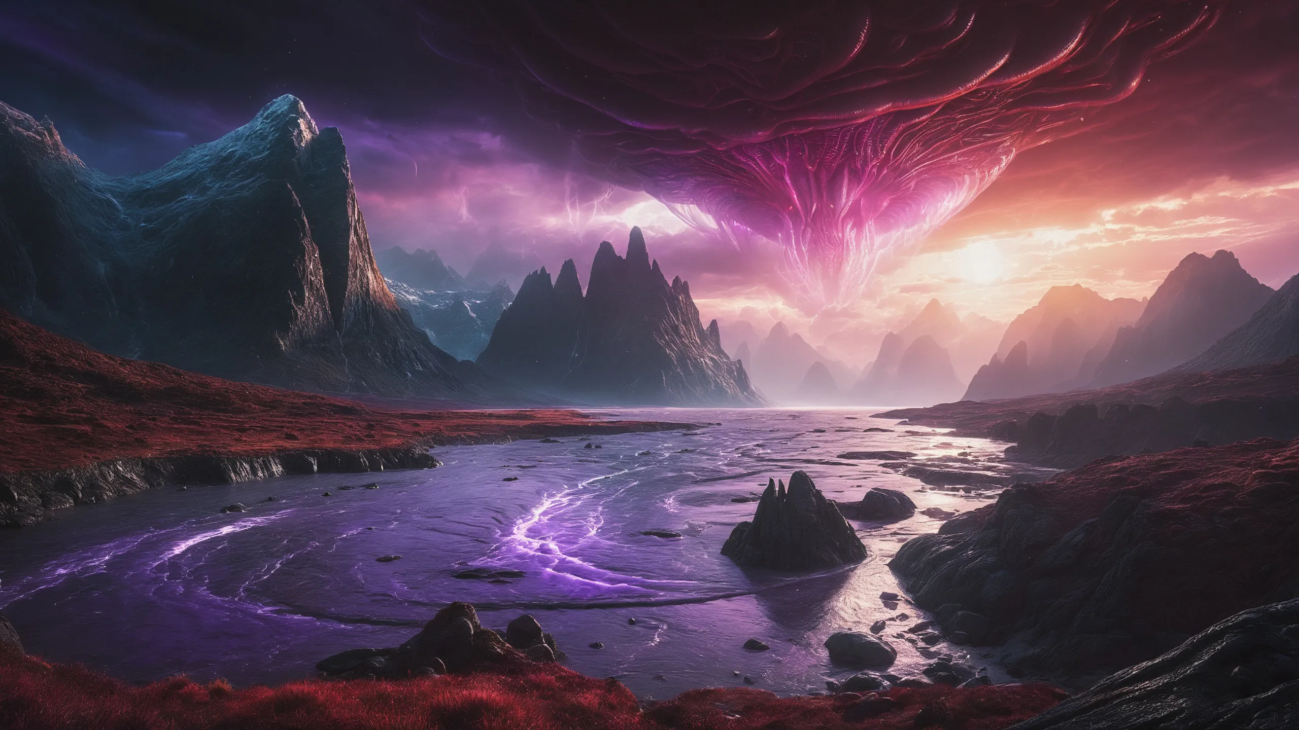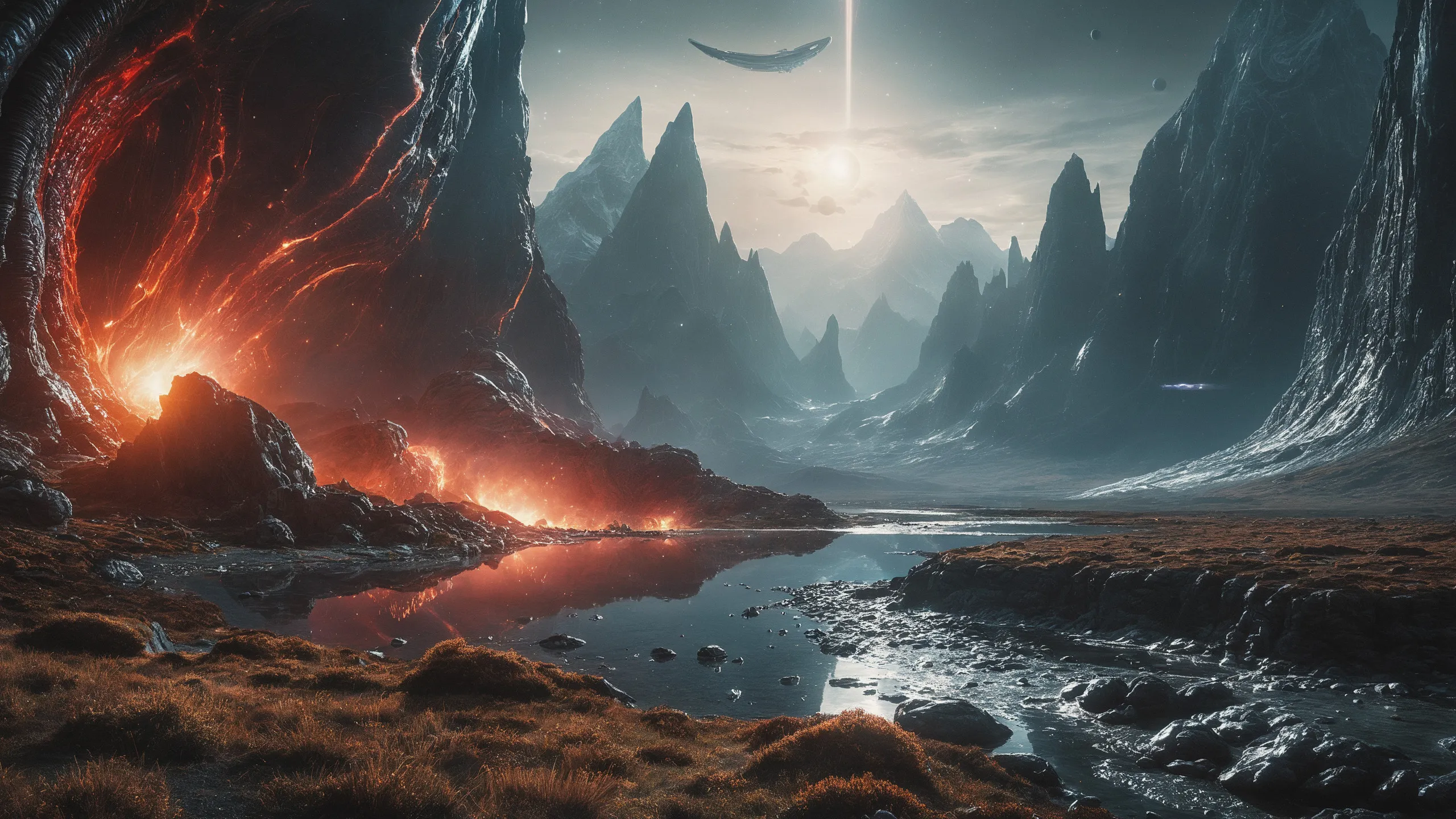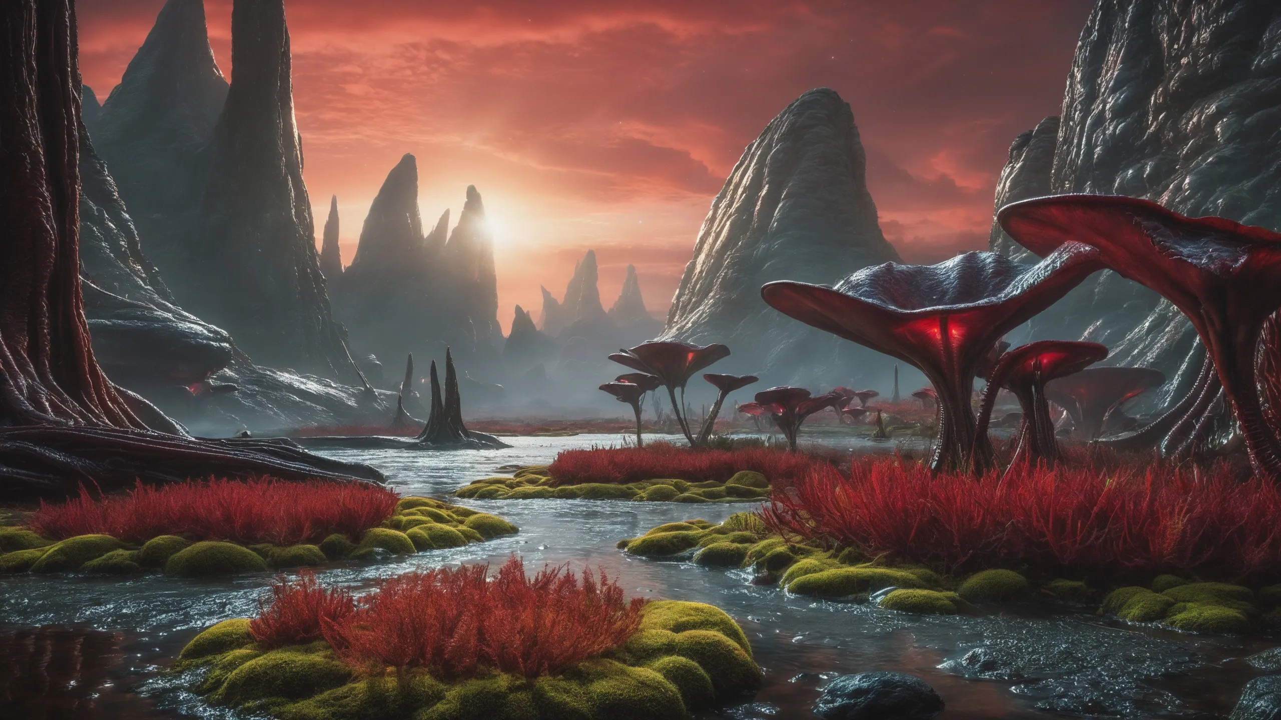 {Ice World|Diamond Plains|Bio-Luminescent Landscape|Mossy Meadows|Shifting Sands|Crystal Forests|Floating Islands|Acid Pools|Volcanic Plains|Perpetual Storms|Megastructures|Terraforming Projects|Methane Sea|Metallic Plains|tidelands|Seashore|beach|coast|cliff|lake|river|creek|djungle|grassland|flower|taiga|tundra|savannah|wetlands|desert|dunes|mangroves|salt flats|salt marshes|ice|majestic mountain|mountain|Swamp|marsh area|rain forests|badlands|wastelands} landsscape.