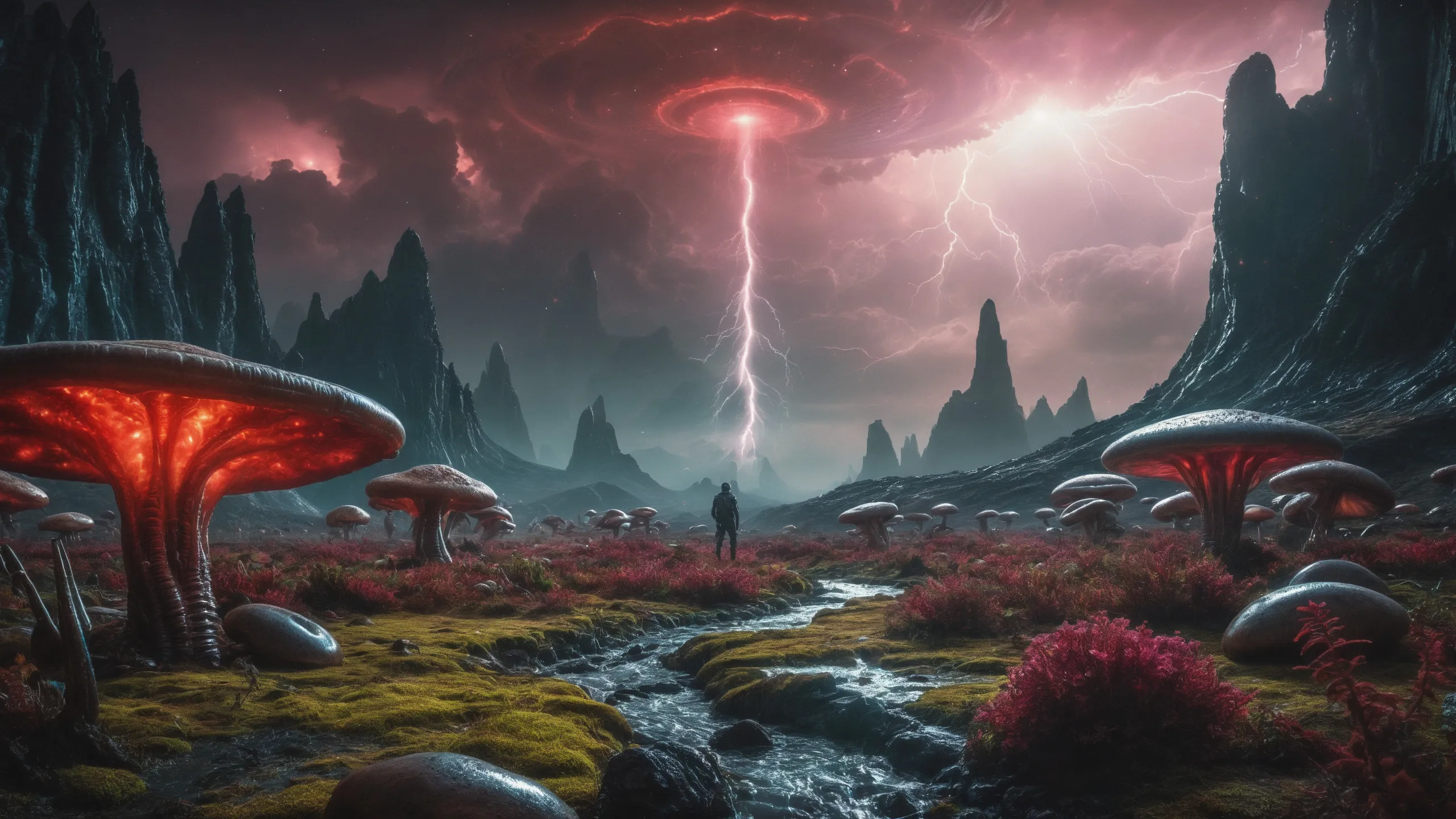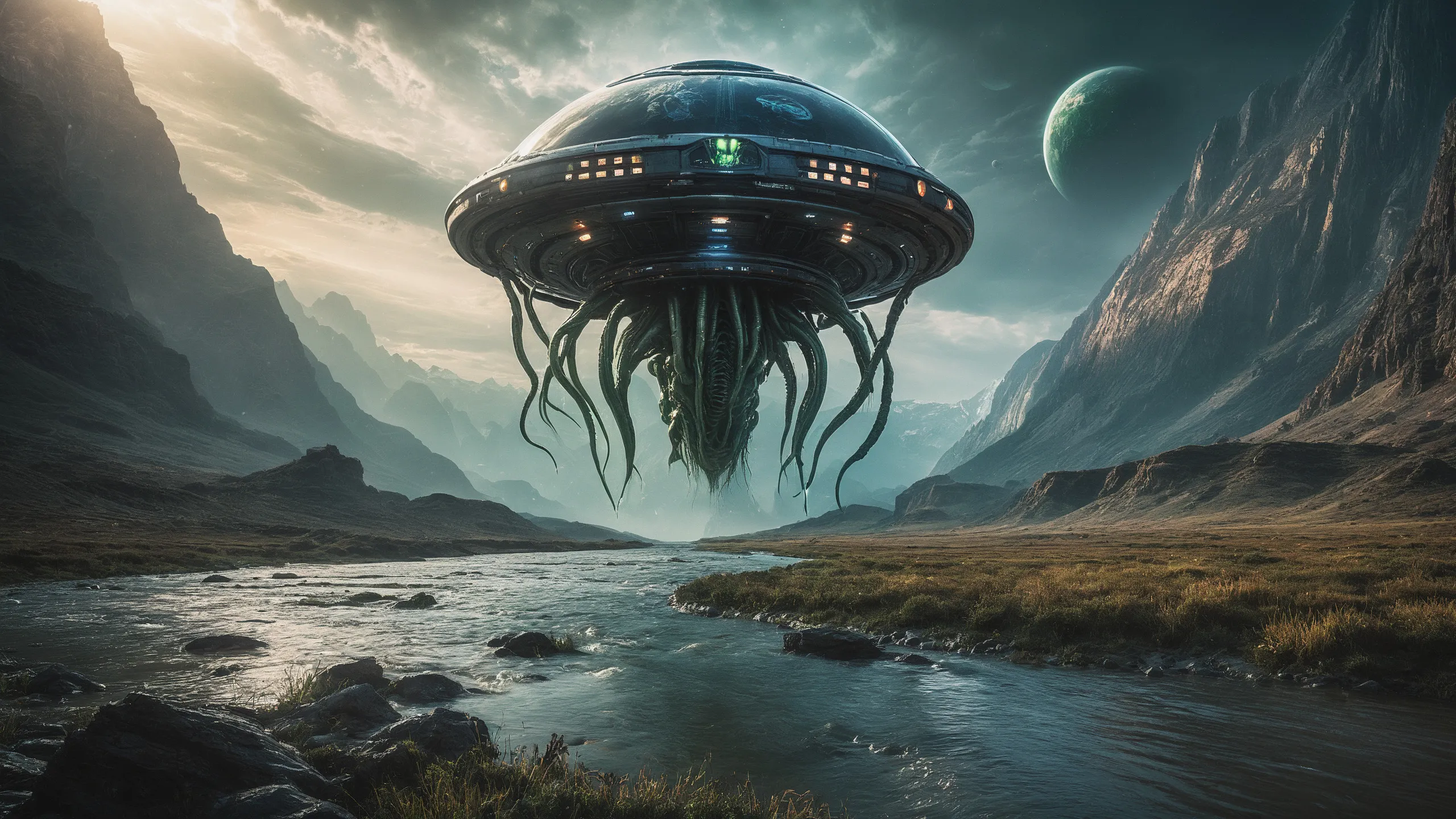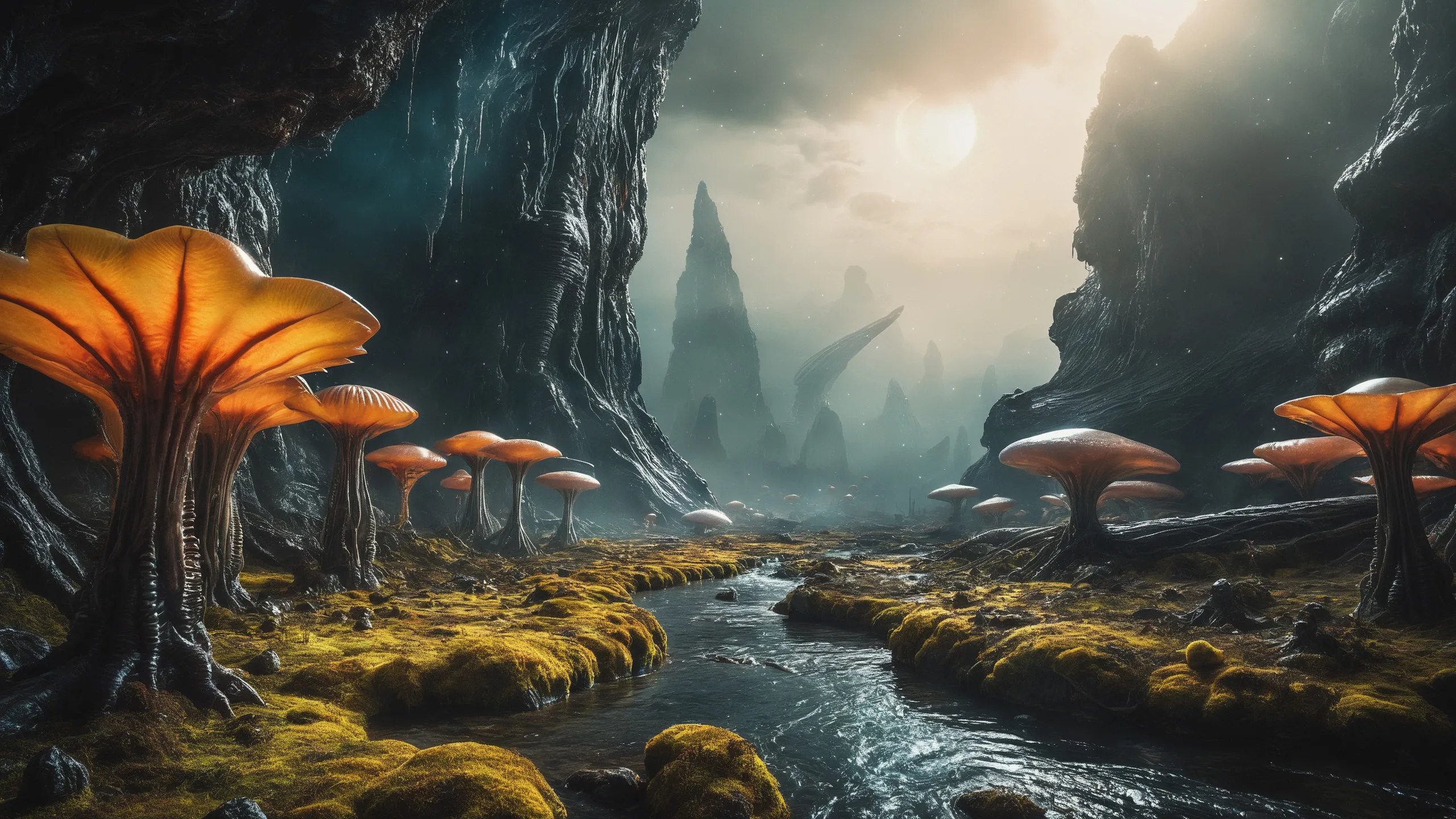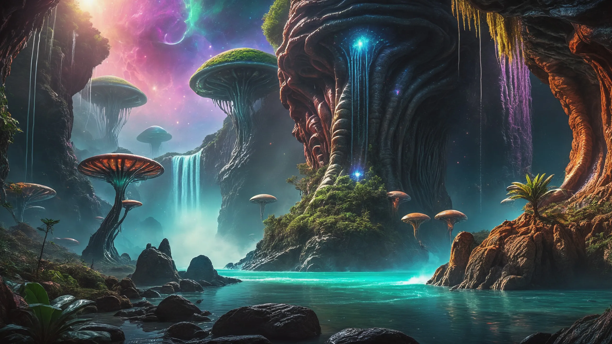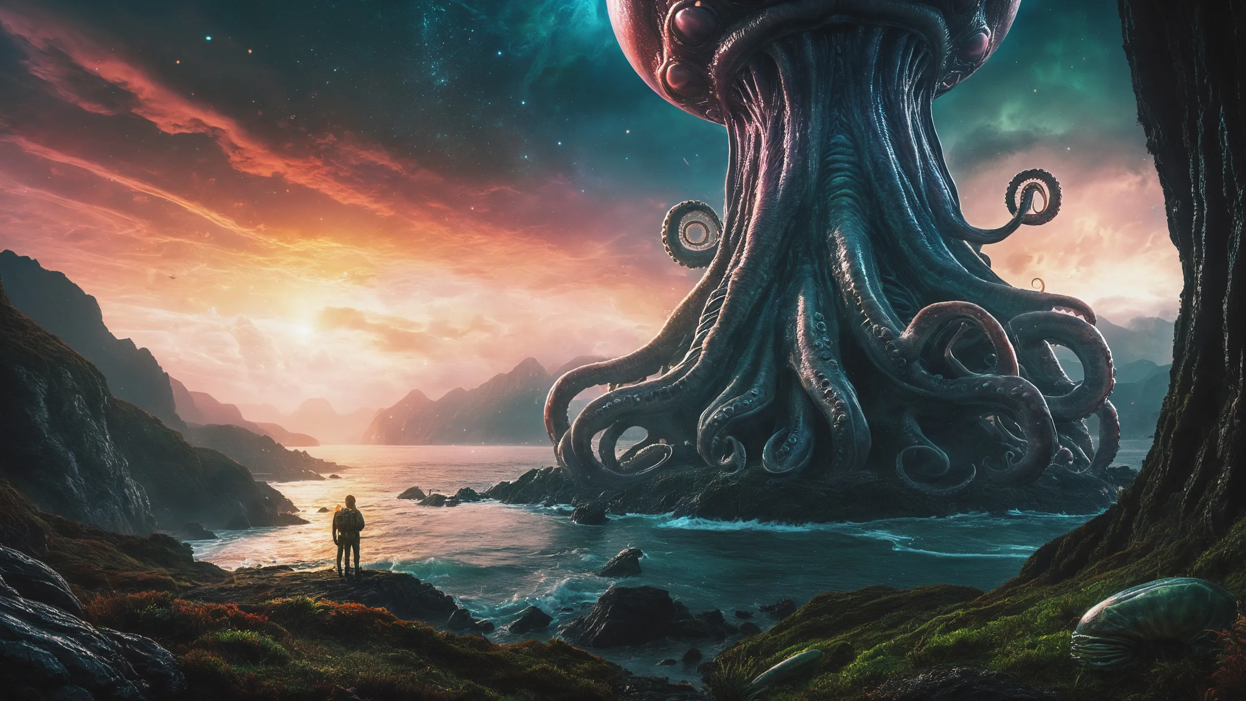 {Ice World|Diamond Plains|Bio-Luminescent Landscape|Mossy Meadows|Shifting Sands|Crystal Forests|Floating Islands|Acid Pools|Volcanic Plains|Perpetual Storms|Megastructures|Terraforming Projects|Methane Sea|Metallic Plains|tidelands|Seashore|beach|coast|cliff|lake|river|creek|djungle|grassland|flower|taiga|tundra|savannah|wetlands|desert|dunes|mangroves|salt flats|salt marshes|ice|majestic mountain|mountain|Swamp|marsh area|rain forests|badlands|wastelands} landsscape.