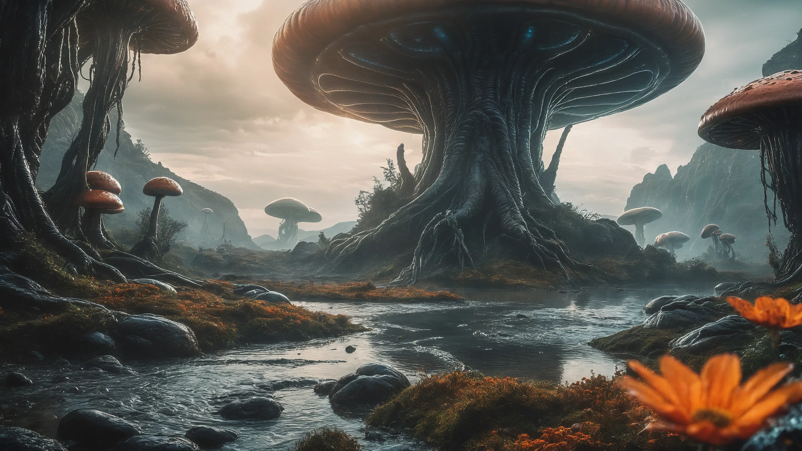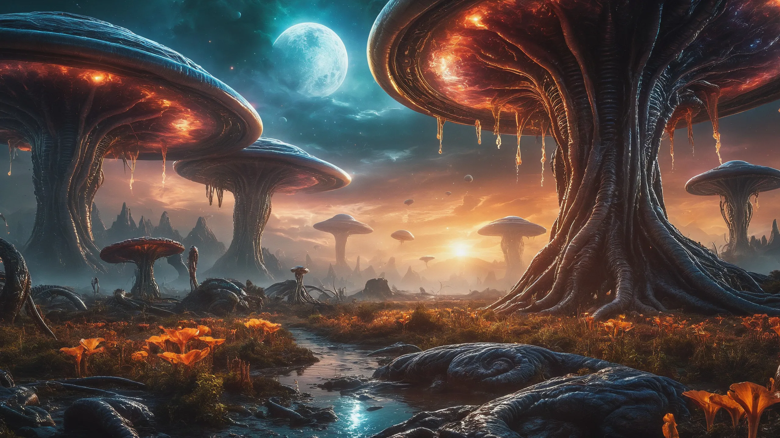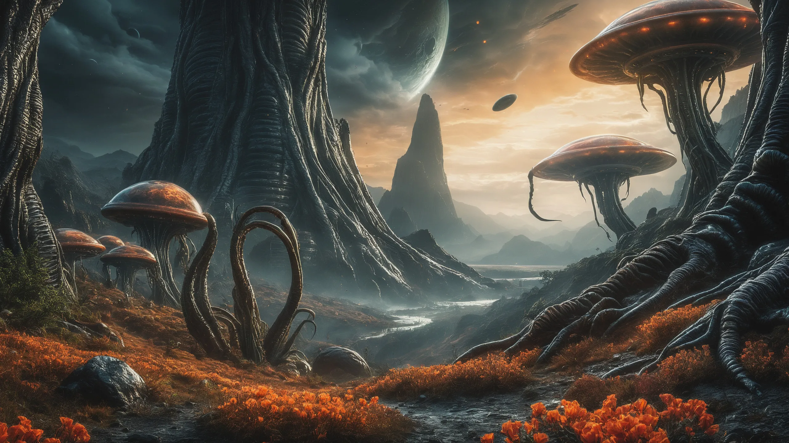 {0.1::lot of large trees with orange flowers, |0.9::}{0.1::huge trees, |0.9::}{0.1::large flowers, |0.9::}{0.1::large plants, |0.9::}{0.3::huge mushrooms, |0.7::}{0.3::huge carnivorous plants, |0.7::}{0.3::huge climbing plants, |0.7::}{0.3::huge glowing plants, |0.7::}{0.3::huge lichen, |0.7::}{0.3::huge moss, |0.7::}{0.1::large creepers, |0.9::}{0.1::large foam, |0.9::}{0.1::large glowing foam, |0.9::}