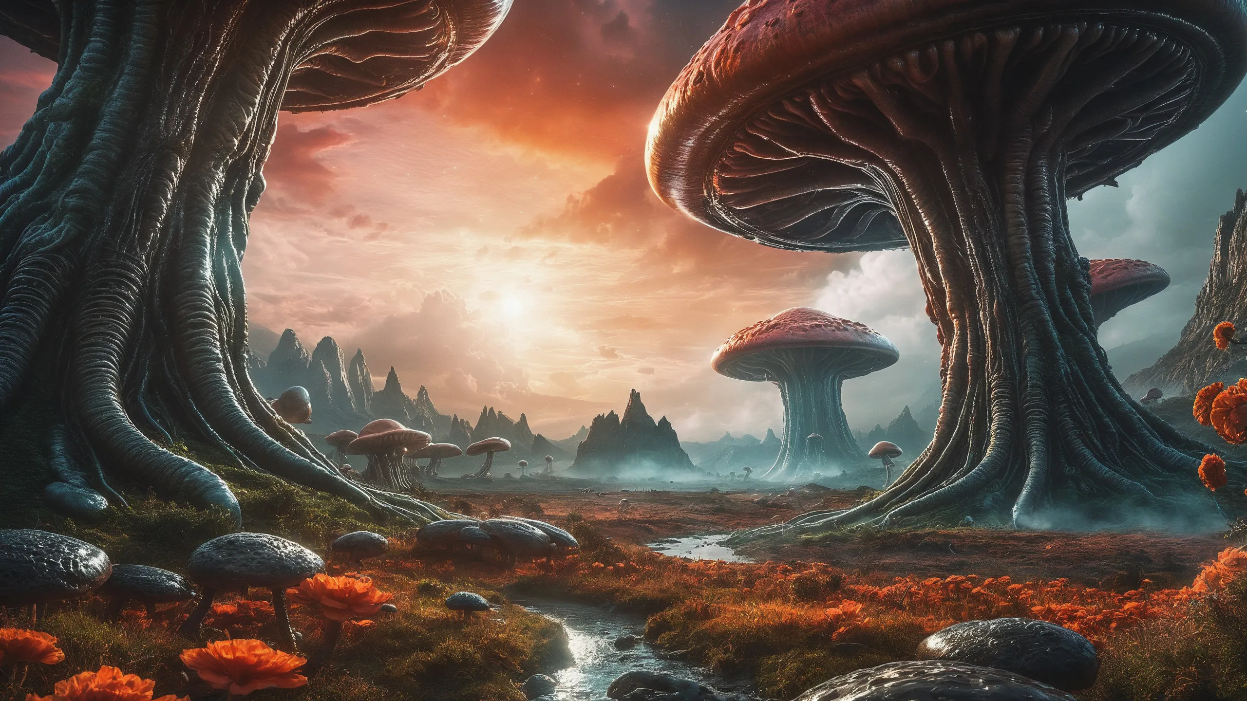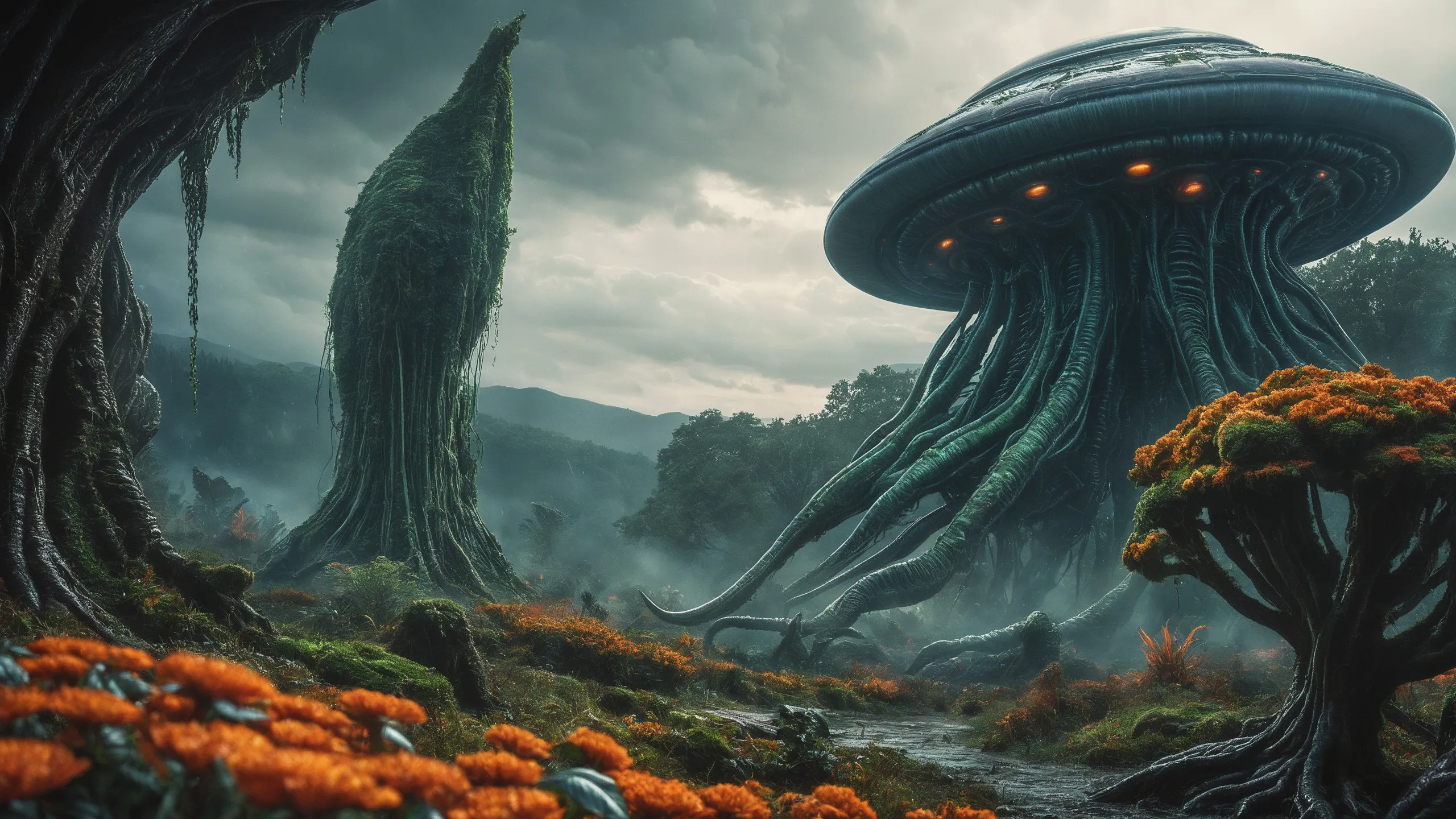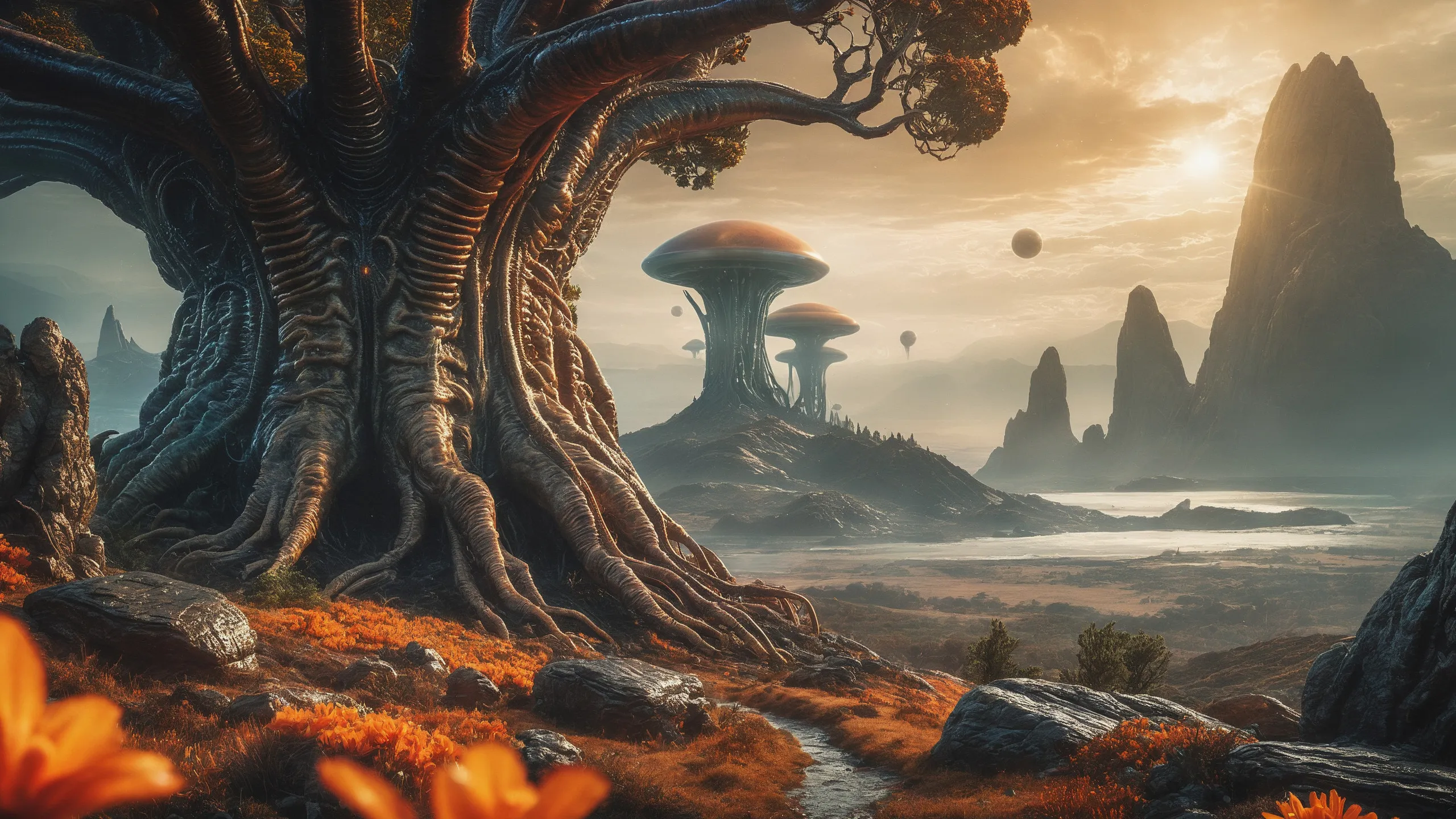 {0.1::lot of large trees with orange flowers, |0.9::}{0.1::huge trees, |0.9::}{0.1::large flowers, |0.9::}{0.1::large plants, |0.9::}{0.3::huge mushrooms, |0.7::}{0.3::huge carnivorous plants, |0.7::}{0.3::huge climbing plants, |0.7::}{0.3::huge glowing plants, |0.7::}{0.3::huge lichen, |0.7::}{0.3::huge moss, |0.7::}{0.1::large creepers, |0.9::}{0.1::large foam, |0.9::}{0.1::large glowing foam, |0.9::}
