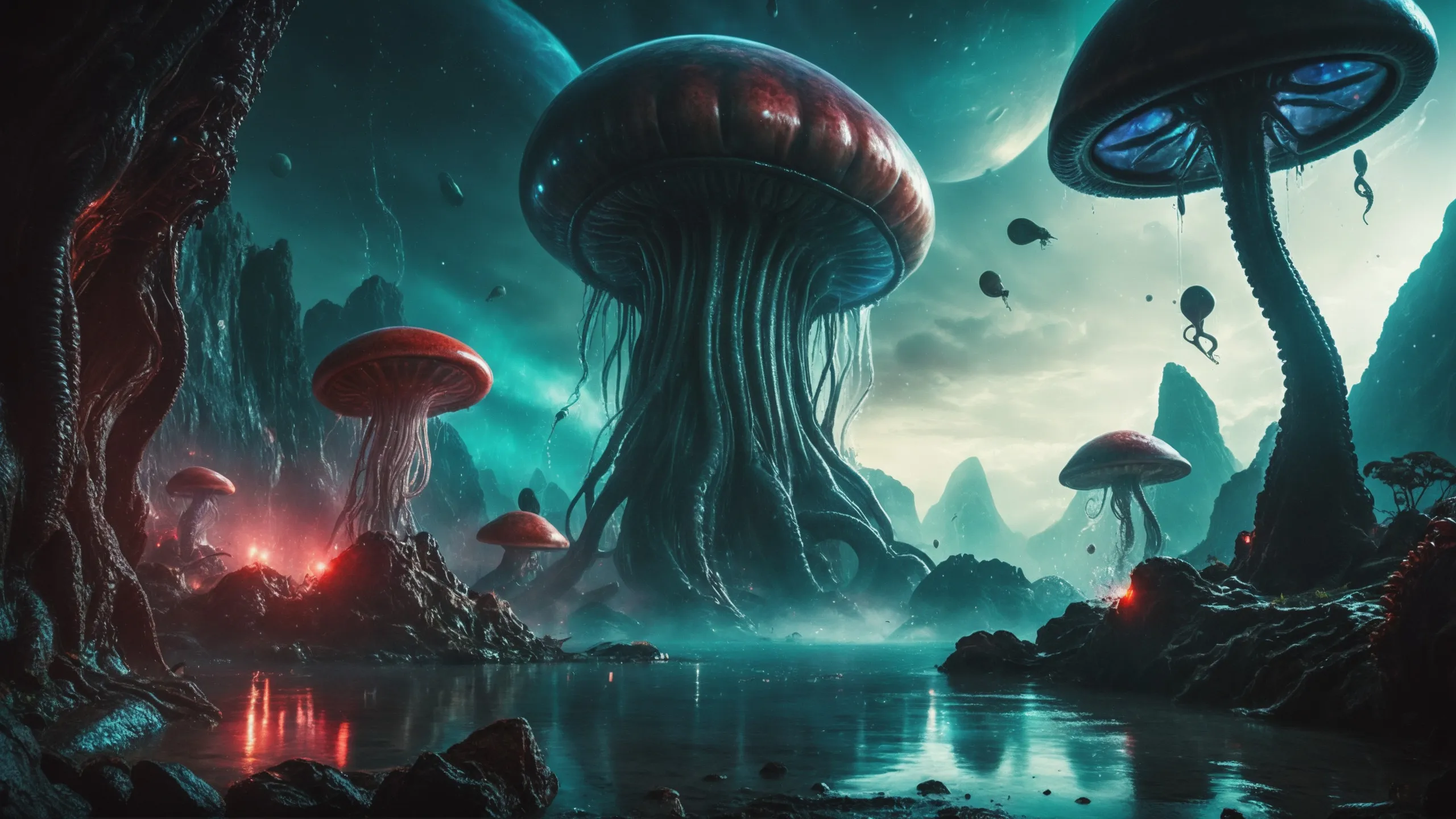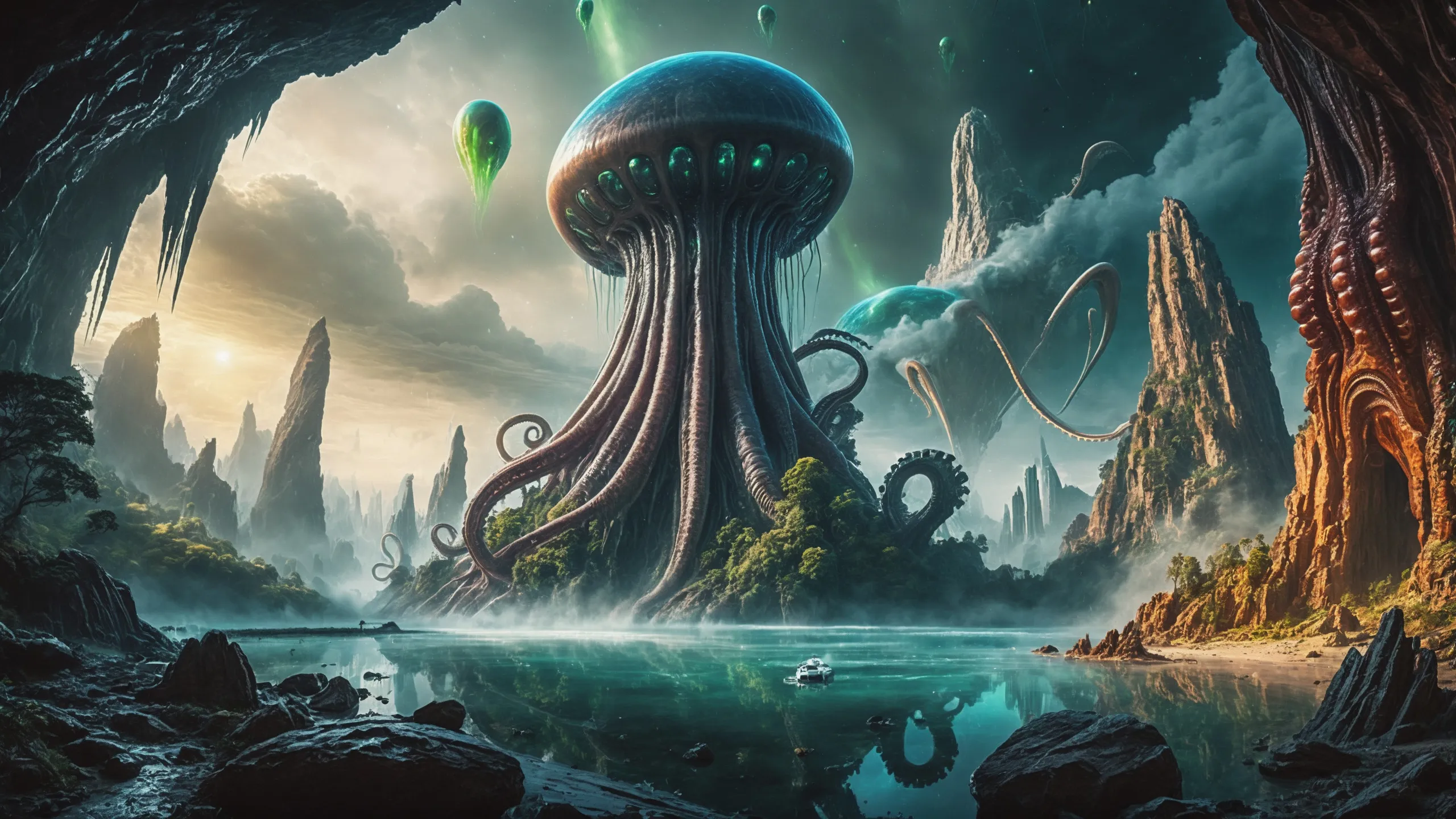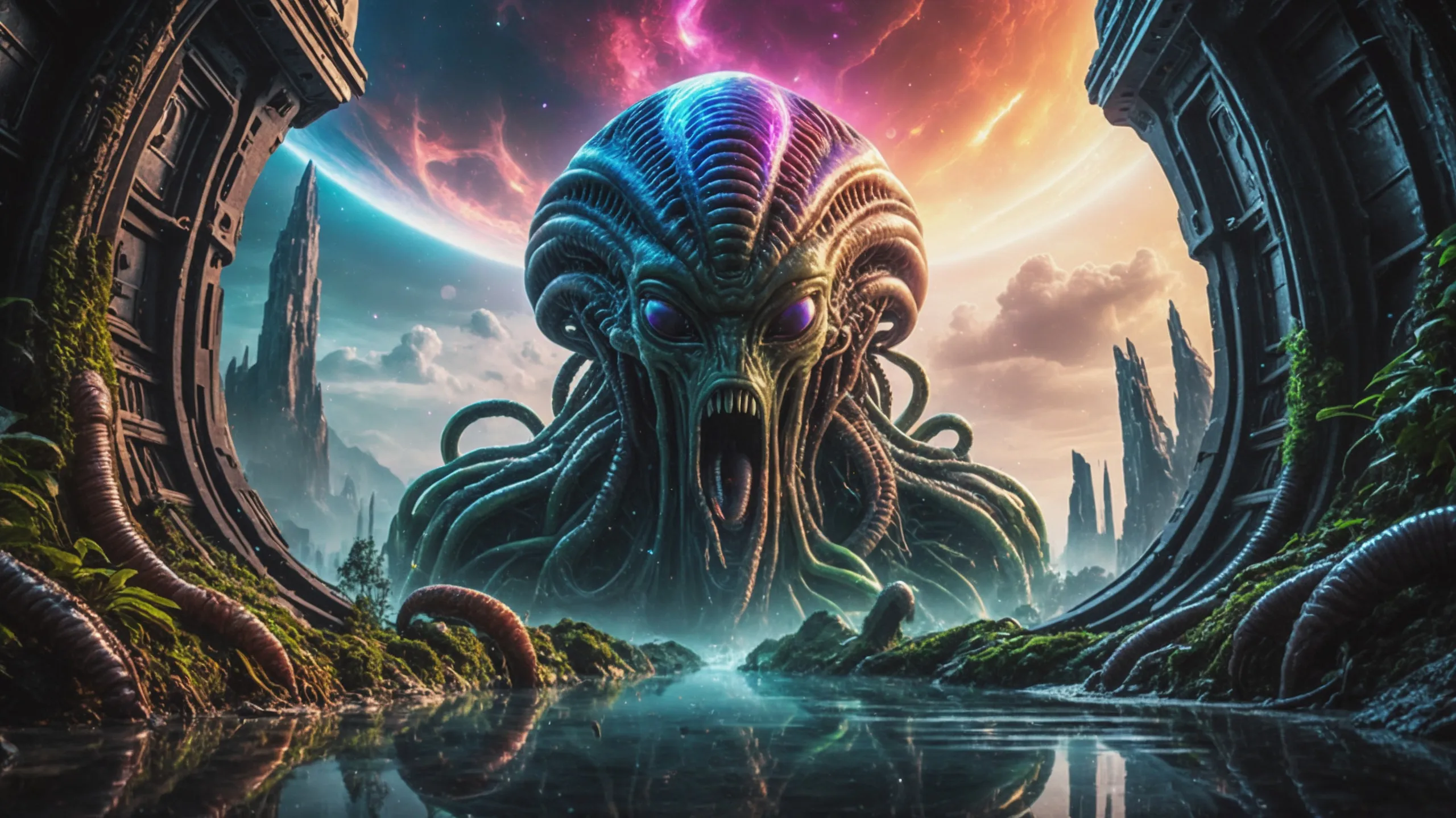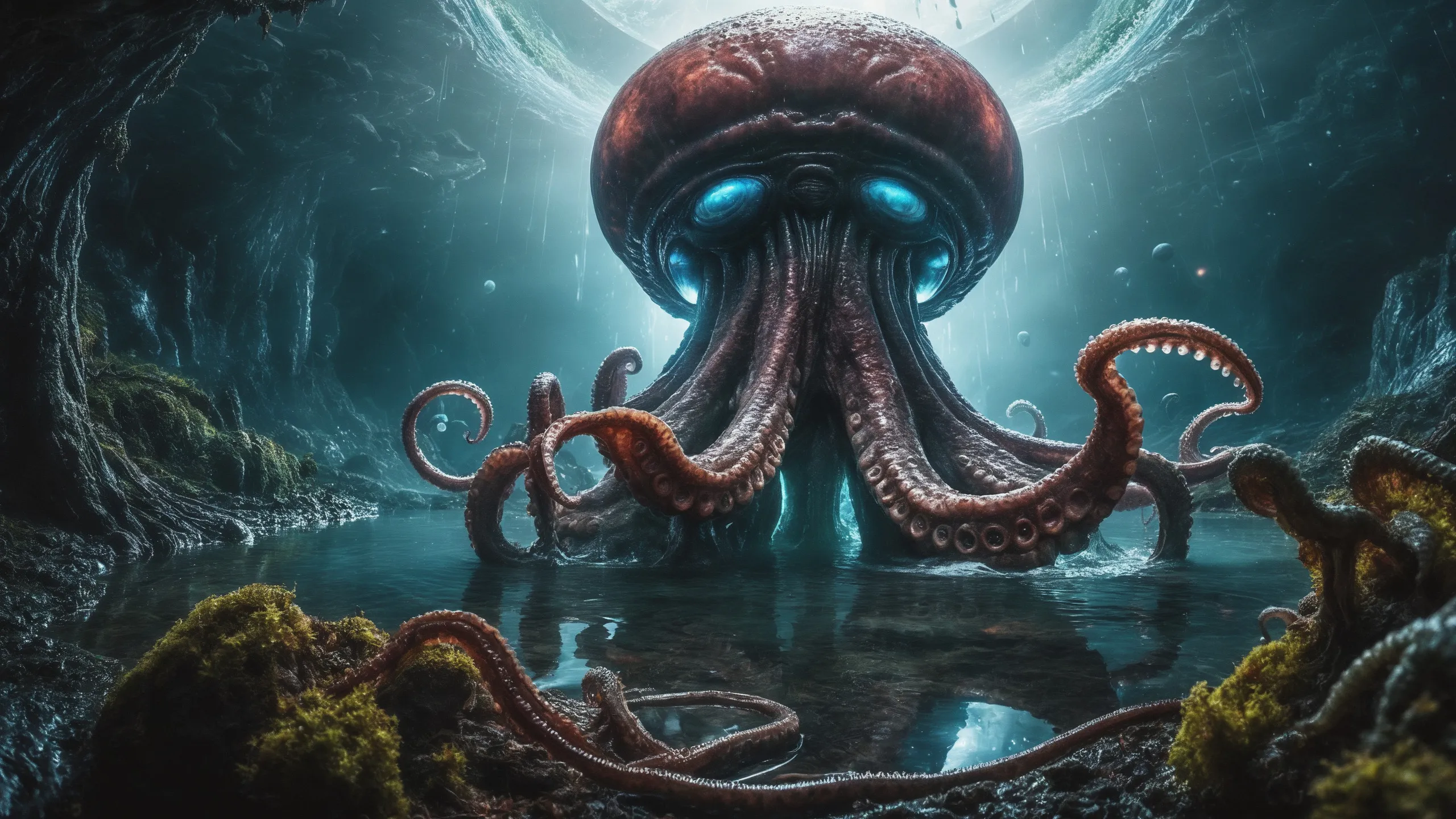 {0.1::(Underwater world:1.5), |0.9::}{0.1::(large cephalopod:1.5), |0.9::}{0.1::(large medusa:1.5), |0.9::}{0.1::(large worms:1.5), |0.9::}{0.1::everything covered with spiders and spider webs, |0.9::}{0.1::everything covered with disgusting slime, |0.9::}{0.1::everything covered with disgusting worms, |0.9::}