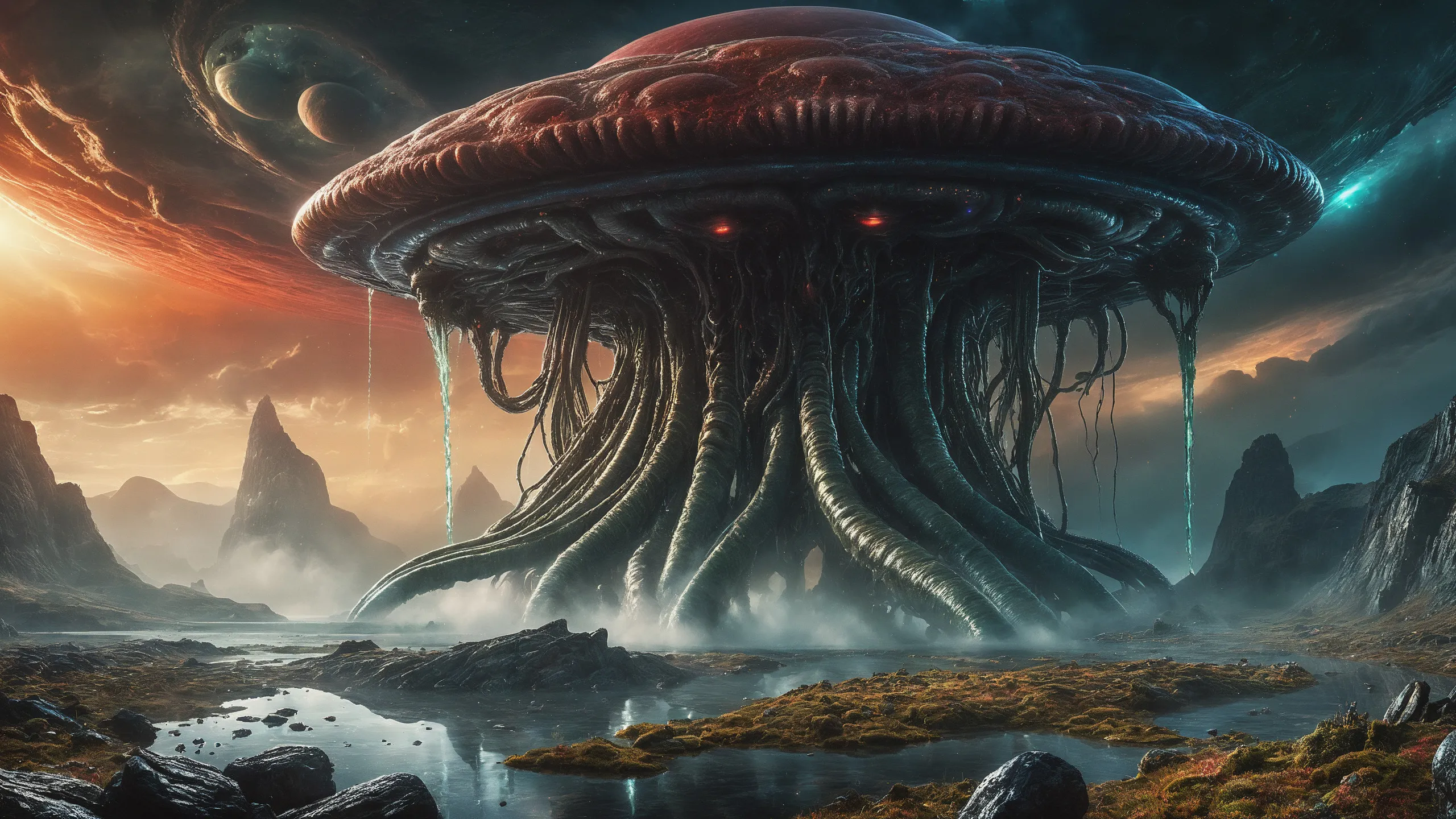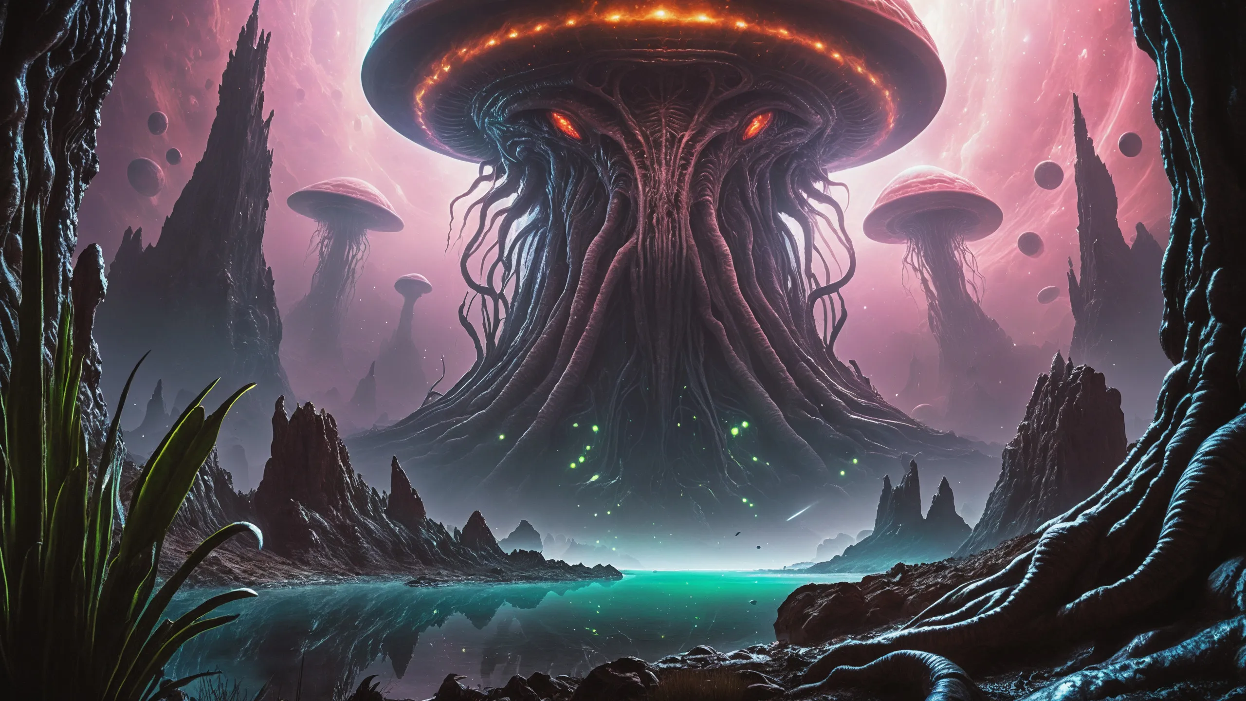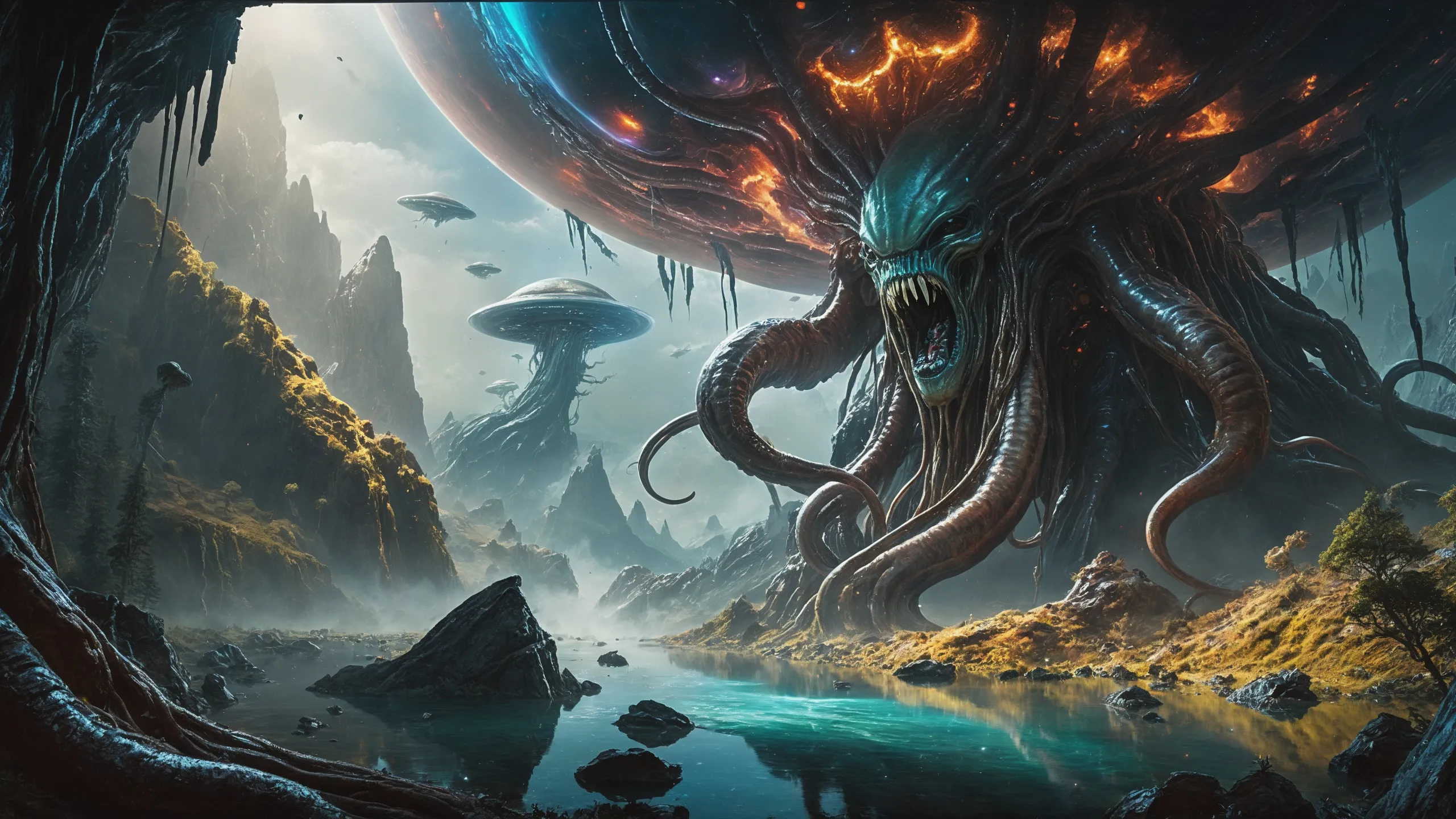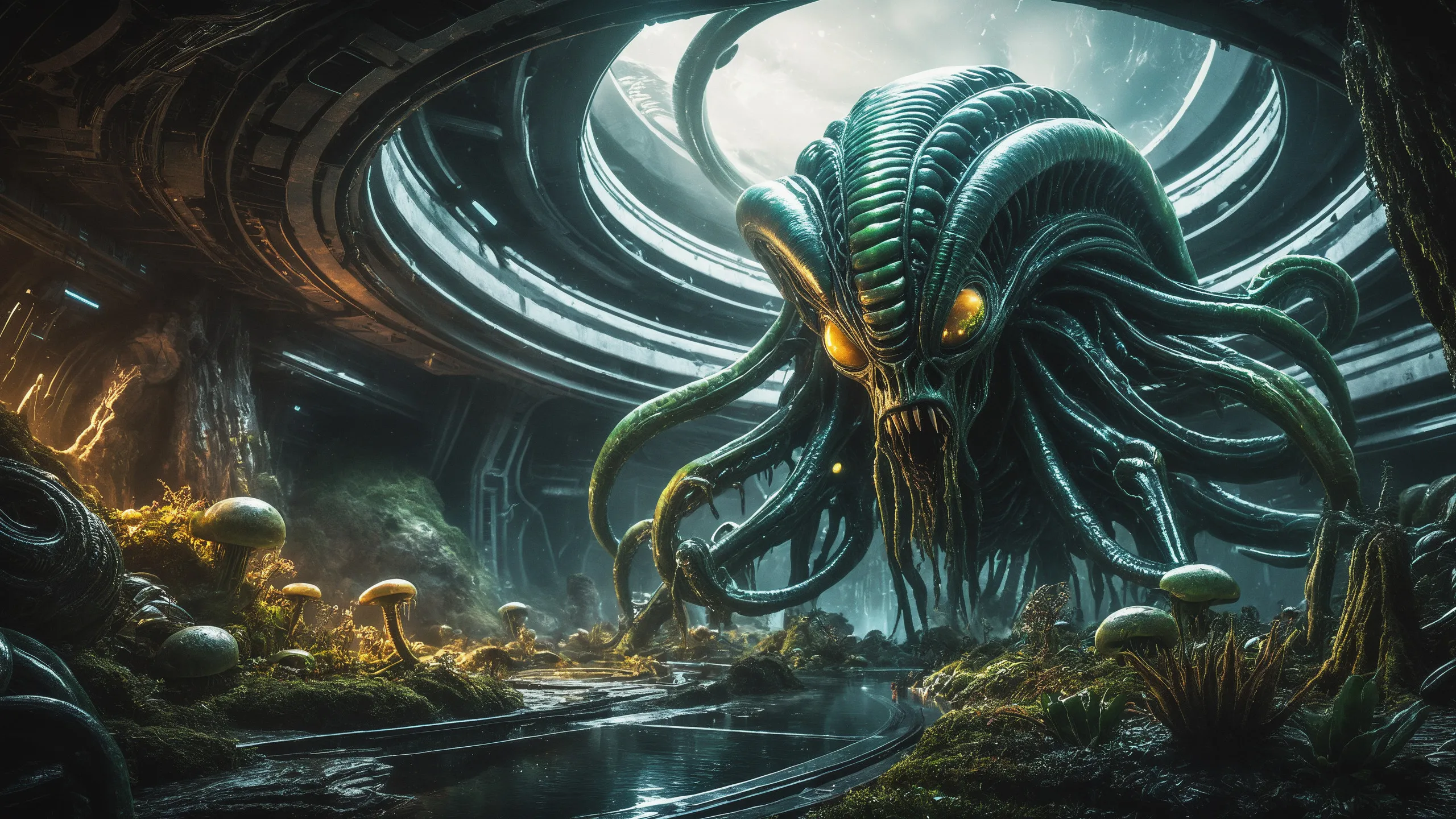{0.1::(Underwater world:1.5), |0.9::}{0.1::(large cephalopod:1.5), |0.9::}{0.1::(large medusa:1.5), |0.9::}{0.1::(large worms:1.5), |0.9::}{0.1::everything covered with spiders and spider webs, |0.9::}{0.1::everything covered with disgusting slime, |0.9::}{0.1::everything covered with disgusting worms, |0.9::}