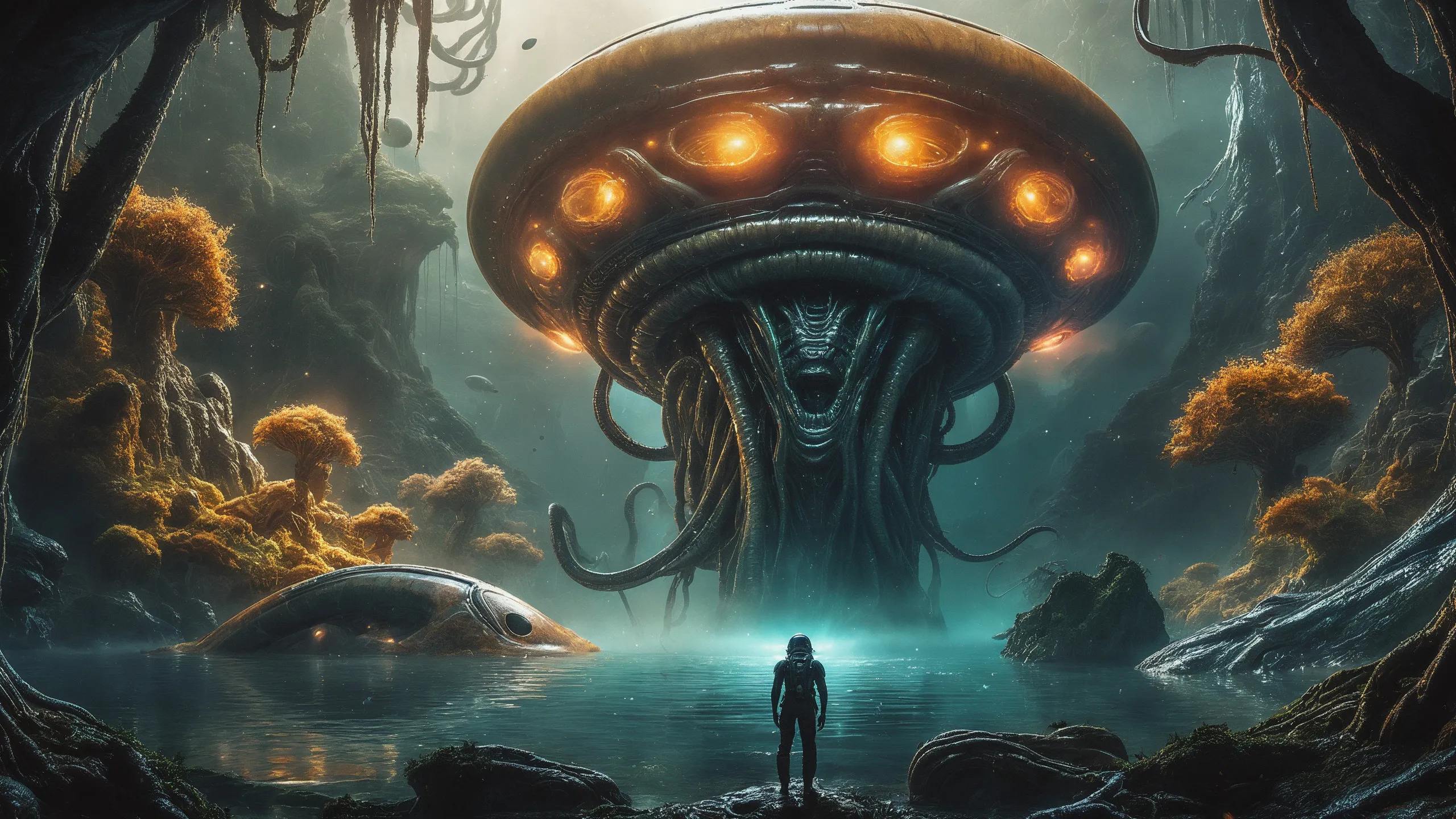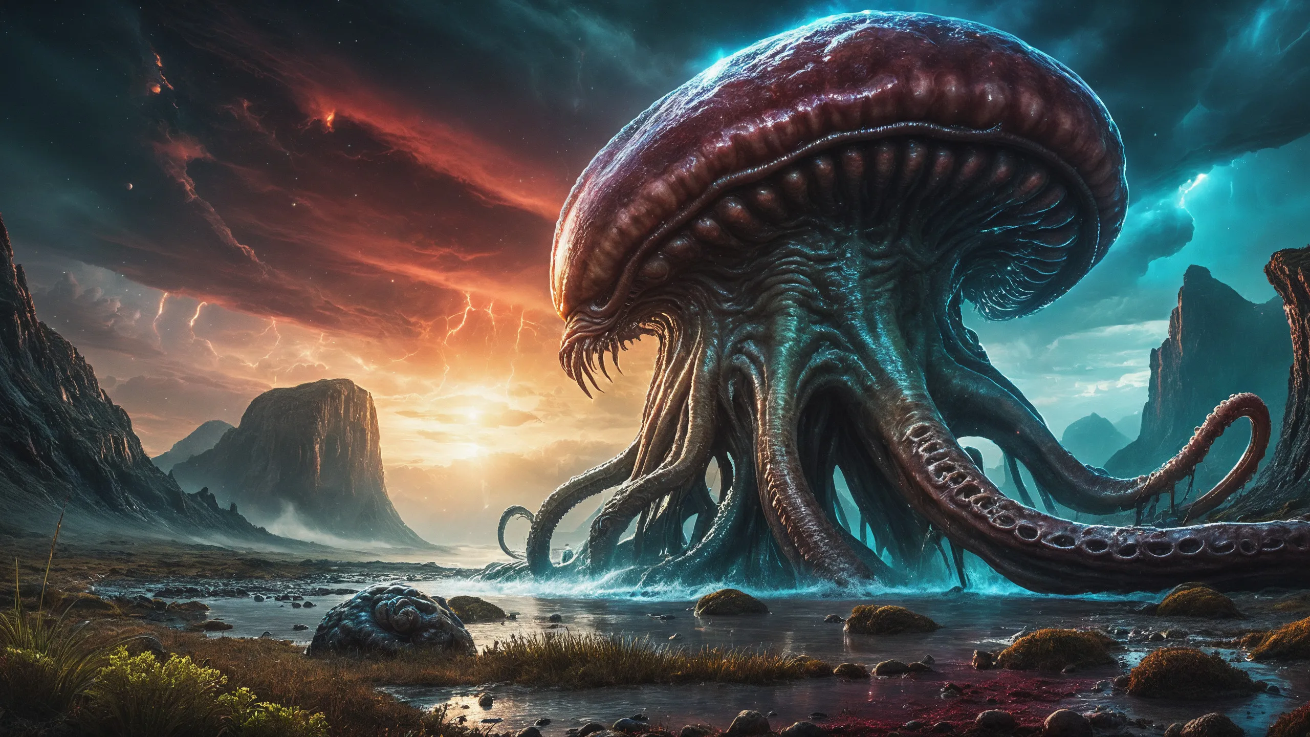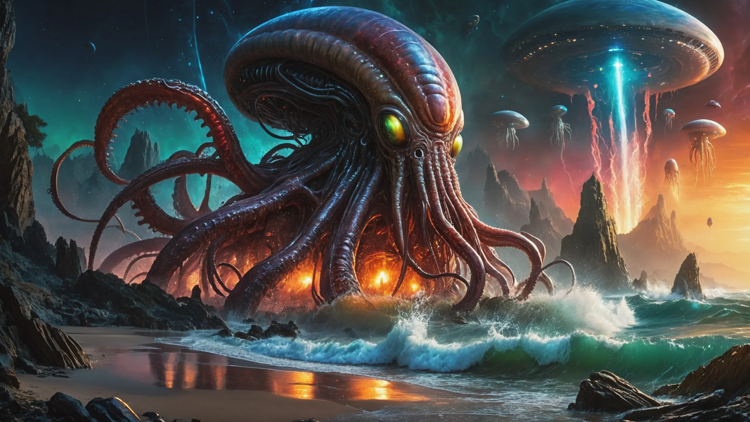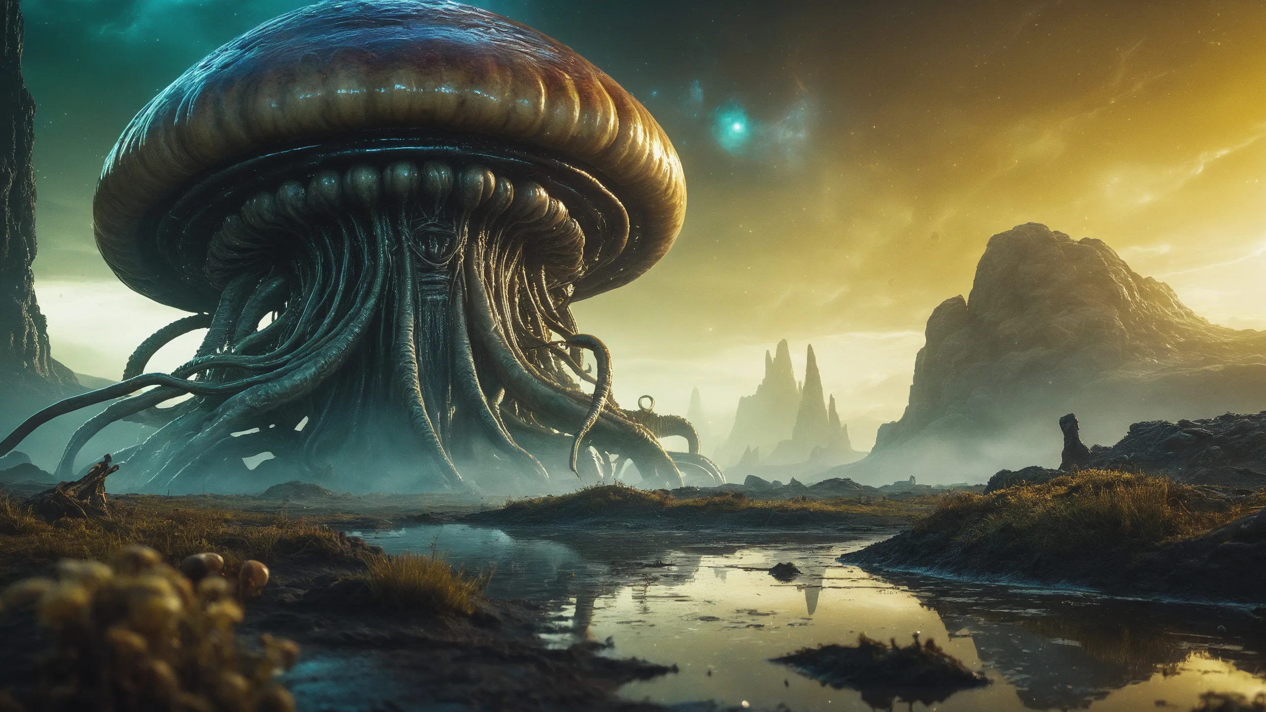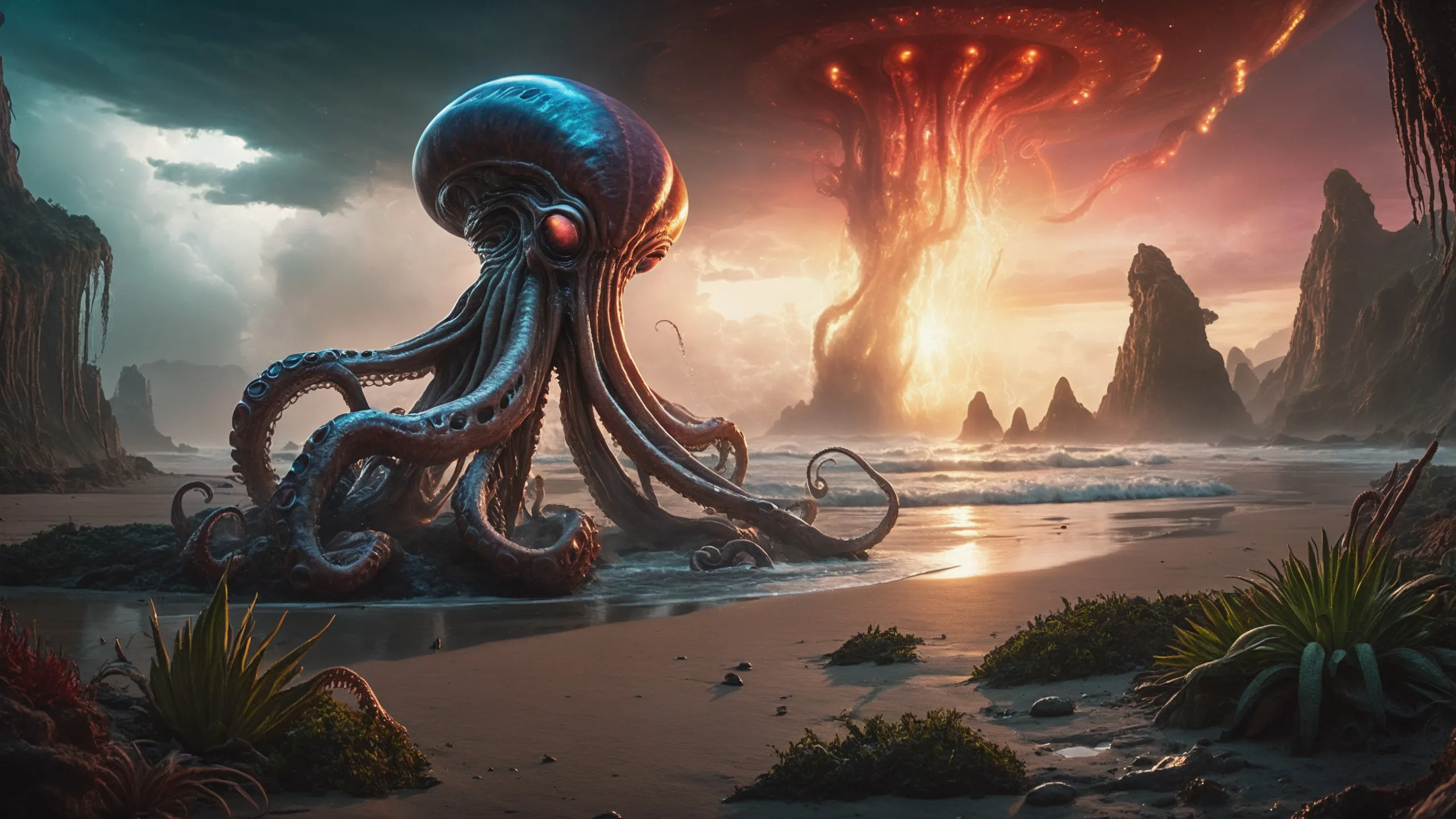 {0.1::(Underwater world:1.5), |0.9::}{0.1::(large cephalopod:1.5), |0.9::}{0.1::(large medusa:1.5), |0.9::}{0.1::(large worms:1.5), |0.9::}{0.1::everything covered with spiders and spider webs, |0.9::}{0.1::everything covered with disgusting slime, |0.9::}{0.1::everything covered with disgusting worms, |0.9::}