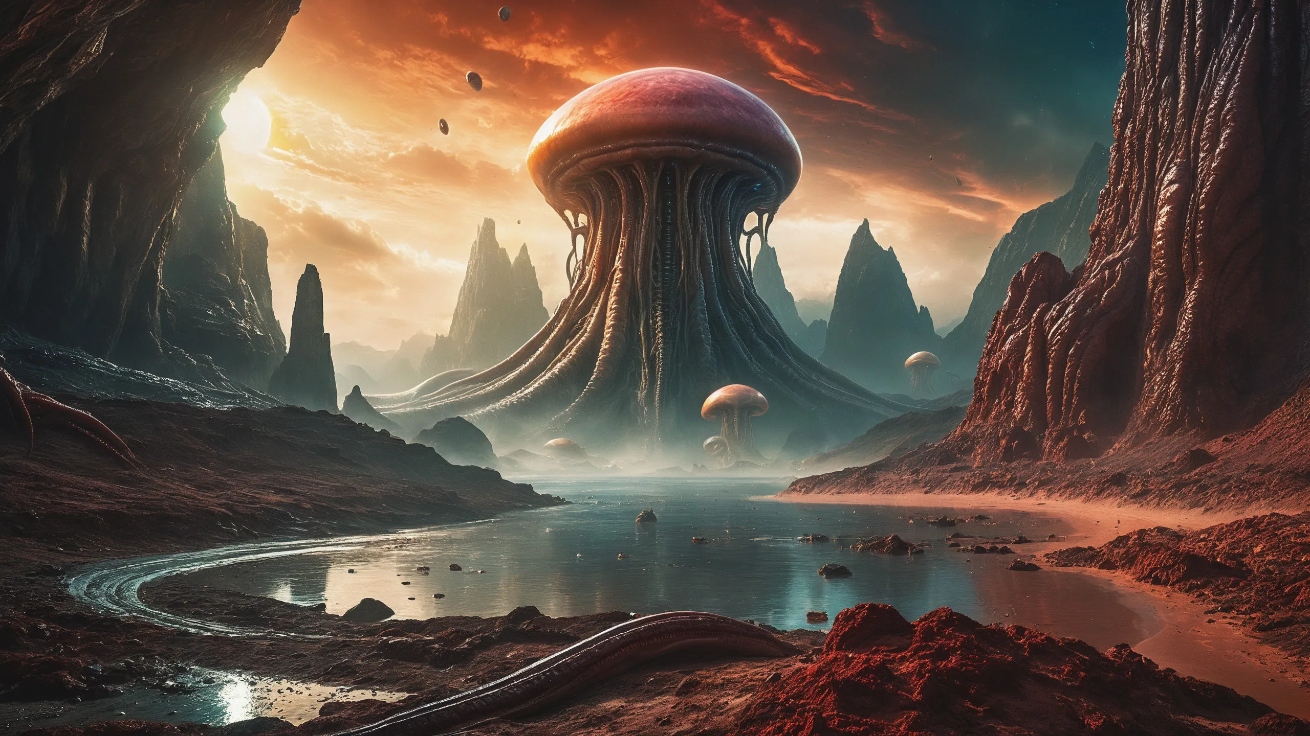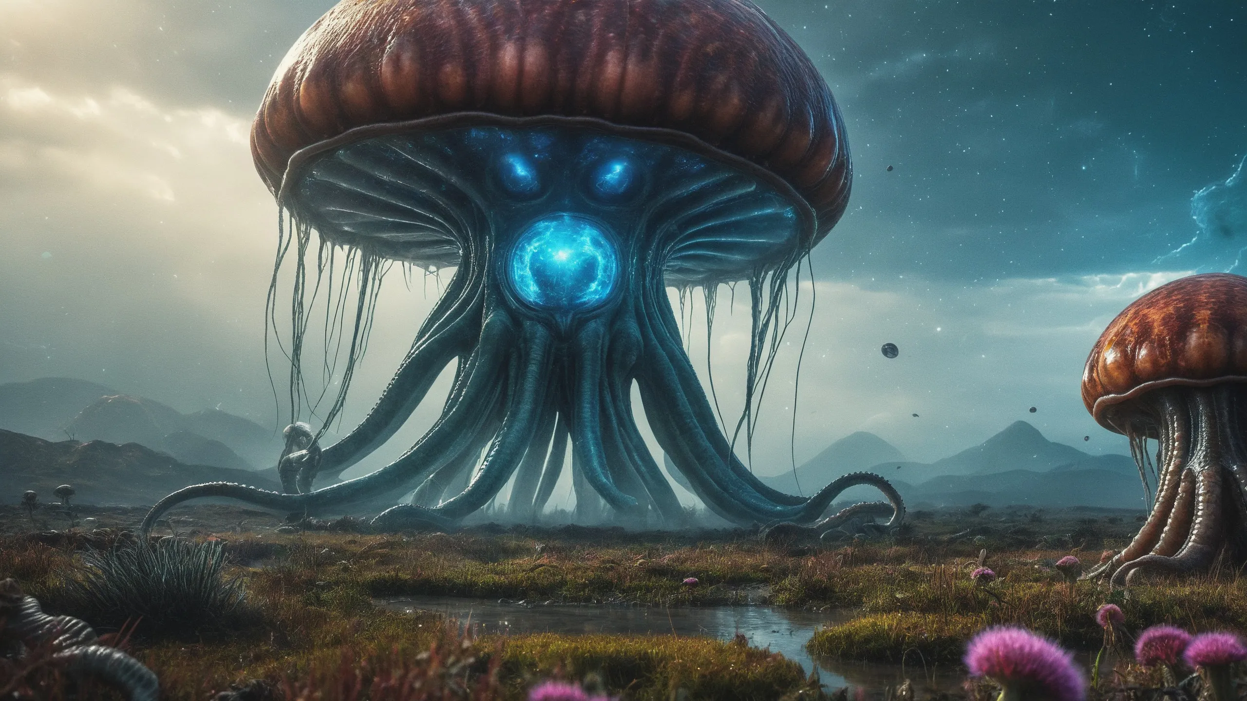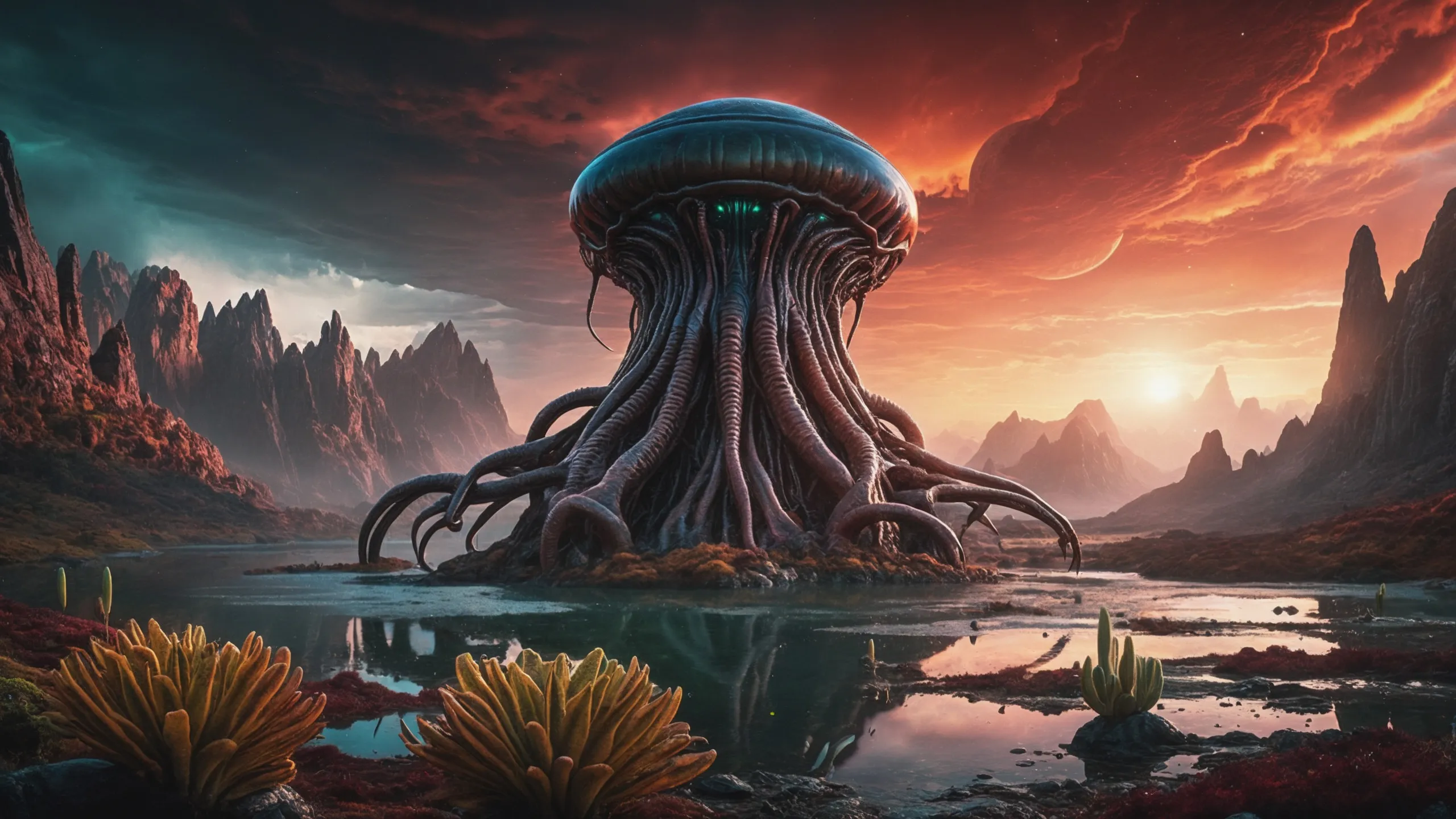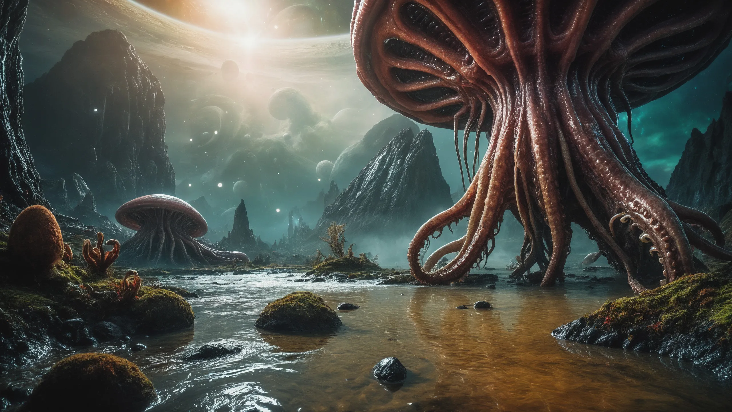{0.1::(Underwater world:1.5), |0.9::}{0.1::(large cephalopod:1.5), |0.9::}{0.1::(large medusa:1.5), |0.9::}{0.1::(large worms:1.5), |0.9::}{0.1::everything covered with spiders and spider webs, |0.9::}{0.1::everything covered with disgusting slime, |0.9::}{0.1::everything covered with disgusting worms, |0.9::}