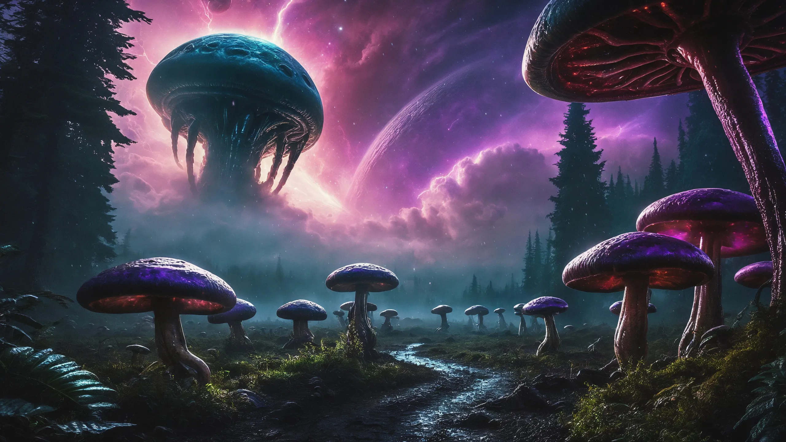 Mystical world illuminated by dynamic lights.