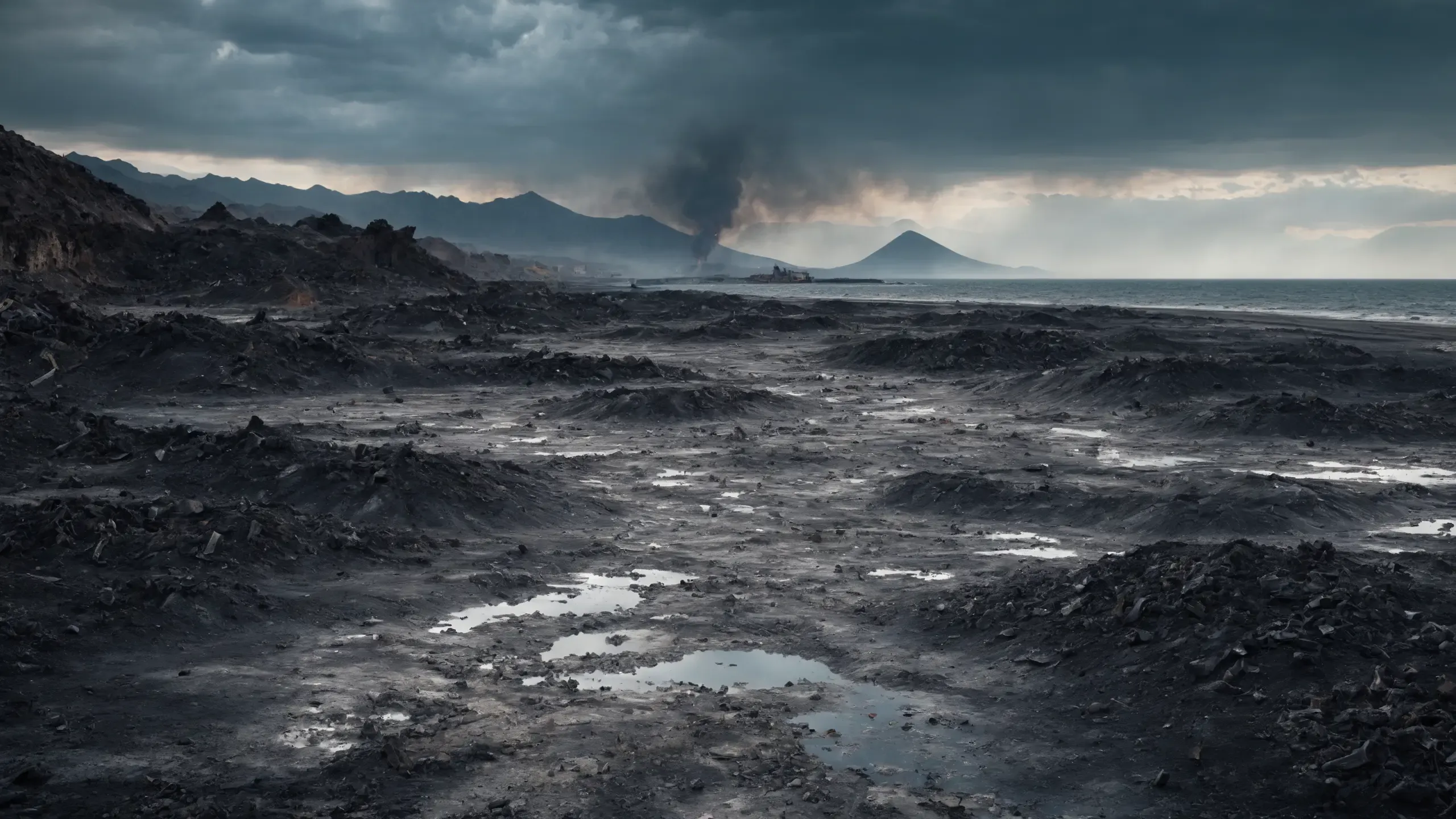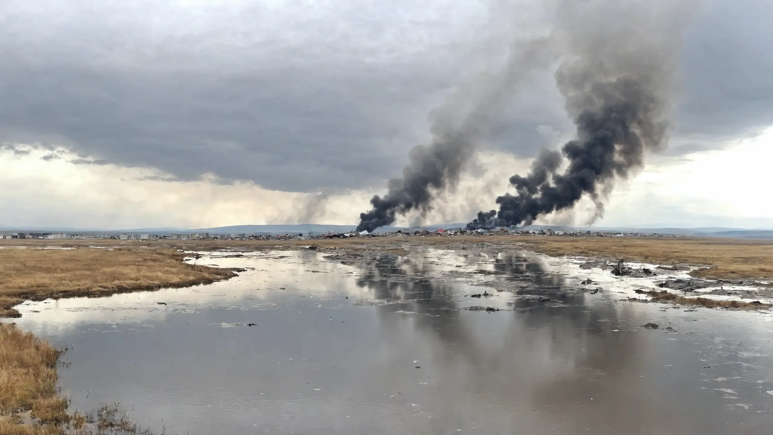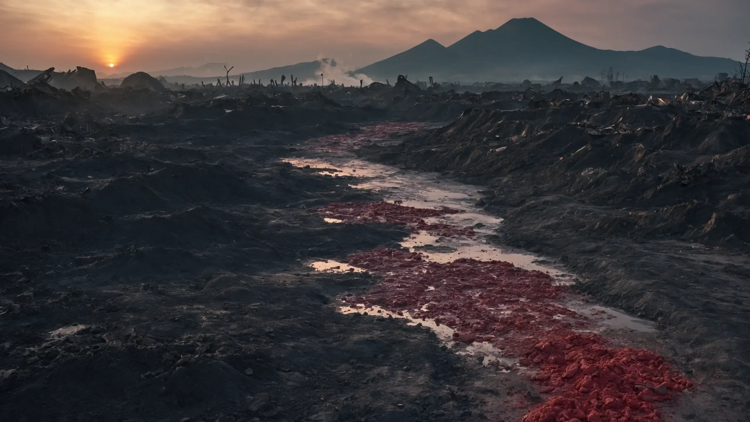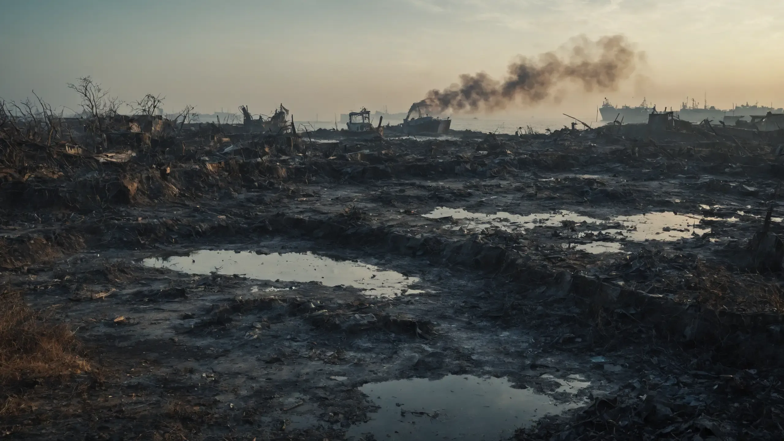 {corpses|carcasses|rubble| scrap metal|oil|foam|plastic waste|sulfur fumes},