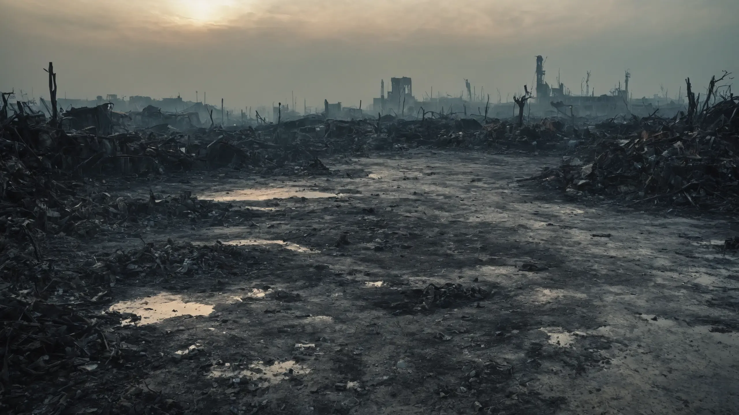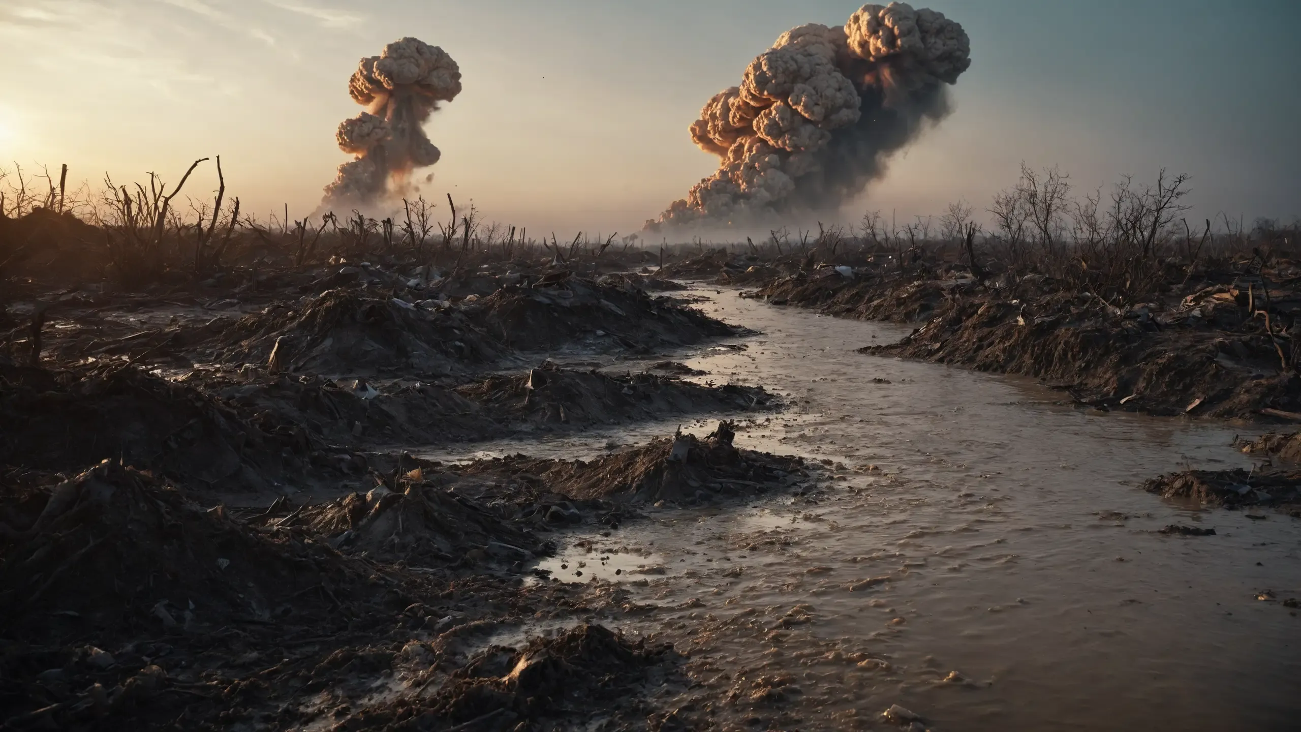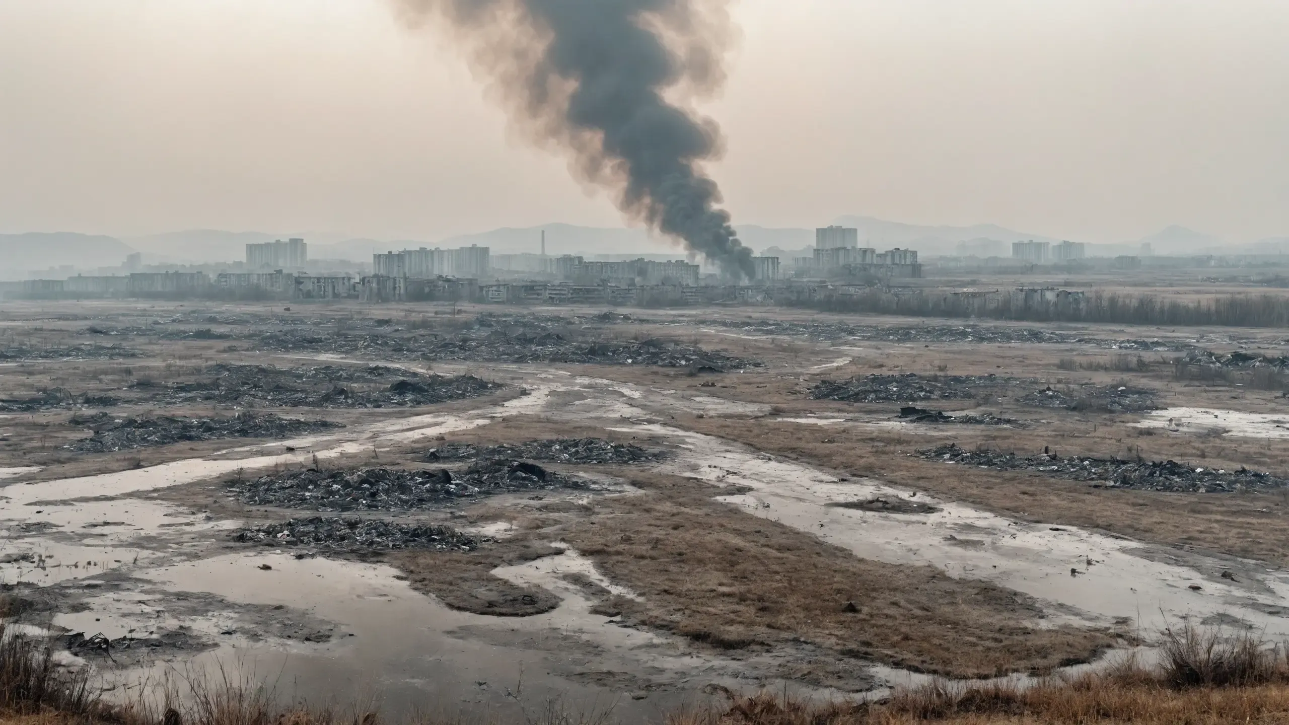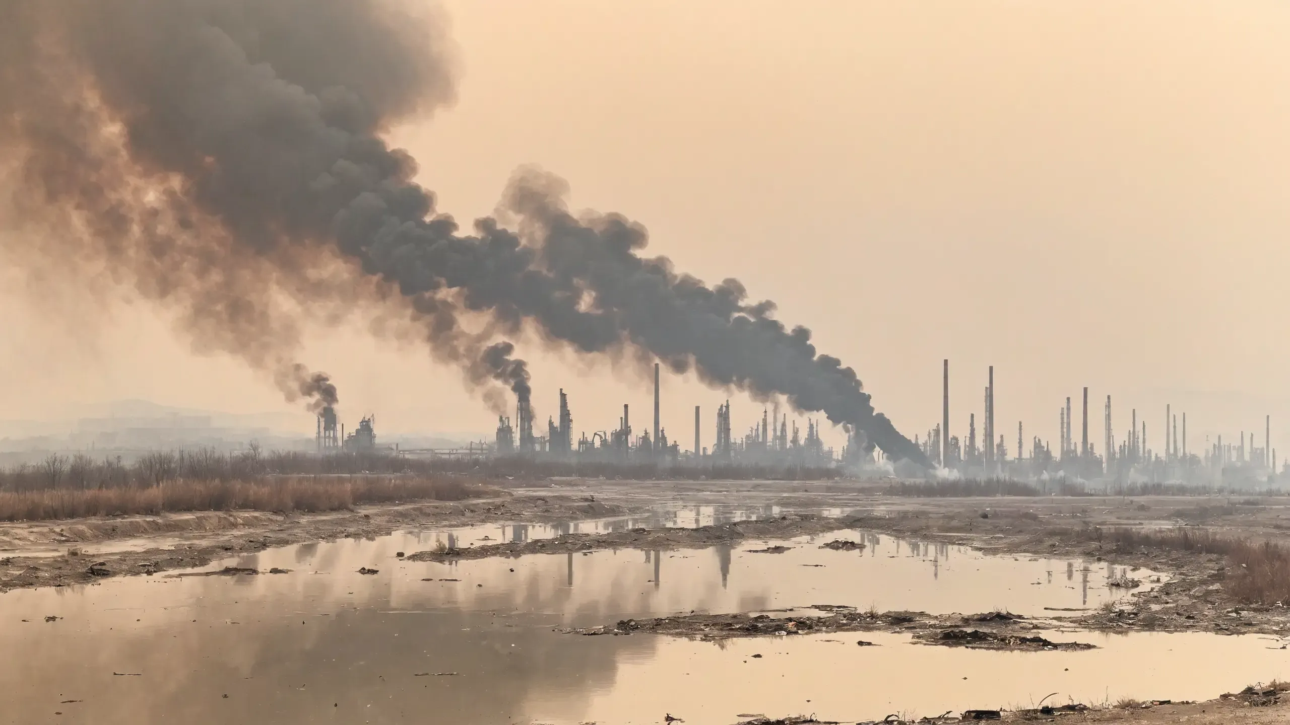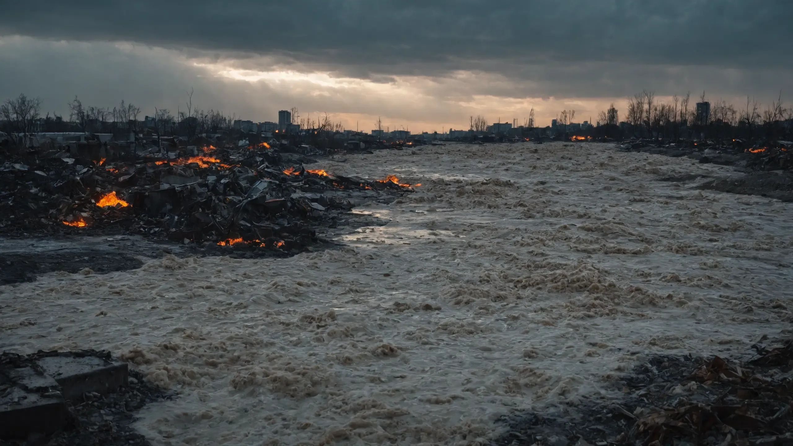 (devastation, death, destruction, toxic, polluted, garbage, environmental pollution, toxic foam on the water:1.5),