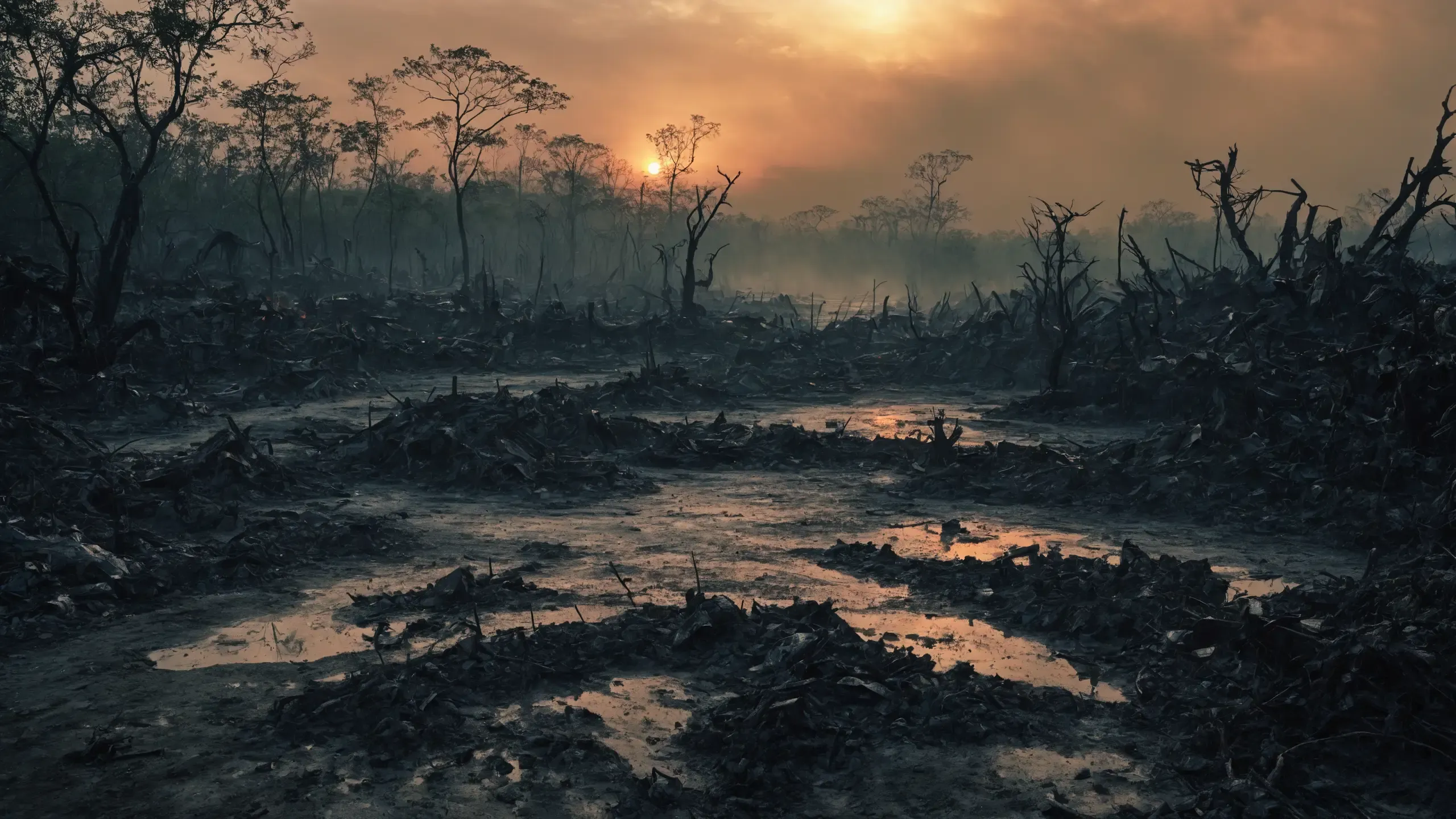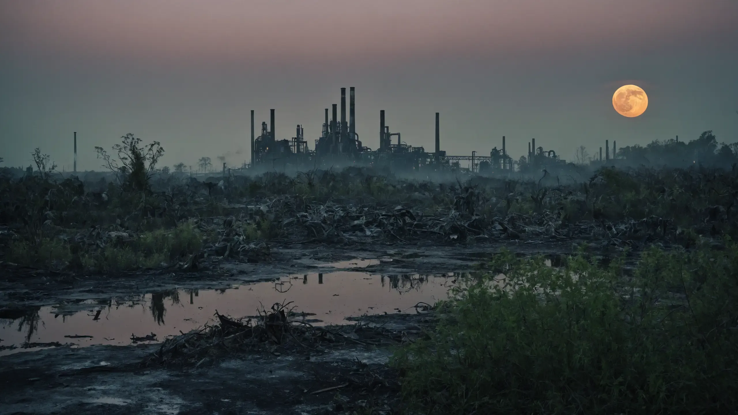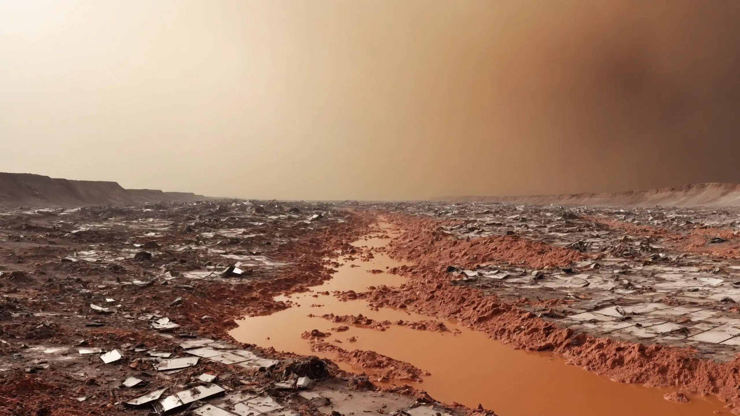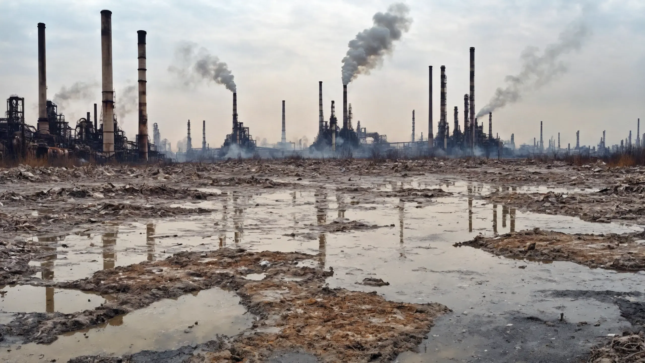 (devastation, death, destruction, toxic, polluted, garbage, environmental pollution, toxic foam on the water:1.5),