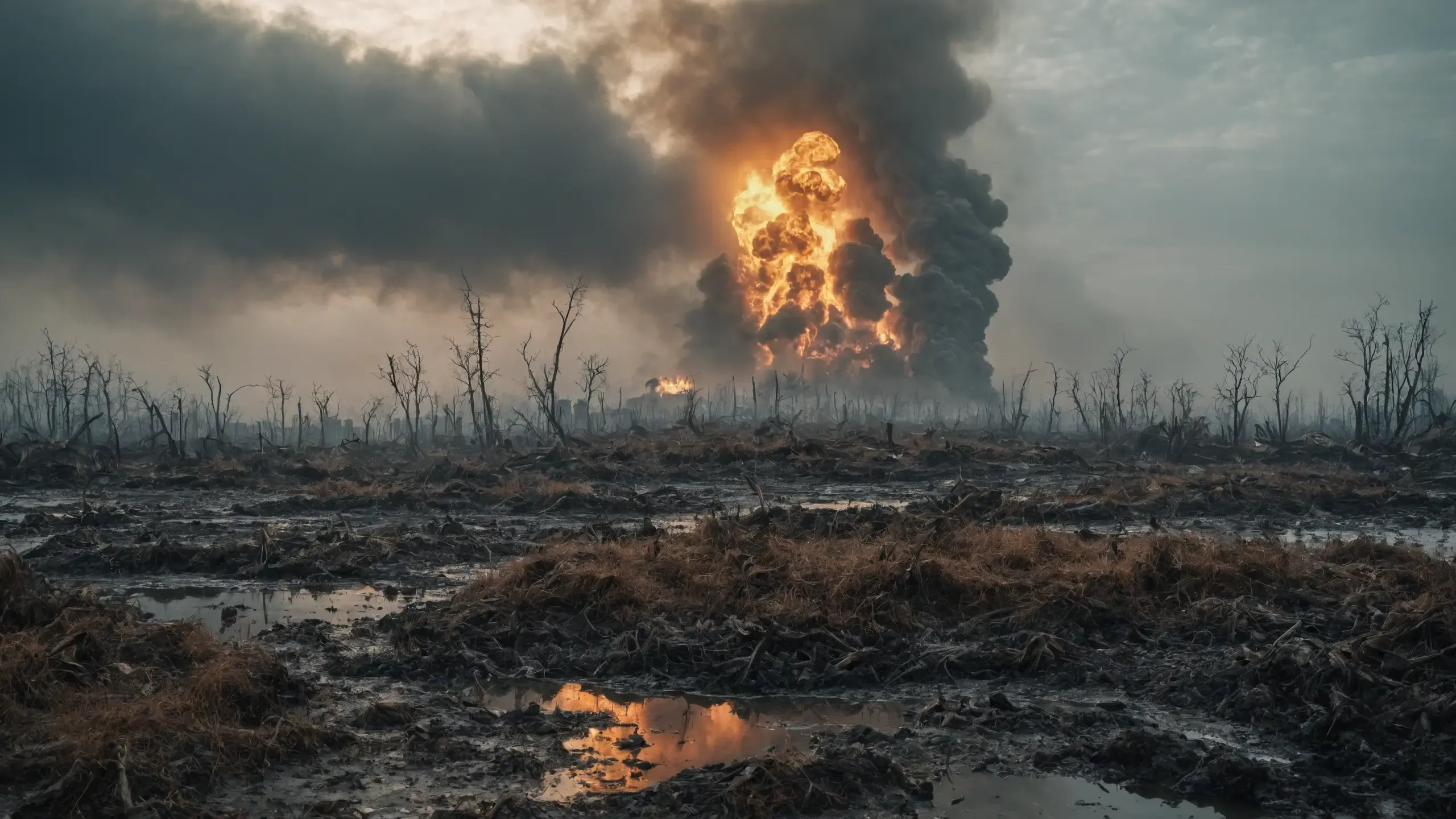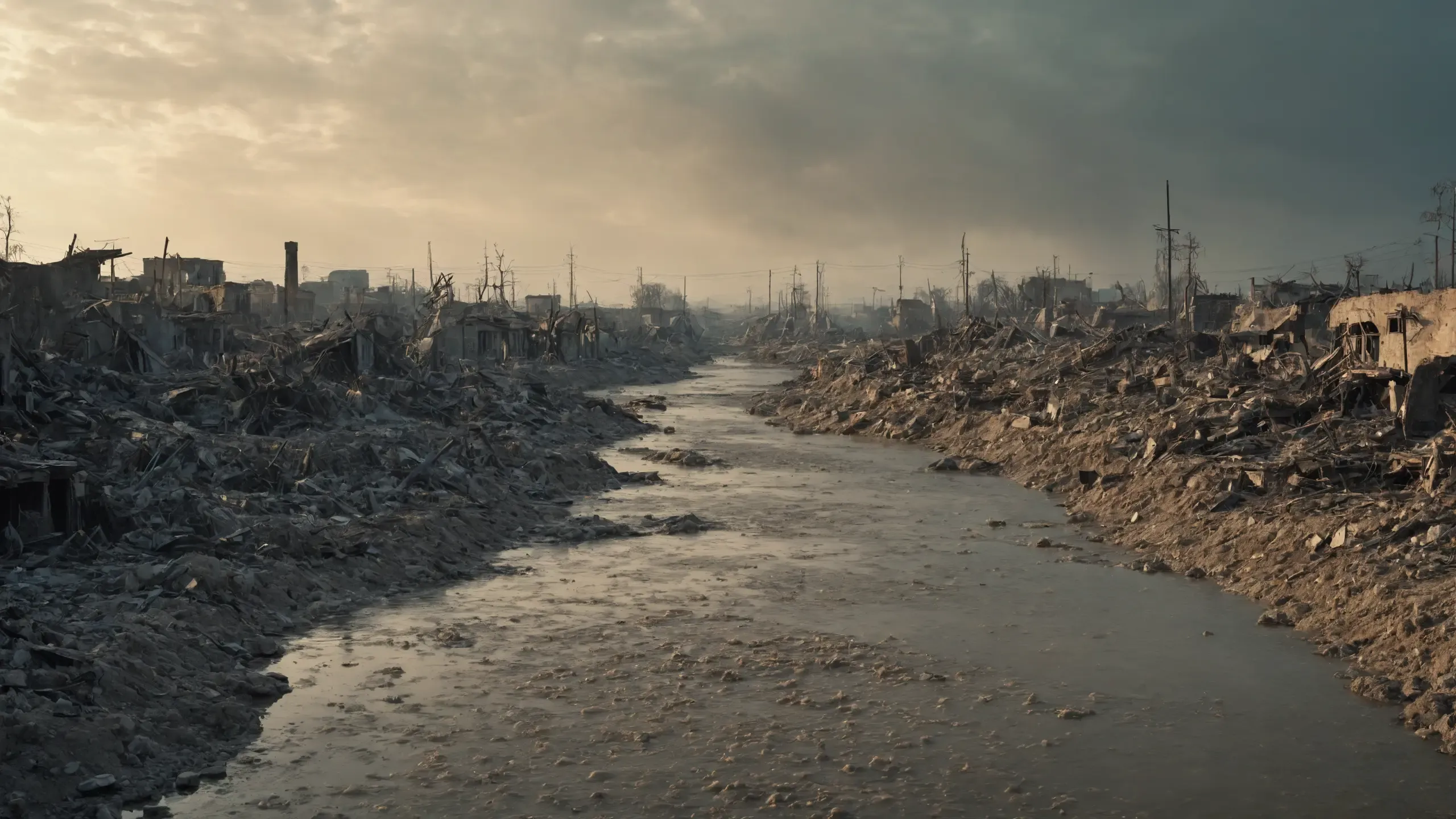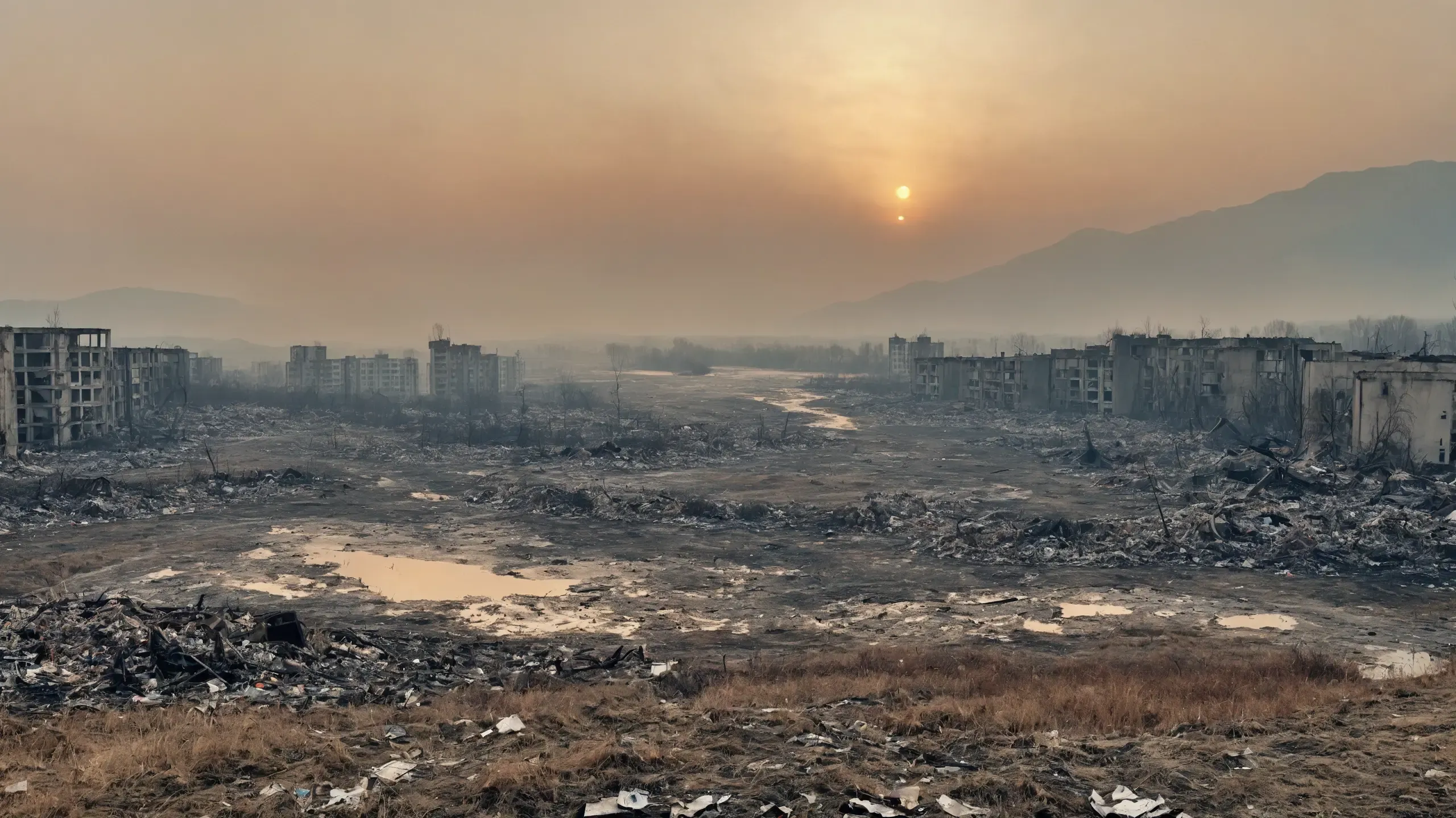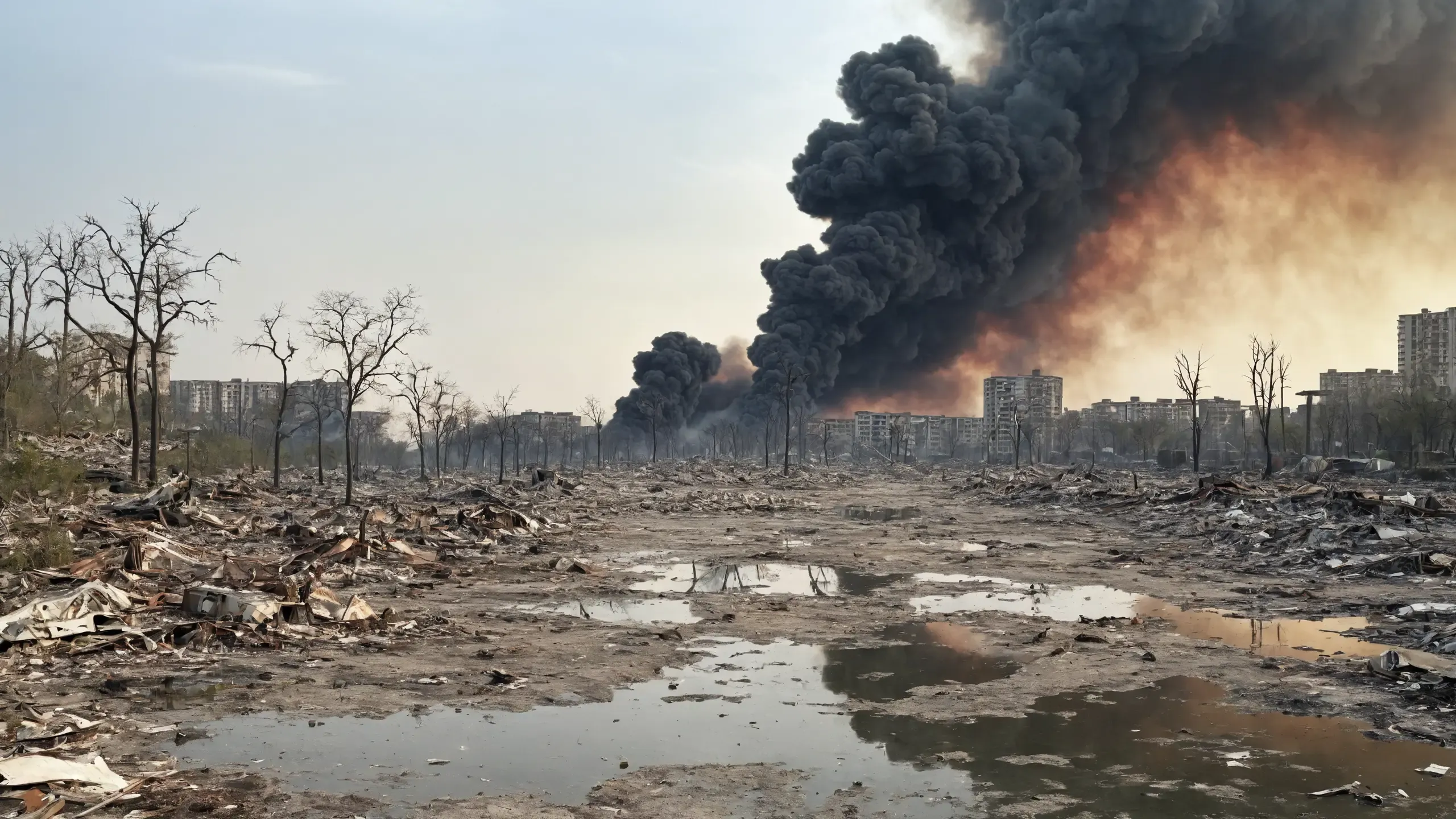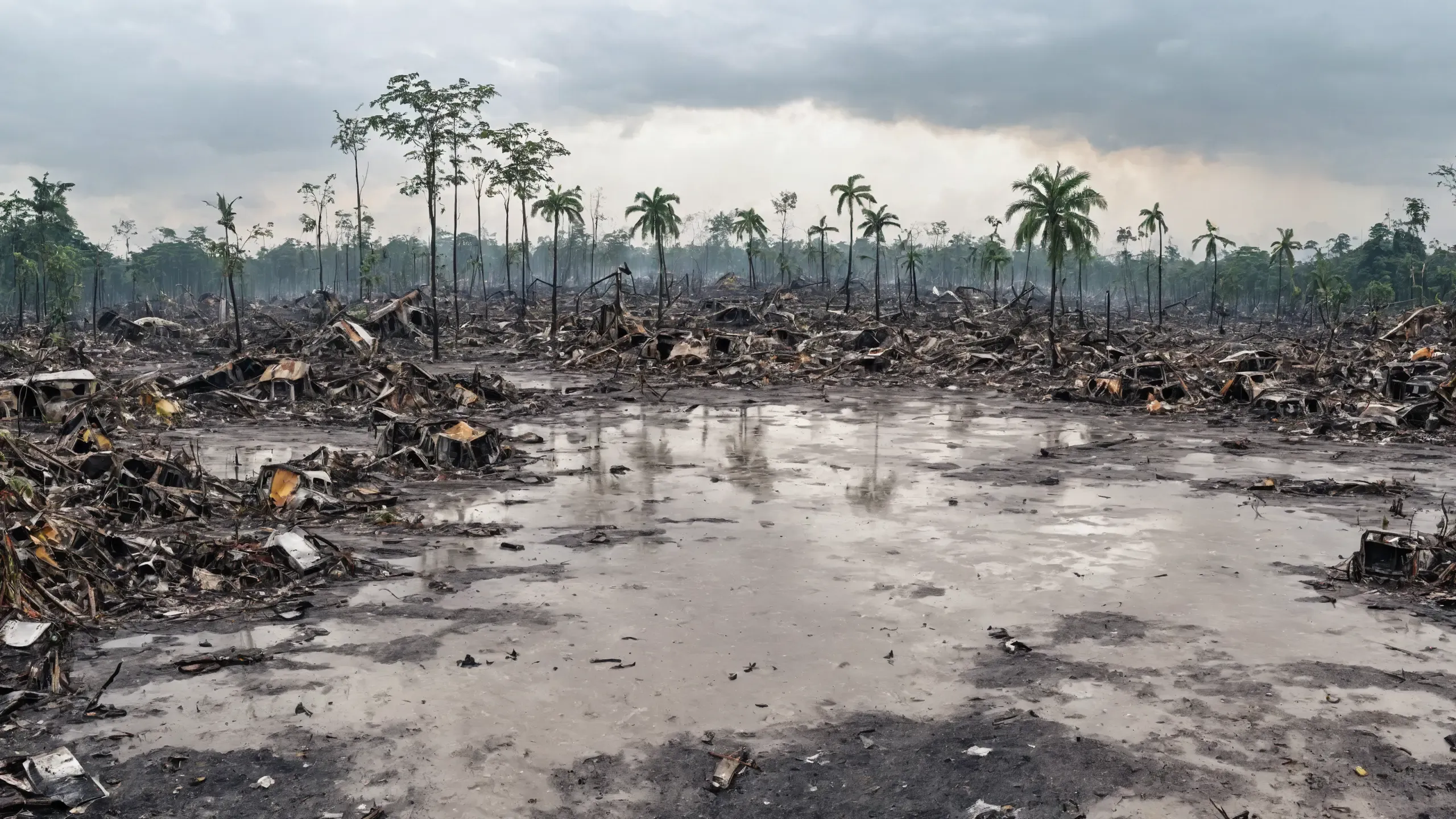 (devastation, death, destruction, toxic, polluted, garbage, environmental pollution, toxic foam on the water:1.5),