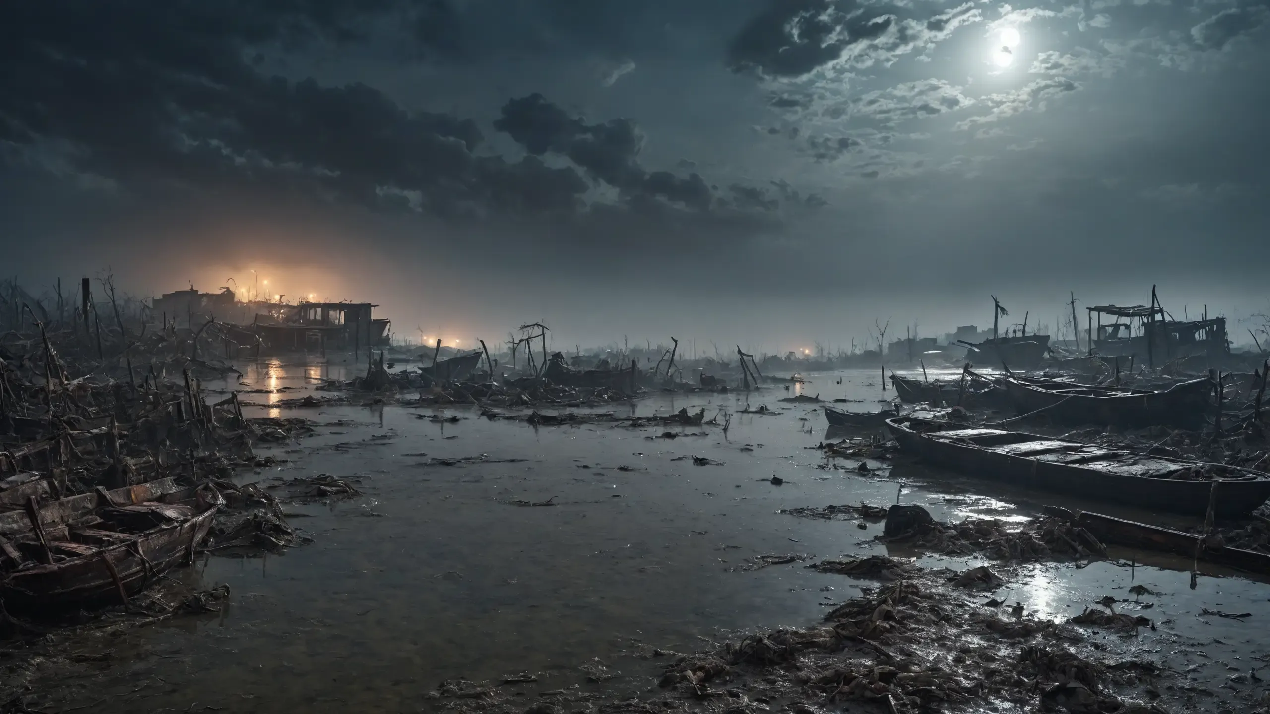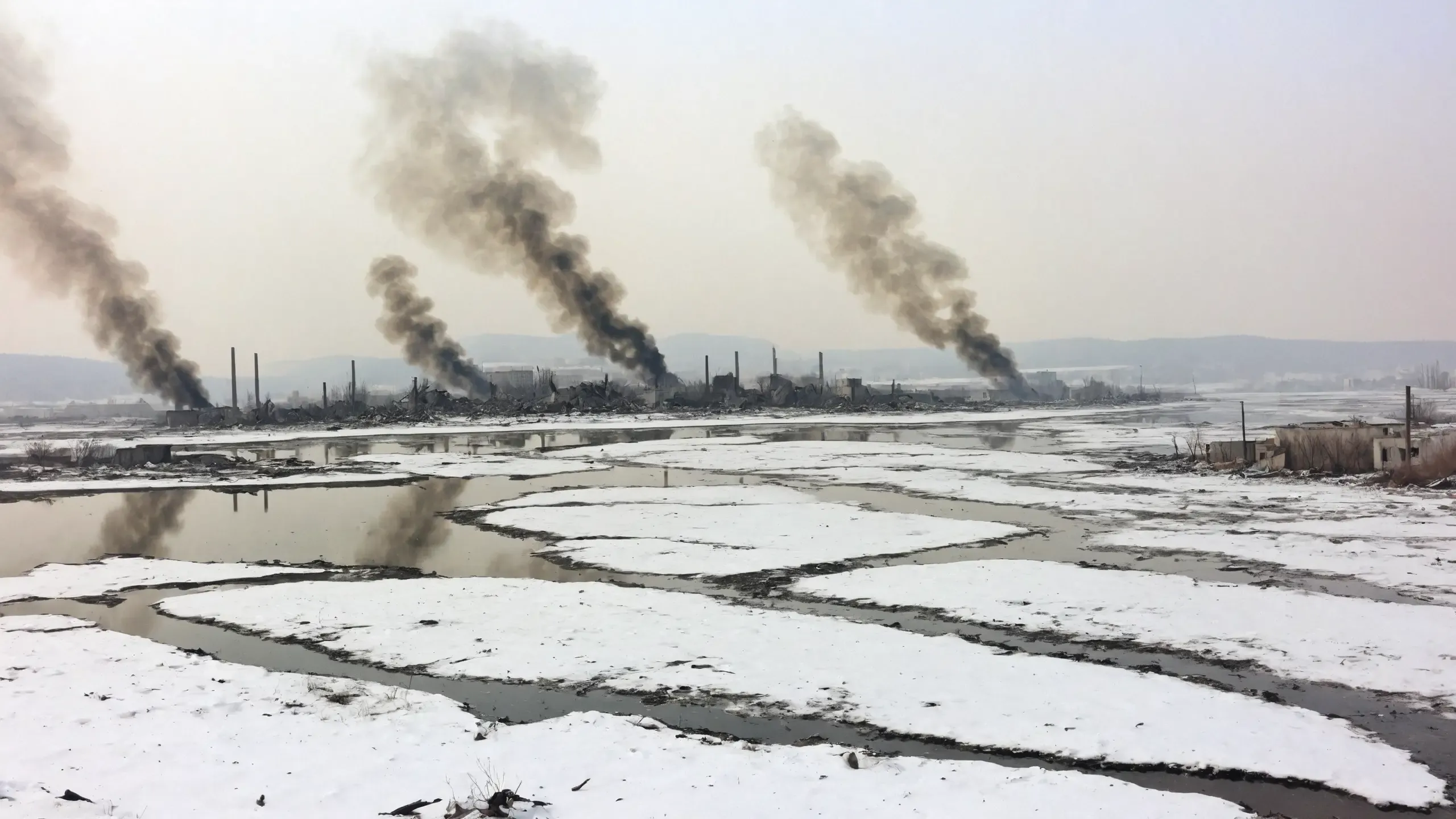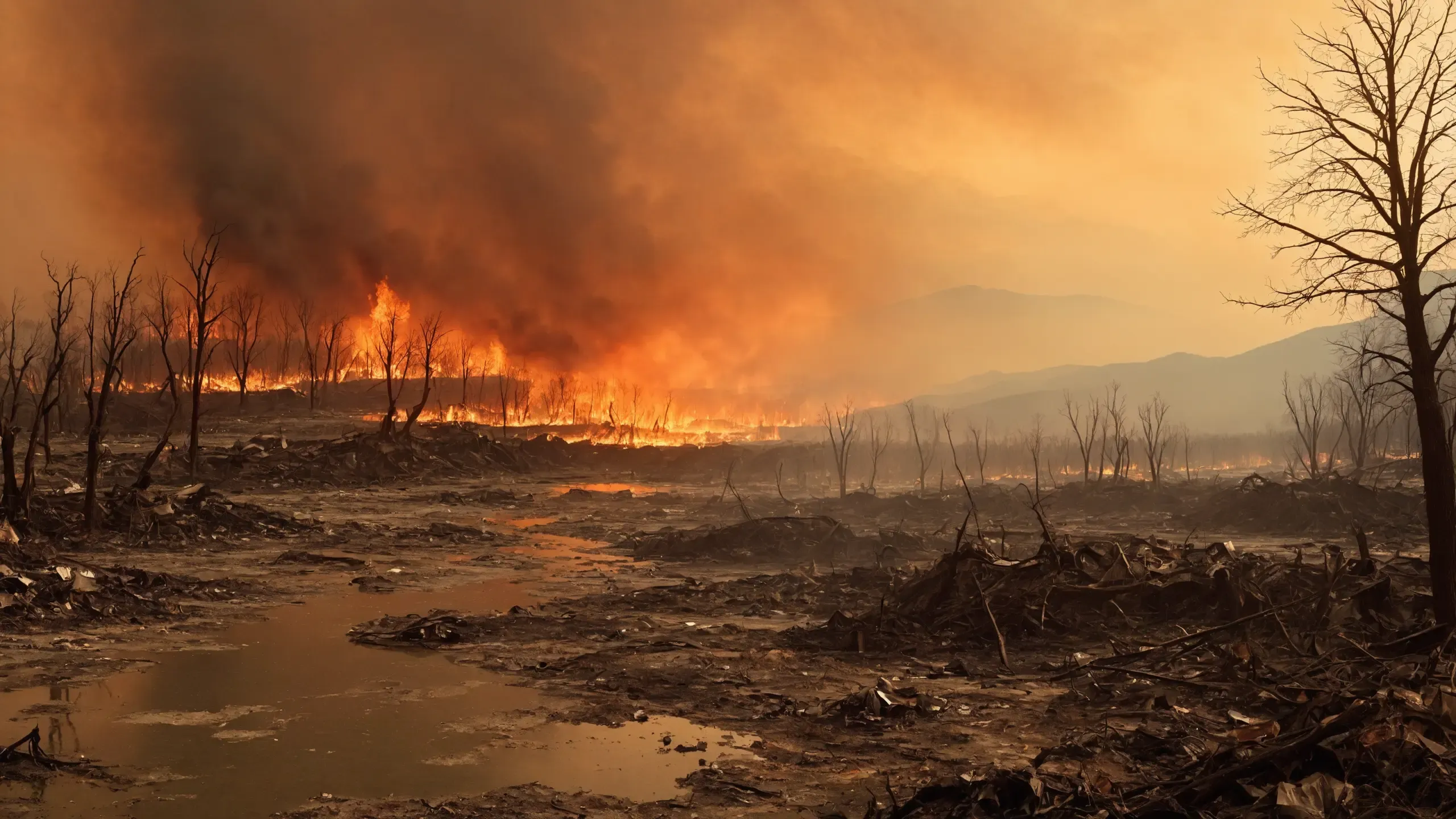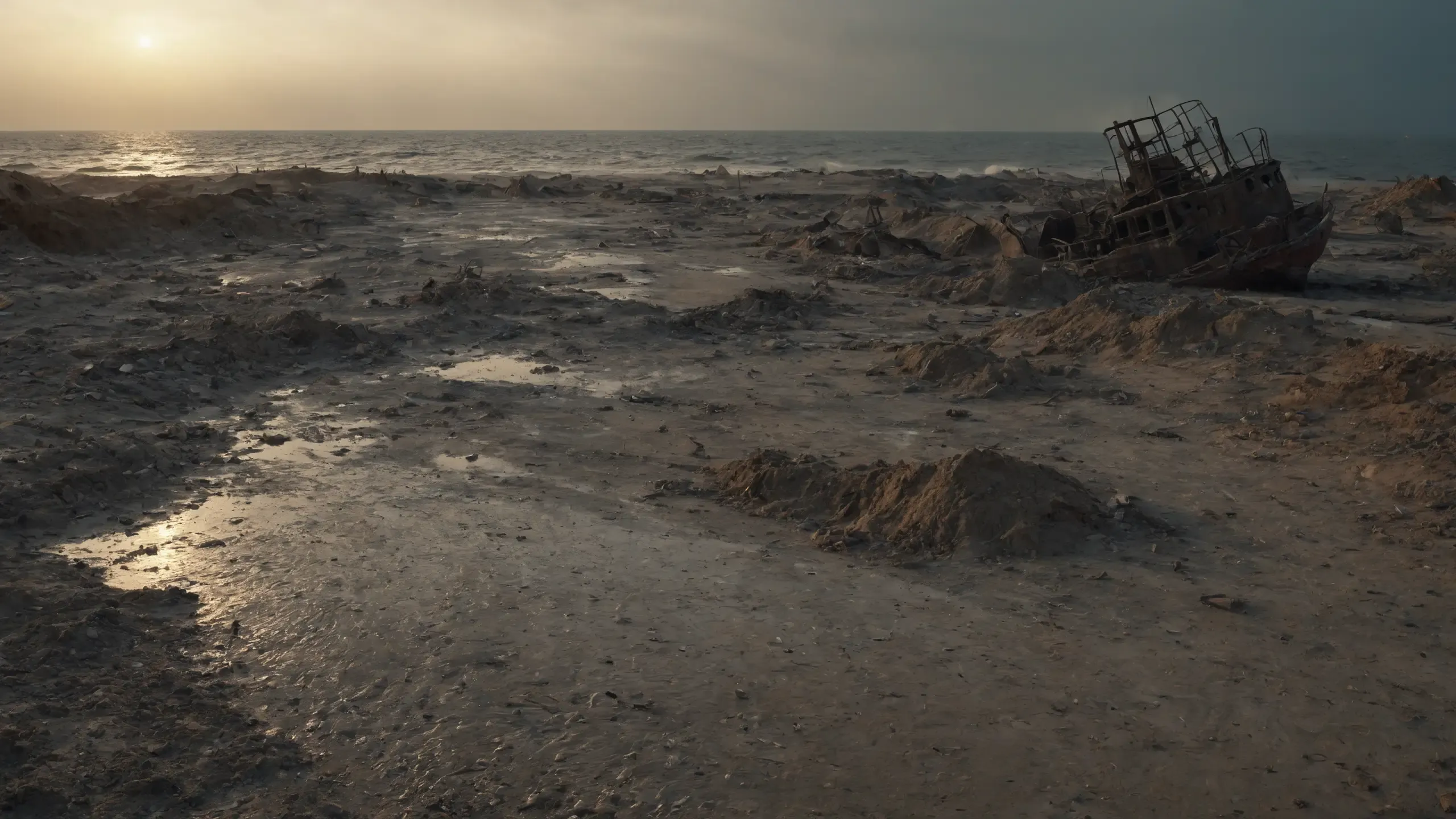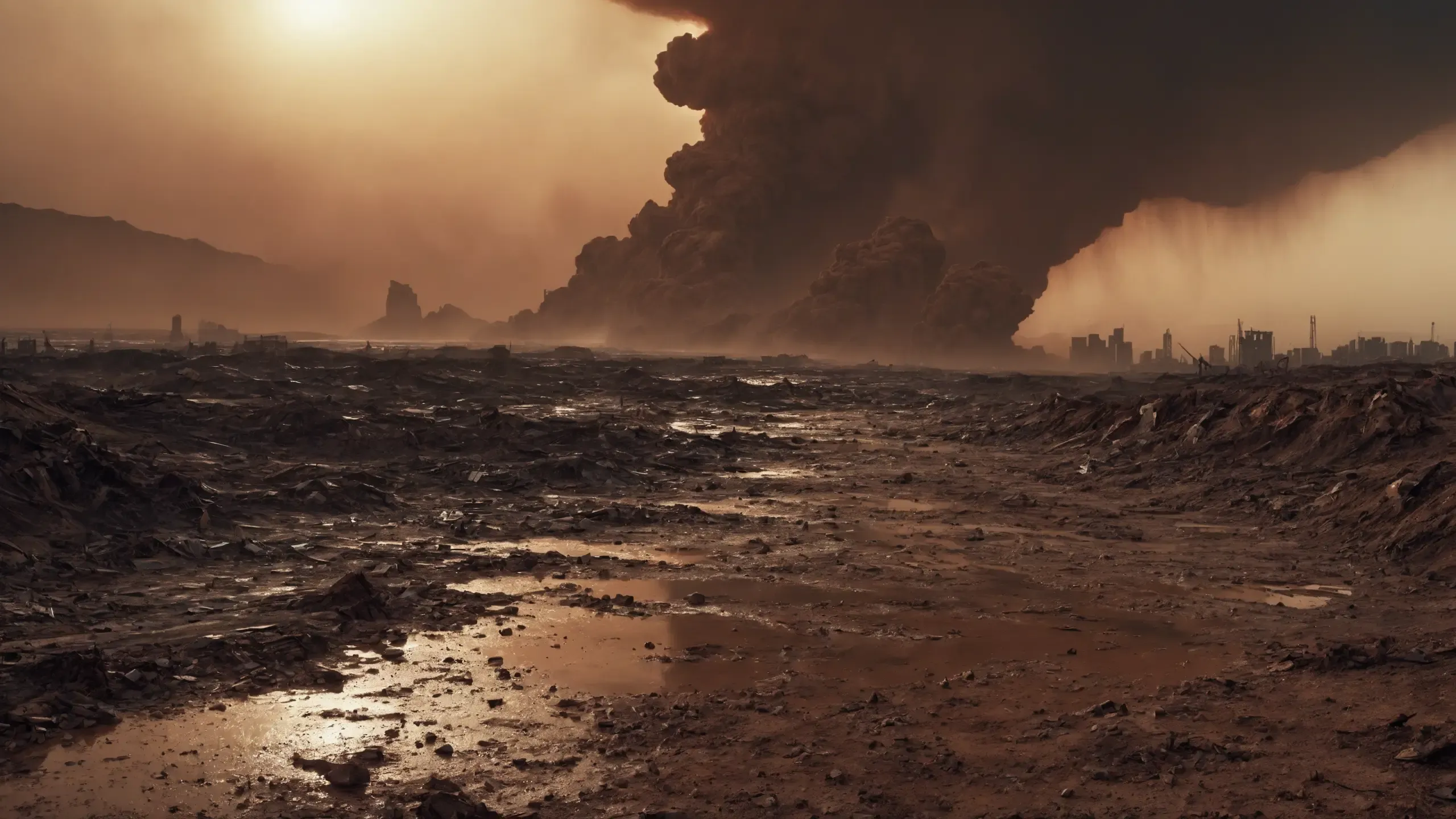 (devastation, death, destruction, toxic, polluted, garbage, environmental pollution, toxic foam on the water:1.5),