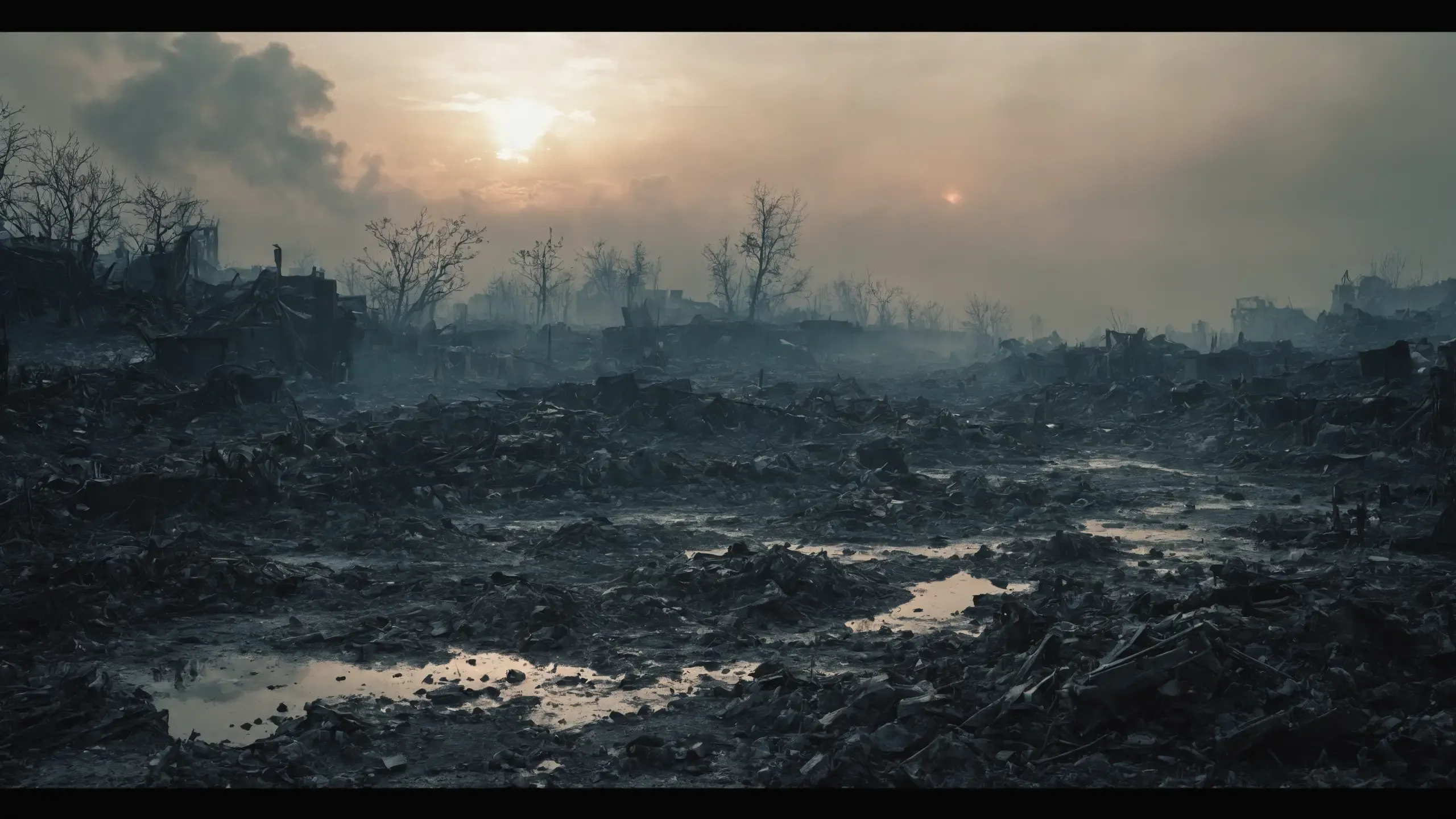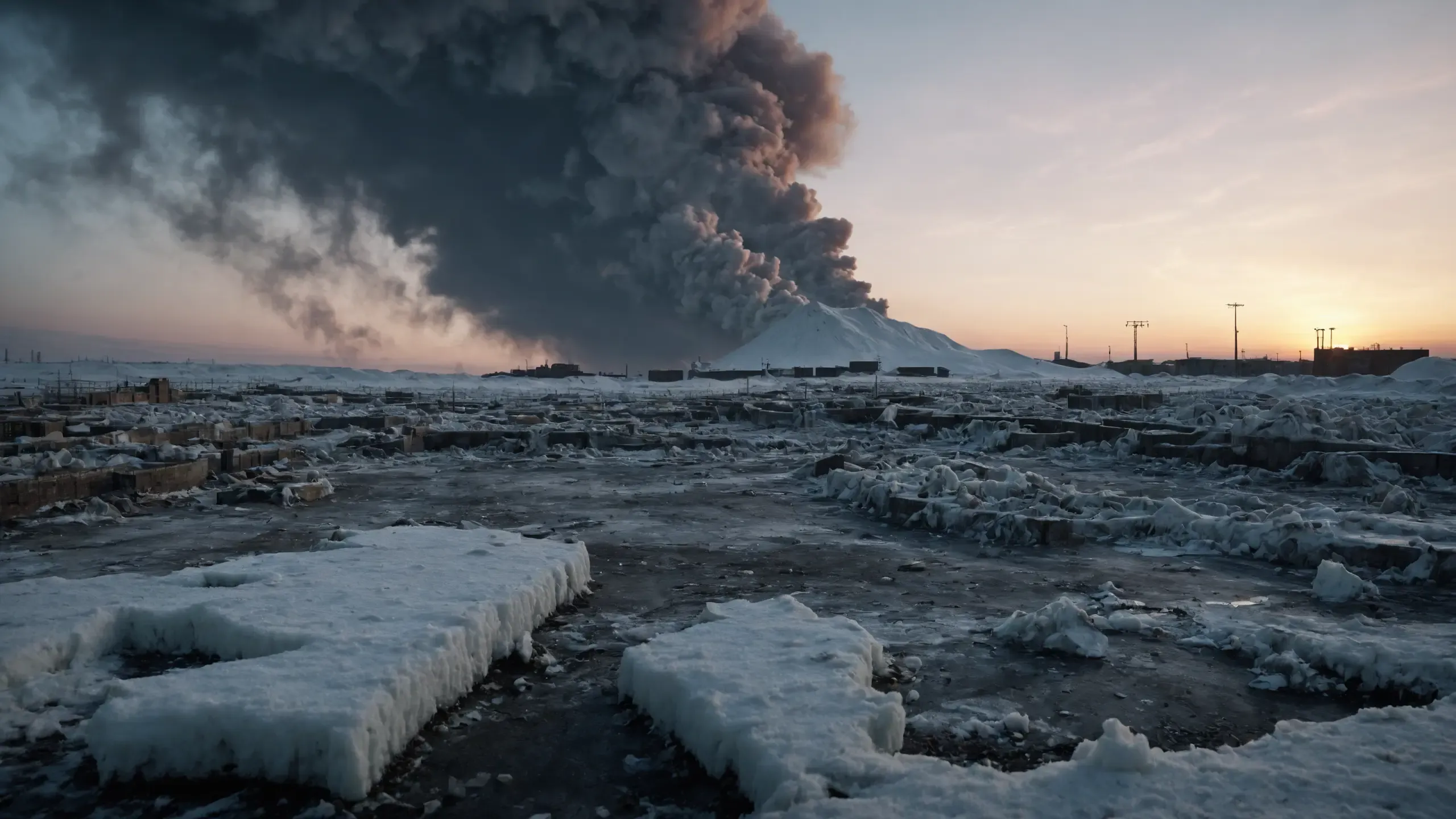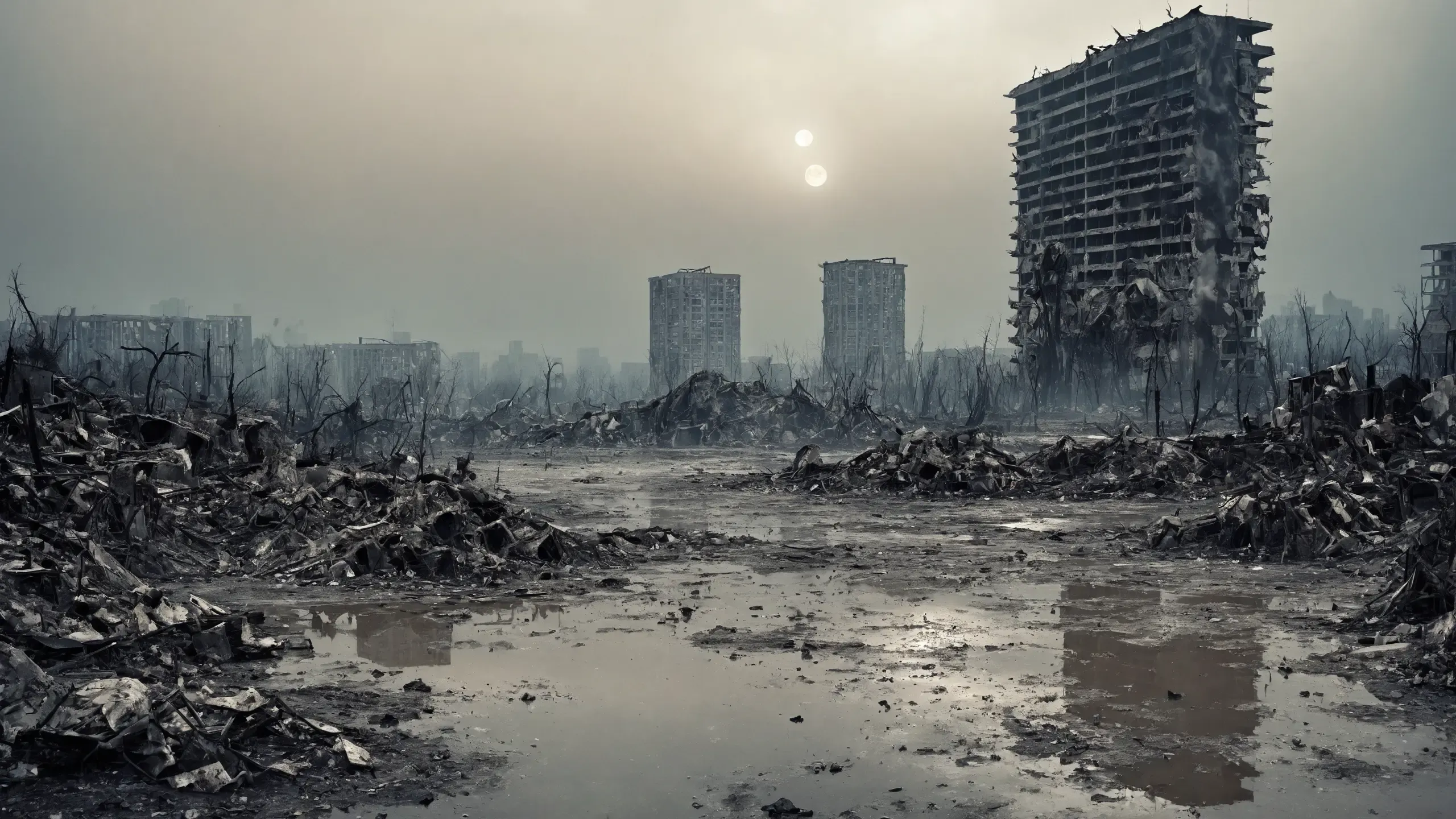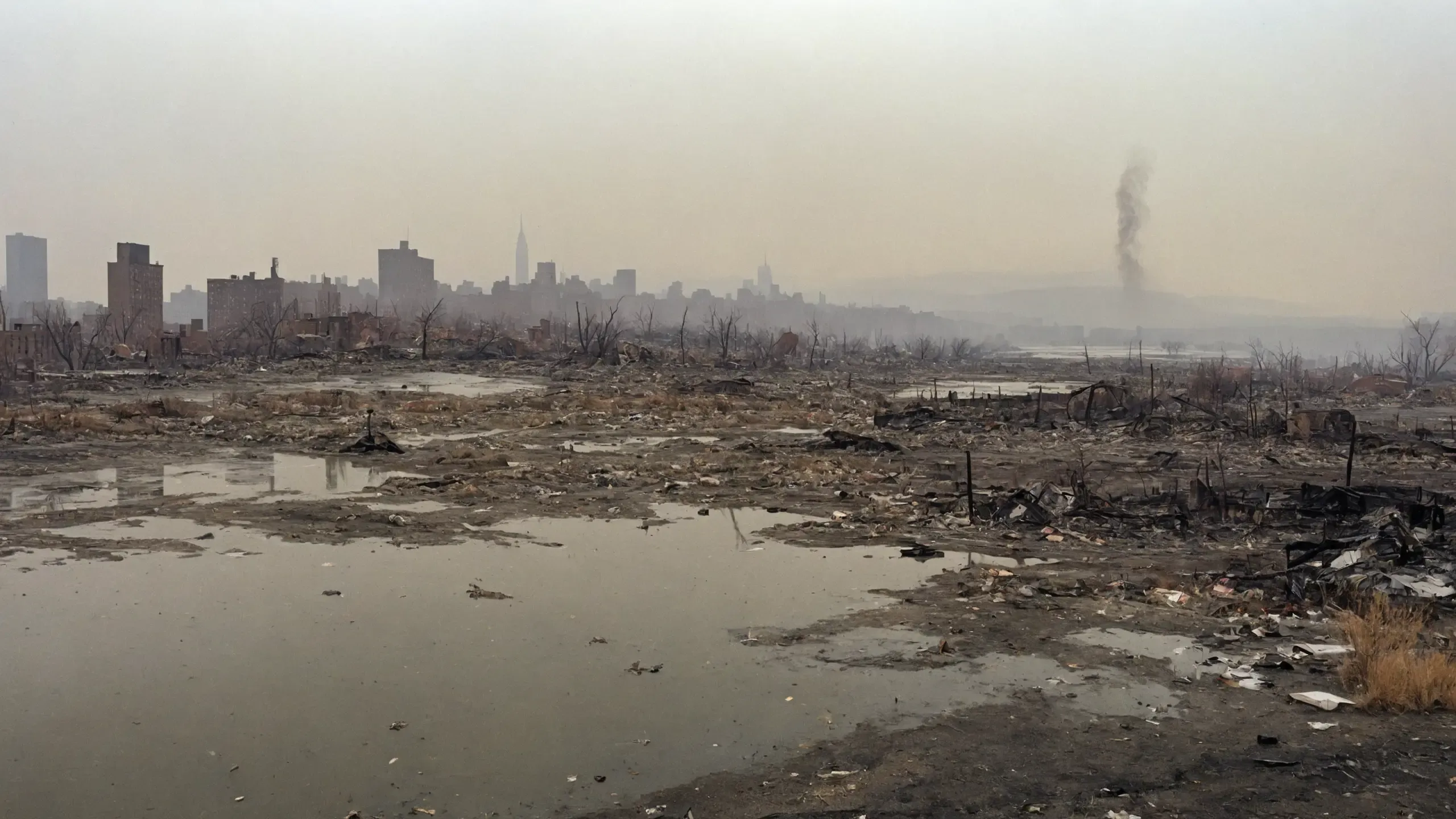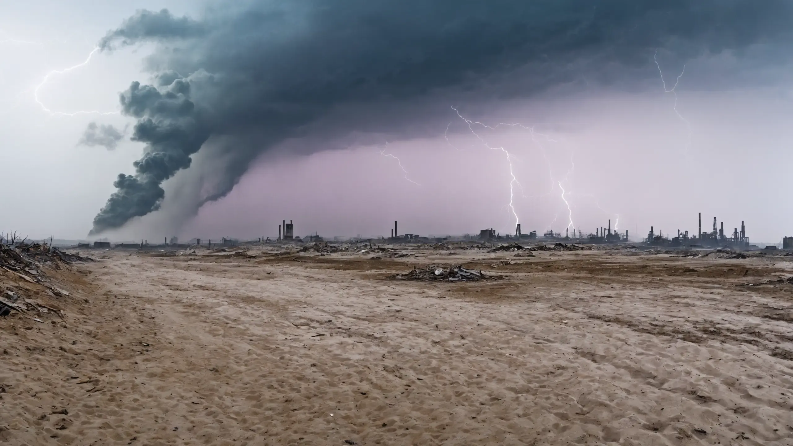 Destroyed and burning ({coal open-cast mine|nuclear power plant|collapsed skyscrapers|port|oil refinery|mega city|factory|Industrial facilities|high-rise housing estate|manhatten|vilage|bridge|prison|town}:1.5).