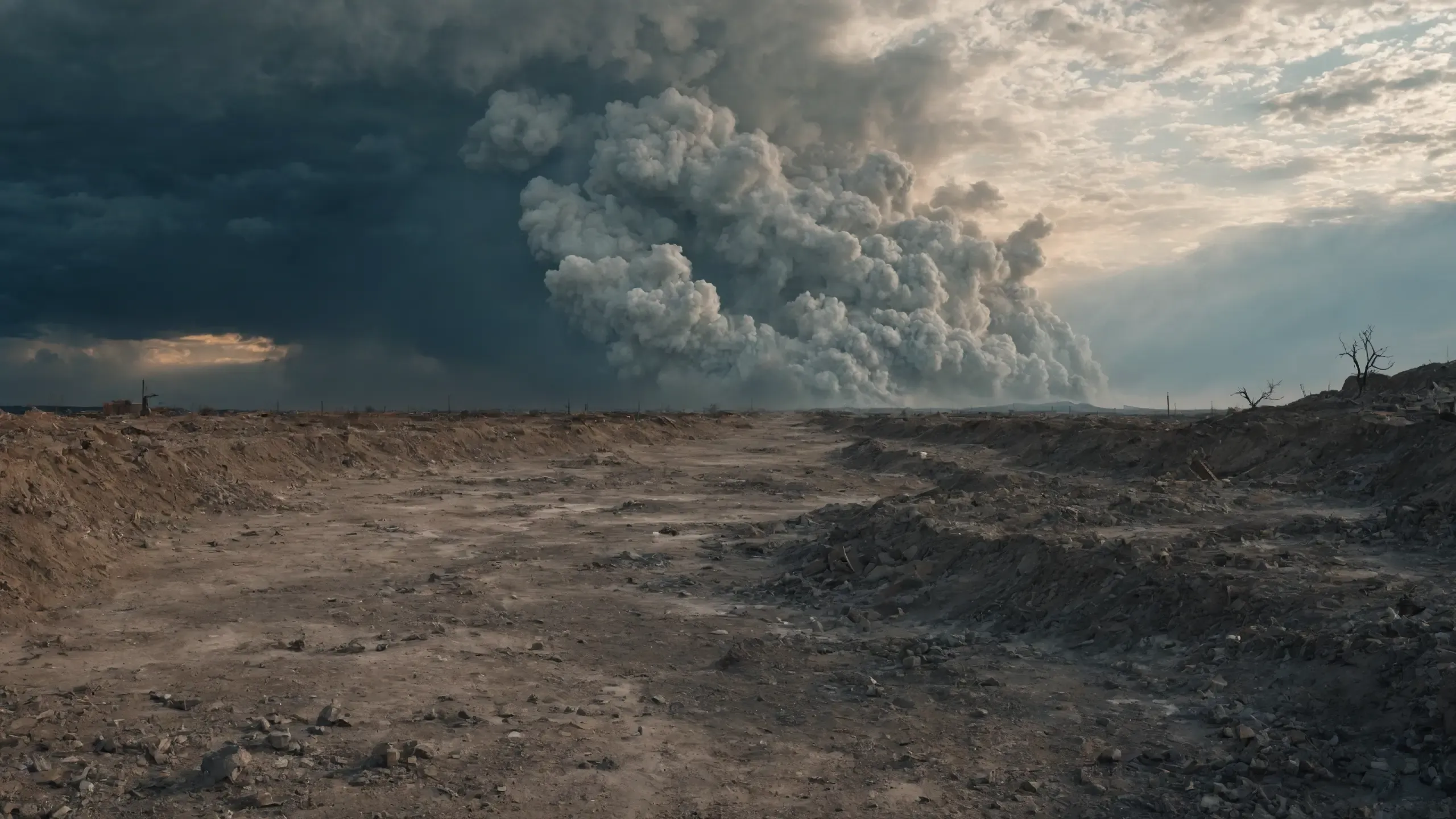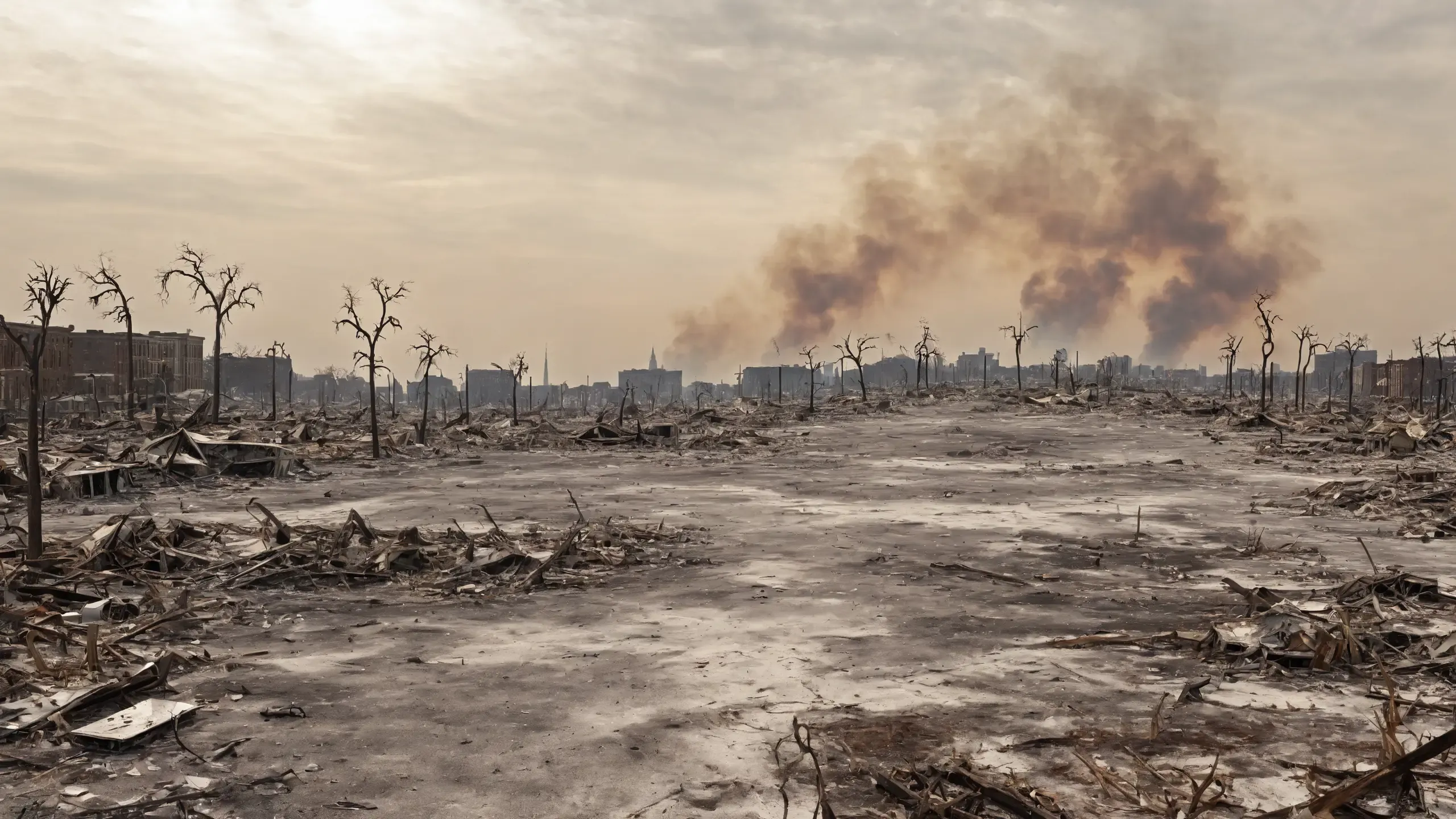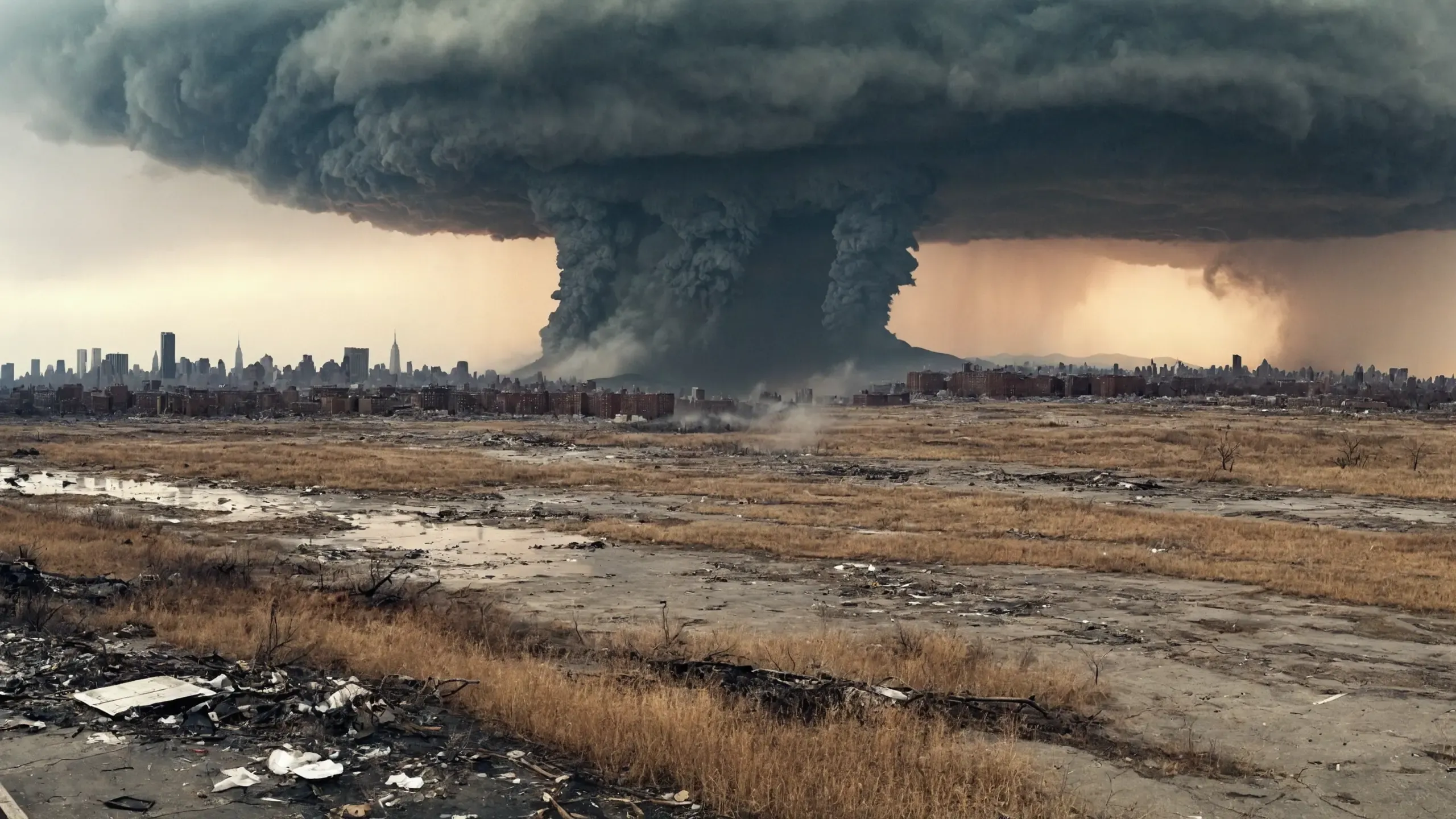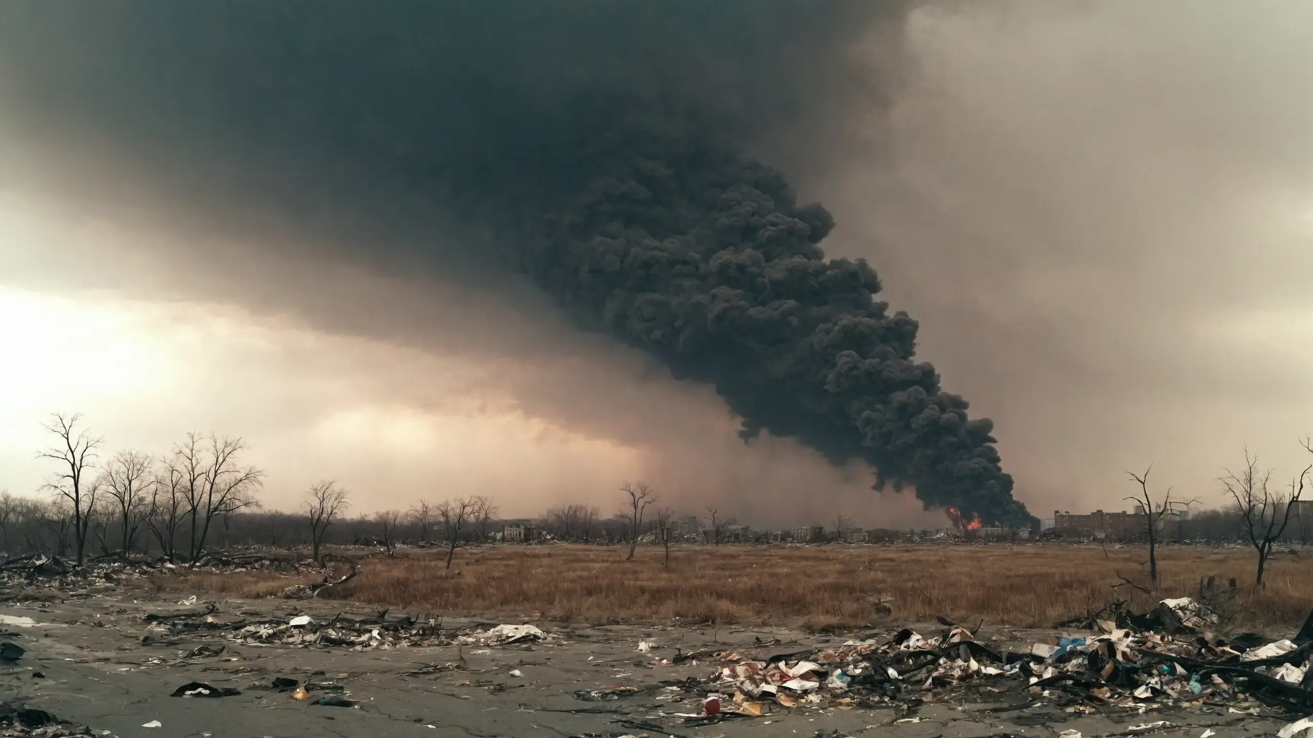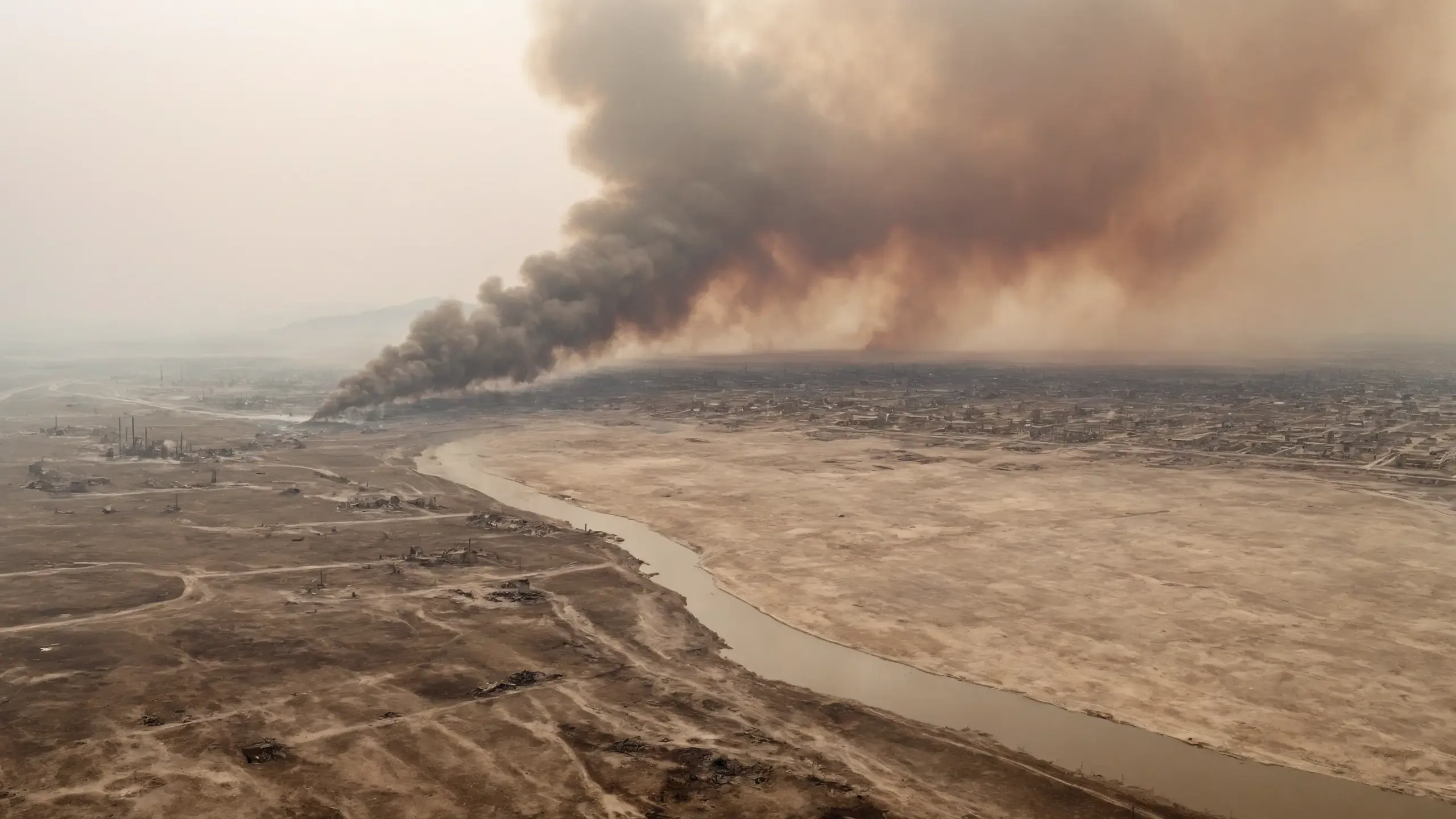 Far away you can see {fog|fire|thick smoke|mushroom cloud|war}.