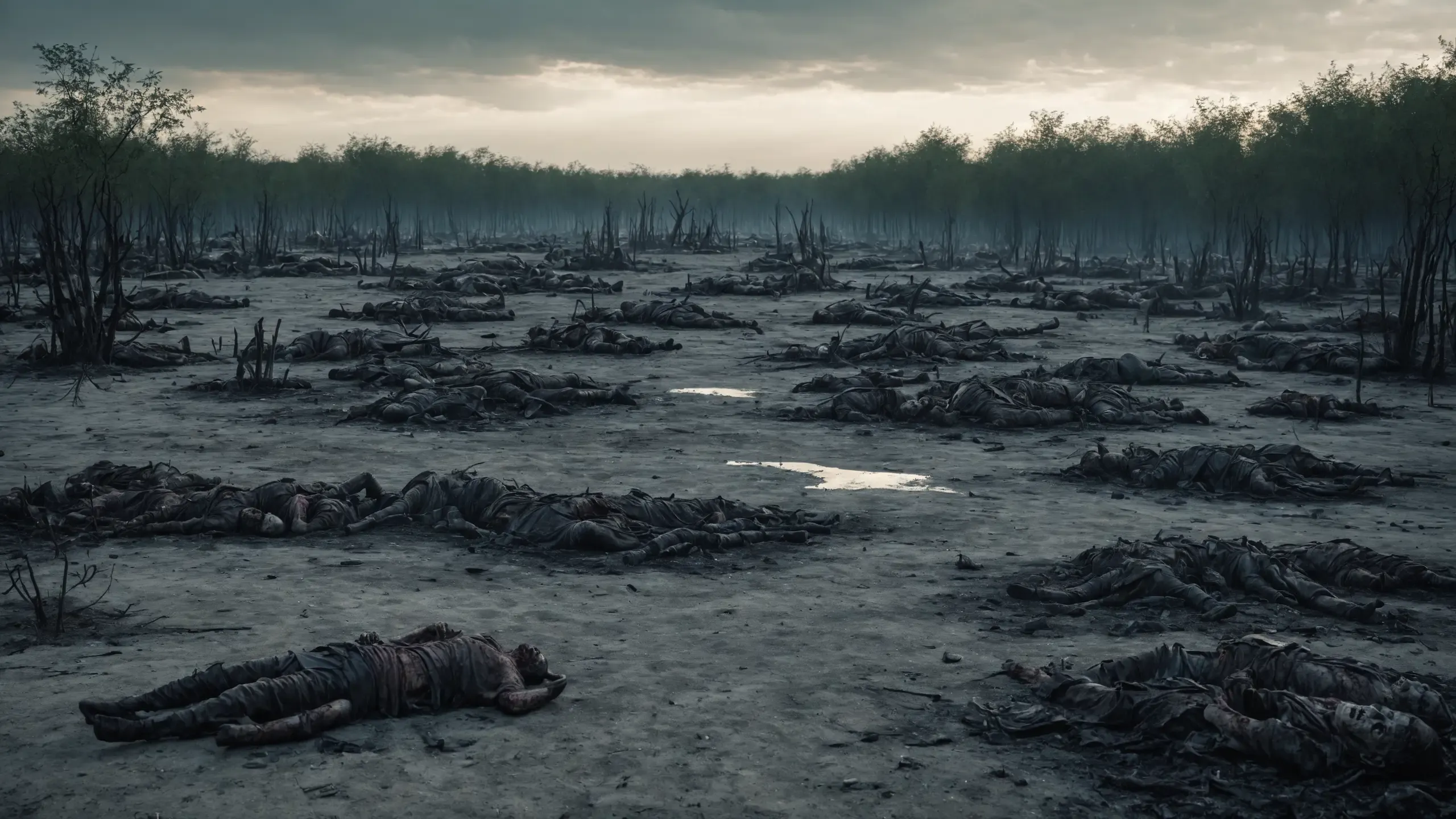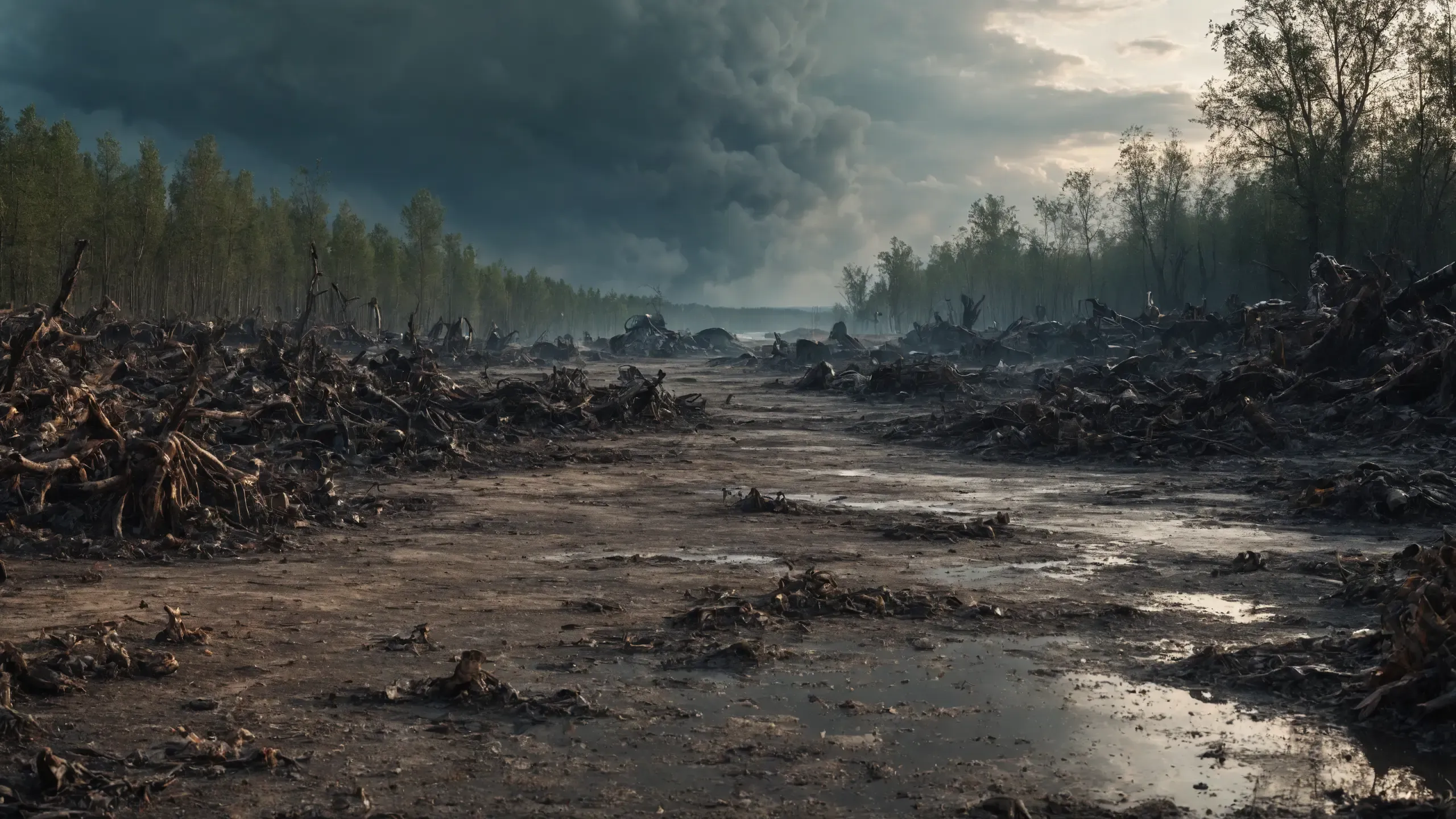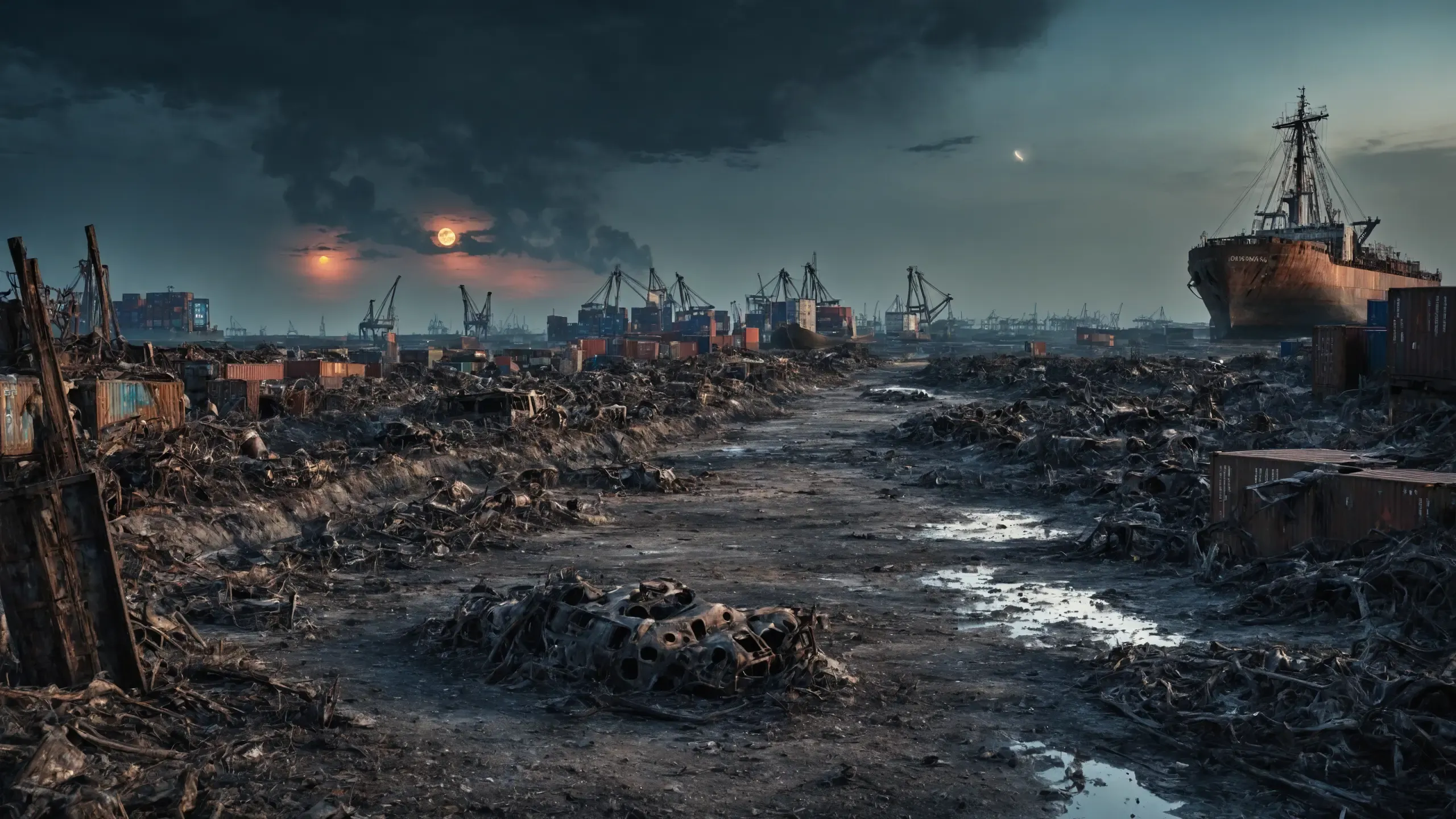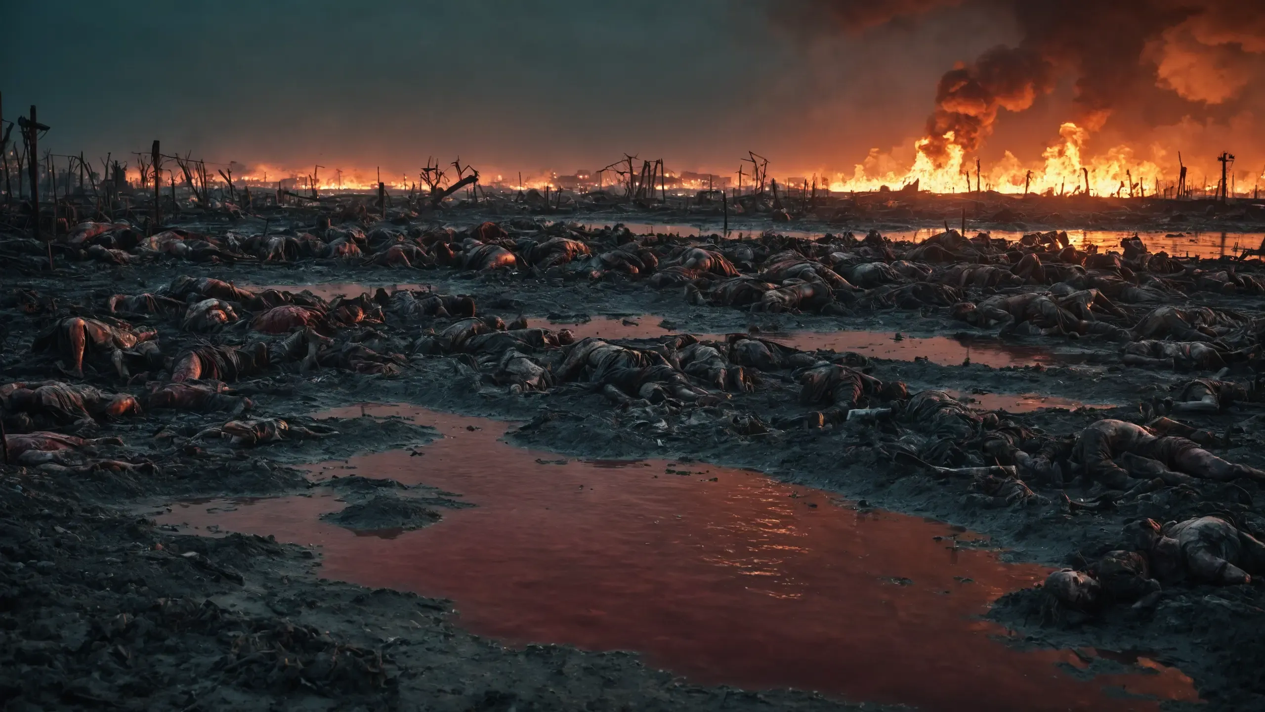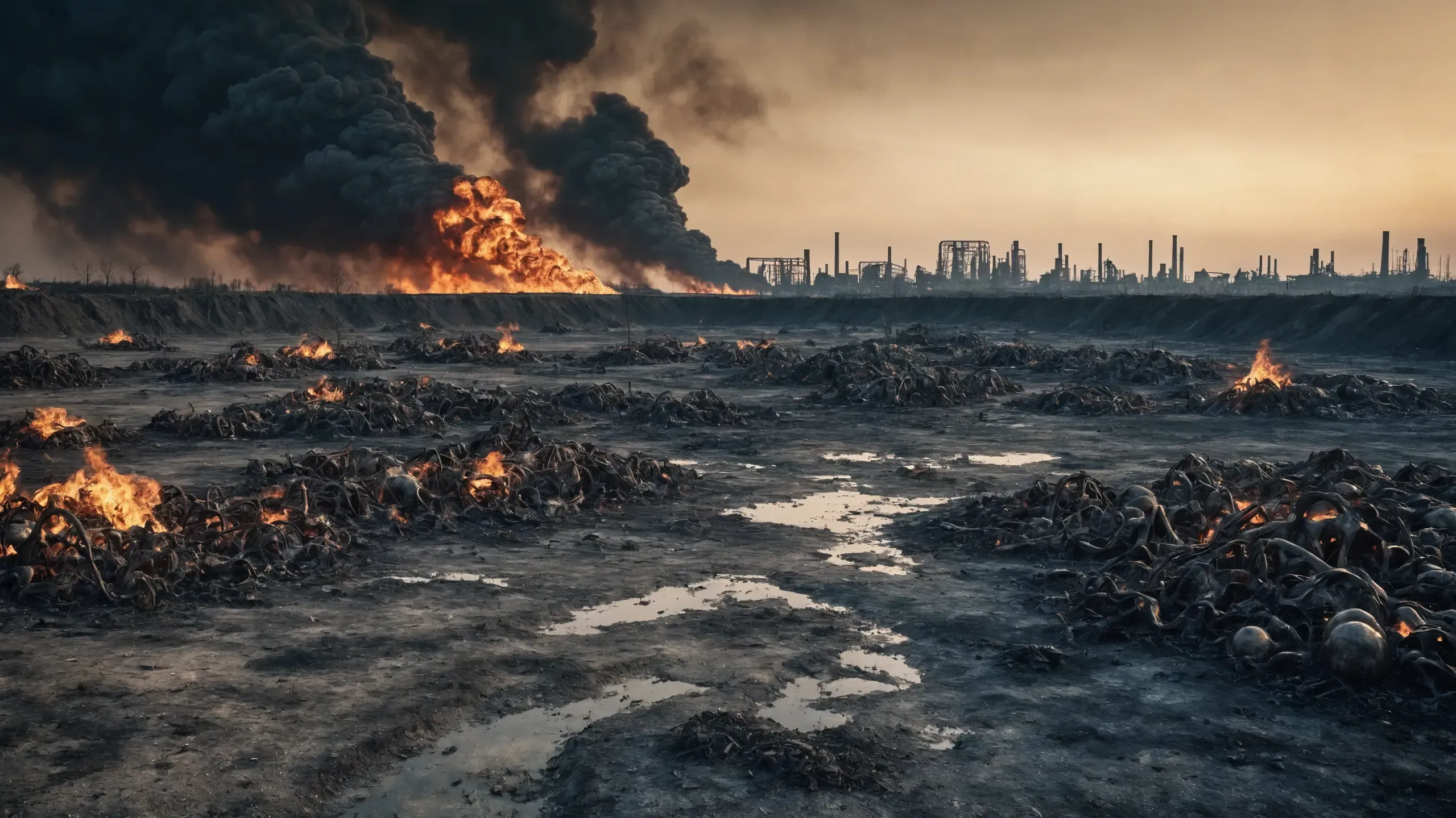{corpses|carcasses|rubble| scrap metal|oil|foam},