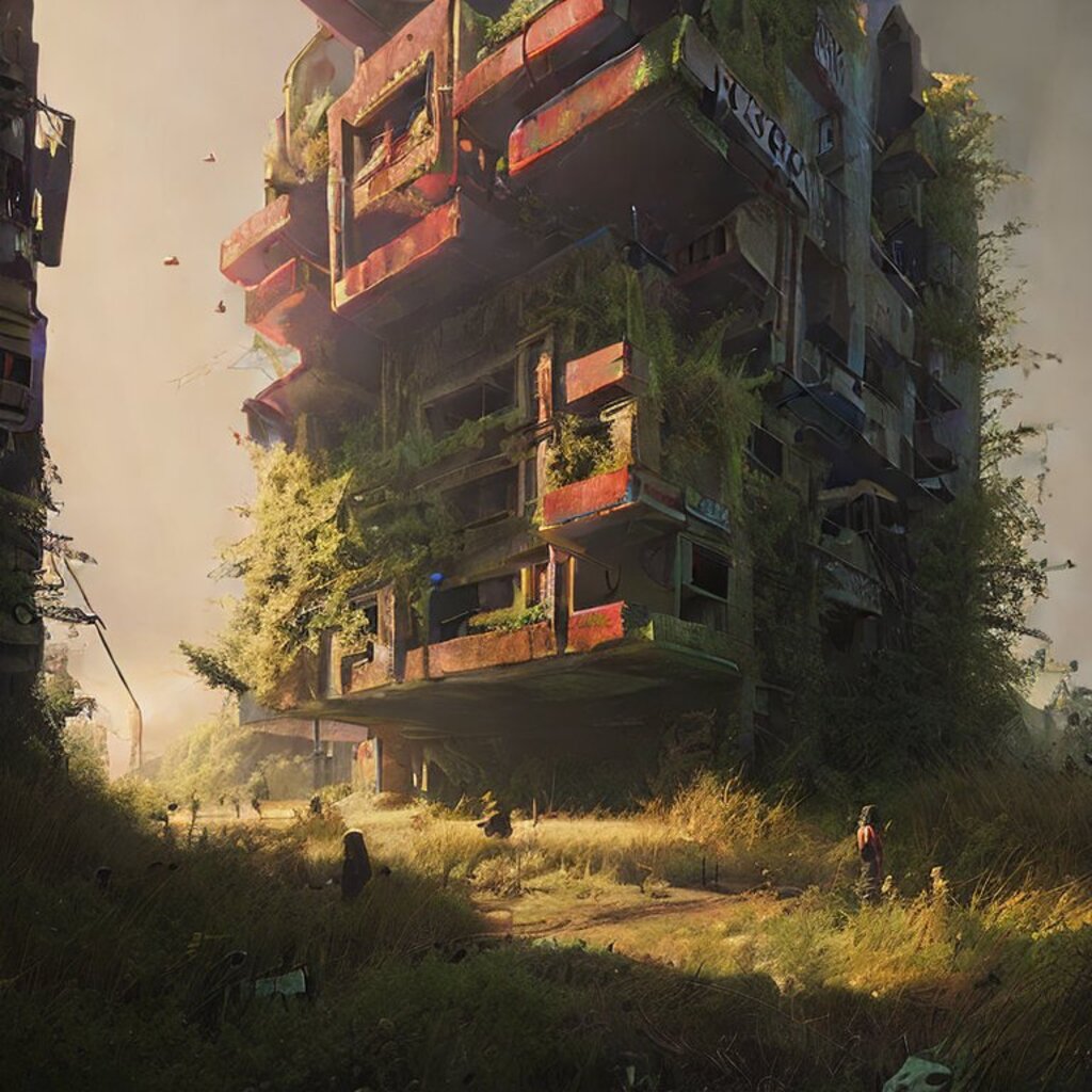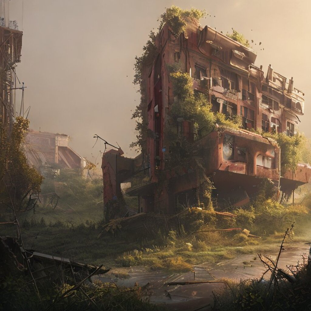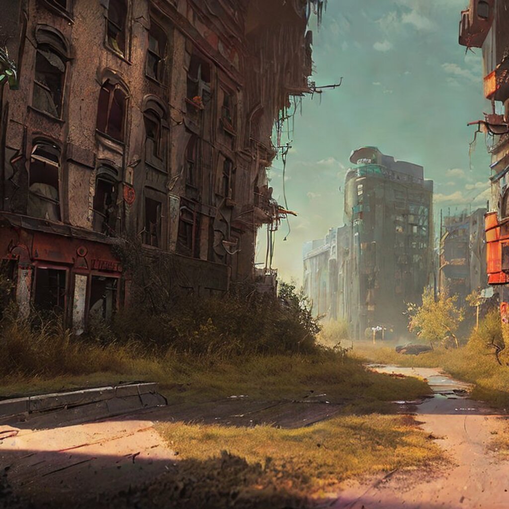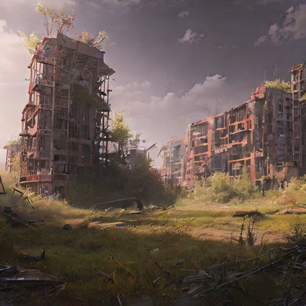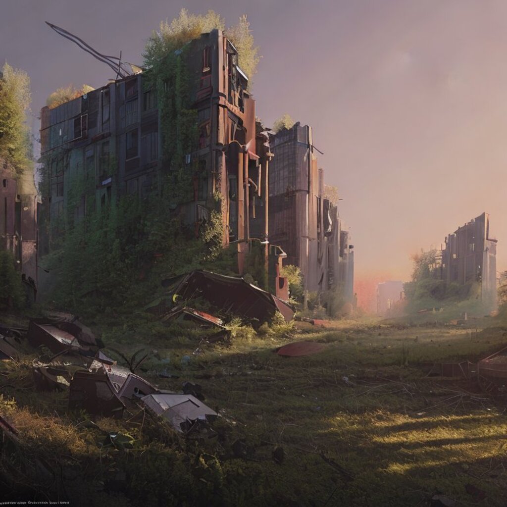 concept art of an abandoned ruined big city overgrown with nature by filip hodas and ismail inceoglu, hyper realistic, unreal engine, atmospheric, detailed, matte, godrays